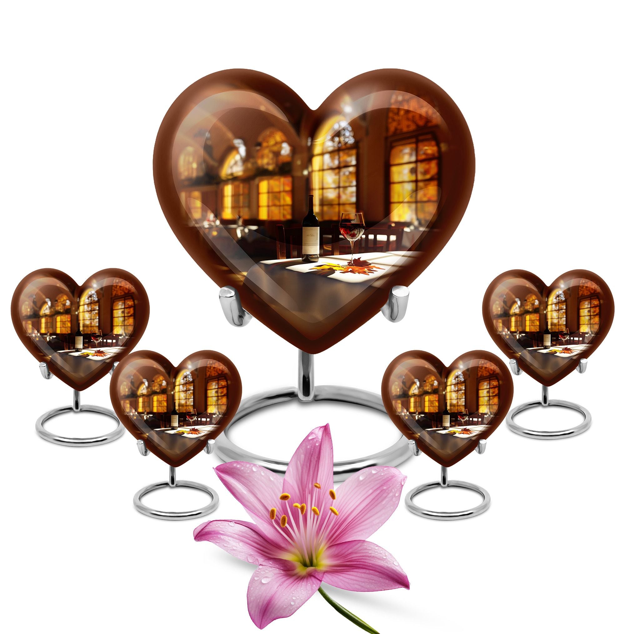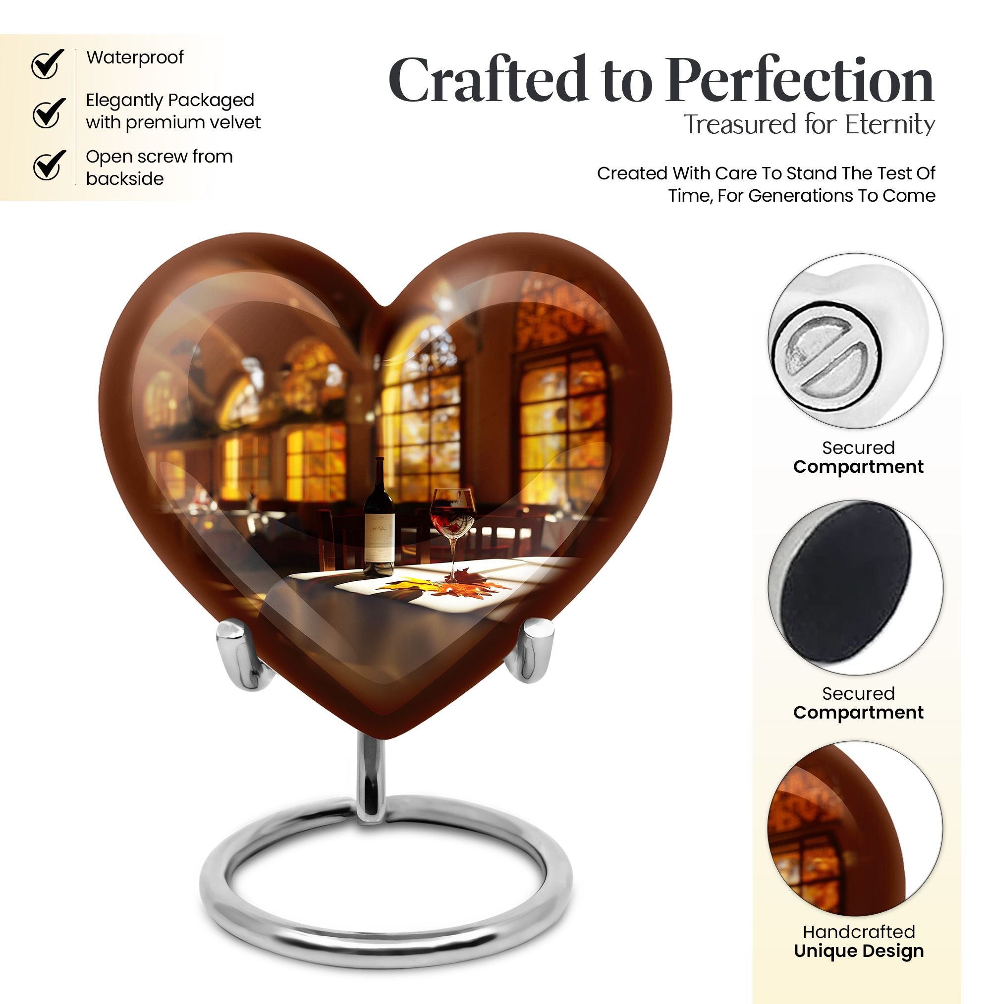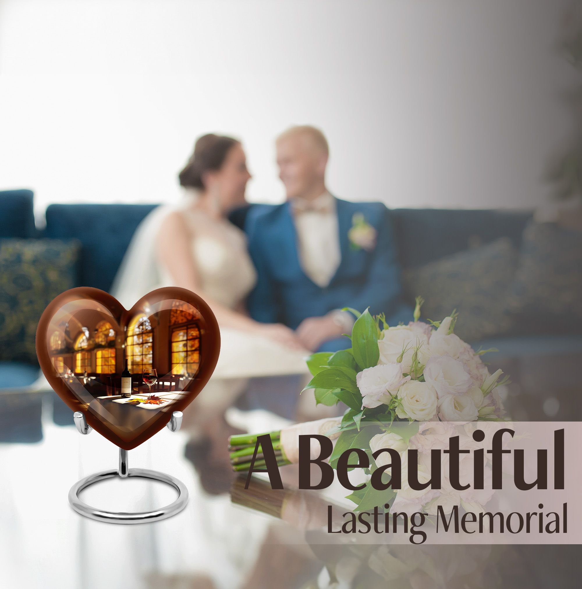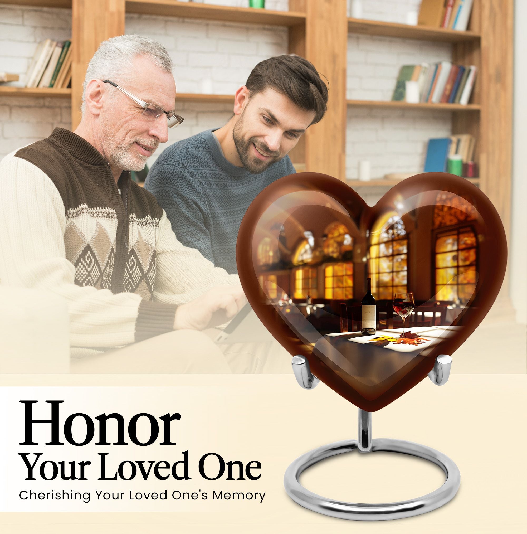 Discover the uniquely crafted 'Heart Urn,' a tasteful tribute to the departed. Symbolizing eternity and the continuity of life, this abstract-themed wine Urn has been exclusively designed as a place of peaceful rest. Measuring 10 inches in height and weighing 3.3 pounds, this Large Urn provides a stunning memorial, with a sizeable capacity of 200 cubic inches to securely hold the ashes. Made of high-quality aluminium, the urn strikes the perfect balance between immense strength and elegant design. Included in the package is a soft velvet pouch to aid the safe containment of ashes. Personalize your memorial adult urn with custom engraved names, making it not just a simple cremation urn, but a family heirloom with sentimental value. The urn captures keywords such as 'Memorial adult urns for human ashes women' and 'adult human'- offering the perfect reflection of memories and emotions.