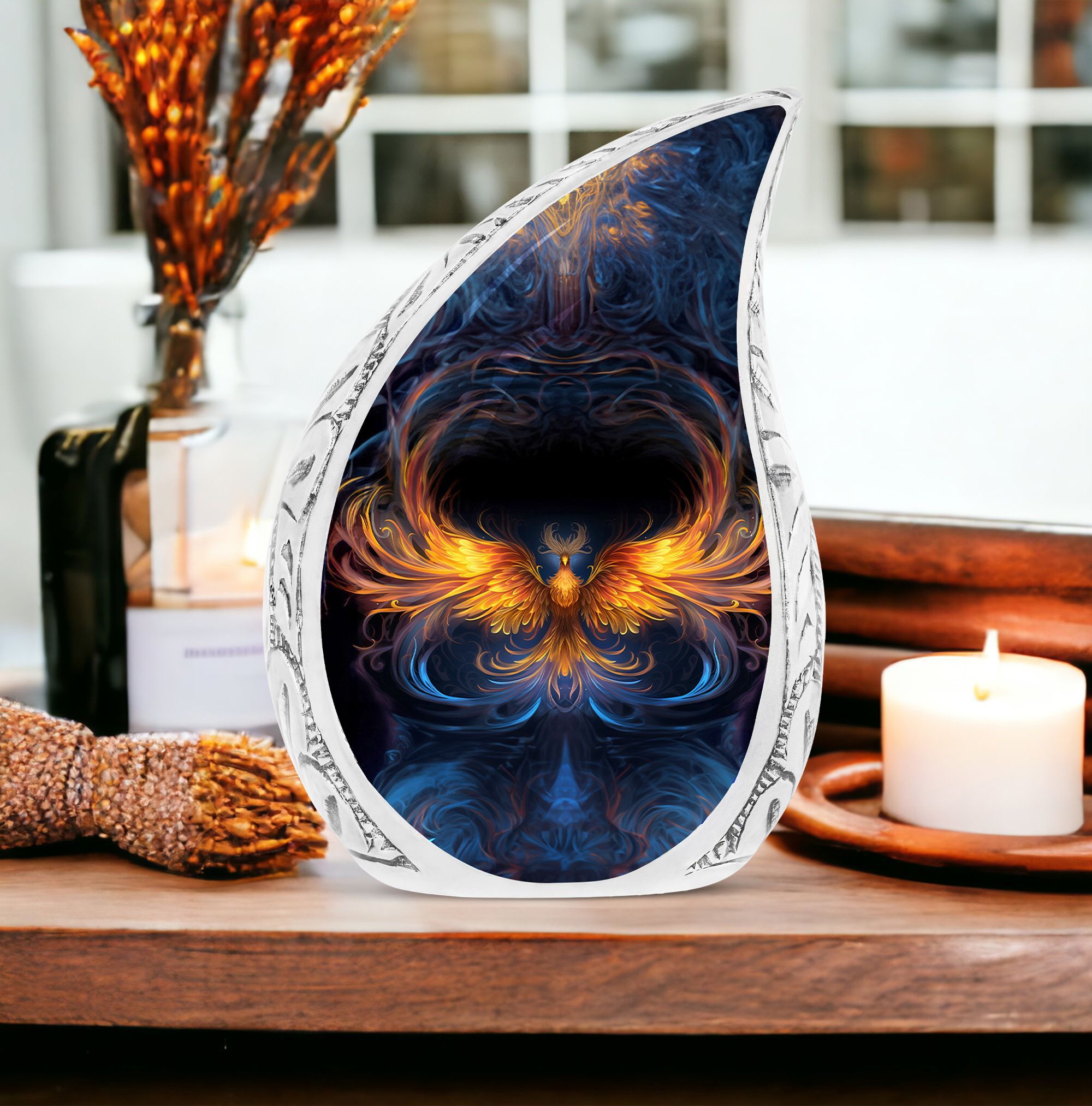 Honoring a life filled with love and strength, this phoenix flame cremation urn offers a powerful symbol of renewal and eternal connection. Designed as a large adult urn, it provides families with comfort while serving as a dignified tribute for a beloved mother or loved one, including those seeking an urn mom ashes large or an urn human ashes large.