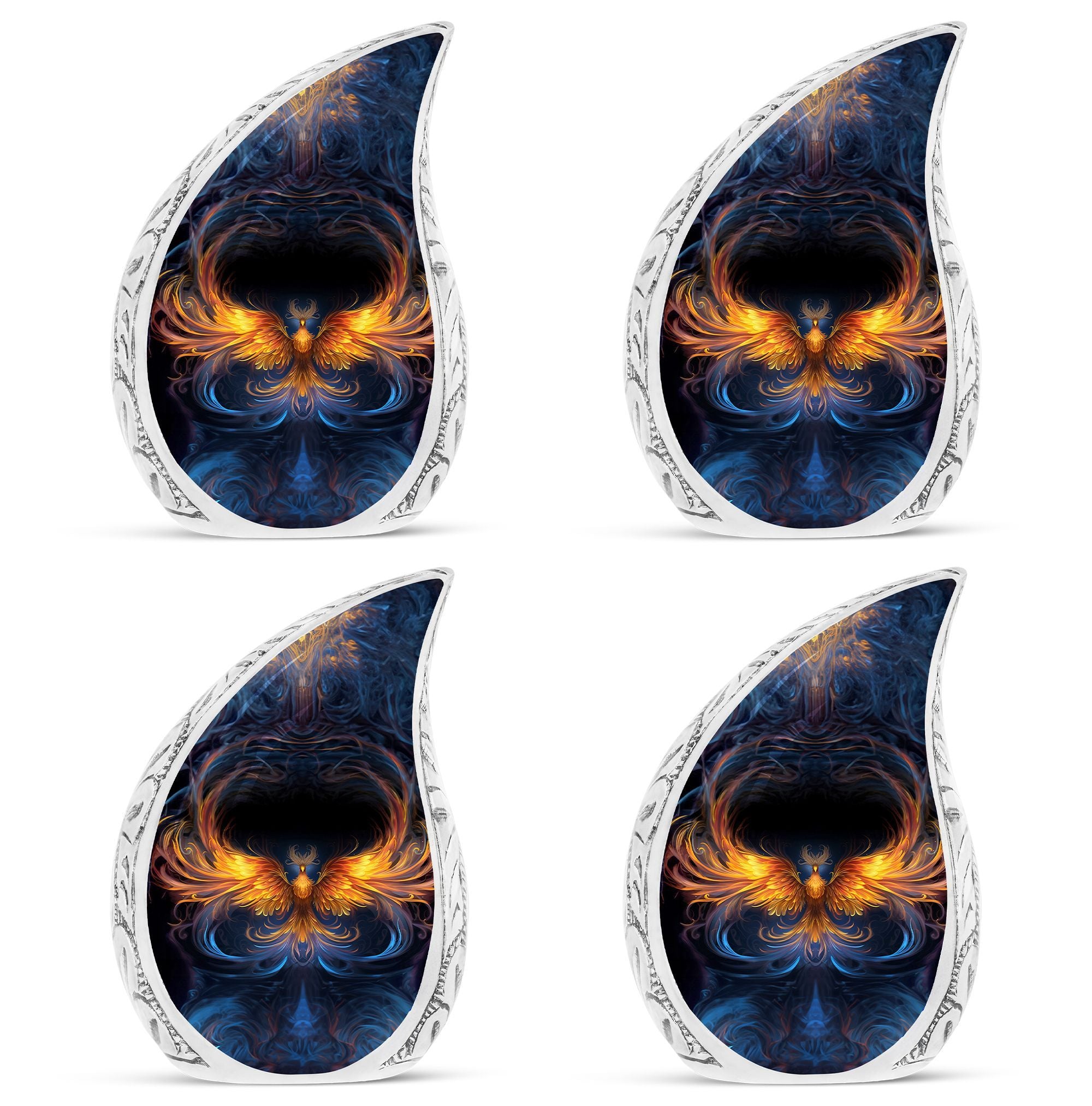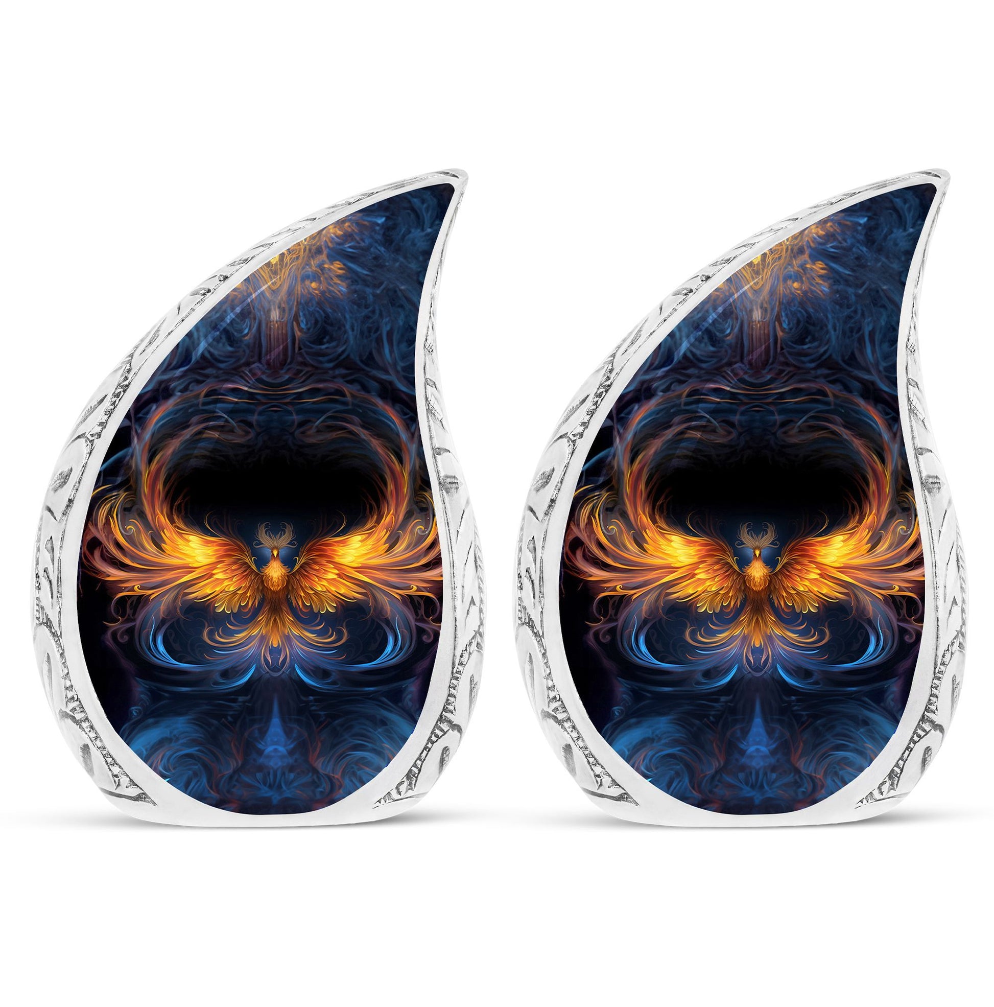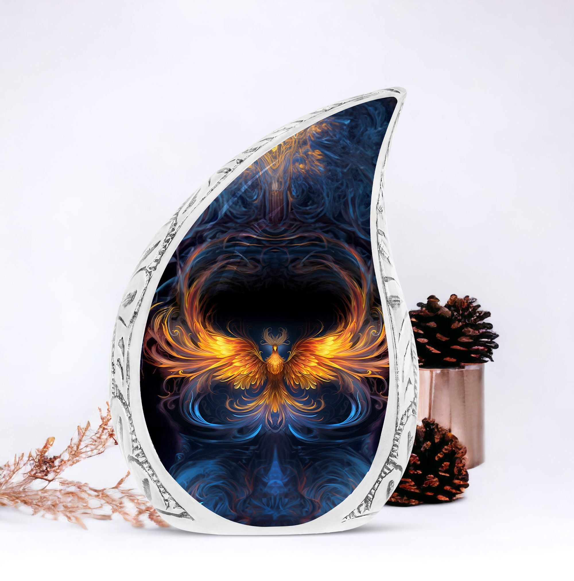 Handcrafted from durable aluminium, this urn blends lasting quality with meaningful artistry. The radiant phoenix flame design transforms it into a large decorative urn for human ashes, reflecting courage, peace, and rebirth. Created as an urn large adult, it offers generous capacity and secure construction, making it suitable as a large urn human ashes for memorial display or burial. Its elegant presence also resonates with families looking for cremation urns for women that are both symbolic and refined.