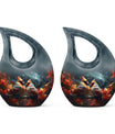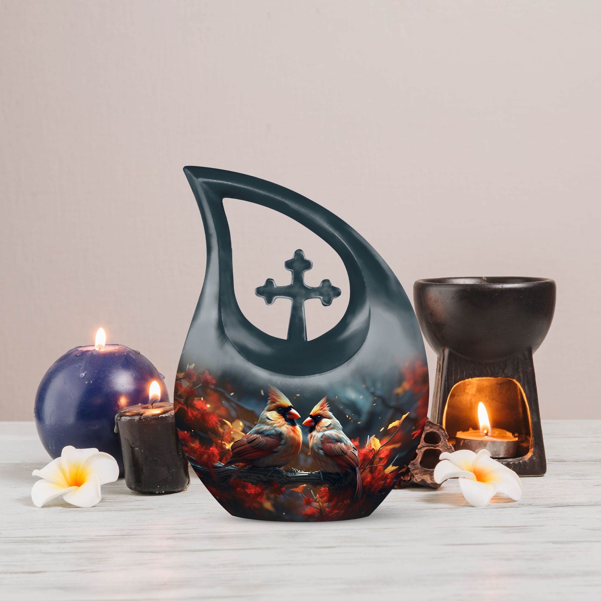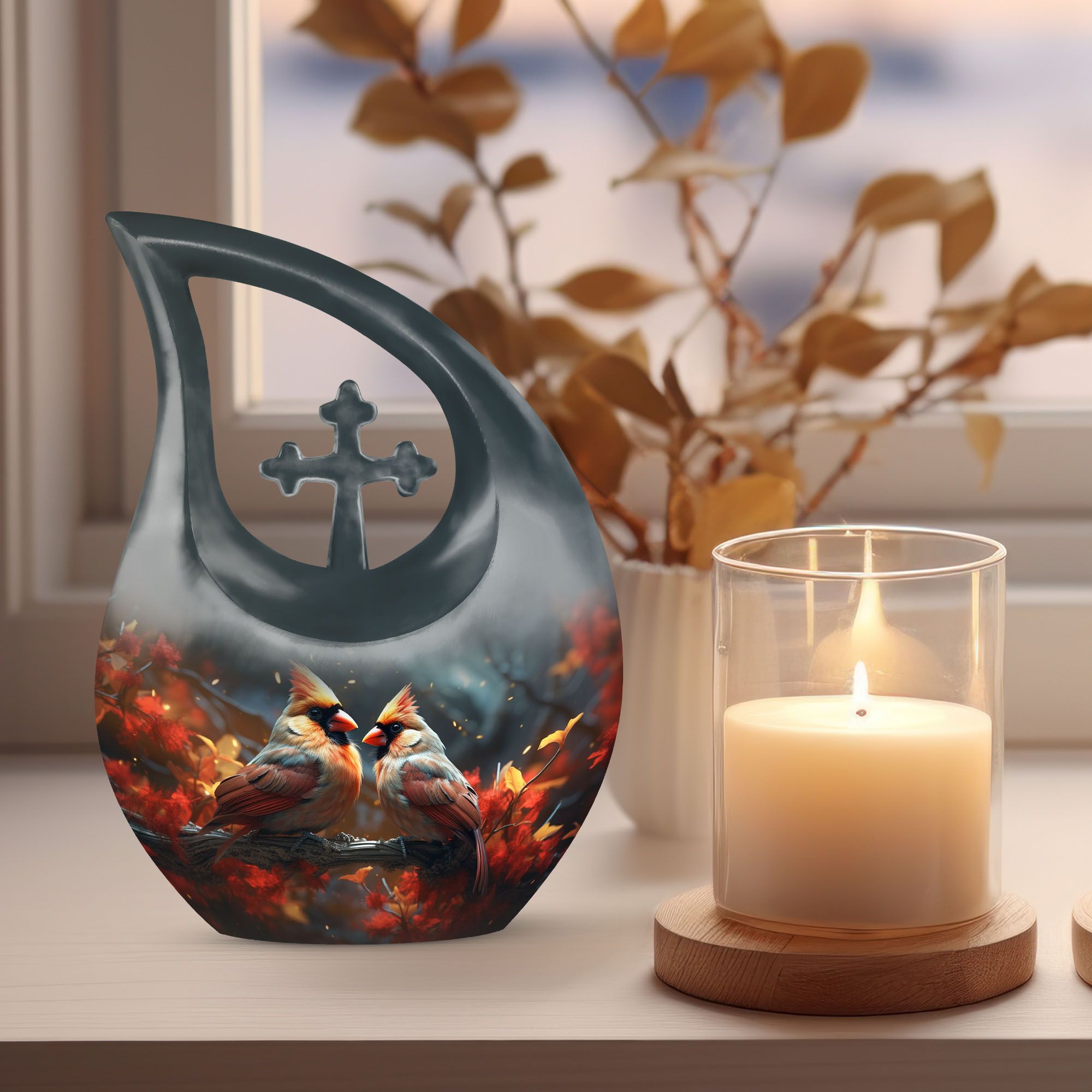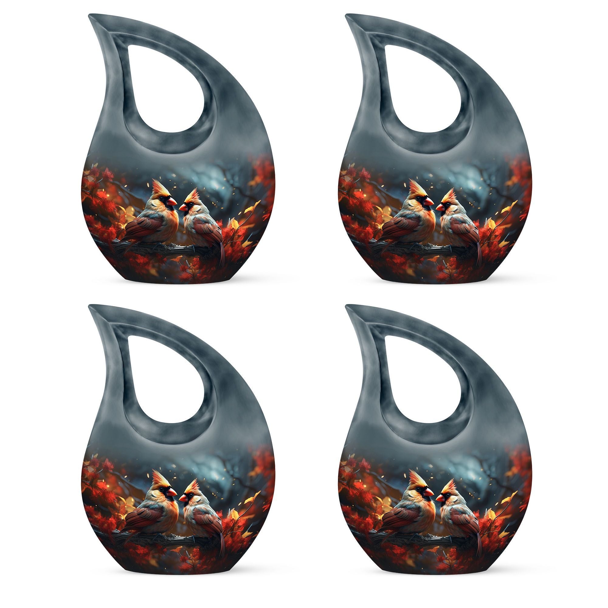 Celebrate everlasting love and togetherness with the Orange Cardinal Bird Cremation Urn for Couples, a stunning symbol of devotion and peace. Designed for both men and women, this urn embodies warmth and remembrance, ideal for urns for ashes adult female mom or human urns for ashes adult male. Expertly crafted from premium aluminum, this large and keepsake urn set features a radiant orange and gold cardinal motif — representing faith and eternal love. The fine artistry and protective lacquer finish ensure that these urns for adult male and urns for adult female ashes remain beautiful for generations. The secure screw-top lid keeps the ashes safe and preserved with dignity. Perfect for display or burial, this urn set can serve as ash urns for humans male or urns for ashes adult female mother, offering families the option to share and cherish memories through matching keepsakes. Features: Material: Premium handcrafted aluminum Dimensions: Height 10 inches (large urn), 3 inches (keepsake urns) Capacity: Large urn holds 200 cubic inches; keepsakes hold a portion of ashes Lid: Secure screw-top lid for safe closure Design: Orange cardinal birds on floral backdrop — symbolizing love and remembrance Use: Suitable adult male urn, urn for adult female ashes, or couple memorial keepsakes The Orange Cardinal Bird Cremation Urn Set is a heartfelt tribute — a radiant reflection of shared love that continues to soar, even beyond life itself.