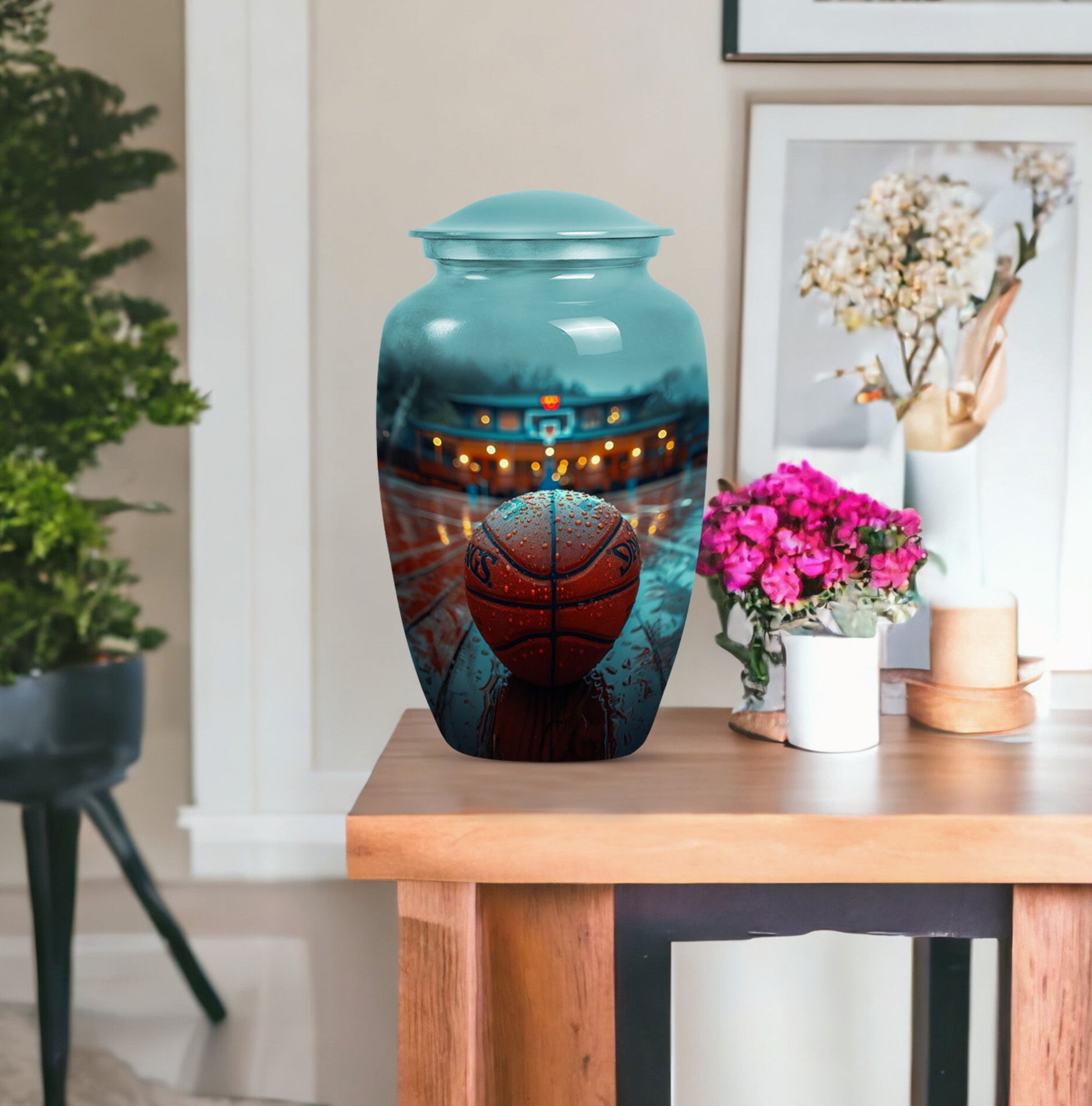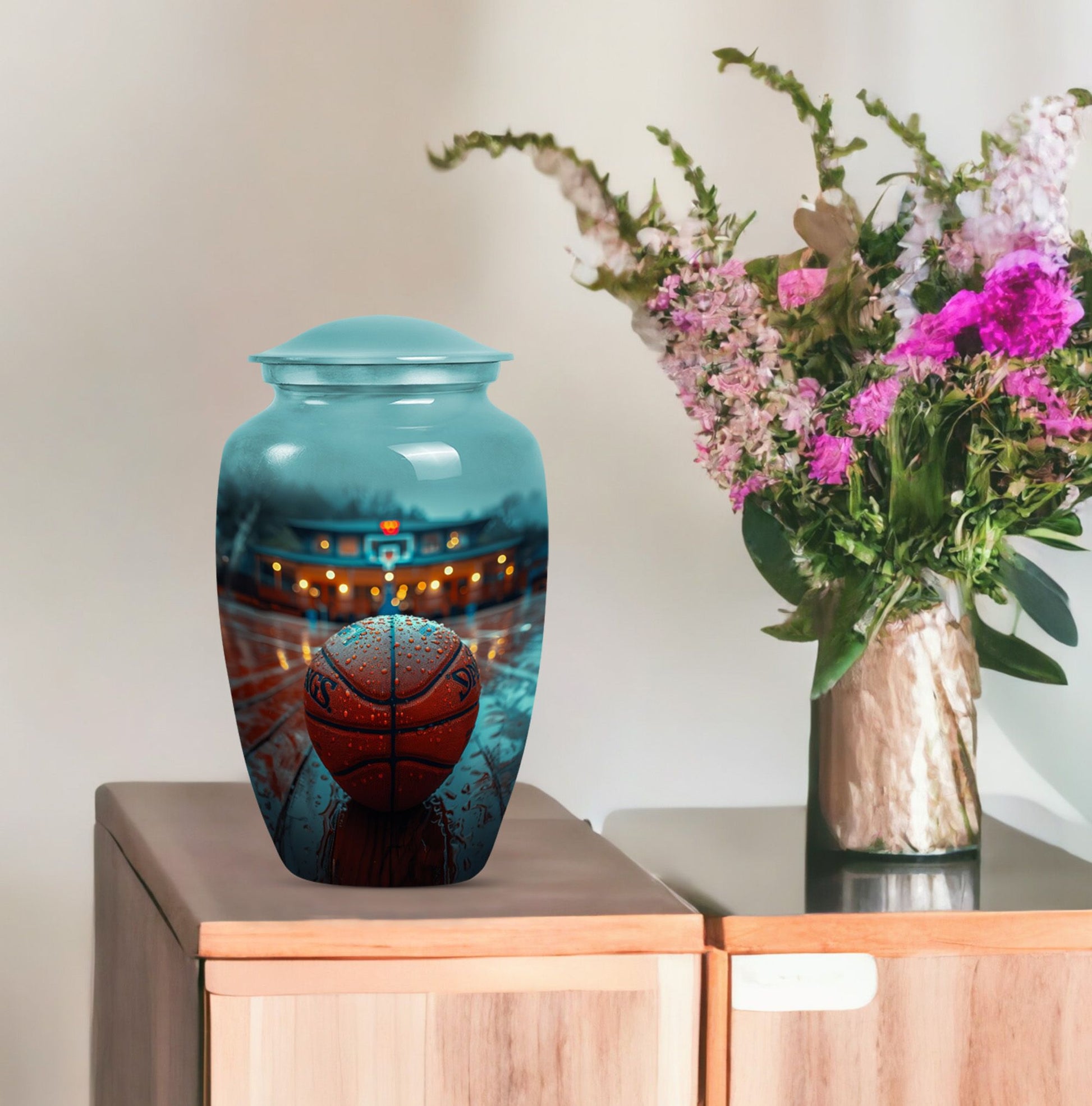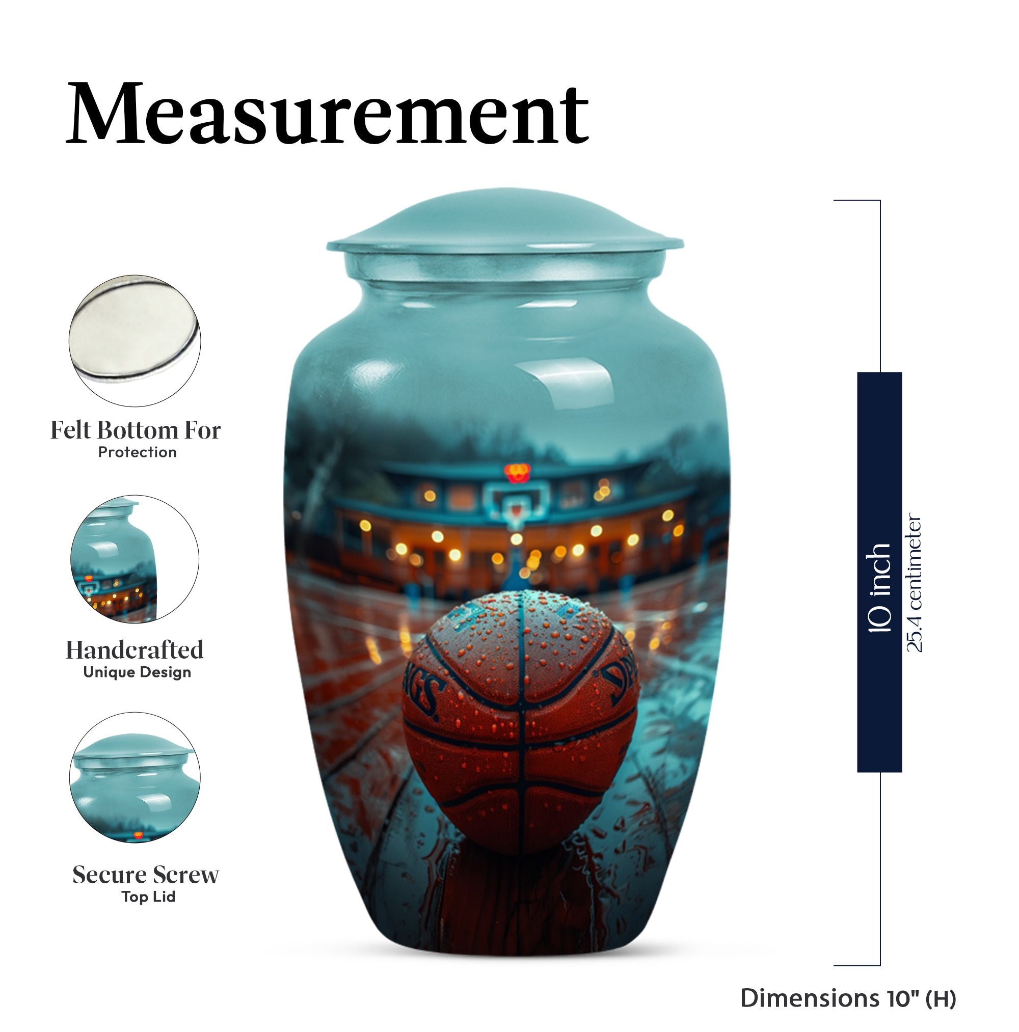 This 10-inch, Aluminum 'Large Urn' themed with 'Gramophone' designed sensitively for the memorial purposes provides an elegant farewell to your loved one. The 'Classic Urn' weighing 3.3 pounds brings the cherished memories to life, offering a comforting presence and evoking the happy times spent with the departed soul. The urn has an ample capacity of 200 cubic inches, sufficiently accommodating adult ashes in general. This funeral urn makes customization possible by allowing engraved names, making it a personal and one-of-a-kind tribute. The package comes with a delightful bonus in the form of a velvet pouch – a stylish and secure place for containing the ashes. Be it the 'basketball urn' or 'memorial ash urns', each piece promises uncompromised quality and care. Our 'funeral urn for men’s ashes', is meticulously crafted to celebrate the life and personality of a special person, making it an incomparable choice among 'elegant urns' or 'memorial urns'.