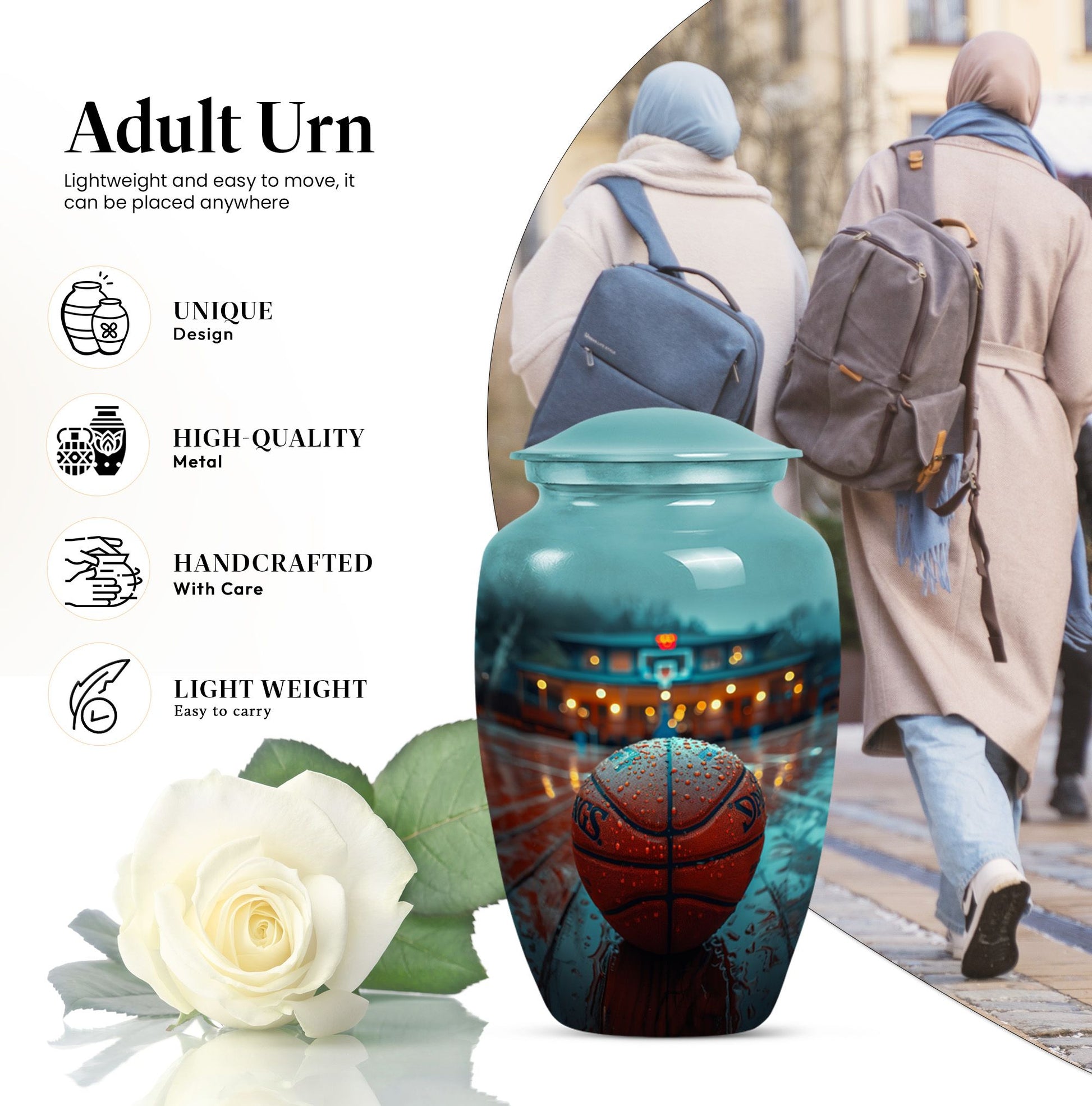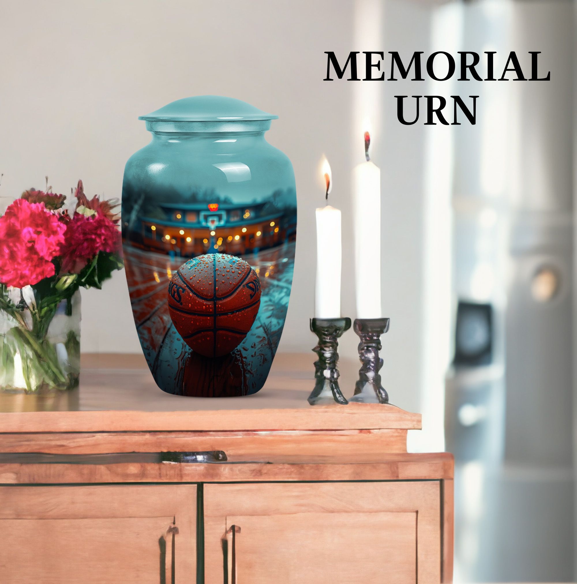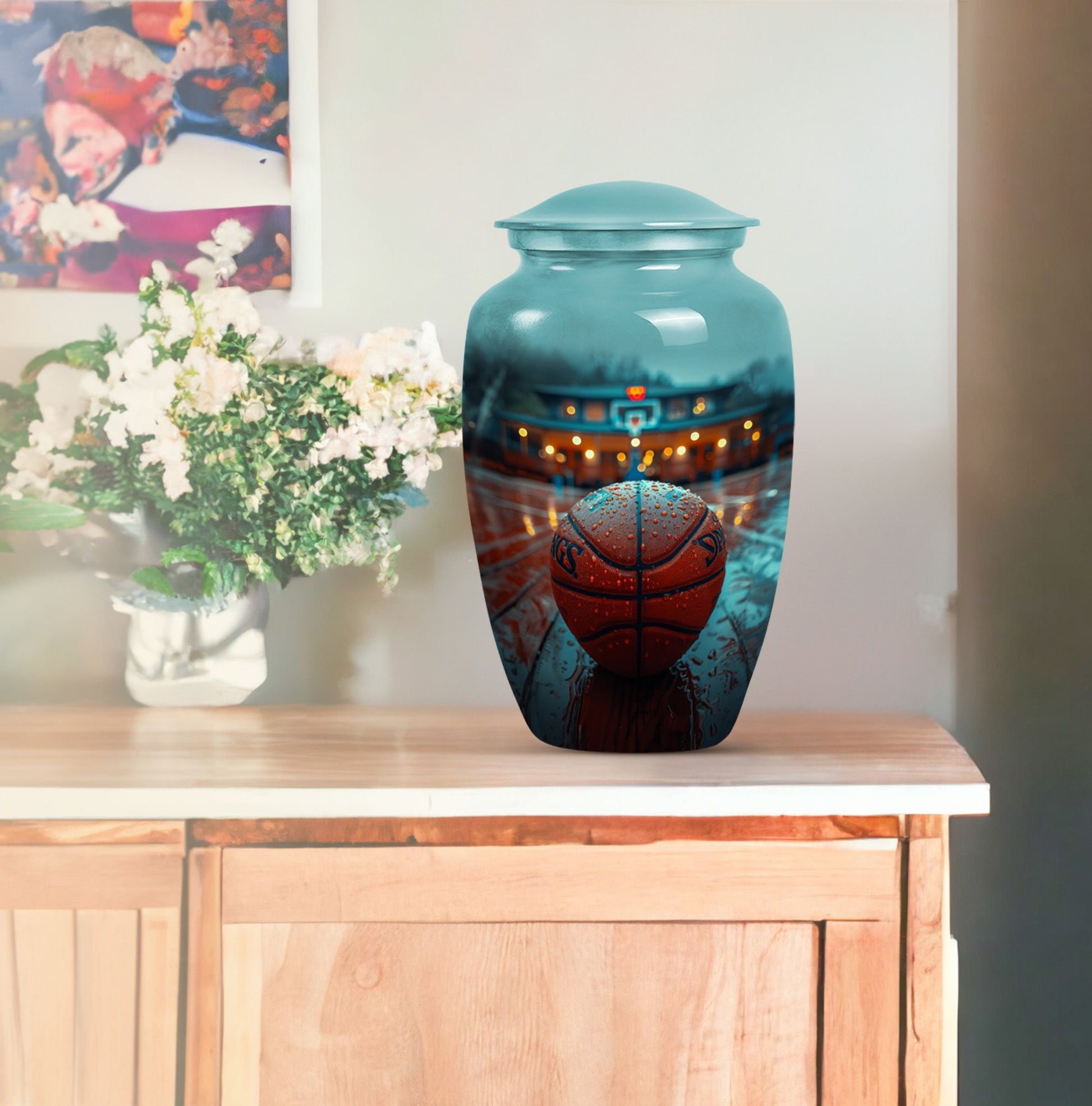This 10-inch, Aluminum 'Large Urn' themed with 'Gramophone' designed sensitively for the memorial purposes provides an elegant farewell to your loved one. The 'Classic Urn' weighing 3.3 pounds brings the cherished memories to life, offering a comforting presence and evoking the happy times spent with the departed soul. The urn has an ample capacity of 200 cubic inches, sufficiently accommodating adult ashes in general. This funeral urn makes customization possible by allowing engraved names, making it a personal and one-of-a-kind tribute. The package comes with a delightful bonus in the form of a velvet pouch – a stylish and secure place for containing the ashes. Be it the 'basketball urn' or 'memorial ash urns', each piece promises uncompromised quality and care. Our 'funeral urn for men’s ashes', is meticulously crafted to celebrate the life and personality of a special person, making it an incomparable choice among 'elegant urns' or 'memorial urns'.