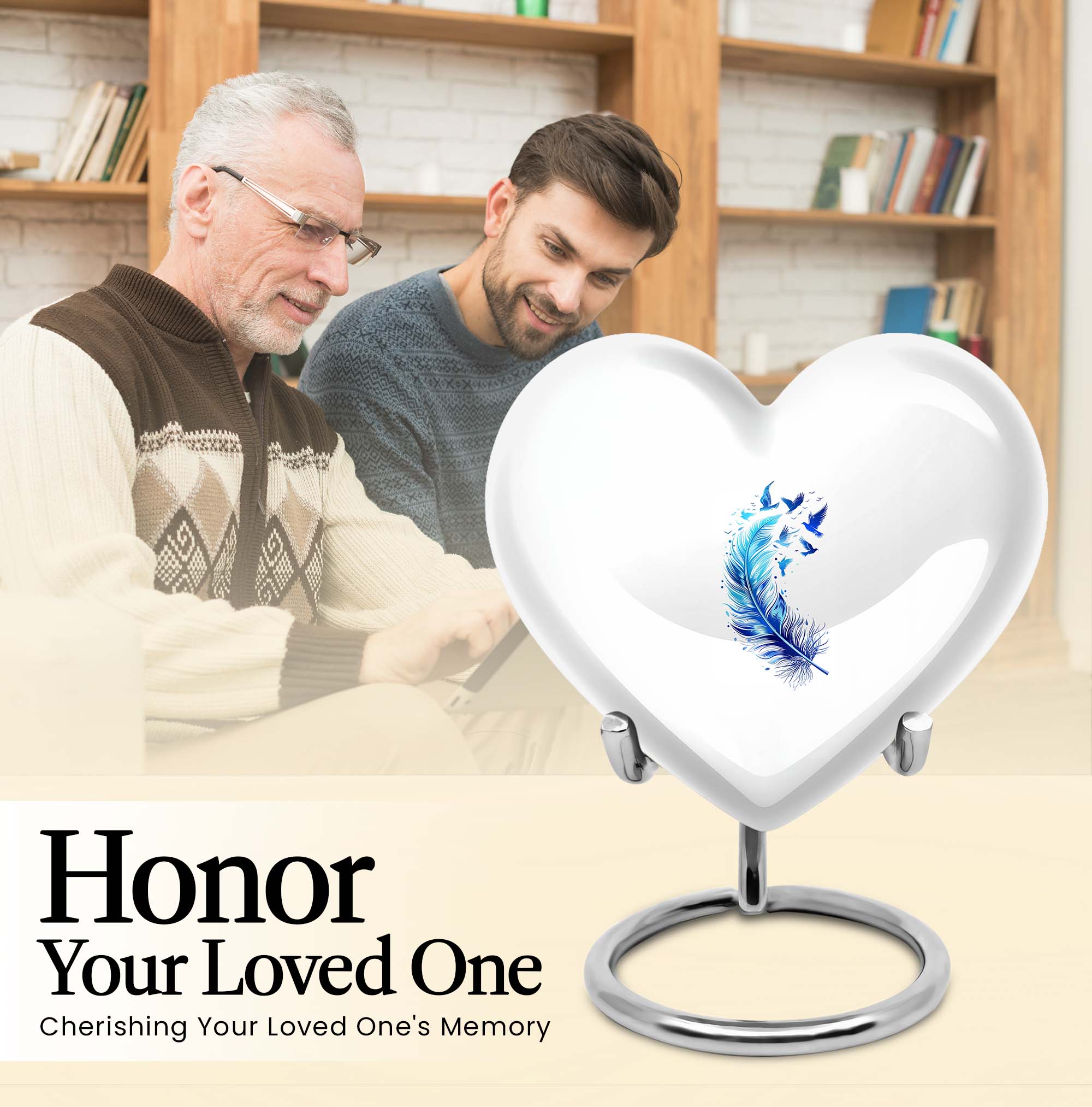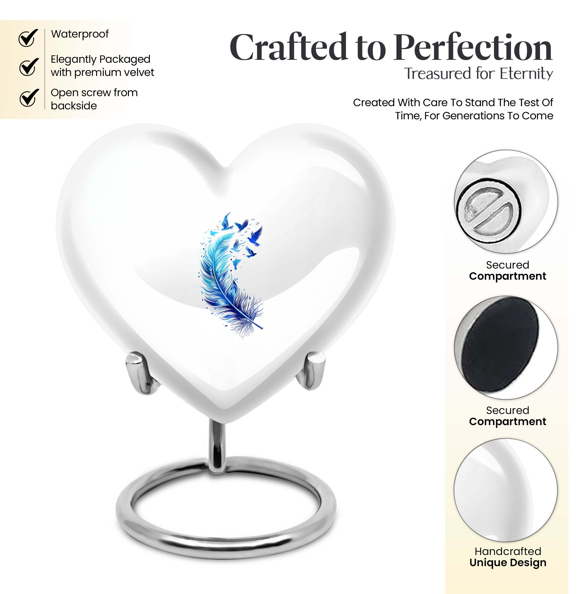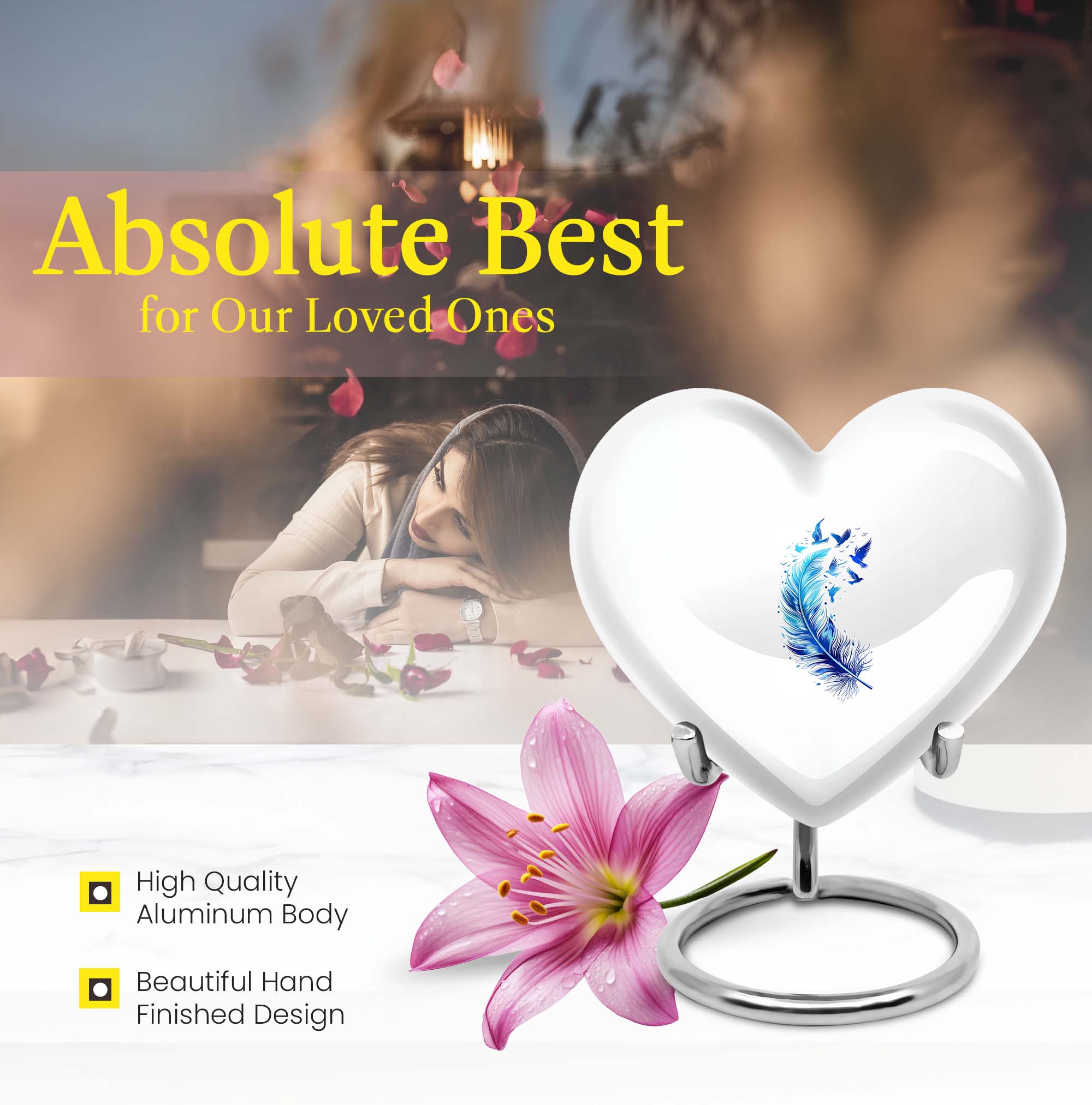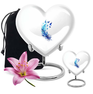 This exquisite feather urn brings a soft, comforting touch to your memorial ceremonies. Our large 10-inch 'Purple Meadow' urn, made of premium aluminium, stands out with its uniquely engaging design and a tasteful 'Heart Urn' motif. With a generous capacity of 200 cubic inches, it's fitting for the containment of ashes from adult females as well as adult males and comes with a velvet pouch for added care. Each urn weighs about 3.3 pounds and is aimed at becoming a valuable and enduring part of your cherished memories. What's more, you can personalize these burial urns by engraving names on them. Enhance your connection with those departed and continue celebrating their love and life. The words 'feather urn,' 'burial urns for adult females,' 'memorial urns,' 'burial funeral urns for adult women,' 'cremation urn funeral urn adult ash,' and 'metal urn for ashes adult male' are not just search keywords but the essence of this precious memorial gift. Expanding the warmth they once spread, this urn keeps calling alive with love.