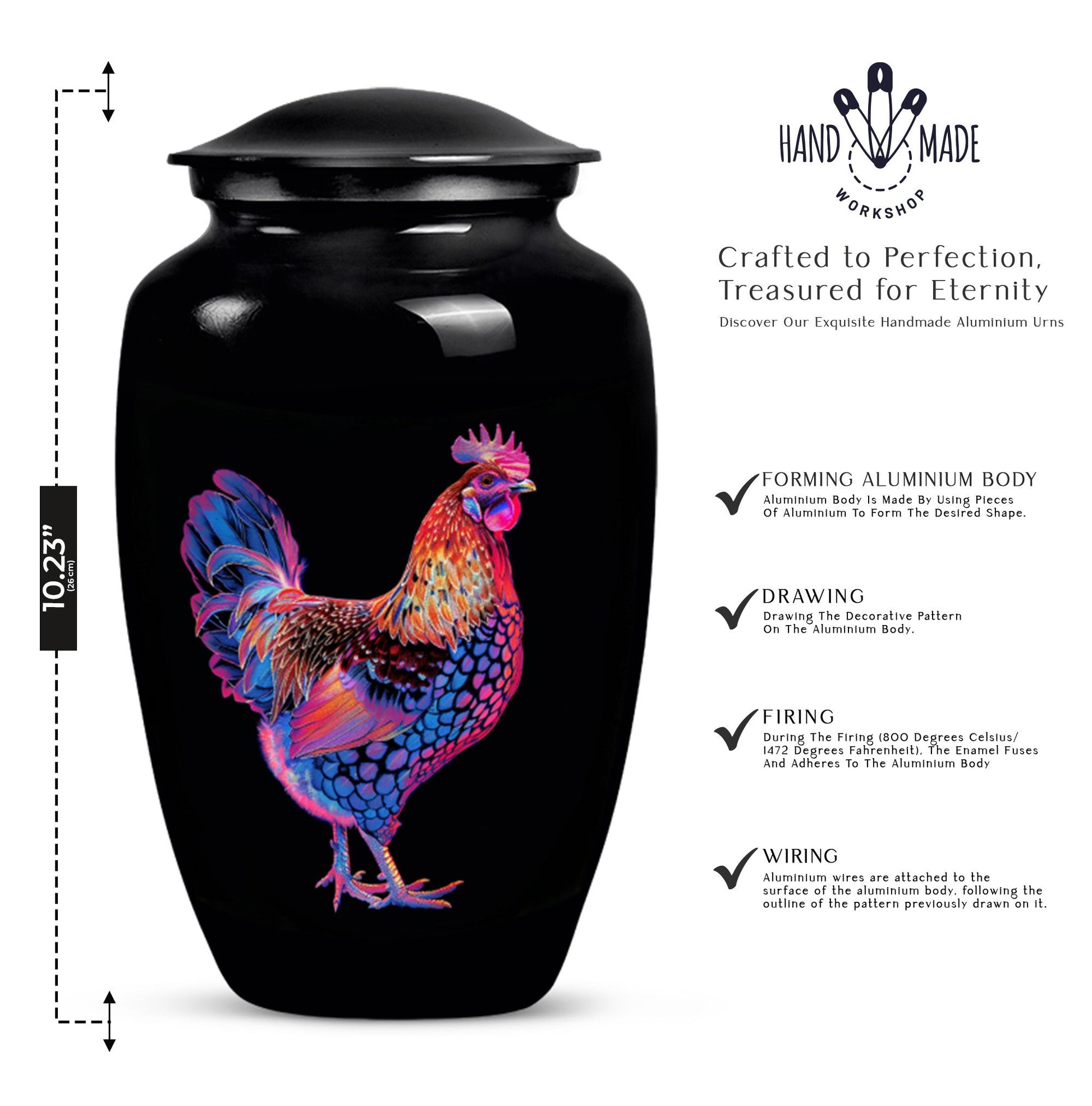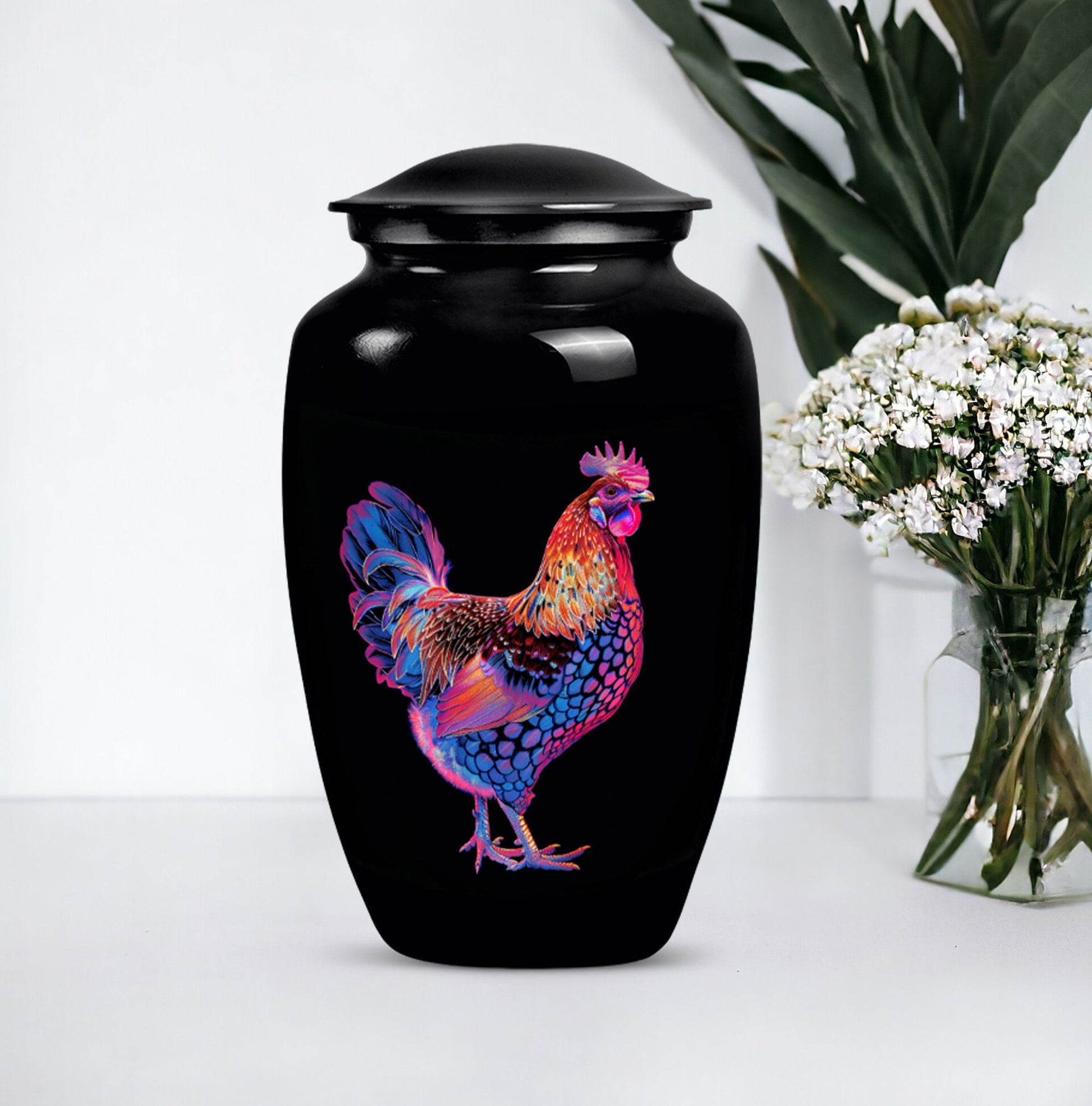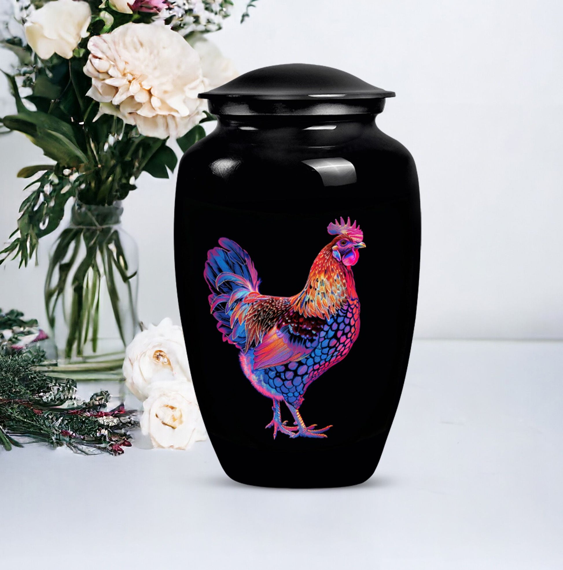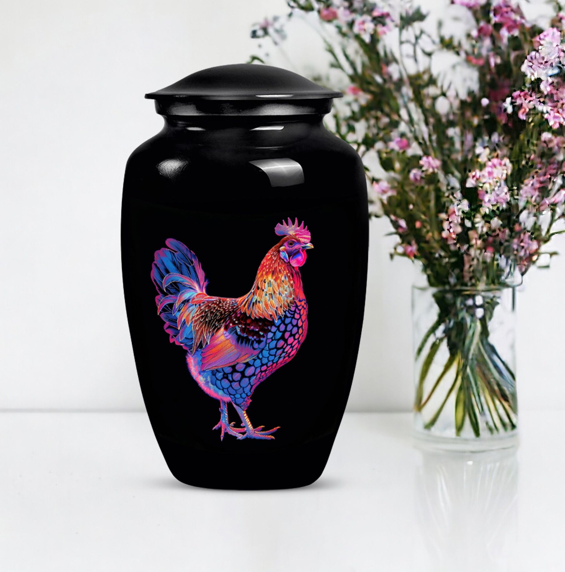 Honor your dearly departed with this elegant 10-inch 'Classic Urn', a product of excellent artisanship. Crafted from high-grade Aluminium, this large urn weighs a sturdy 3.3 pounds and radiates a solemn charm with its floral theme. It can securely hold up to 200 cubic inches of ashes, making it suitable as a chicken urn or as memorial adult urns for human ashes. Personalization options are available for a more heartfelt touch, allowing engraved names for a truly personal memorial. Each urn is supplied with a velvet pouch to securely contain the precious remains. The understated elegance of this piece allows it to fit seamlessly into various settings, whether it is for burial in the ground or remembrance at home. Search phrases commonly related to this product include 'cremation urns', 'adult urns', and 'memorial urns for human ashes women'. Please note that despite its ornate appearance, this urn possesses a profound simplicity, making it an appealing choice for individuals seeking both beauty and quiet dignity in their memorial ceremony supplies.