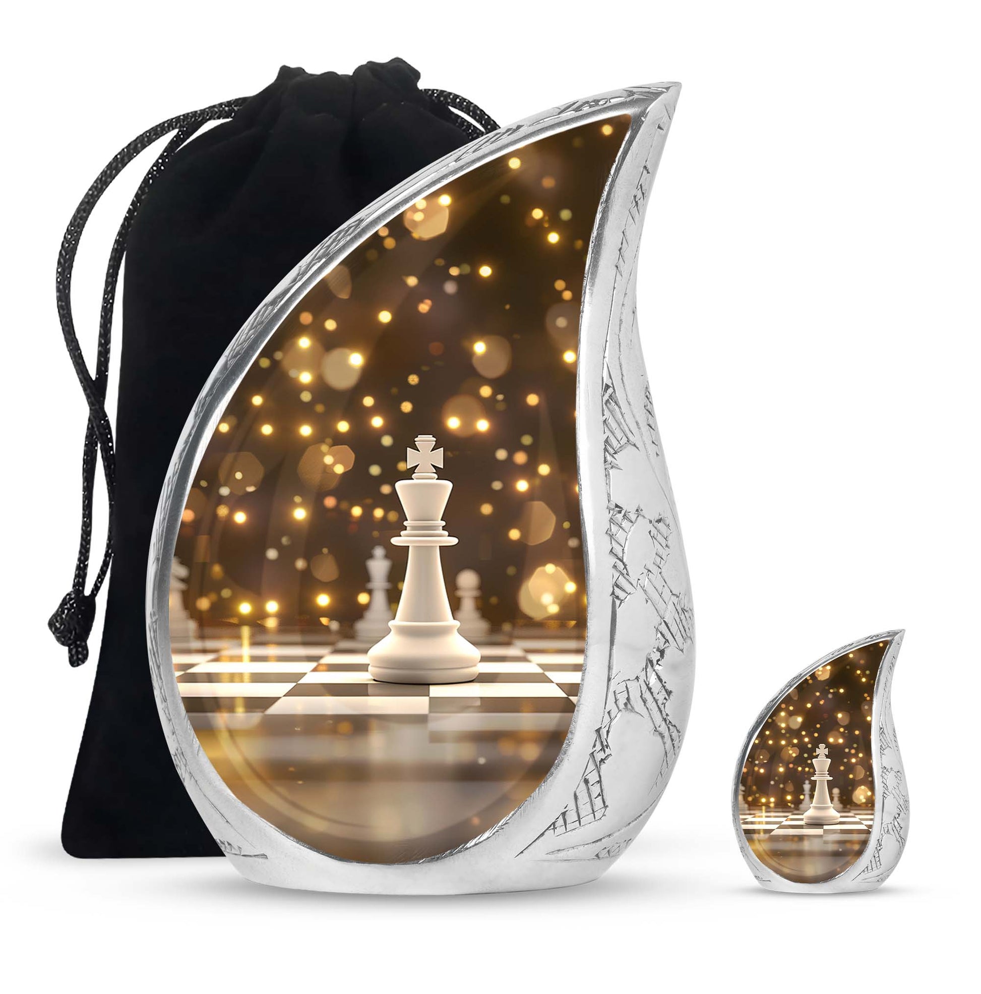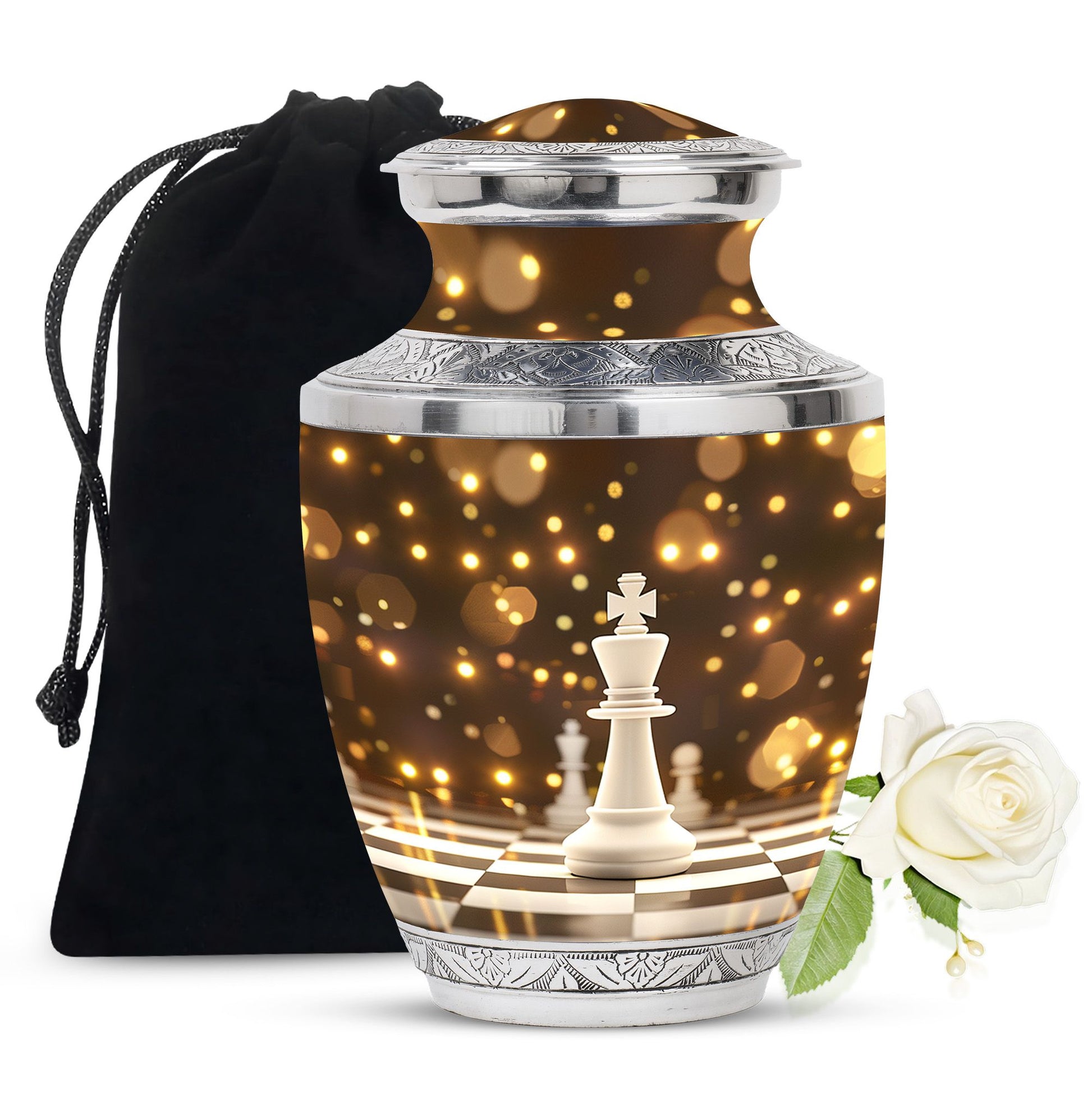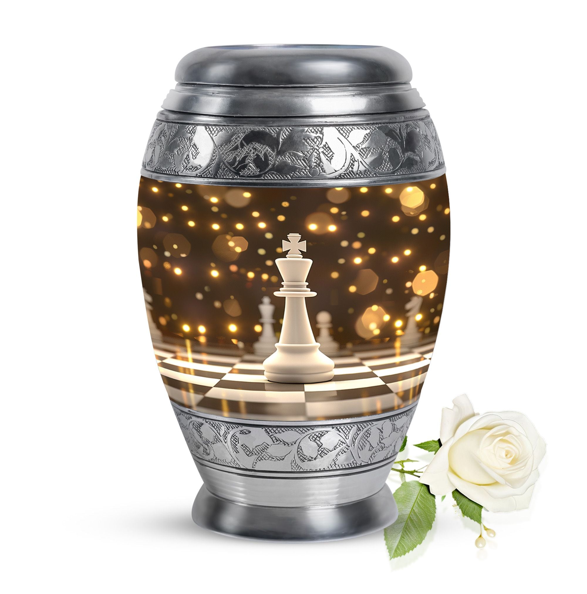 Celebrate a life of wisdom with the **Chess Urn for Human Ashes Medium Size**. Order today for a meaningful and lasting tribute.