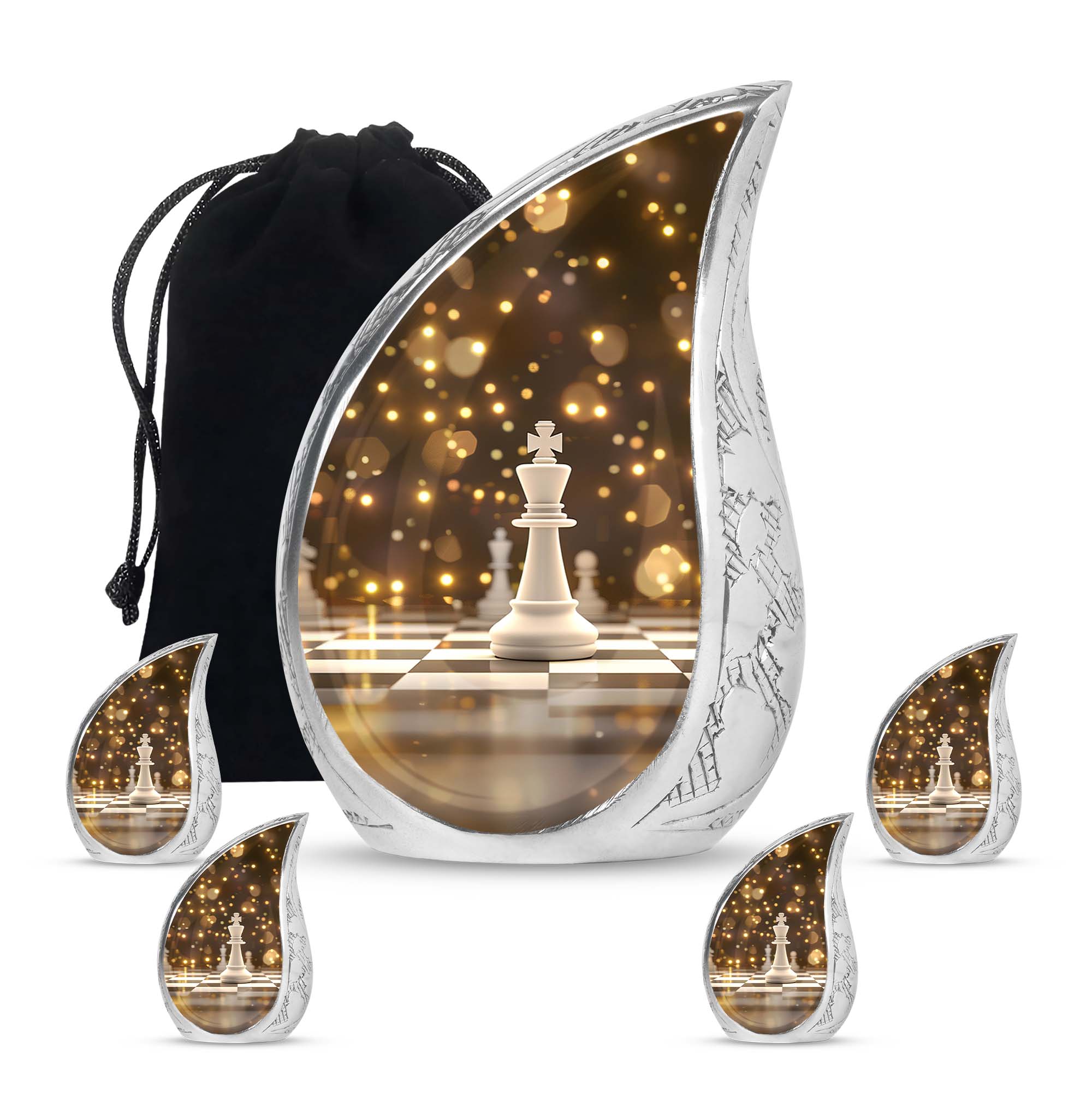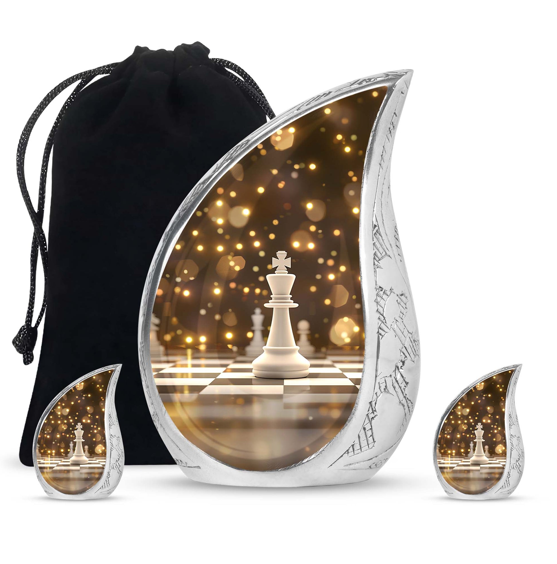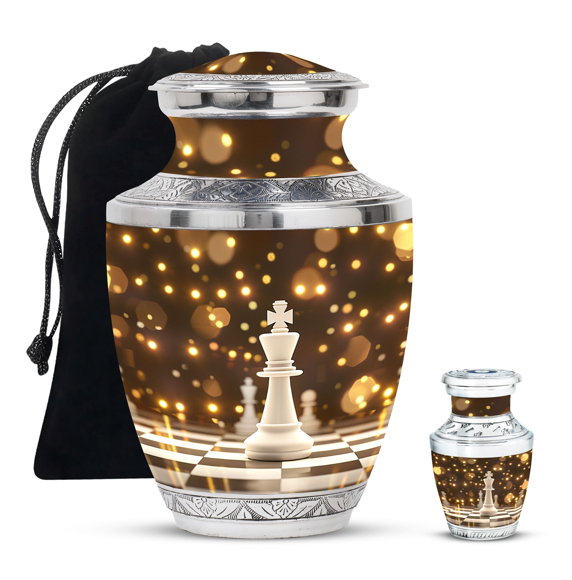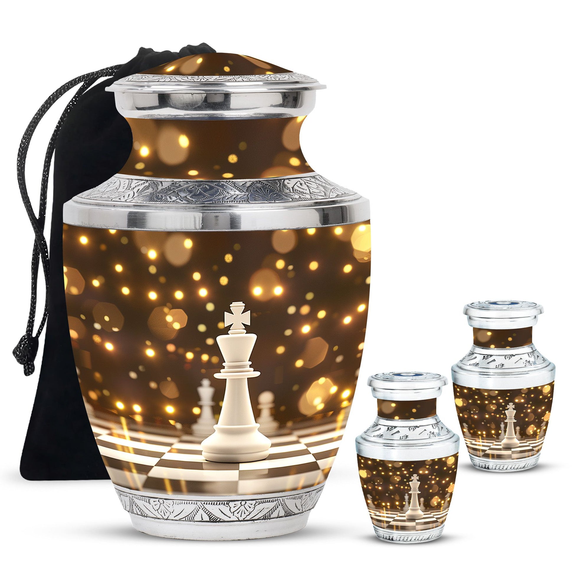Celebrate a life of wisdom with the **Chess Urn for Human Ashes Medium Size**. Order today for a meaningful and lasting tribute.
