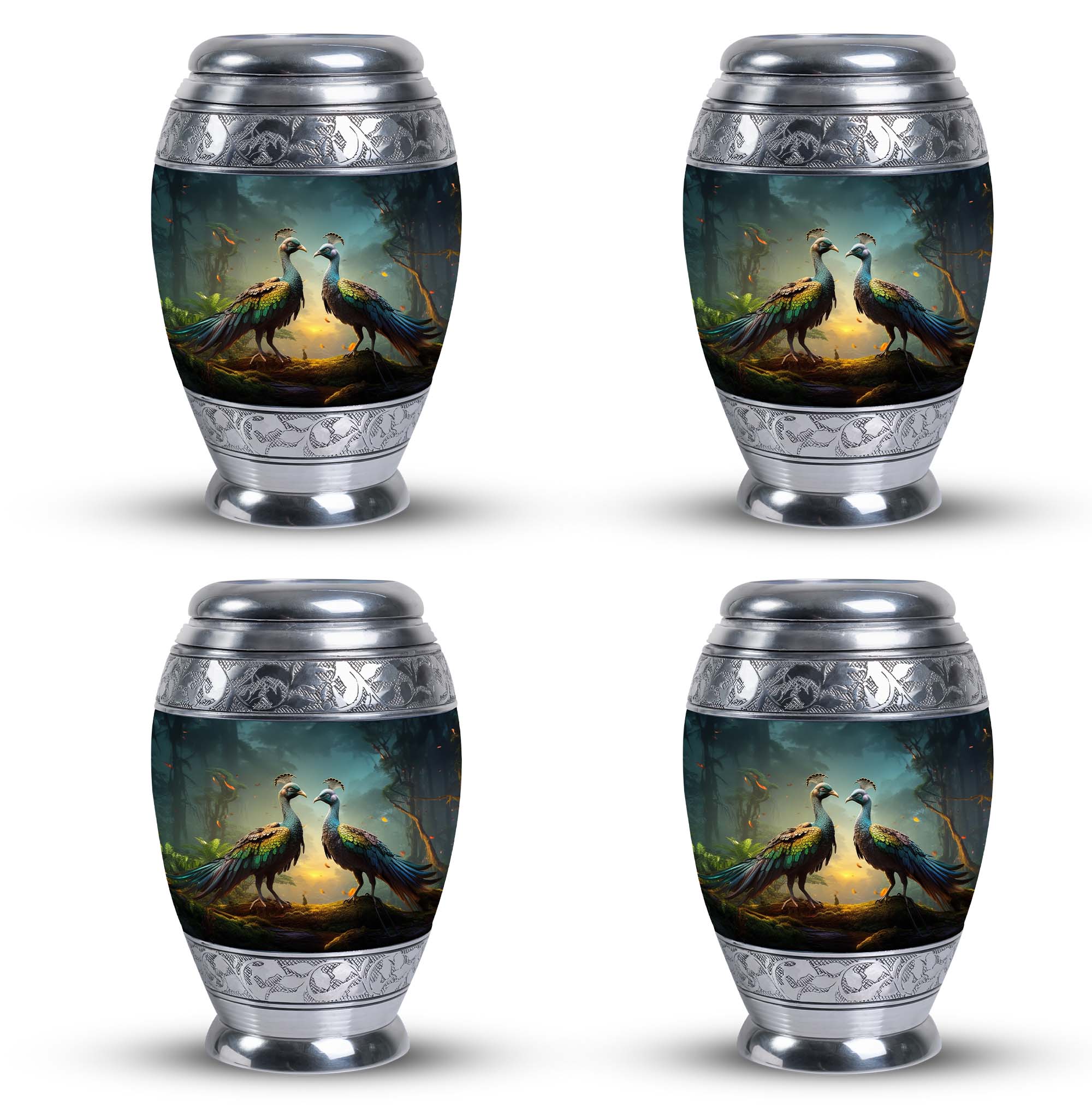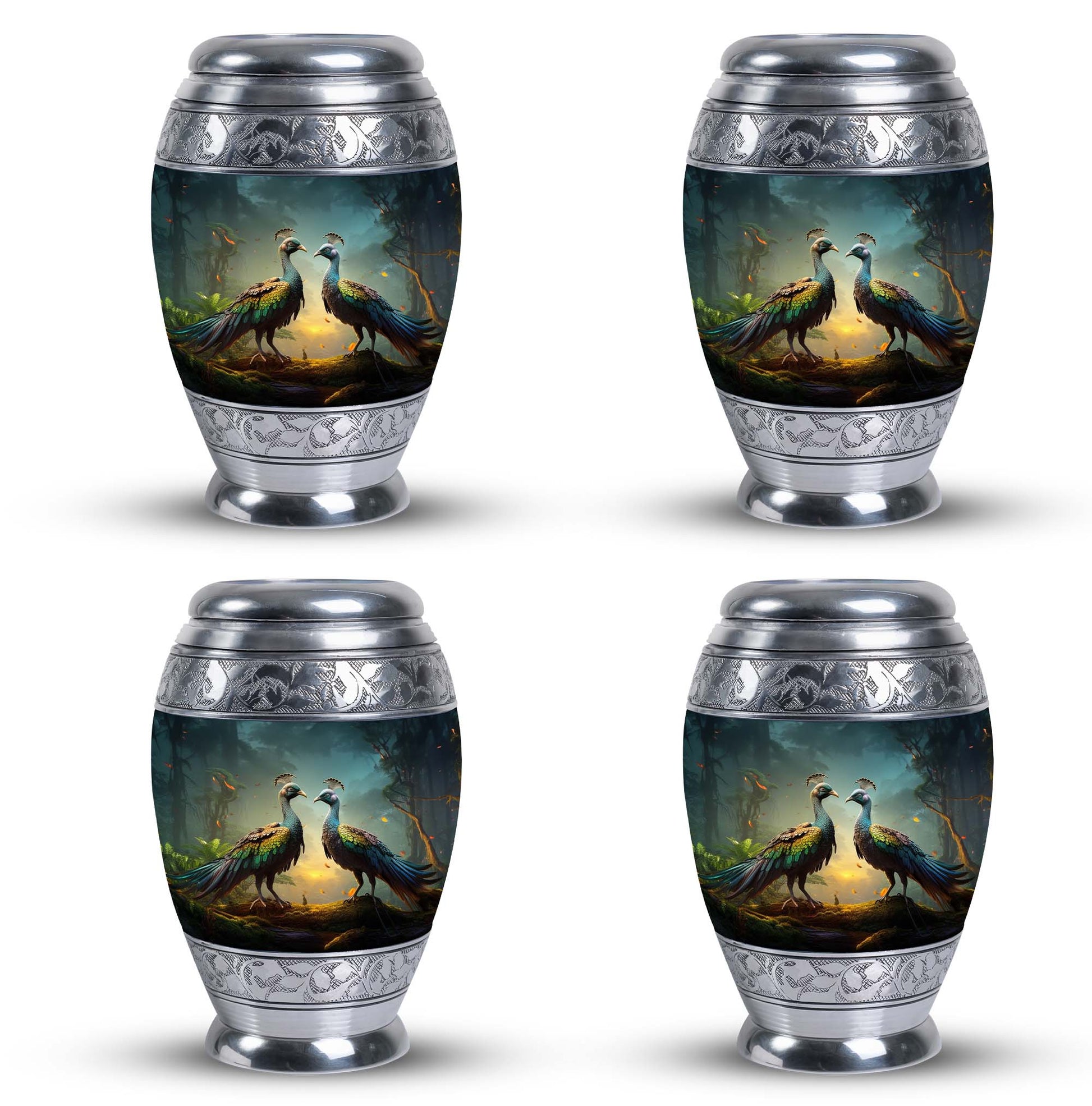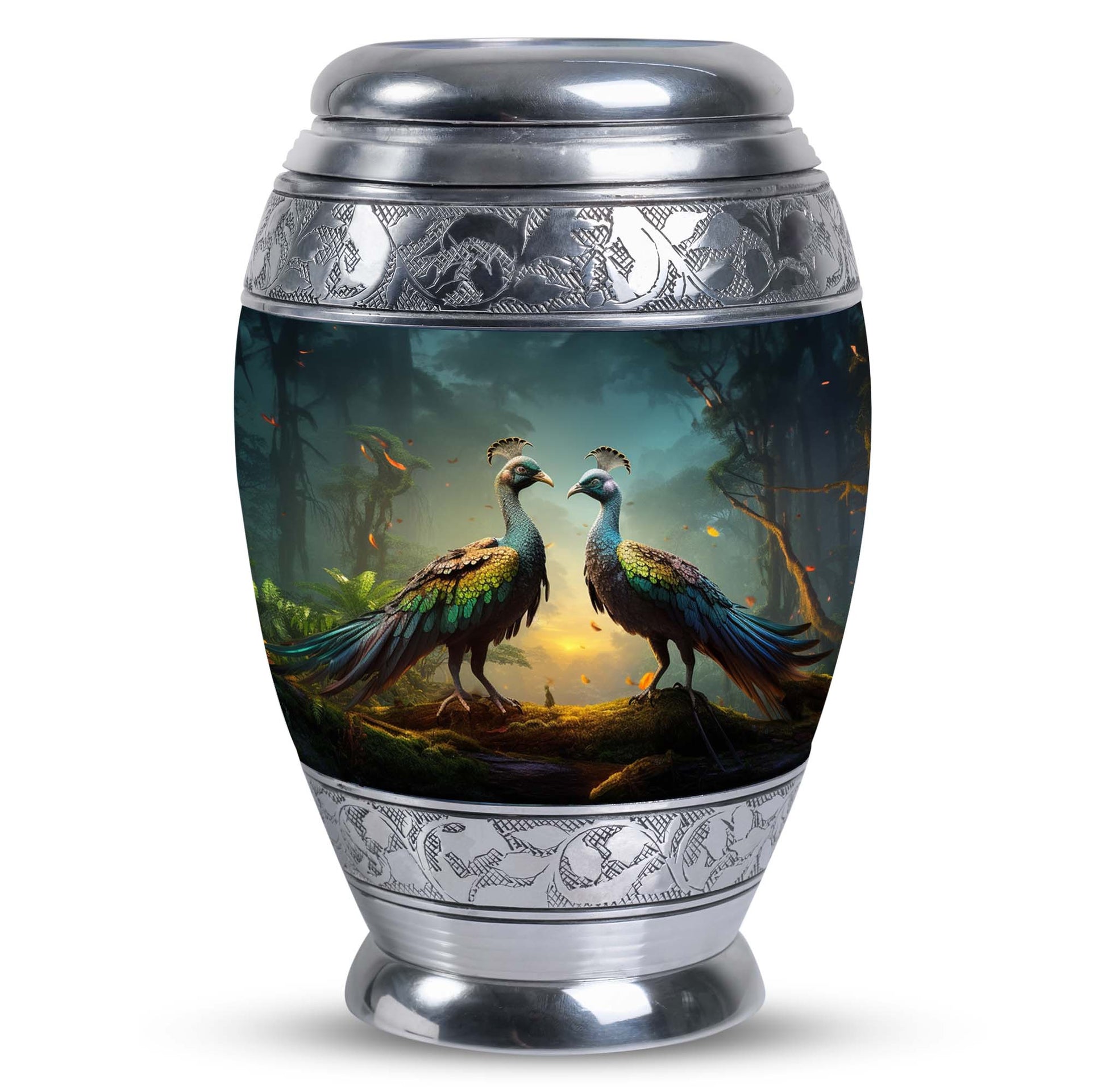 Introducing our resplendent Peacock Urns for Human Ashes, their exquisite design is an ideal homage to your loved ones. Crafted with utmost precision and high-quality aluminium, these 3-inch keepsake urns are not only elegant but extremely durable. Hefting a manageable 3.3 pounds, they stand at an impressive height of 10 inches and can securely hold up to 200 cubic inches of ash, making them apt for most adults. This classic urn series also offers a personal touch. Customize it by engraving names, bestowed with sentiments and eternal love on these unique Large Urns. Each urn comes complete with a special velvet pouch for containment of ashes, expressing a delicate and respectful approach to the task at hand. Embrace the essence of your beloved with our exceptional range of 'memorial urns' or gift a personal token of remembrance in the form of Urns for Men's Ashes. With the Peacock urn, let each ornate feather represent cherished memories, making your farewell as unique as the life lived. Note: Kindly avoid the usage of abrasive cleaning products to ensure longevity.