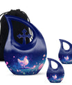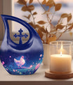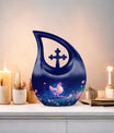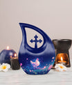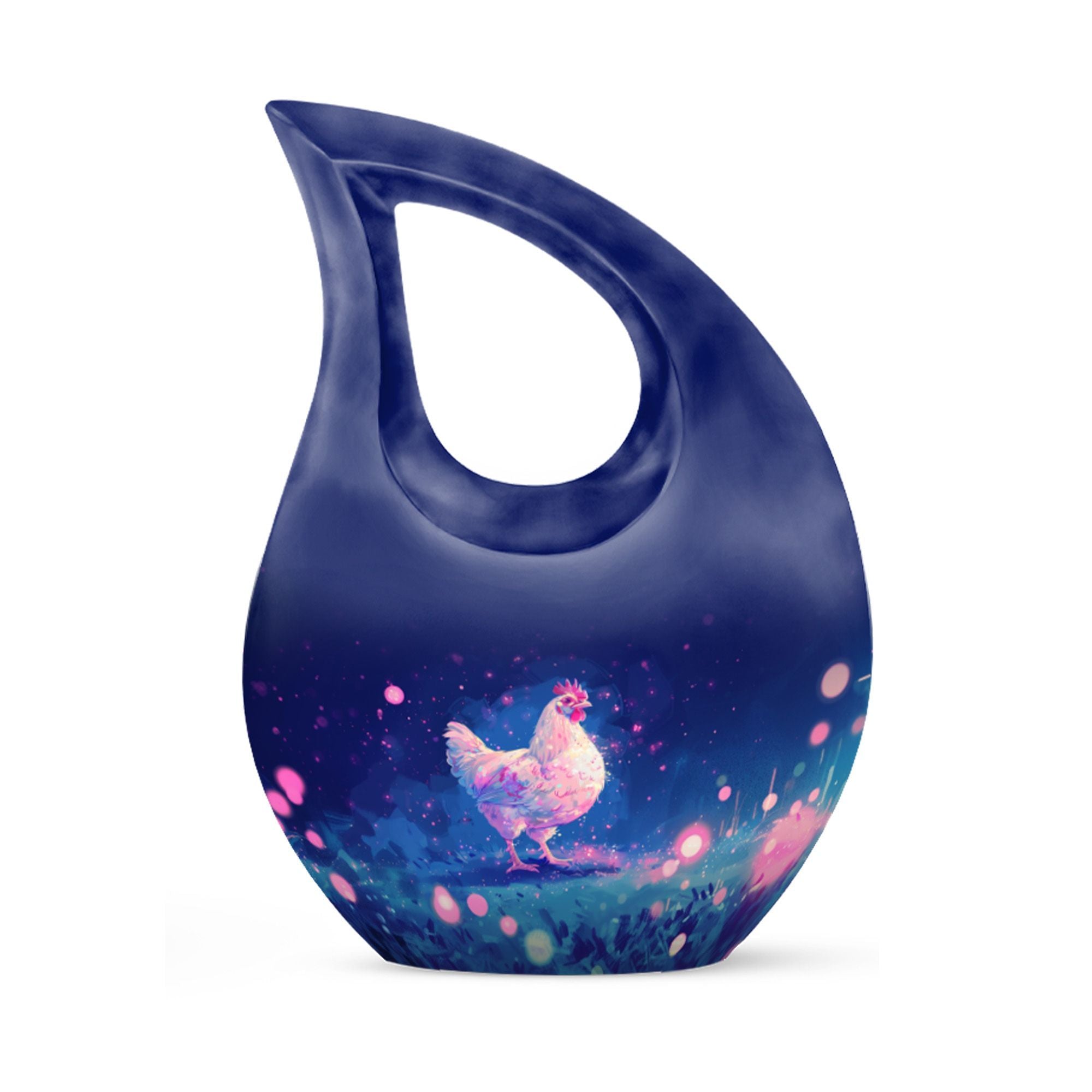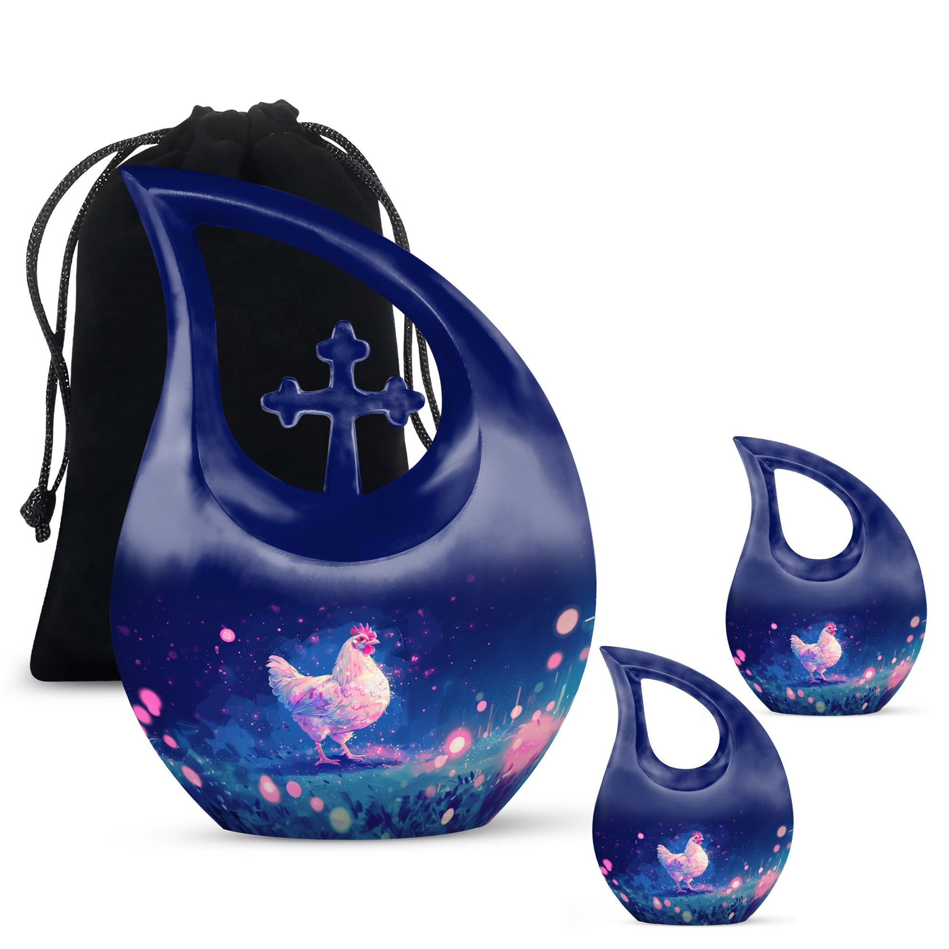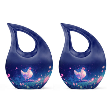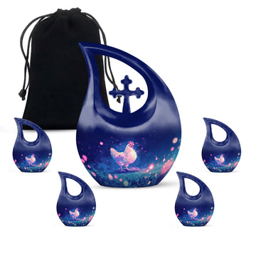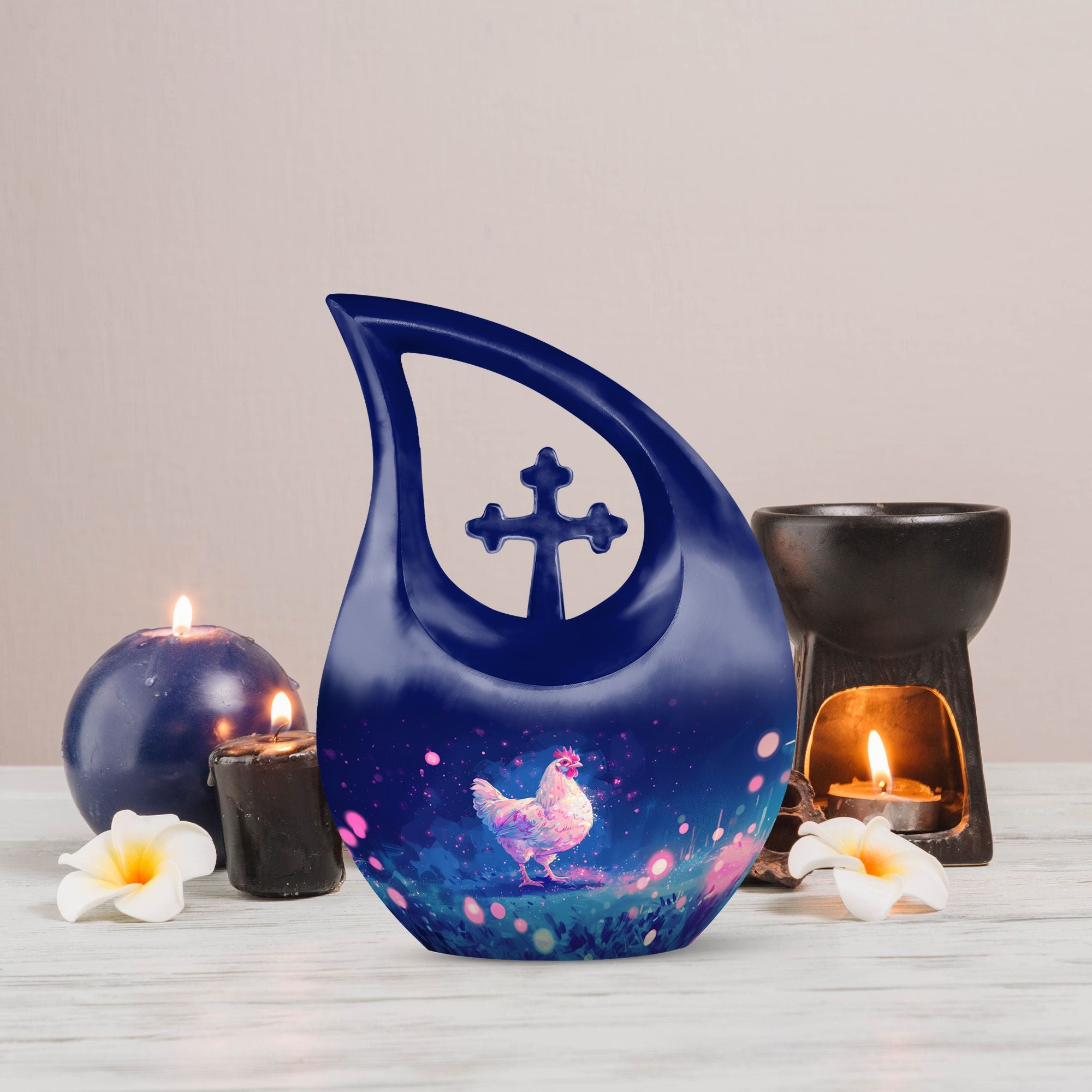 Presenting the Magical Chicken Cosmos Urn, a tranquil piece meant to symbolize life’s precious journey, designed specifically for those seeking unique and affordable memorial urns. Standing gracefully with a size of 10 inches, this large urn carries an emblematic Cross Drop design, reflecting spiritual peace and serenity. Cast from sturdy aluminum, it weighs 3.3 pounds and gives the assurance of enduring time, safeguarding memories with grace. The urn provides a substantial capacity of 200 cubic inches. Accompanied by a delicate velvet pouch, it enables worry-free containment of your loved ones' ashes. Brimming with personal touch, you can customize it with engraved names, bringing an emotional closeness with your departed. The Magical Chicken Cosmos theme adds an unexpected touch to it, promising it as one of the cool urns available out there. Also serves as a companion urn, confirming its position among the best high-quality urns for human ashes. Stay assured, your search for memorial urns for human ashes ends here.
