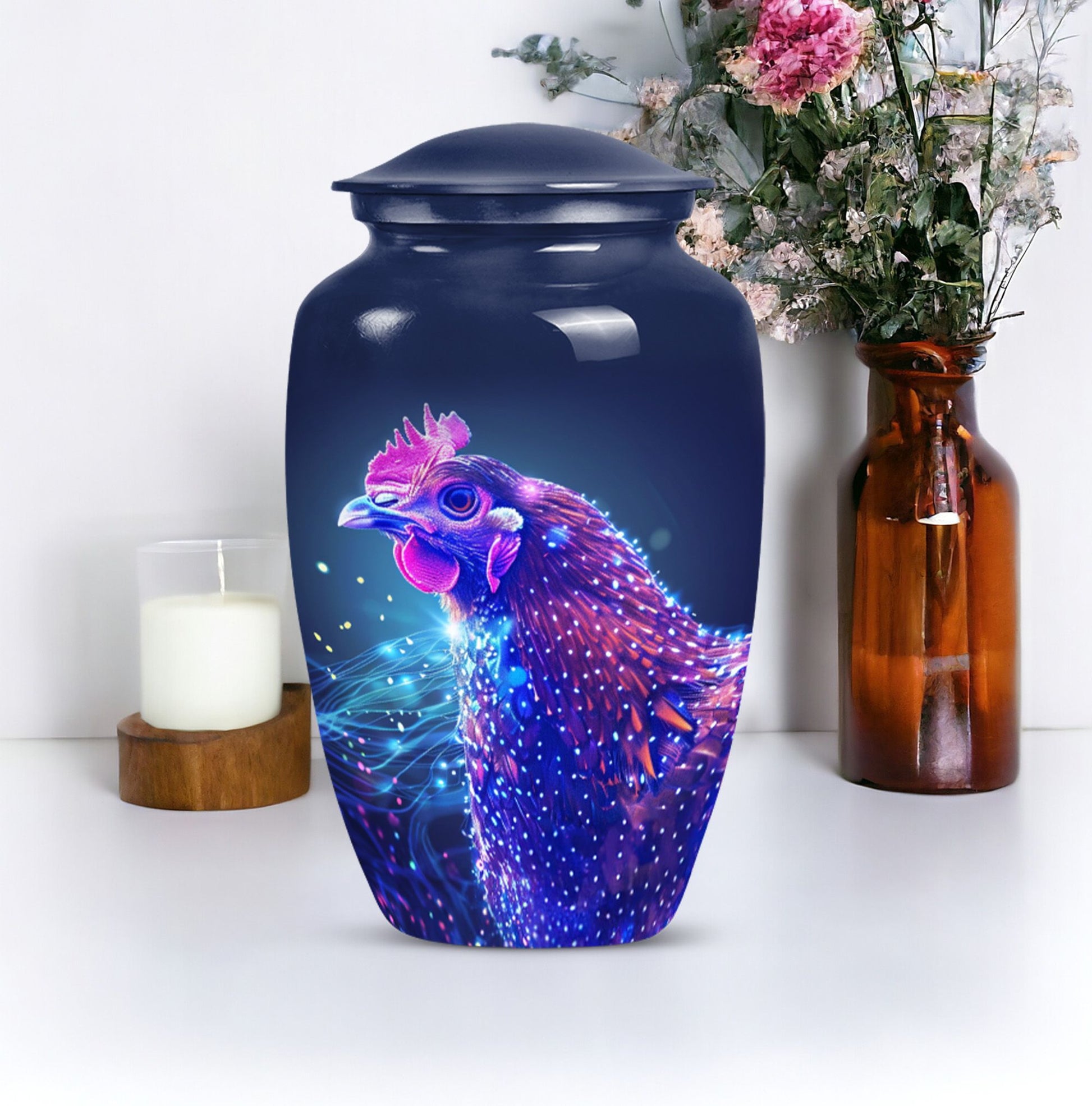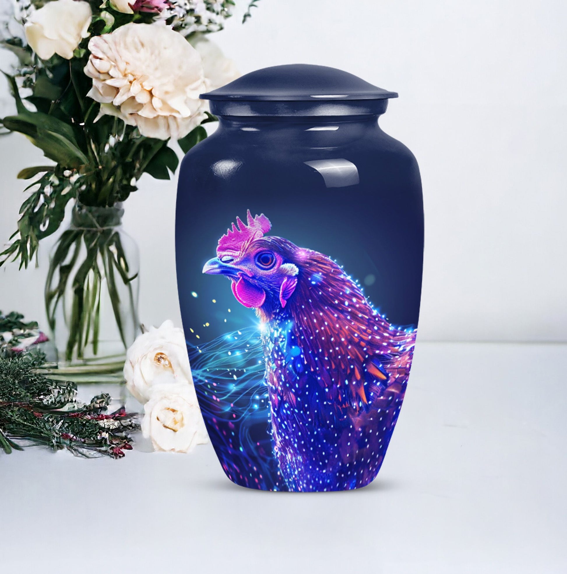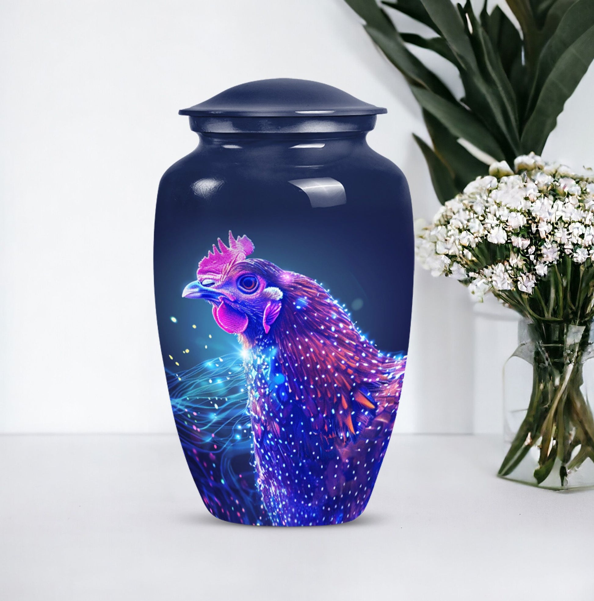 Honor your loved ones with this splendid 10-inch Classic Urn. Its exquisite design theme is adorned with flowers, symbolizing beauty, purity, and rebirth. Handcrafted from sturdy aluminium, this large urn has the capacity to hold up to 200 cubic inches, making it suitable as a funeral large or adult urn. Despite its considerable size, it only weighs 3.3 pounds, allowing for effortless handling and positioning. Additionally, the urn comes with a velvet pouch providing intimate containment of the precious human ashes. This carefully crafted chicken urn allows for personal customization, enabling you to etch engraved names as a meaningful way to remember the loved ones. It serves aptly as memorial ceremony supplies for adults and seniors intending to preserve the ashes of their dearly departed. Carefully thought out terms include cremation urns for human ashes men, burial urns for human ashes adult, and cremation urns for adults making it easily identifiable during search queries.