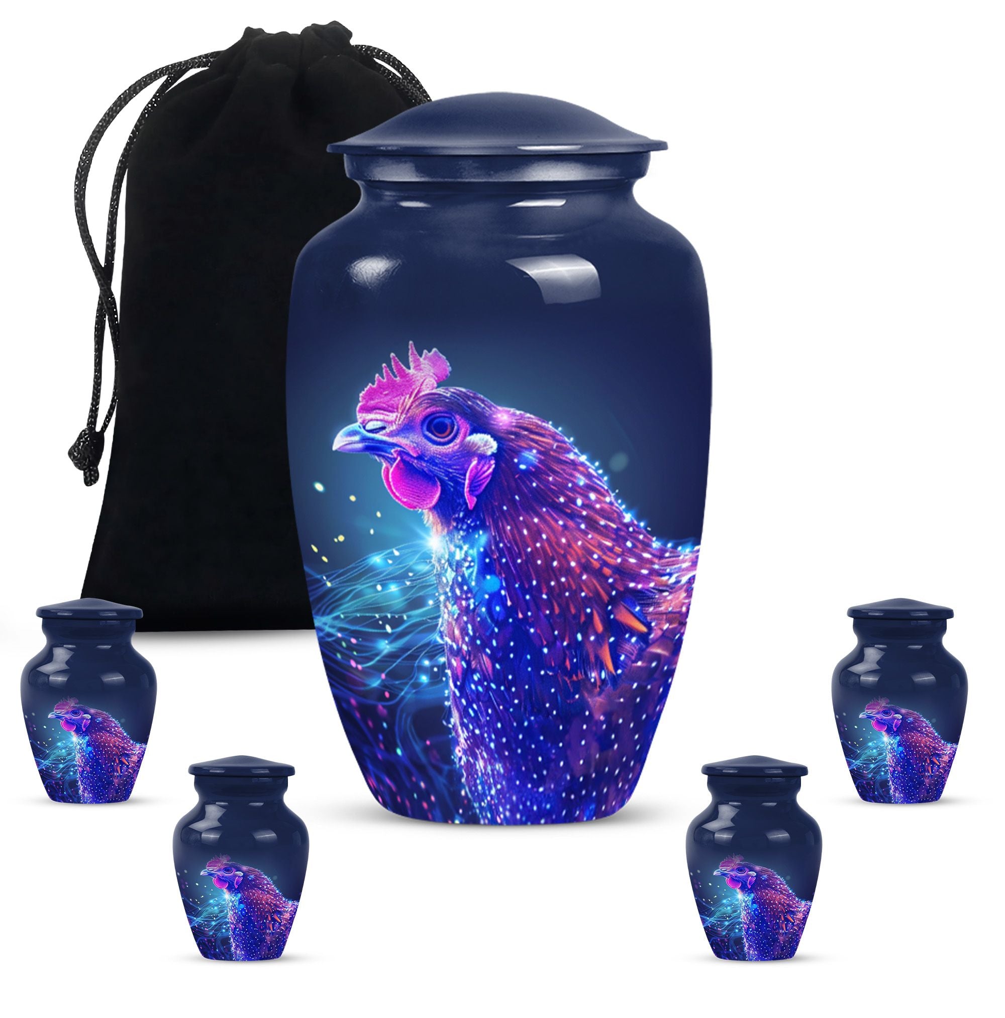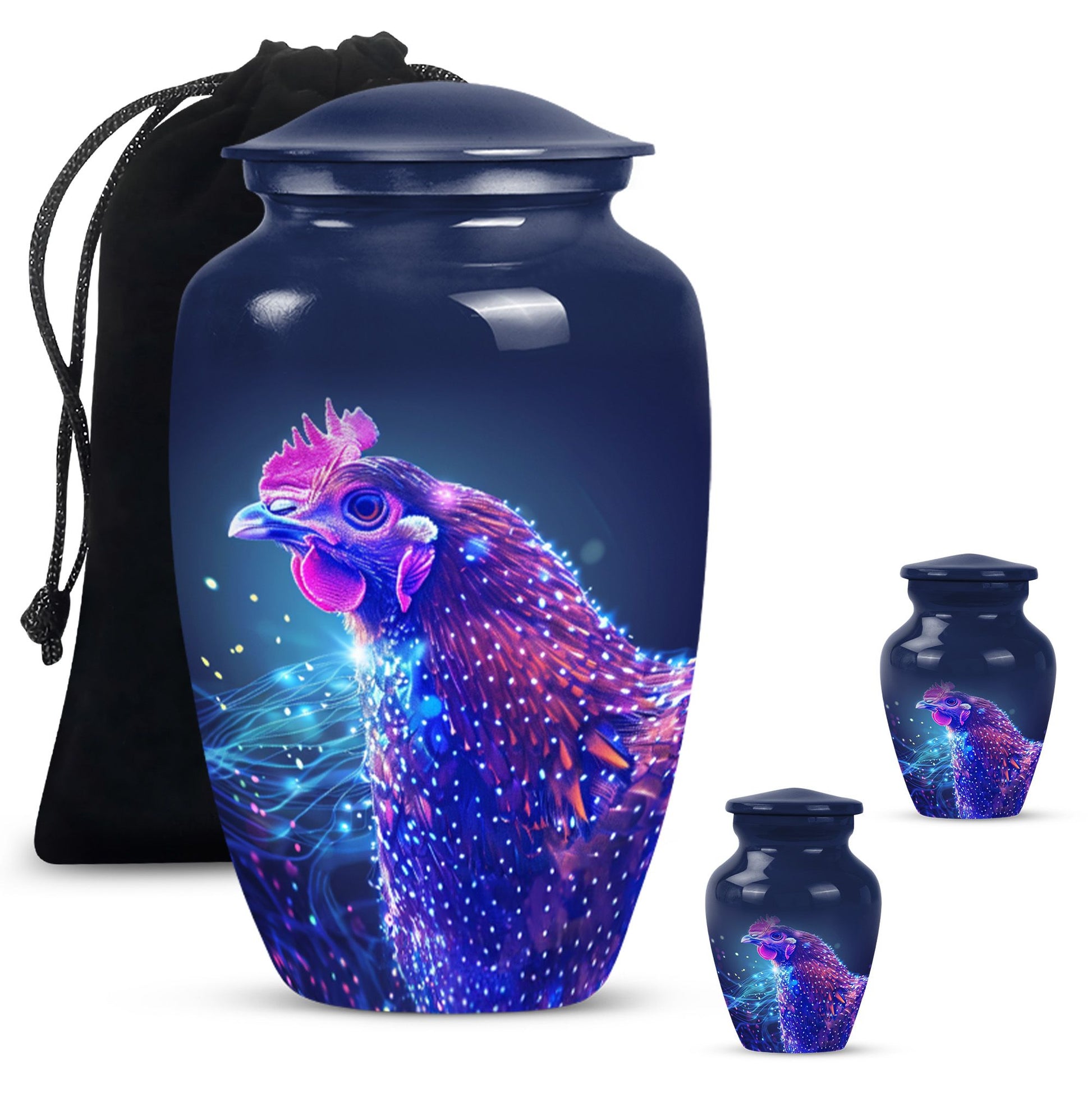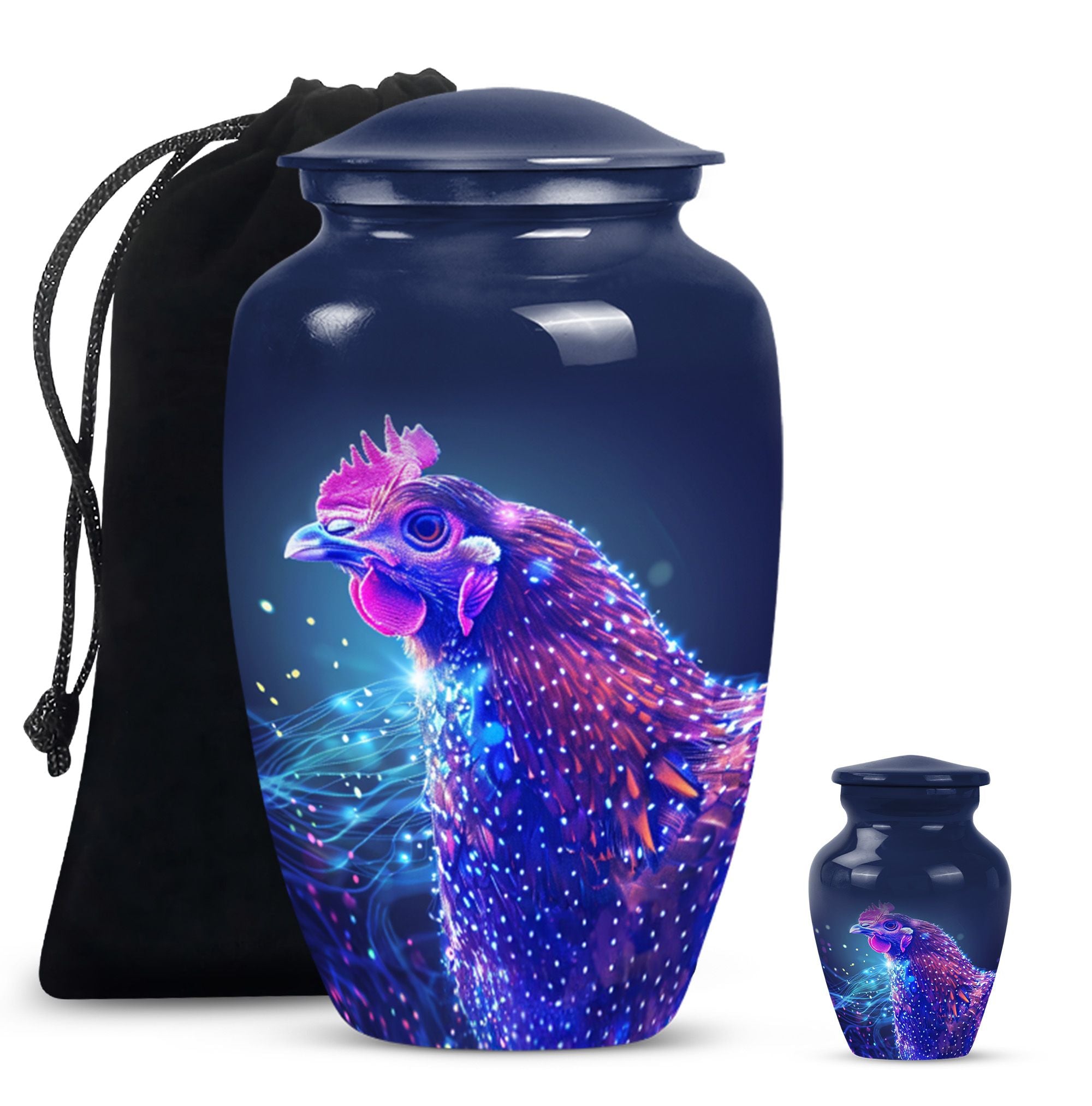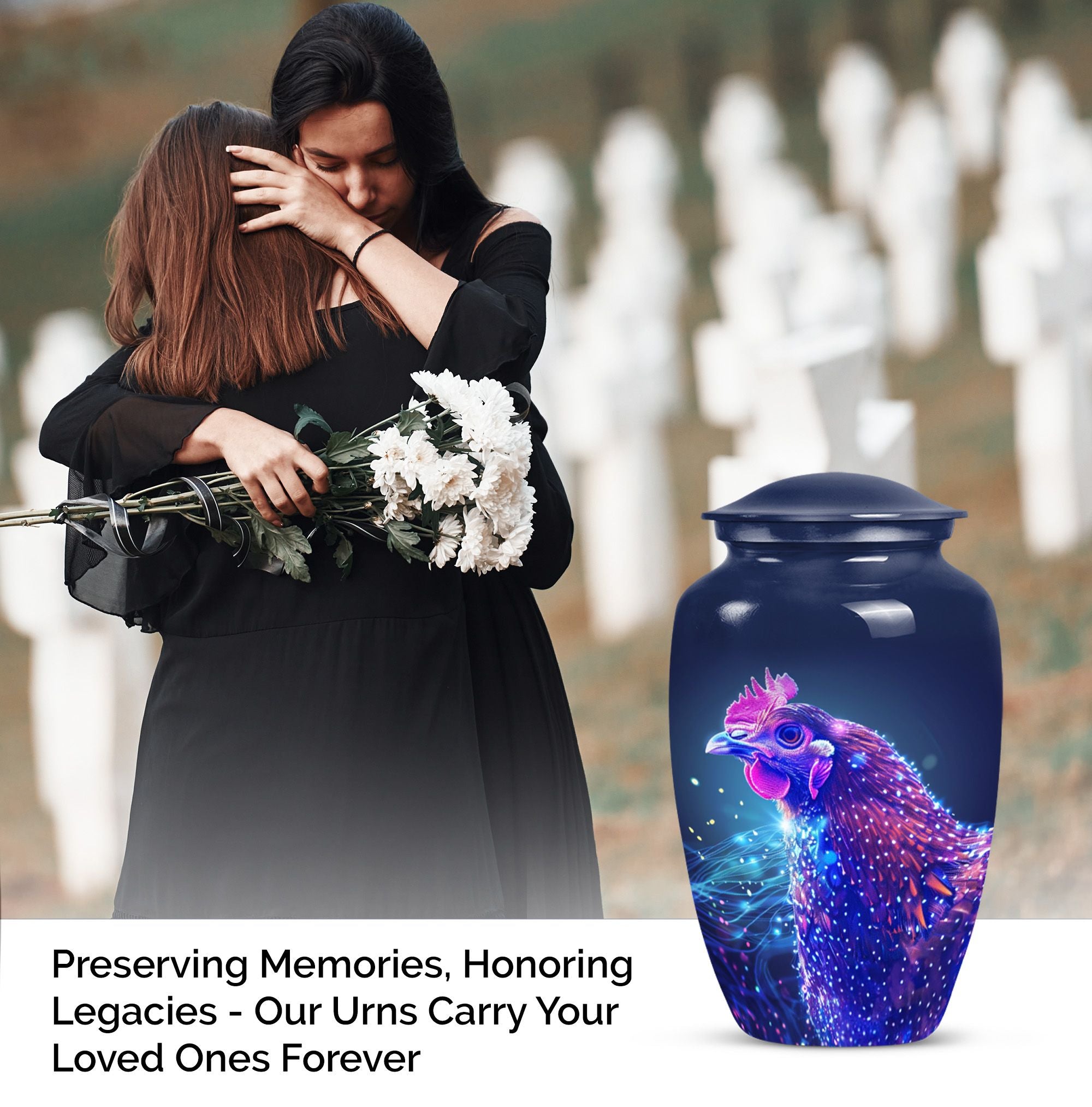 Honor your loved ones with this splendid 10-inch Classic Urn. Its exquisite design theme is adorned with flowers, symbolizing beauty, purity, and rebirth. Handcrafted from sturdy aluminium, this large urn has the capacity to hold up to 200 cubic inches, making it suitable as a funeral large or adult urn. Despite its considerable size, it only weighs 3.3 pounds, allowing for effortless handling and positioning. Additionally, the urn comes with a velvet pouch providing intimate containment of the precious human ashes. This carefully crafted chicken urn allows for personal customization, enabling you to etch engraved names as a meaningful way to remember the loved ones. It serves aptly as memorial ceremony supplies for adults and seniors intending to preserve the ashes of their dearly departed. Carefully thought out terms include cremation urns for human ashes men, burial urns for human ashes adult, and cremation urns for adults making it easily identifiable during search queries.
