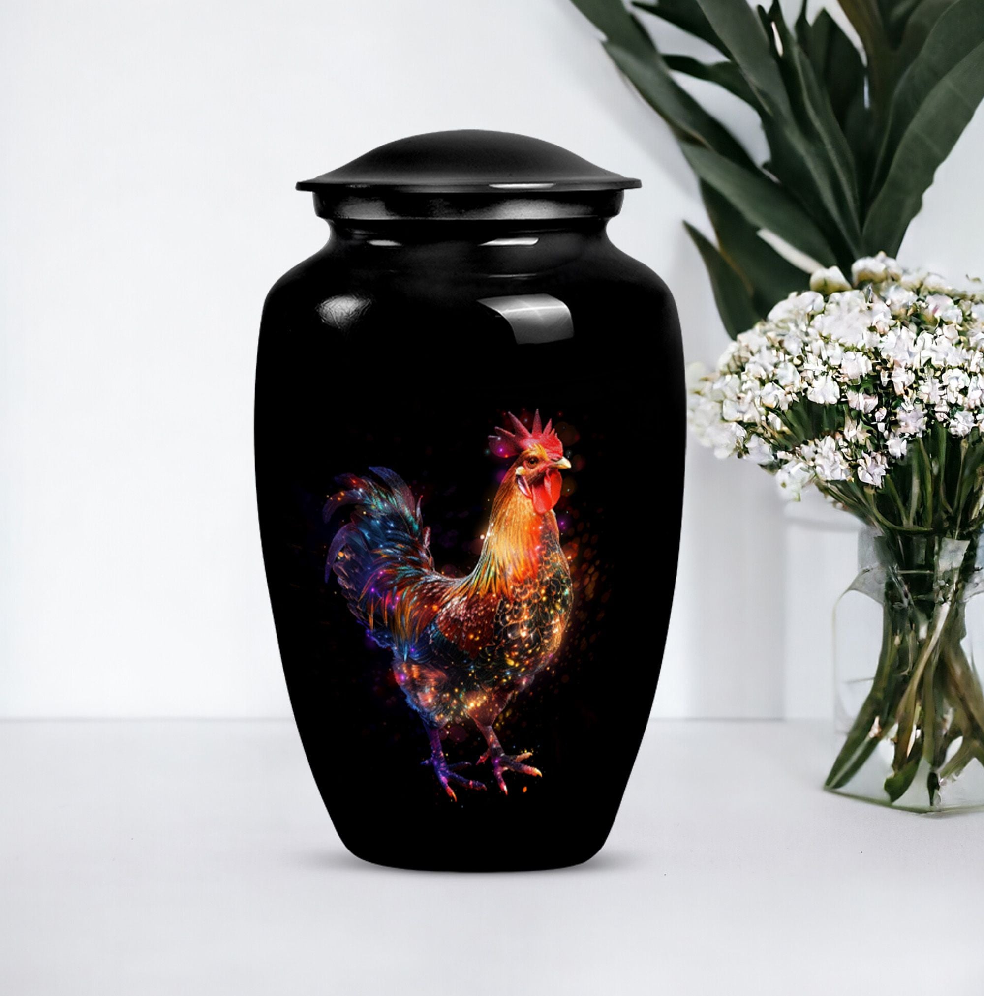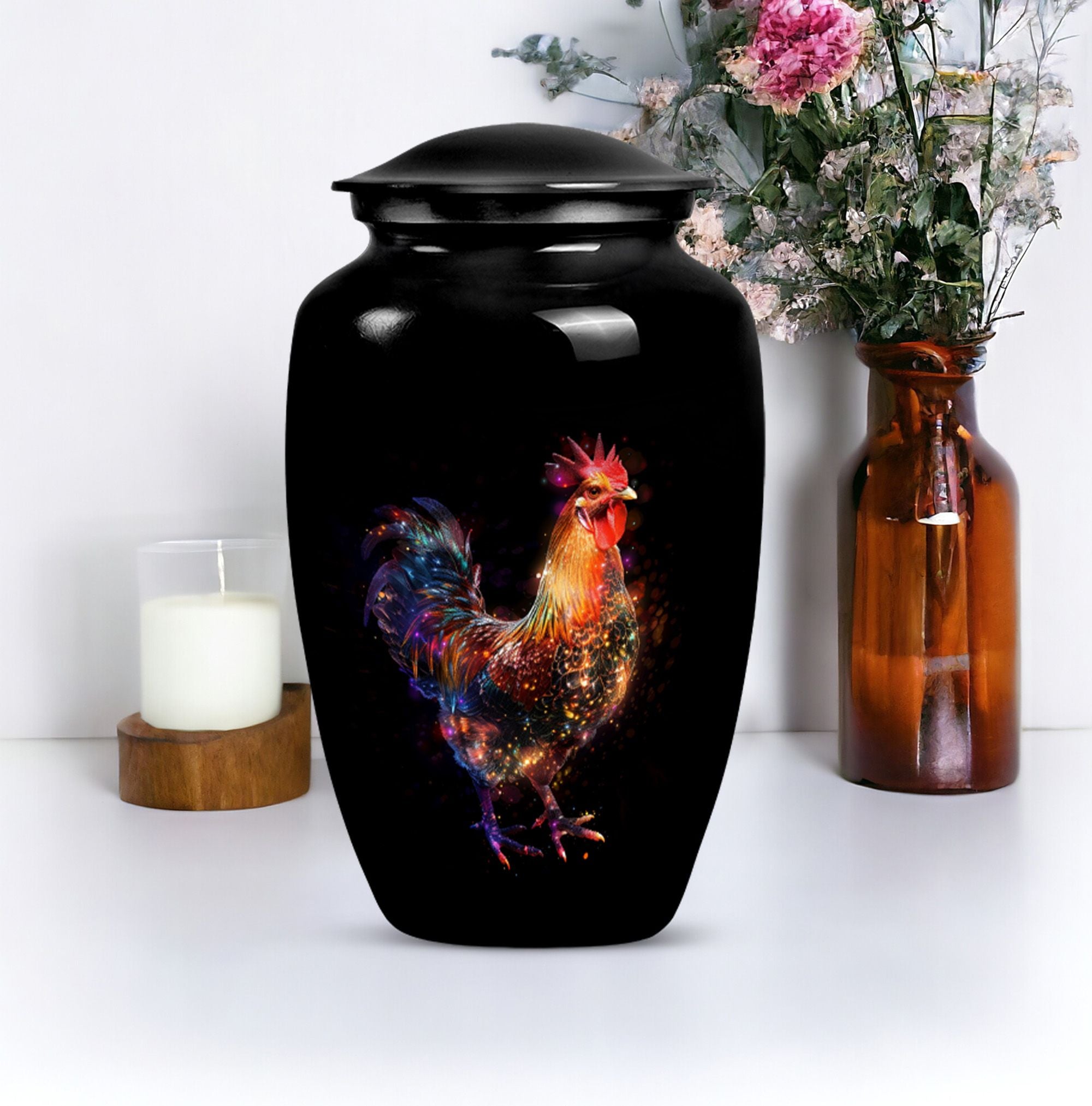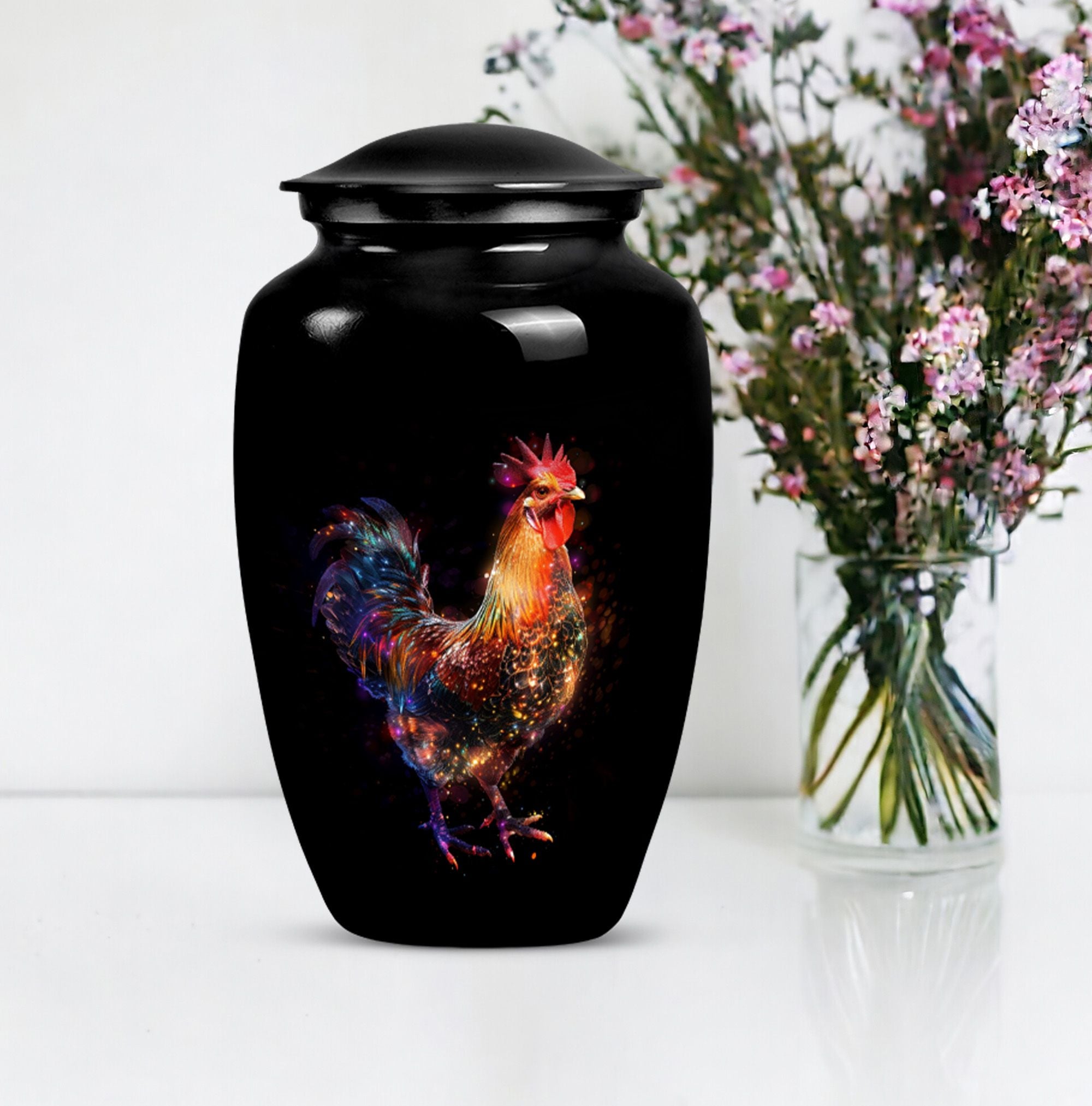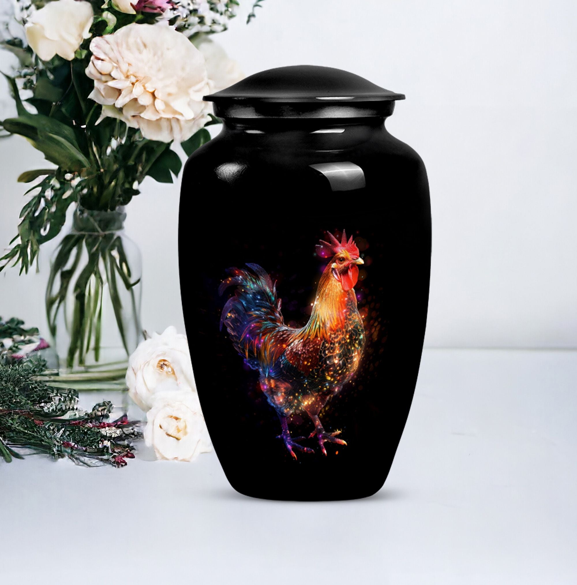 Honor the memory of your beloved with our tasteful and elegant 10-inch Classic Urn. Impeccably fabricated from high-grade aluminium, the urn exhibits an inviting balance of weight (3.3 pounds) and dimensions (10 inches in height). Our large urn, fashioned with a floral theme, serves as an essential item for memorial ceremonies, fostering a serene sense of tranquility. Its overall capacity is 200 cubic inches, a sufficient volume to house human ashes, making it an ideal urn for adults. An additional touch of personalization is offered as you can choose to engrave names on it. We understand how crucial it is to preserve the remains of your loved ones that's why we include a delicate velvet pouch for containment of ashes in the package. Our product encapsulates keywords like 'chicken Urn', 'burial urn for human ashes', 'funeral urn for mom', 'urn ash ashes adult', 'burial urns', 'cremation urn adult' making it highly searchable and easy to locate on any platform. Cherish the blissful memories with our Classic Large Urn.