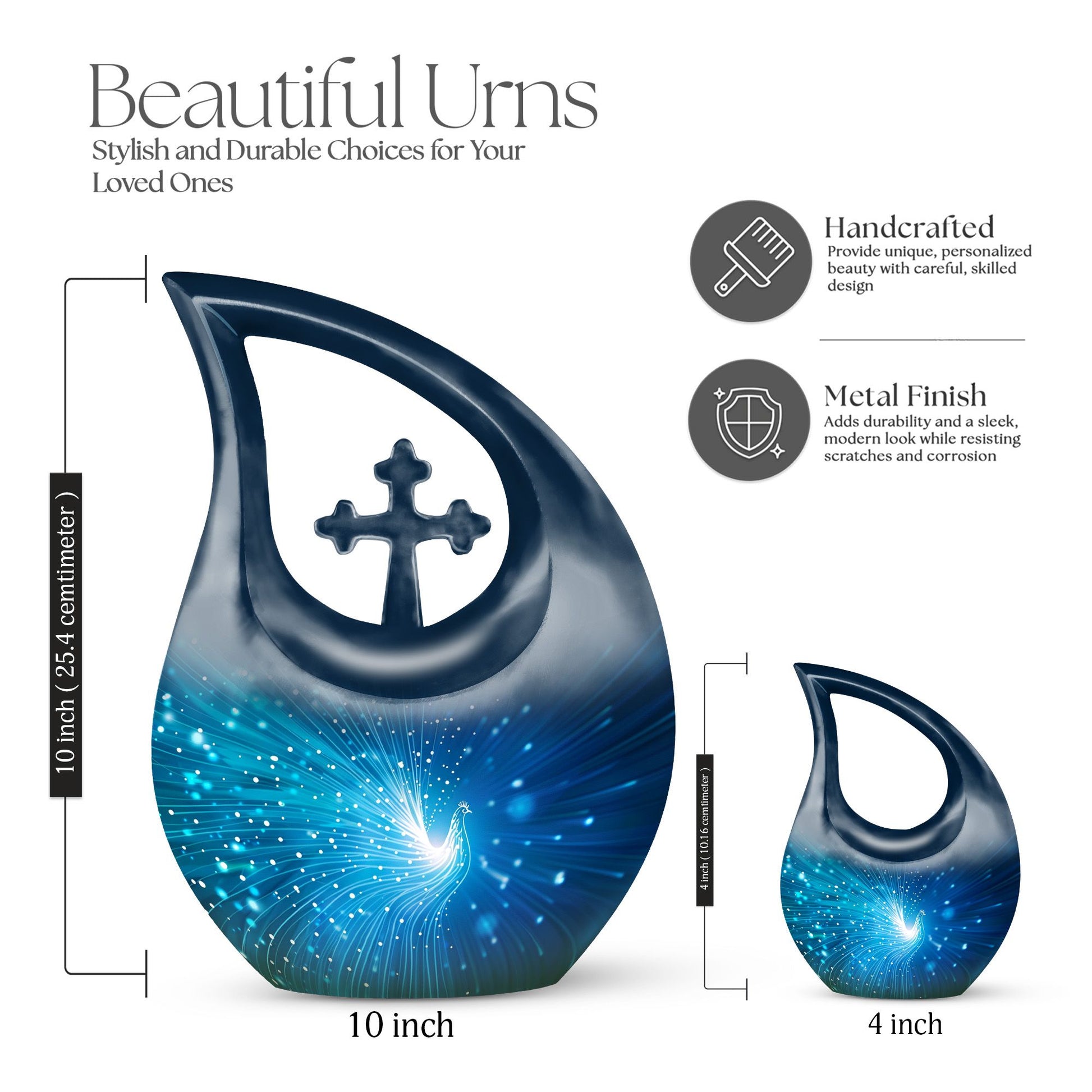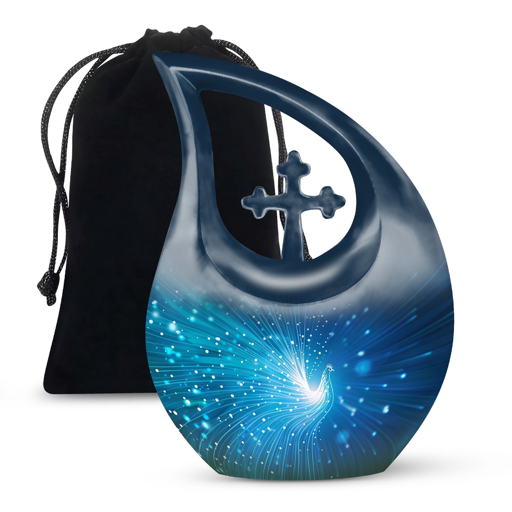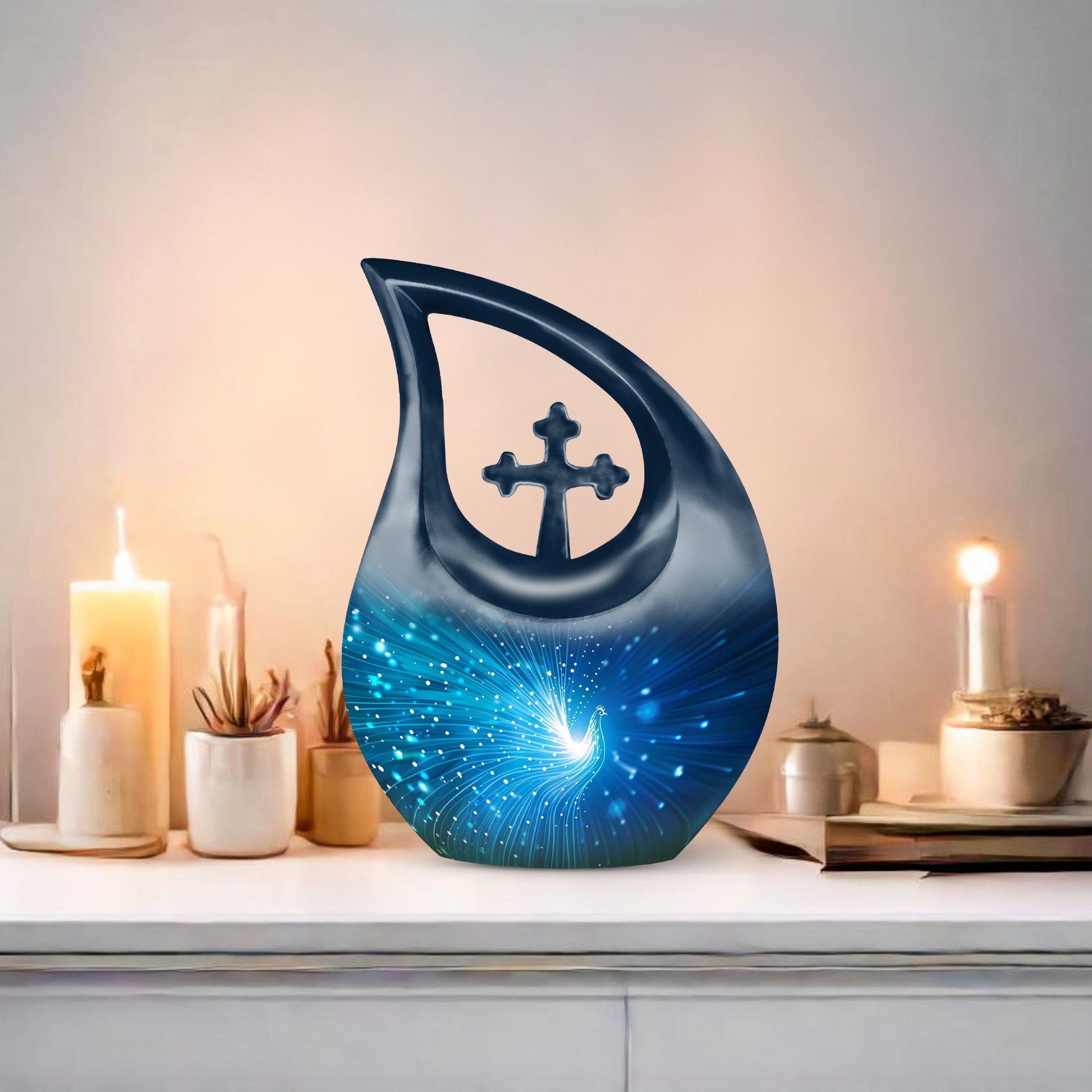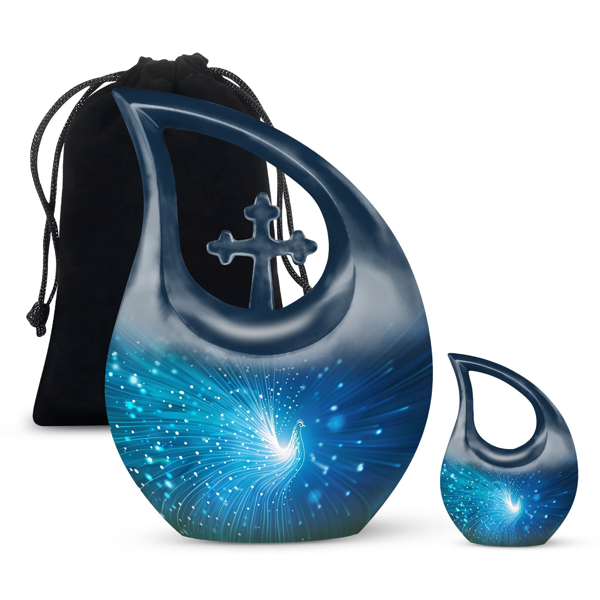 Commemorate the life of a loved one with our 10-inch Chicken Urn, a unique memorial urn for ashes crafted with meticulous attention to detail, weighing 3.3 pounds. It's not just an urn; it's a testament of love. Outlined by the radiant Aluminum material, its regal aesthetics are further amplified by the iconic 'Cross Drop' theme. This sturdily built memorial urn gives you the convenience of containing up to 200 cubic inches of a loved one's ashes, ensuring you'll feel your loved one's presence. The urn comes with a soft velvet pouch for the safekeeping of ashes. Even better, you can add your personal touch to it by engraving names onto the urn- a heartfelt way to keep memories alive. Their spirit deserves the respect and homage that our Chicken Urn drives. Popularly searched as 'Urns For Ashes For Adults, Cheap Cremation Urns, Urns For Sale, Small Urns For Ashes', this product resides in the right intersection of affordability and quality. Experience the serenity of saying your final adieu with this emblem of lasting peace and tranquility.