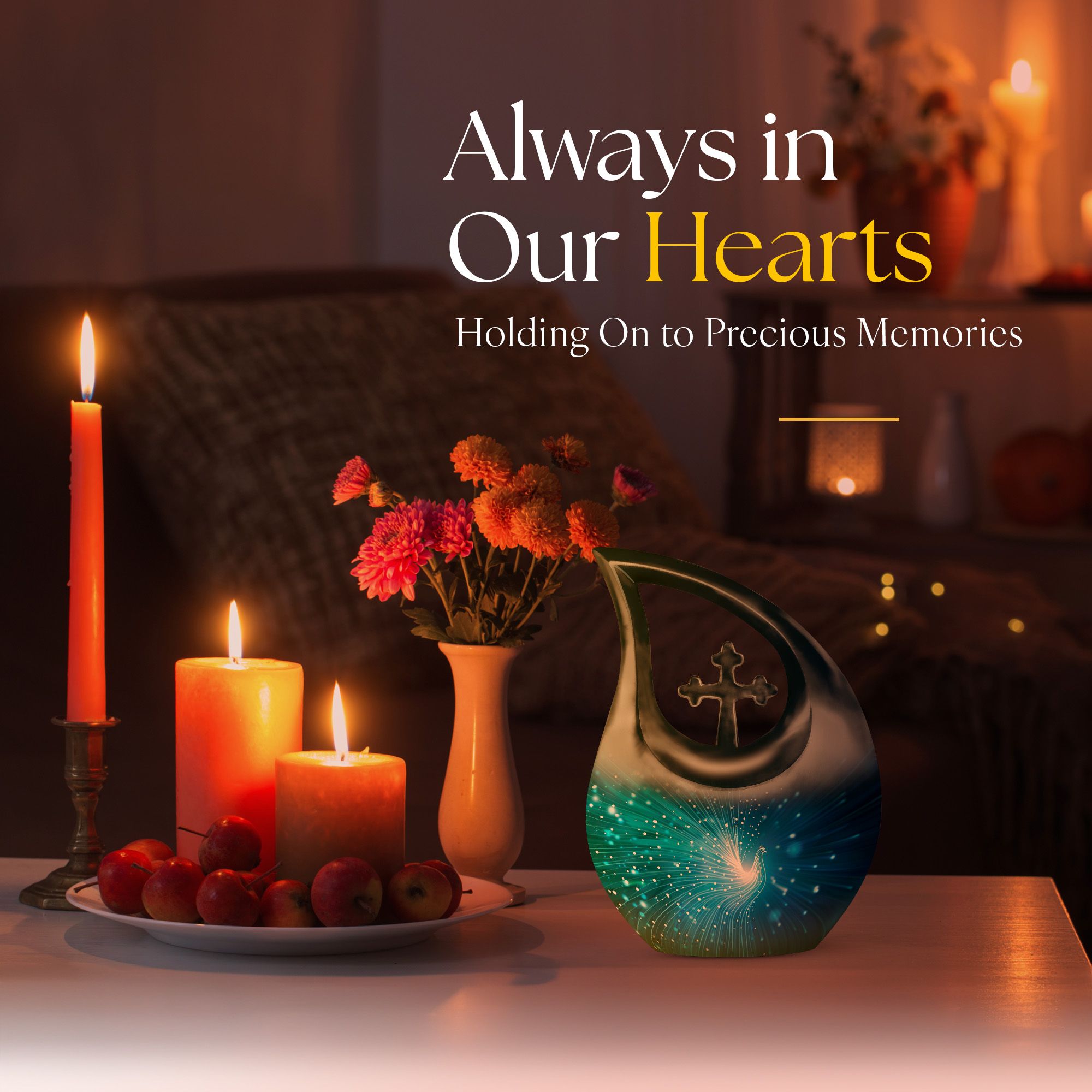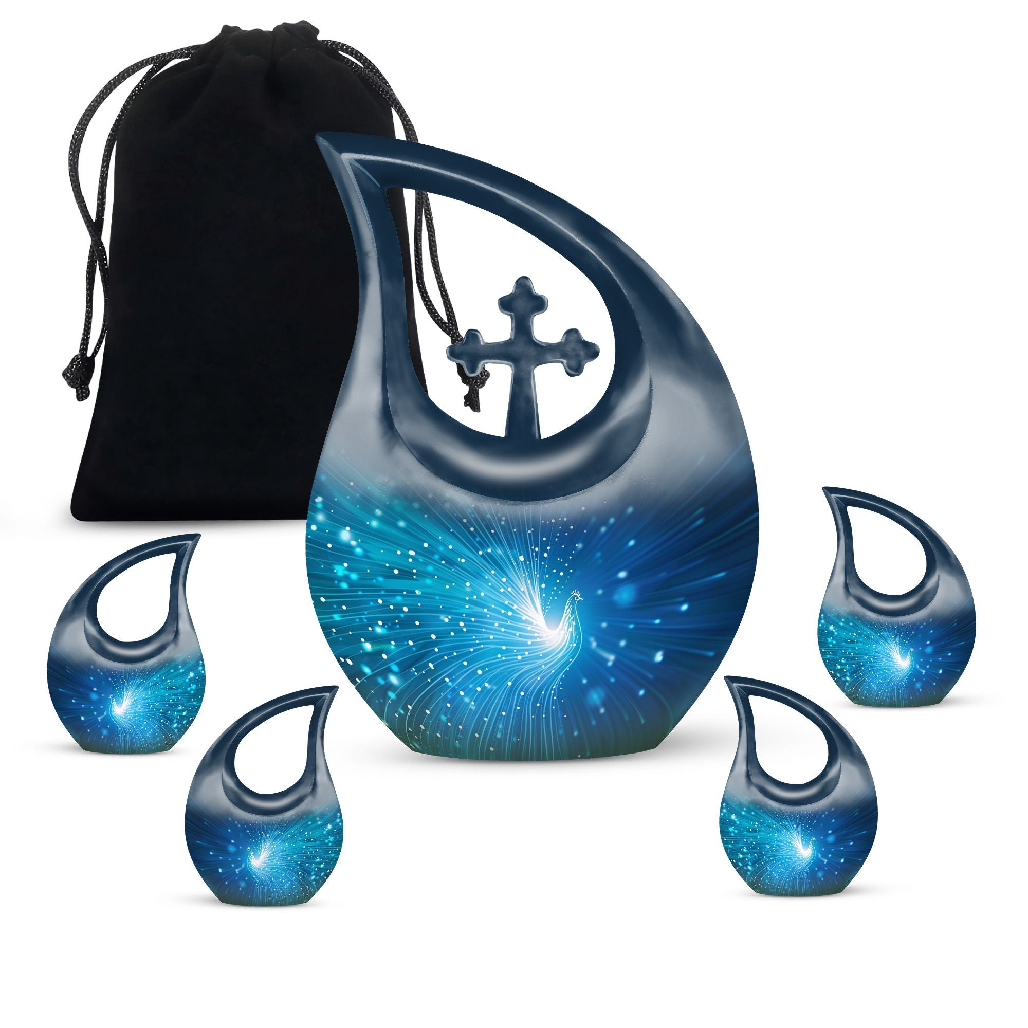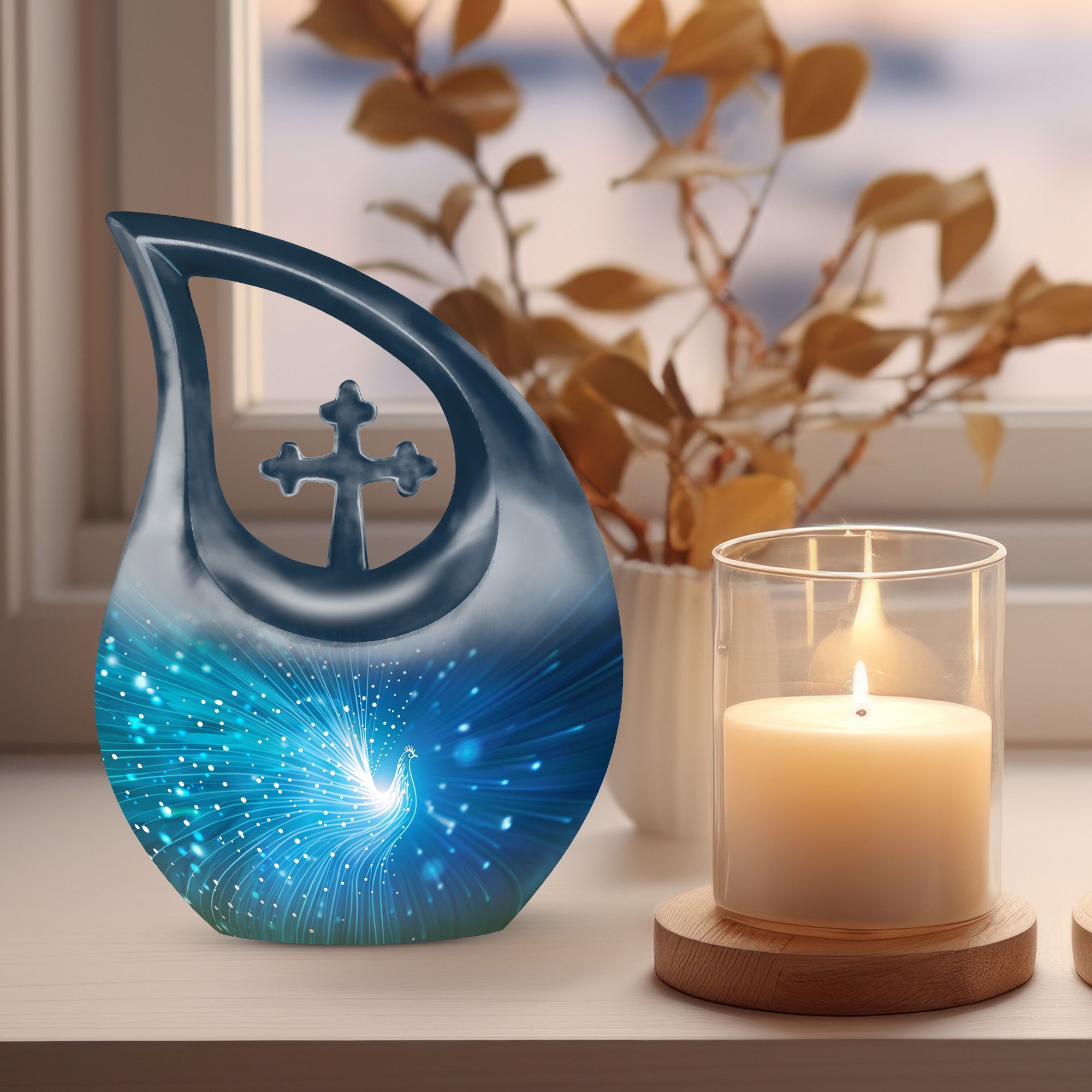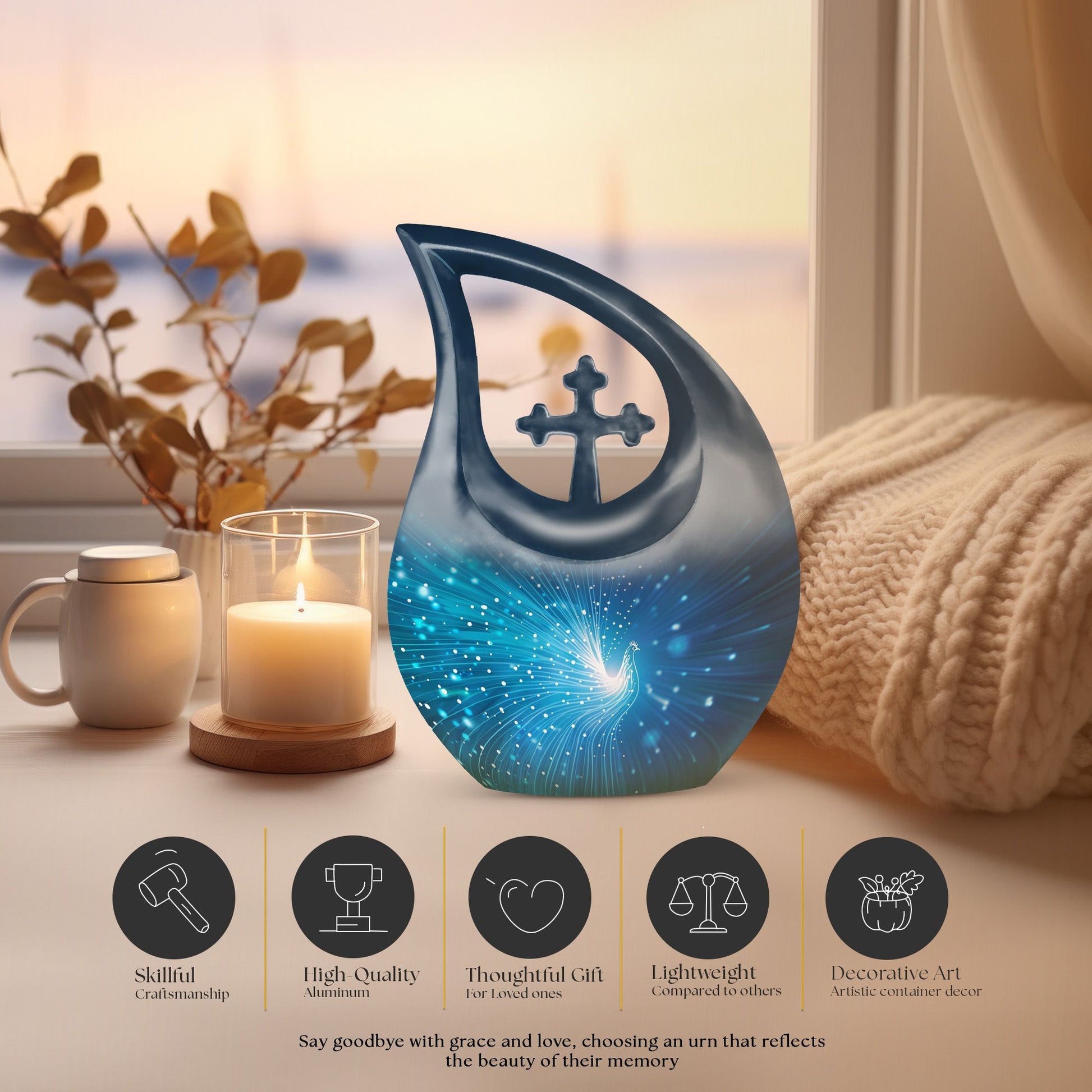 Commemorate the life of a loved one with our 10-inch Chicken Urn, a unique memorial urn for ashes crafted with meticulous attention to detail, weighing 3.3 pounds. It's not just an urn; it's a testament of love. Outlined by the radiant Aluminum material, its regal aesthetics are further amplified by the iconic 'Cross Drop' theme. This sturdily built memorial urn gives you the convenience of containing up to 200 cubic inches of a loved one's ashes, ensuring you'll feel your loved one's presence. The urn comes with a soft velvet pouch for the safekeeping of ashes. Even better, you can add your personal touch to it by engraving names onto the urn- a heartfelt way to keep memories alive. Their spirit deserves the respect and homage that our Chicken Urn drives. Popularly searched as 'Urns For Ashes For Adults, Cheap Cremation Urns, Urns For Sale, Small Urns For Ashes', this product resides in the right intersection of affordability and quality. Experience the serenity of saying your final adieu with this emblem of lasting peace and tranquility.