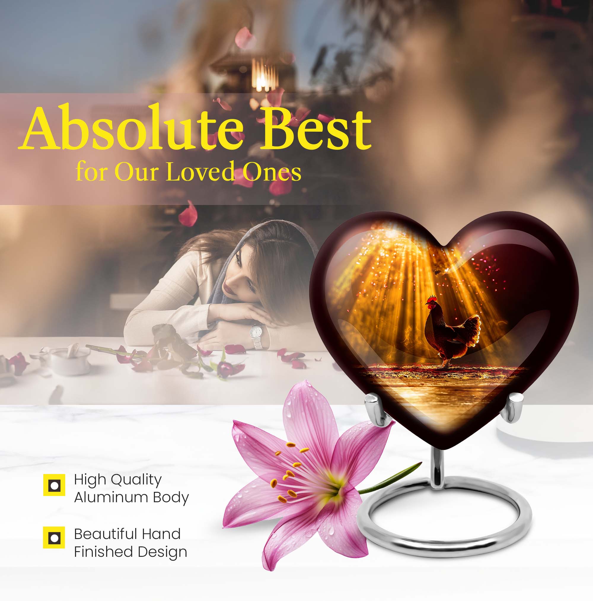Move beyond the limitations of conventional urns and cherish your beloved with our uniquely shaped Heart Urn, designed elegantly with a floral theme. It embodies love and warmth and is perfect for preserving the ashes of a dear adult female with dignity. Sized at a substantial 10 inches and a capacity to include 200 cubic inches, the urn is crafted meticulously from Aluminium, ensuring it lasts for generations. Its weight of 3.3 pounds gives it substance, and it comes with an exquisite velvet pouch to hold the sacred ashes securely. We offer customization options as well – engrave the names of your loved ones and make the urn truly special. This magnificent memorial urn is part of our range of exquisite adult human ash urns, large urns and cremation ashes containers. It ensures that you can commemorate your loved ones in a way that honors their memory beautifully.