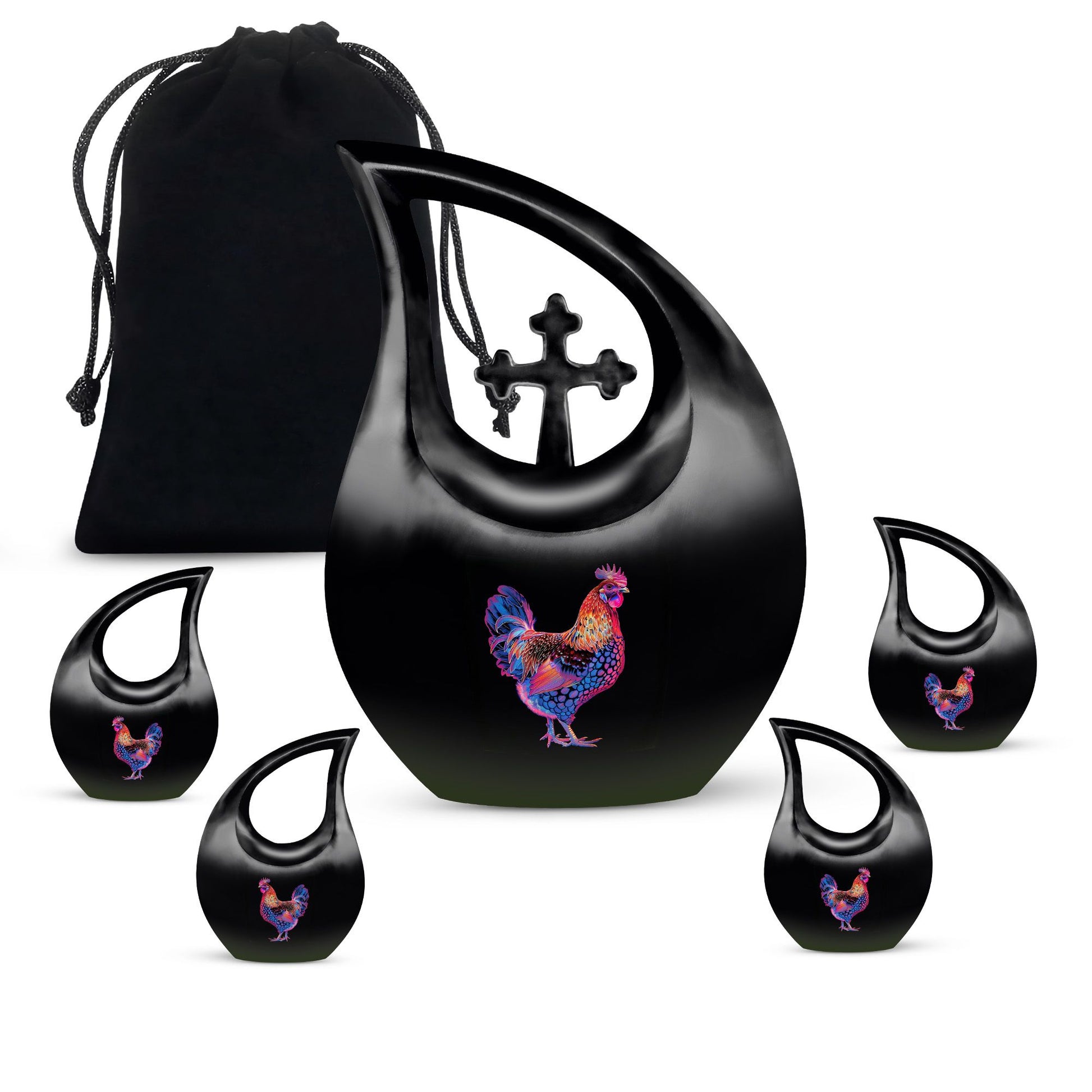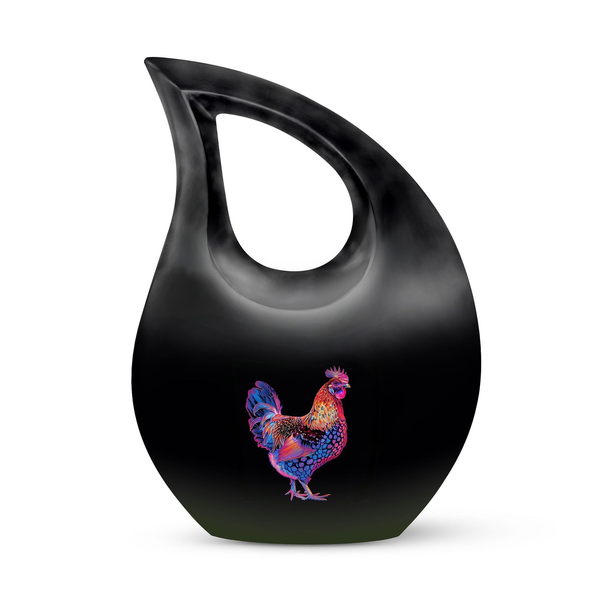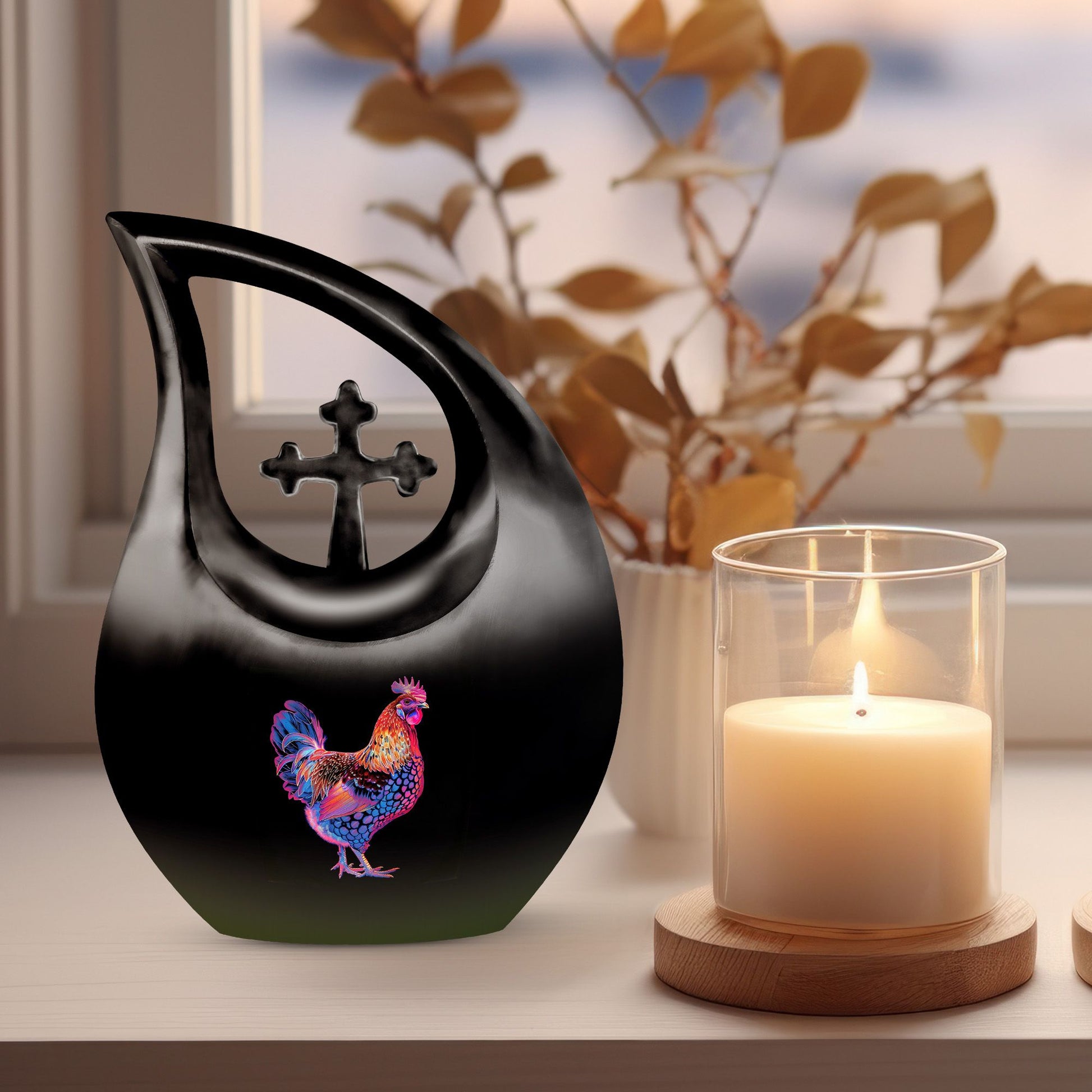 Mark the memory of a beloved person or pet with this meticulously crafted, aluminium Chicken Urn. With a 200 cubic inch capacity and standing at 10 inches in height, this large urn artfully blends functionality with sentimentality, providing a dignified resting place for those dearly departed. The Cross Drop theme serves as a serene reminder of the natures of life, with the included velvet pouch offering a fitting containment for the ashes. In addition, this Urn brings an opportunity for you to add a personal touch with our suggested custom urns service. Feel free to engrave the names of your loved one onto this memorial urn, making it truly unique. An artful piece, this elegantly crafted urn is not just an affordable burial option but also an enduring piece of decor. It holds its place among small urns and companion urns, appealing to searches for 'Custom Urns For Ashes'.