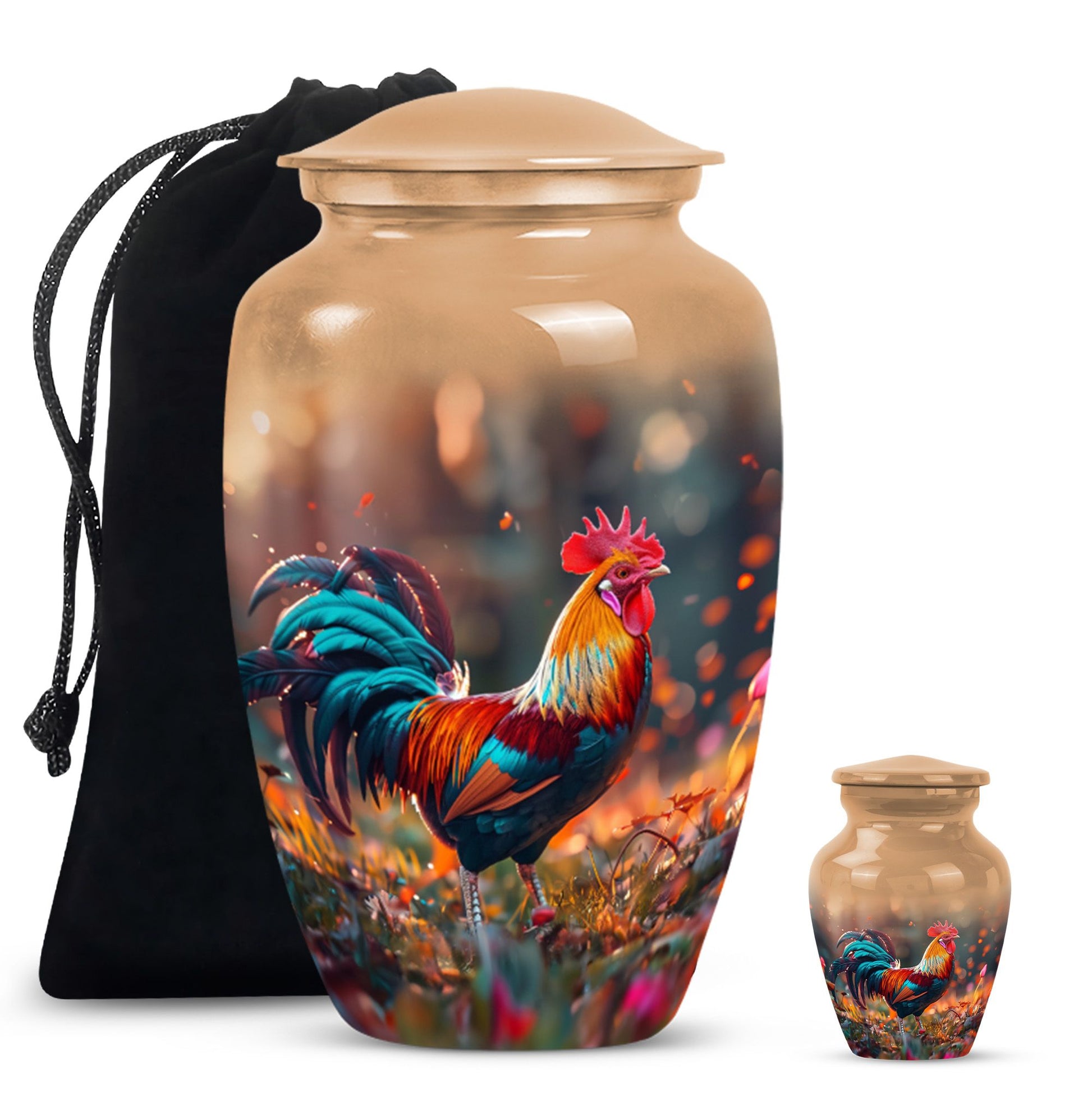 Representing serenity and respect, this 10 inch Classic cremation urn offers a durable resting place for your loved ones. Weighing at a substantial 3.3 pounds, this large urn has been thoughtfully crafted from robust aluminium, ensuring longevity. The urn boasts a capacity of 200 cubic inches, making it a suitable choice for adults. An intricate floral-themed design elevates its simple elegance, creating a tribute that radiates dignity. It also offers the unique option of personalizing with engraved names, giving it an exclusive touch. Your purchase includes a velvet pouch for secure containment of ashes. Seek solace in this respectful artefact of remembrance. Our chicken urn is an enduring statement of love suitable for burial ash urns for humans. It’s not just a cremation urn; it's a choose for treasured memories. Offering urns for adult cremation ashes for both men and women, this product provides an authoritative presence that matches the magnitude of your profound loss. Note: This product is intended for 'en' speaking consumers.