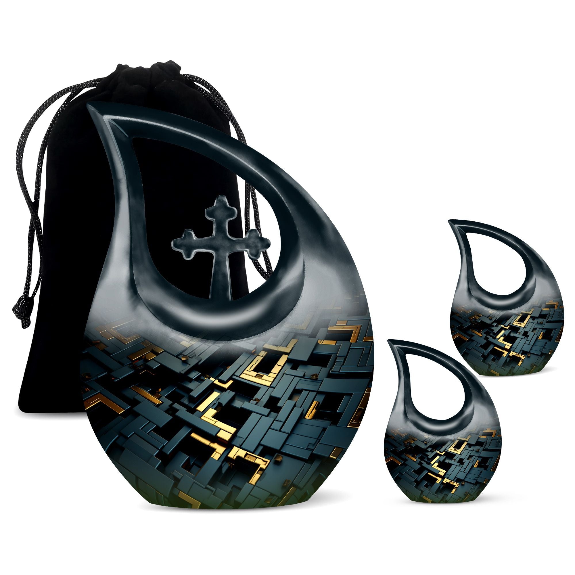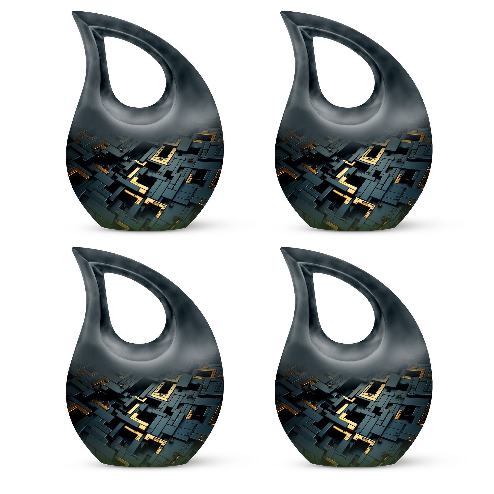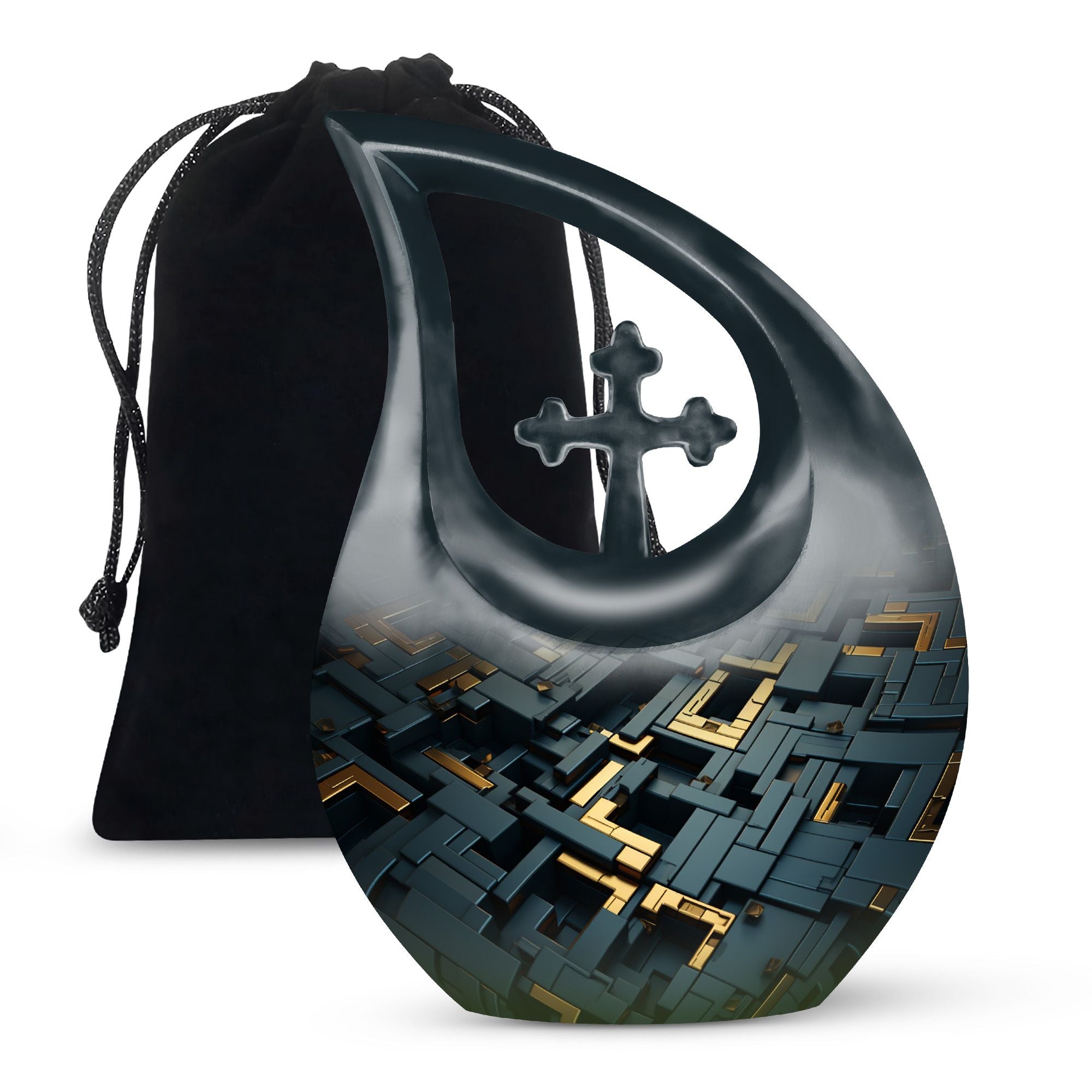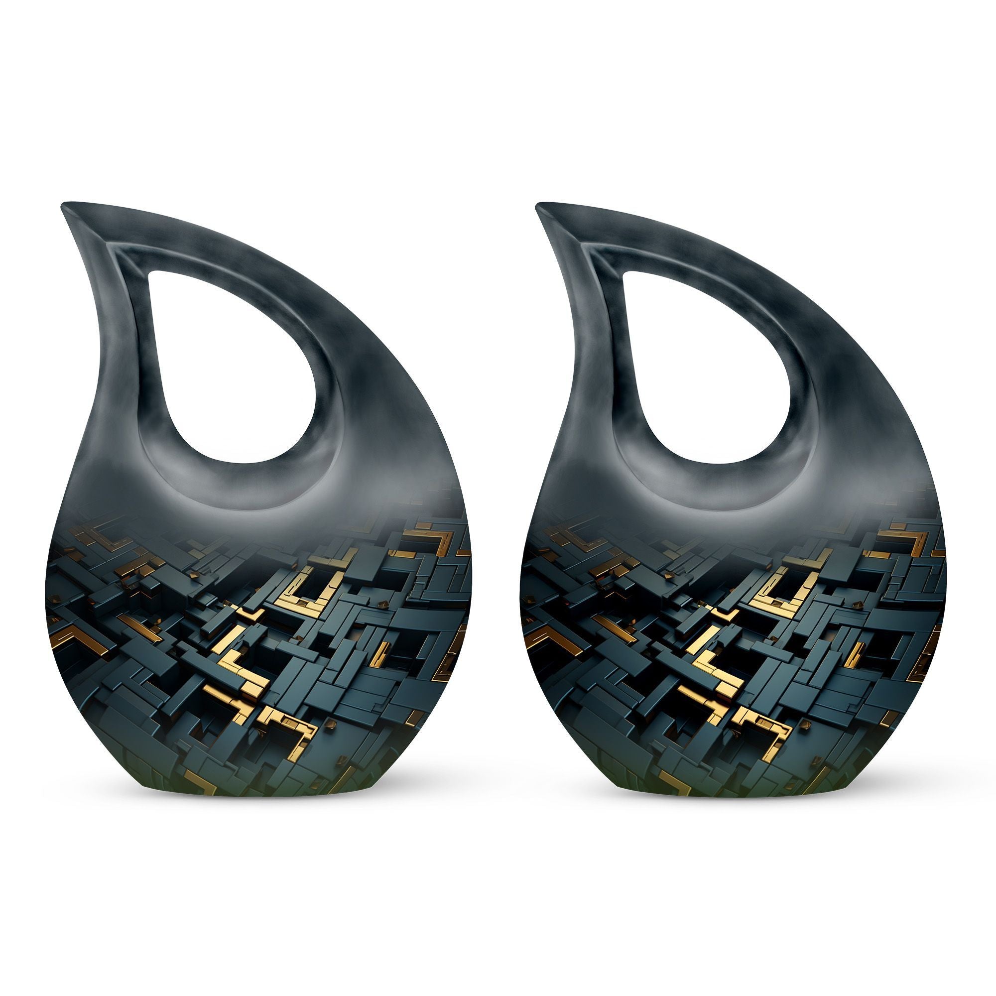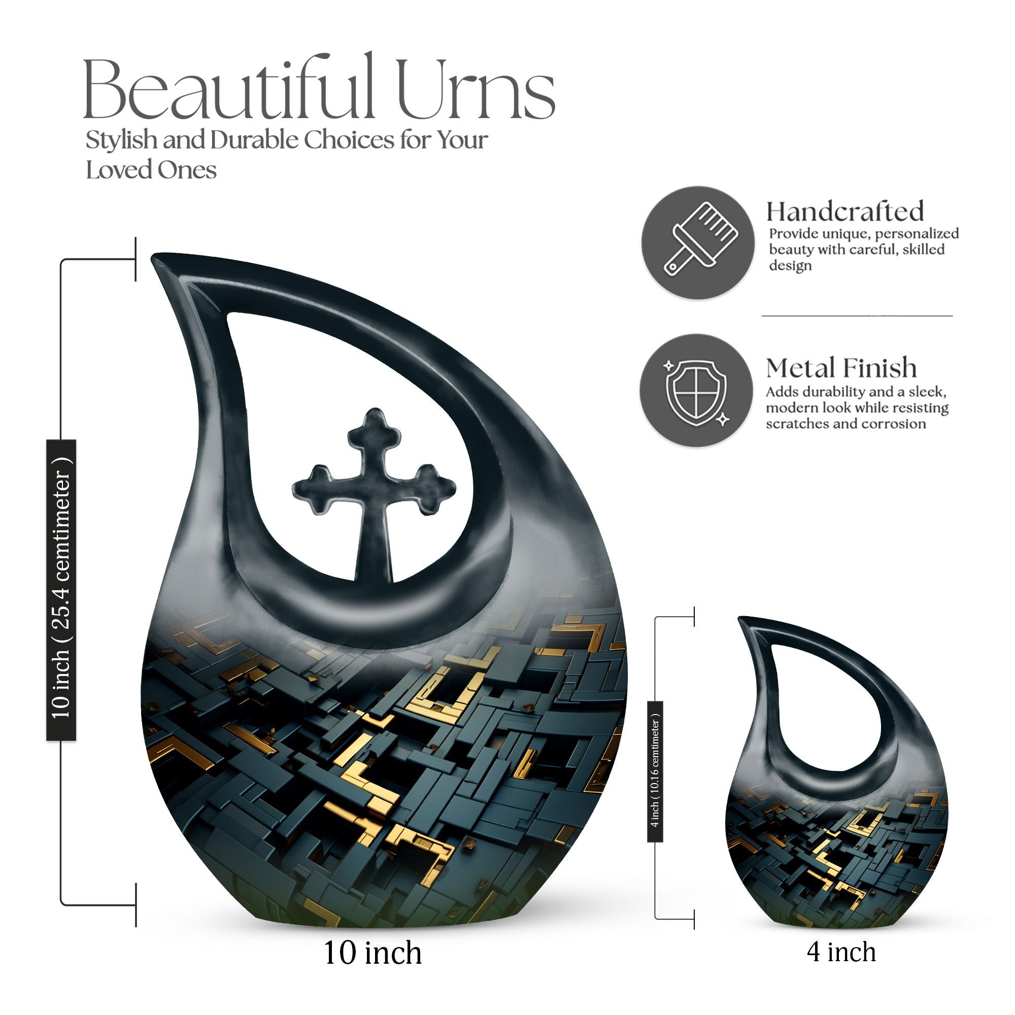 The Circuitry Shimmer Urn is a dignified and solemn choice when looking for 'Urns For Ashes For Adults'. This striking memorial urn pays tribute to your departed loved one in a unique and elegant manner, with 'Circuitry Shimmer' adding an emoji of reverence. With dimensions of 10 inches in height, its substantial size enshrining up to 200 cubic inches of ash, it truly honors the memory preserved within. Meticulously crafted from long-lasting aluminium with a 'Cross Drop' theme, it showcases the appreciation for the circle of life. This large urn weighs 3.3 pounds, emphasizing its strong presence. Its package includes a velvet pouch that ensures careful containment of your loved one's last remains. Use the option to 'Personalize with engraved names' for an extra touch of remembrance and love. Easy to accommodate within your home, the Circuitry Shimmer Urn bridges the gap between loss and lasting peace. Browse among our 'Cheap Cremation Urns For Adults' and 'Cremation Options For Ashes' to find tailored solutions to your memorial needs.