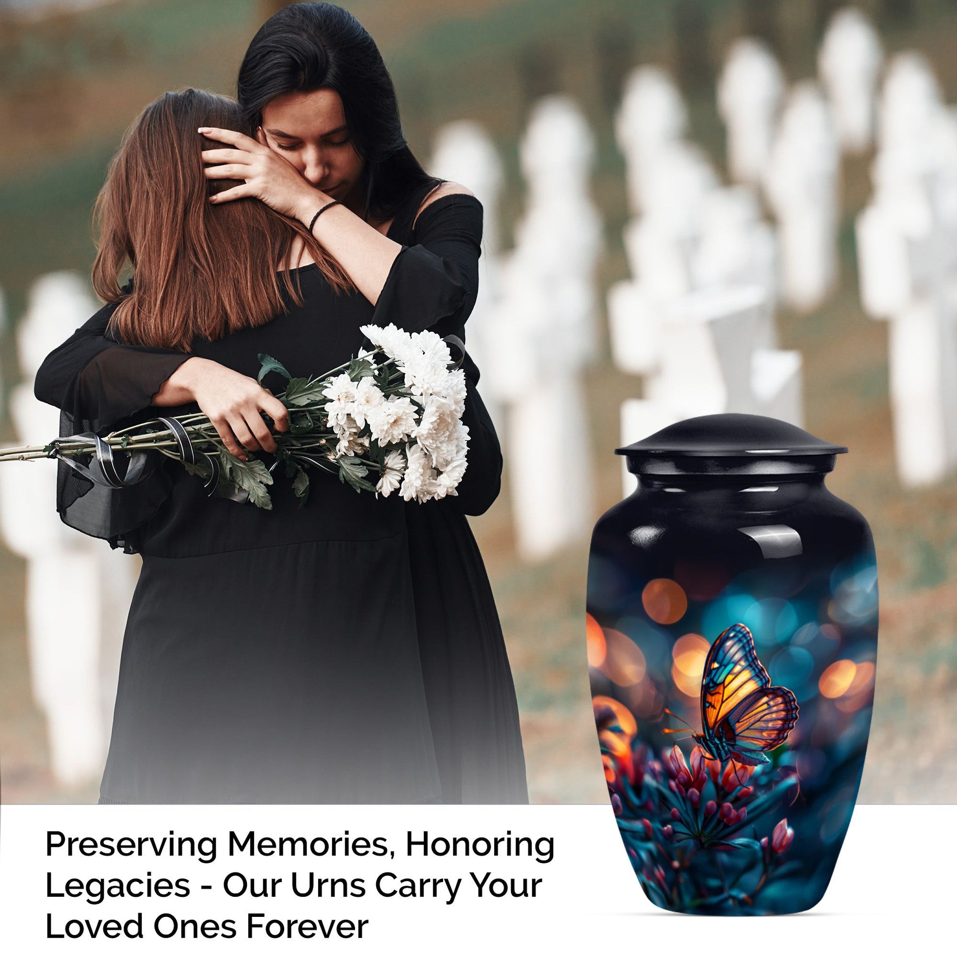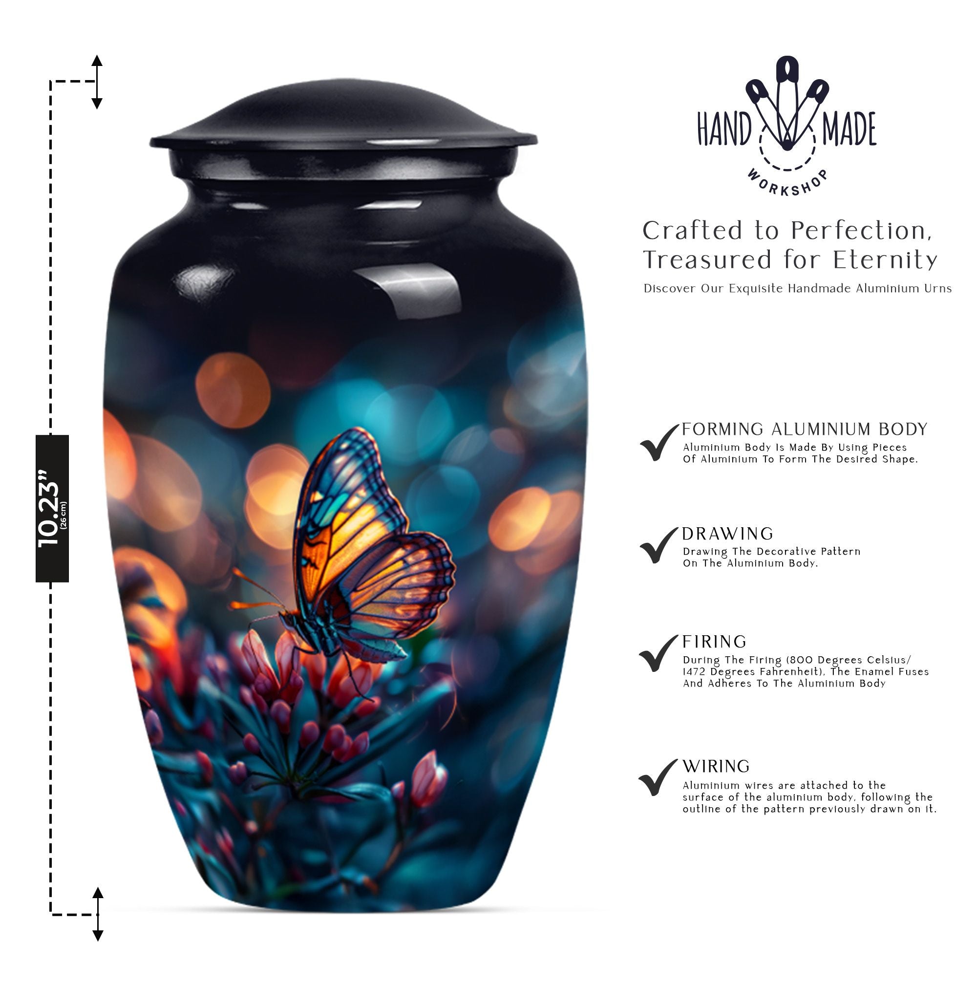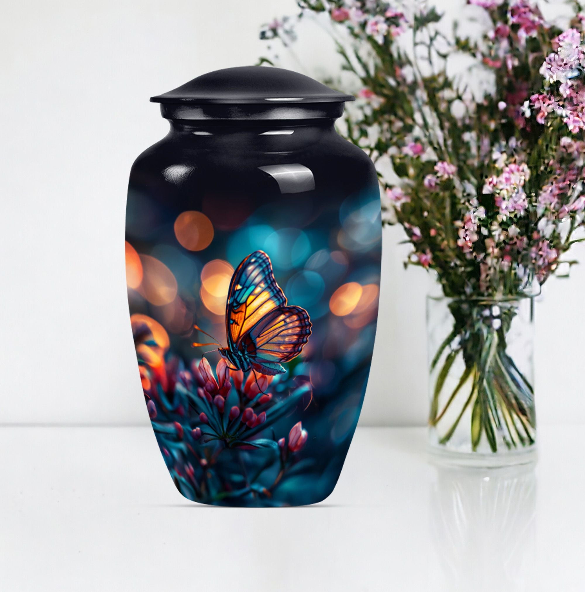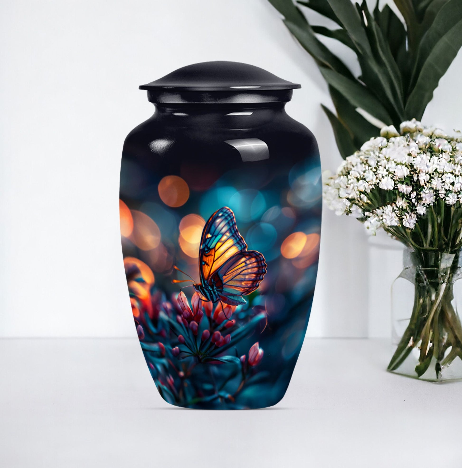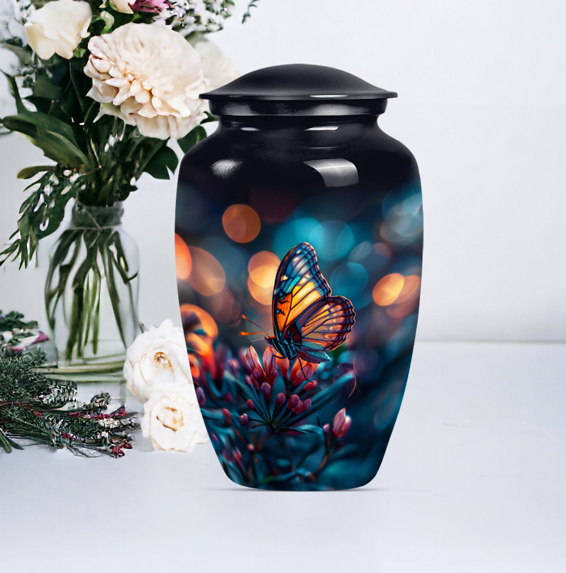 Introducing the Classic Butterfly Funeral Urn, a timeless and elegant tribute designed to honor the memory of a cherished loved one. This exquisite urn features a beautifully detailed butterfly motif, symbolizing transformation, hope, and eternal love. Crafted from high-quality materials, the urn ensures durability and lasting beauty, providing a dignified resting place for cremated human ashes. The smooth finish and intricate butterfly design create a sense of peace and serenity, making it a fitting choice for both display and burial. The Classic Butterfly Funeral Urn is more than just a container; it is a heartfelt memorial that celebrates the life and legacy of your loved one with grace and elegance. Perfect for those seeking a classic and meaningful tribute, this urn offers a comforting reminder of the enduring bond you share.