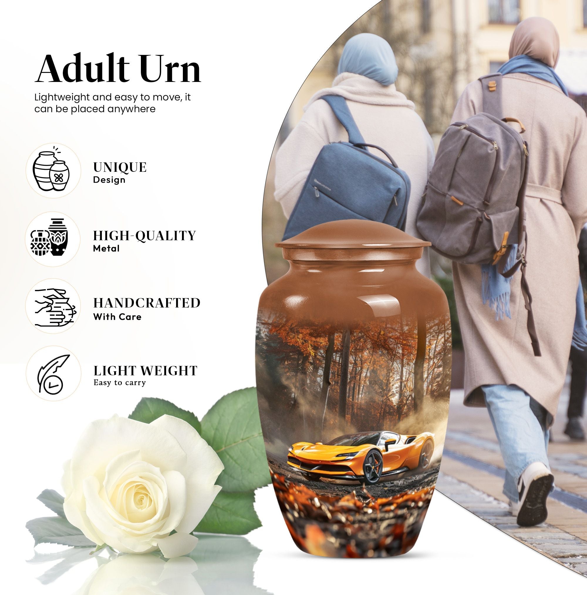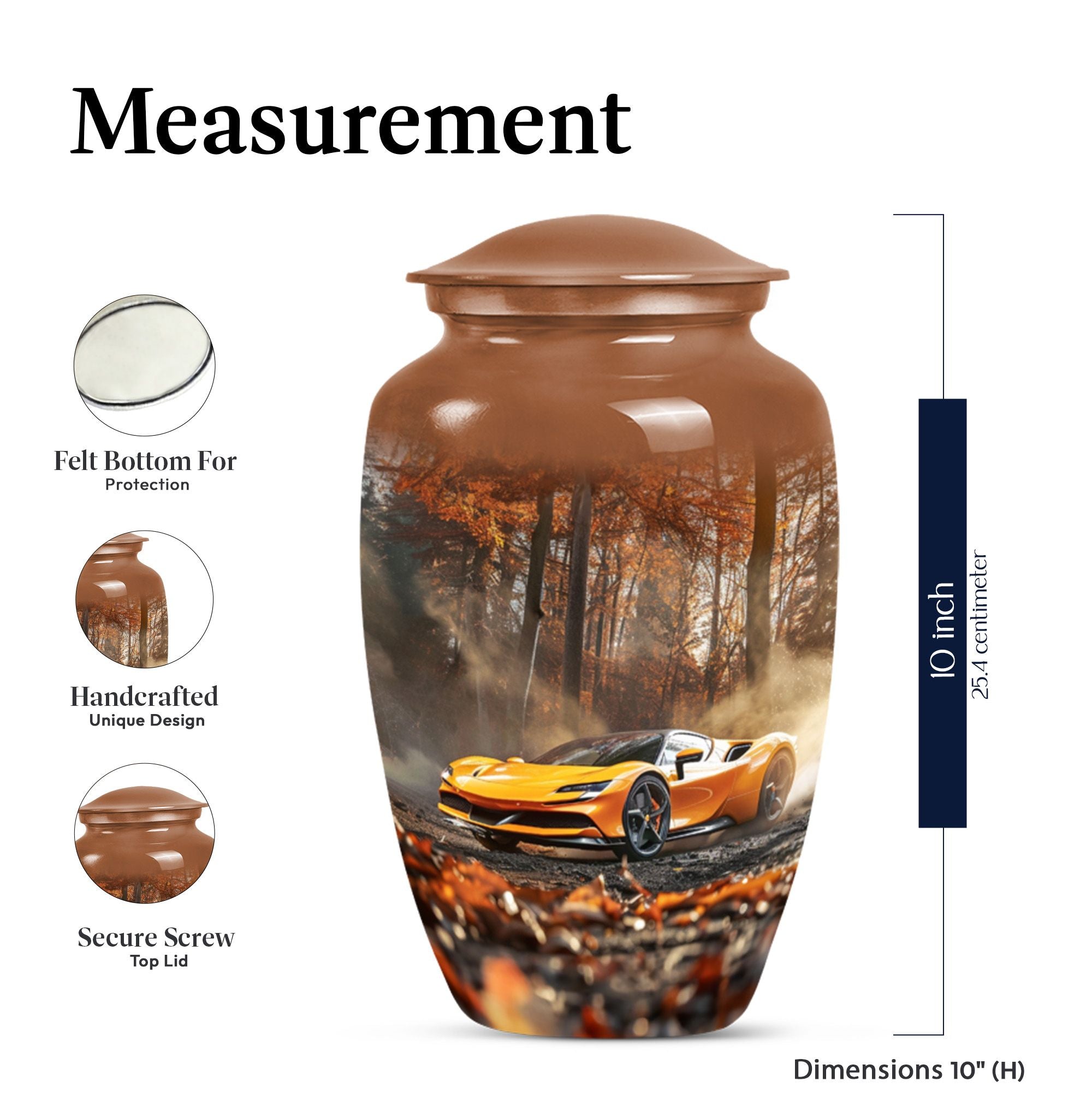 This remarkable 10-inch car urn is a dignified and respectful choice when seeking memorial urns for an adult male. Crafted from robust aluminium, the urn weighs 3.3 pounds and offers a substantial capacity of 200 cubic inches, suitable for large urn needs. As a distinctive touch, personalization is available through the engraving of names, ensuring a heartfelt and unique tribute. Adding to the memorable nature of this piece, it incorporates a tranquil butterfly theme, adding a touch of serenity and remembrance. Beyond the urn itself, the package includes a velvet pouch, thoughtfully designed for the containment of ashes. Regardless of your search, whether it's for funeral medium-size urns for human ashes, human urn adults, or even companion cremation urns for 2 adults, the classic design of our offering adds a timeless elegance to your memorial practices. The compelling combination of its attributes does justice to the commemorative intent of such a key item.
