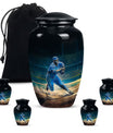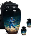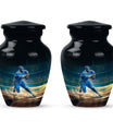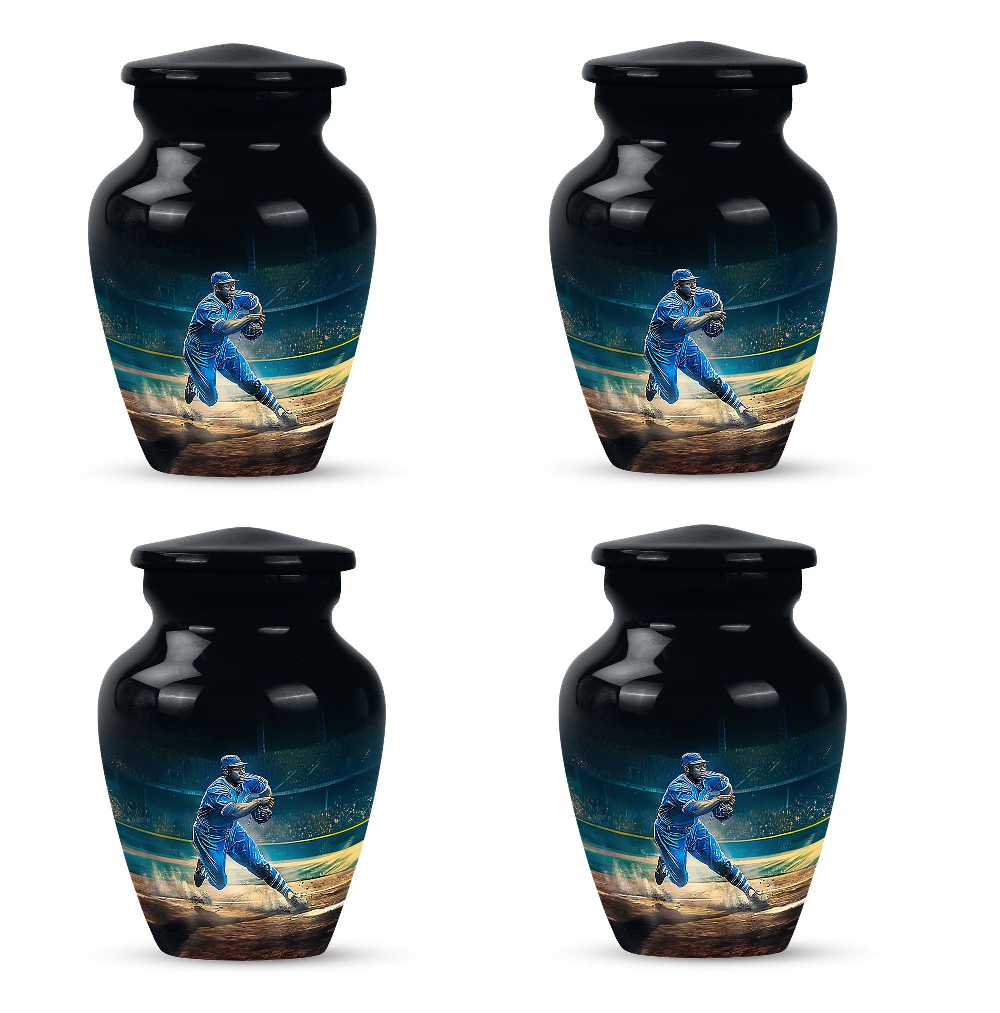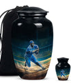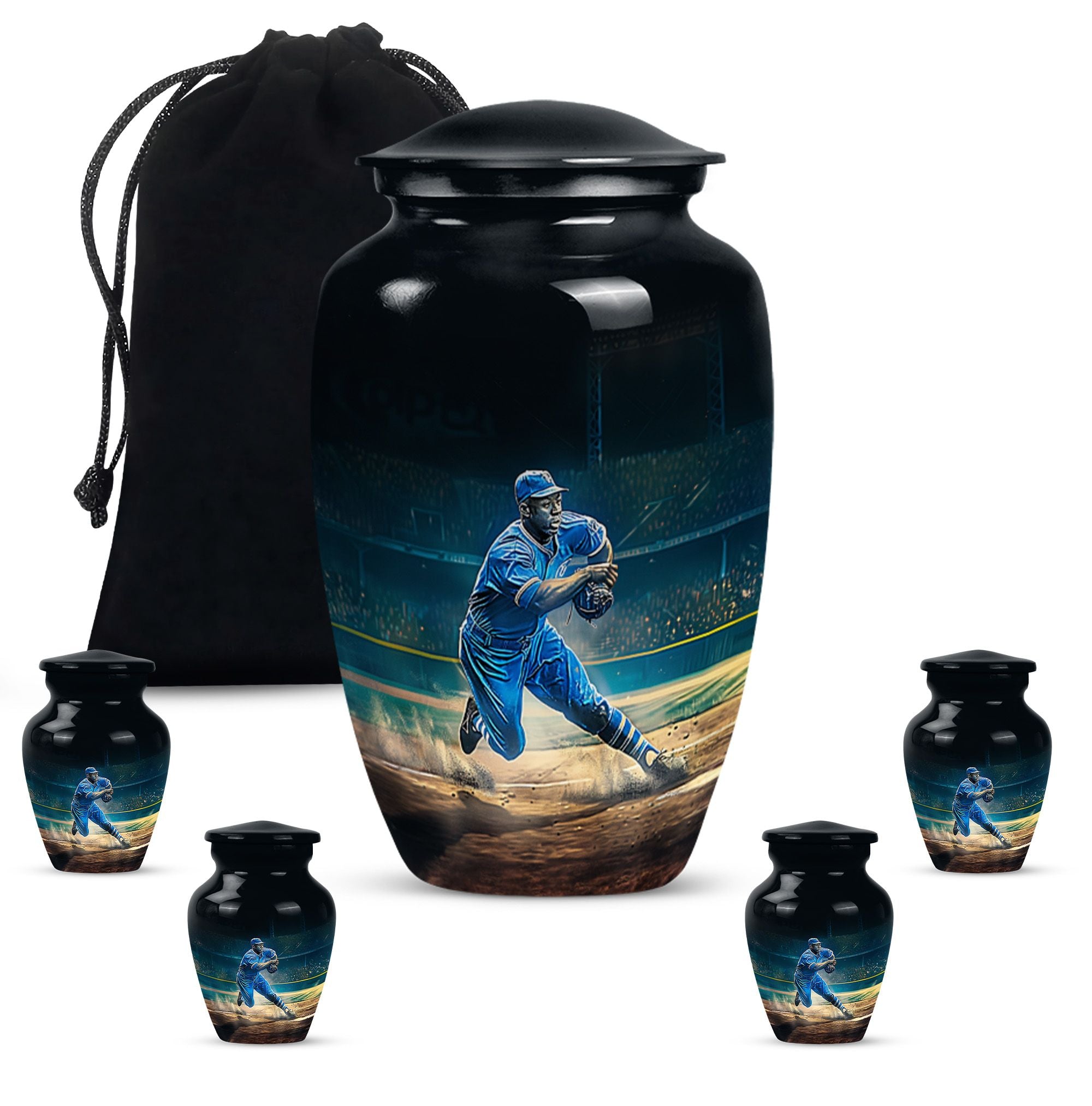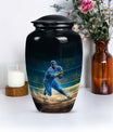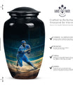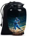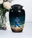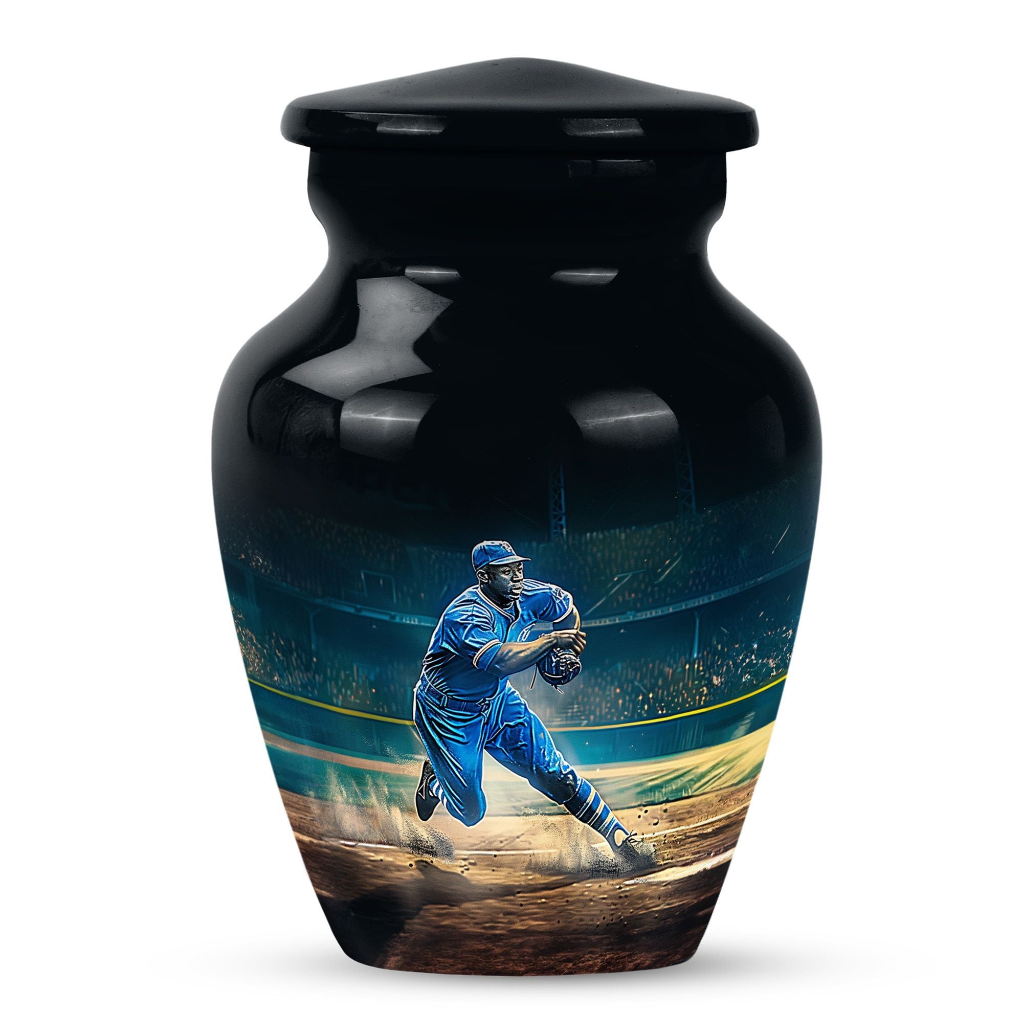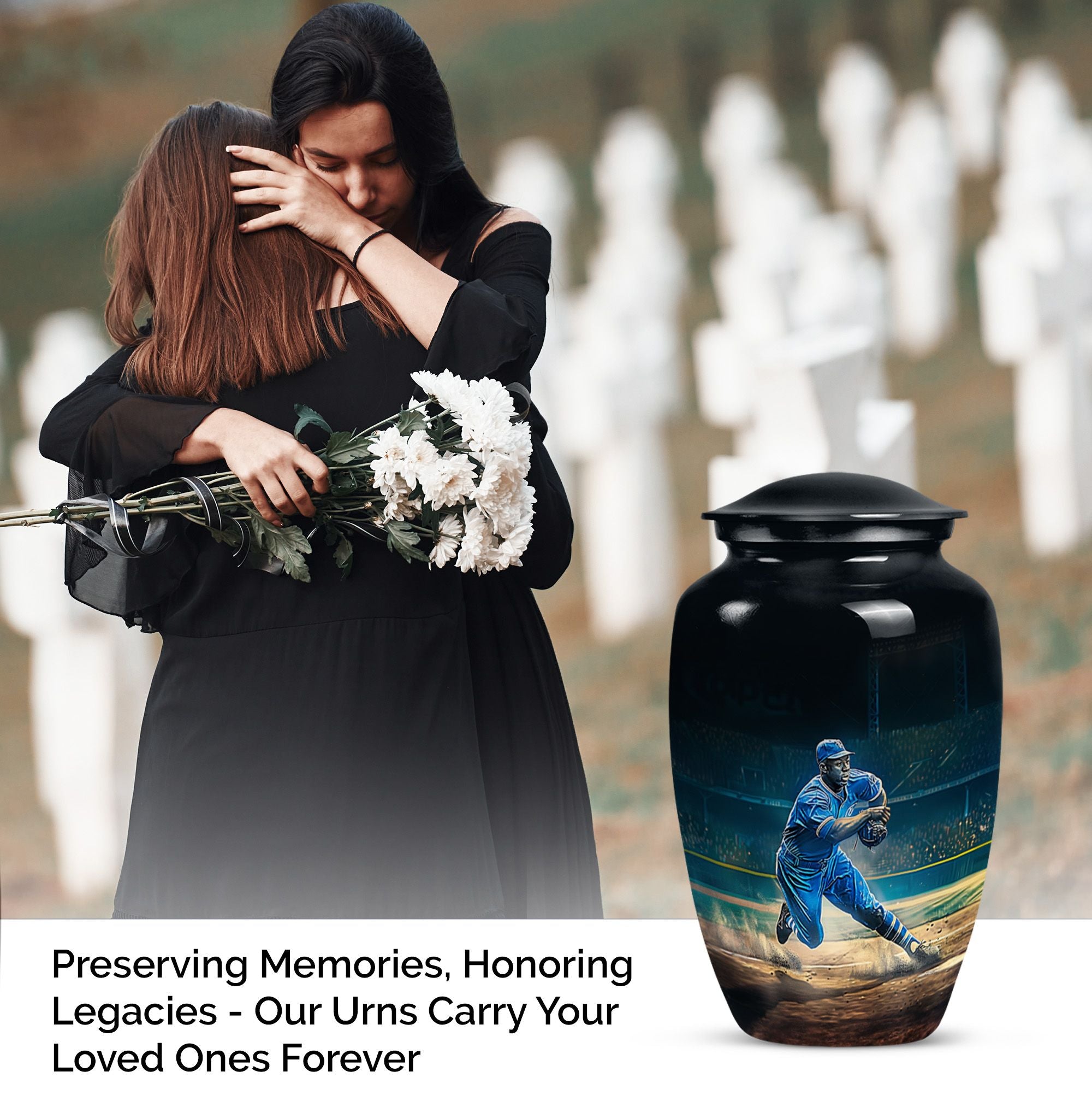 Commemorate the beautiful life of your loved one with this guiltless 10-inch Baseball Urn handcrafted from sturdy Aluminium. Ensuring a meaningful and respectful preservation of ashes, this large-sized urn is an ideal choice for those seeking a distinctive memorial. Its timeless Abstract Theme represents the complexity of life, and a personal touch can be added with custom engraved names, turning this urn into a unique memoir. This cremation urn, weighing a modest 3.3 pounds, can encompass up to 200 cubic inches of ashes, suitable for adults of any gender. The urn comes enveloped in a velvet pouch, ensuring a dignified containment of the remains. Its classic design speaks volumes about its build quality, standing out amongst typical funeral urns. This product is frequently searched for as 'cremation urns for funeral', and 'funeral urns for human ashes adult man'. Search no more, for this Baseball Urn serves as the perfect vessel to hold, remember and celebrate cherished lives.