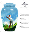 Families seeking urns for burial in ground or cremation ashes keepsakes will appreciate the versatility of this design. Its symbolic golf motif brings comfort, reminding loved ones of cherished moments spent on the course.