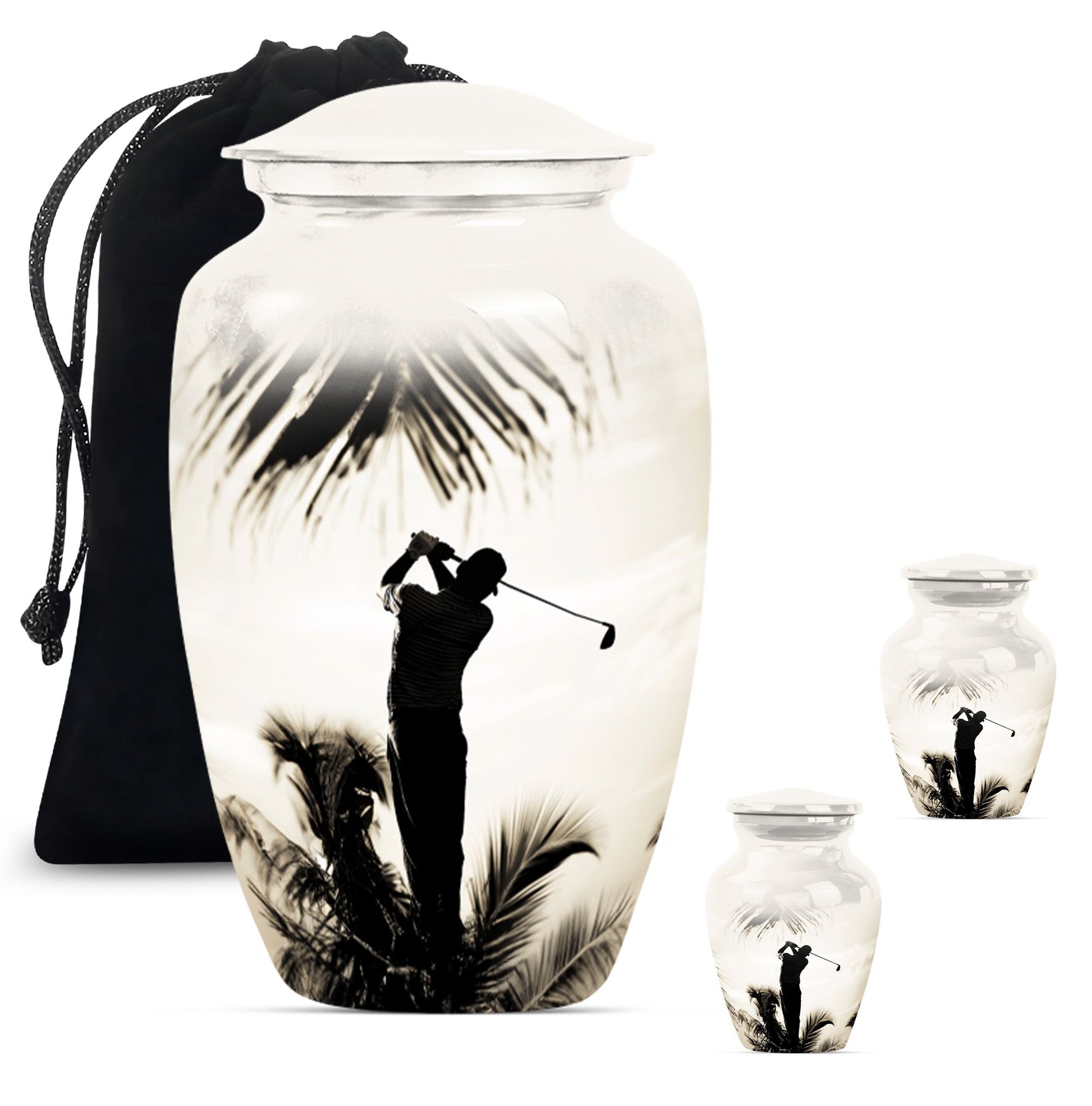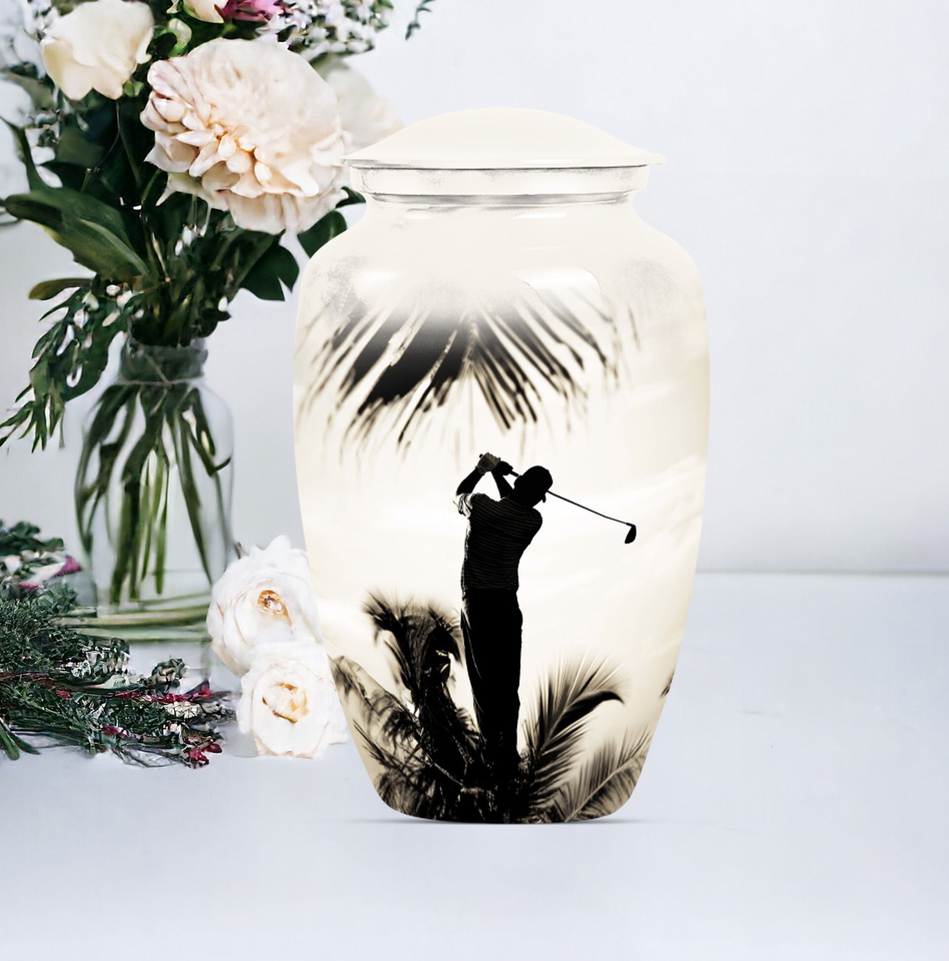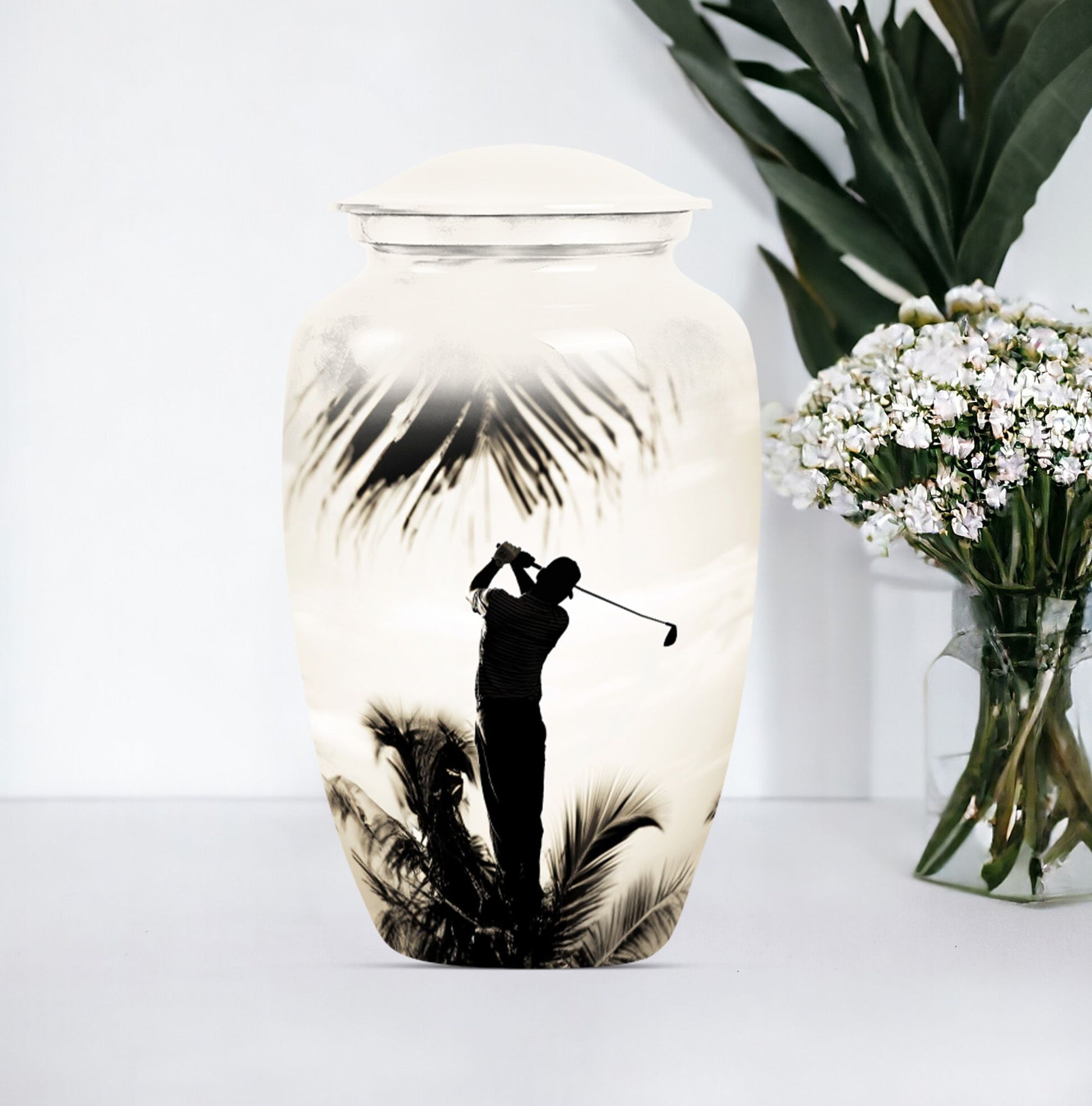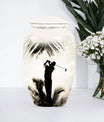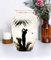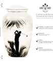 Made with an abstract theme, our large, 10-inch cremation urn stands as an unequivocal choice for your memorial ceremony supplies. Known as the Classic Urn, this tribute hails from durable Aluminium material, ensuring your cherished memories with your loved one are preserved for years to come. Suitable for both mom and golf lovers, our product extends a capacity of 200 cubic inches, effectively accommodating human ashes of an adult in size. As a testament to our focus on enhancing your commemoration, this beautiful golf urn comes with a luxurious, velvet pouch to effortlessly contain the ashes. Personalization options are available to etch your beloved's name making it truly unique. Weighing only 3.3 pounds, this 10-inch memorial urn coincides comfort with remembrance, staying light in weight, but heavy in sentiment. Ideal for adults and seniors, make this cremation urn a part of your memorial ceremony, keeping enduring love and cherished memories alive.