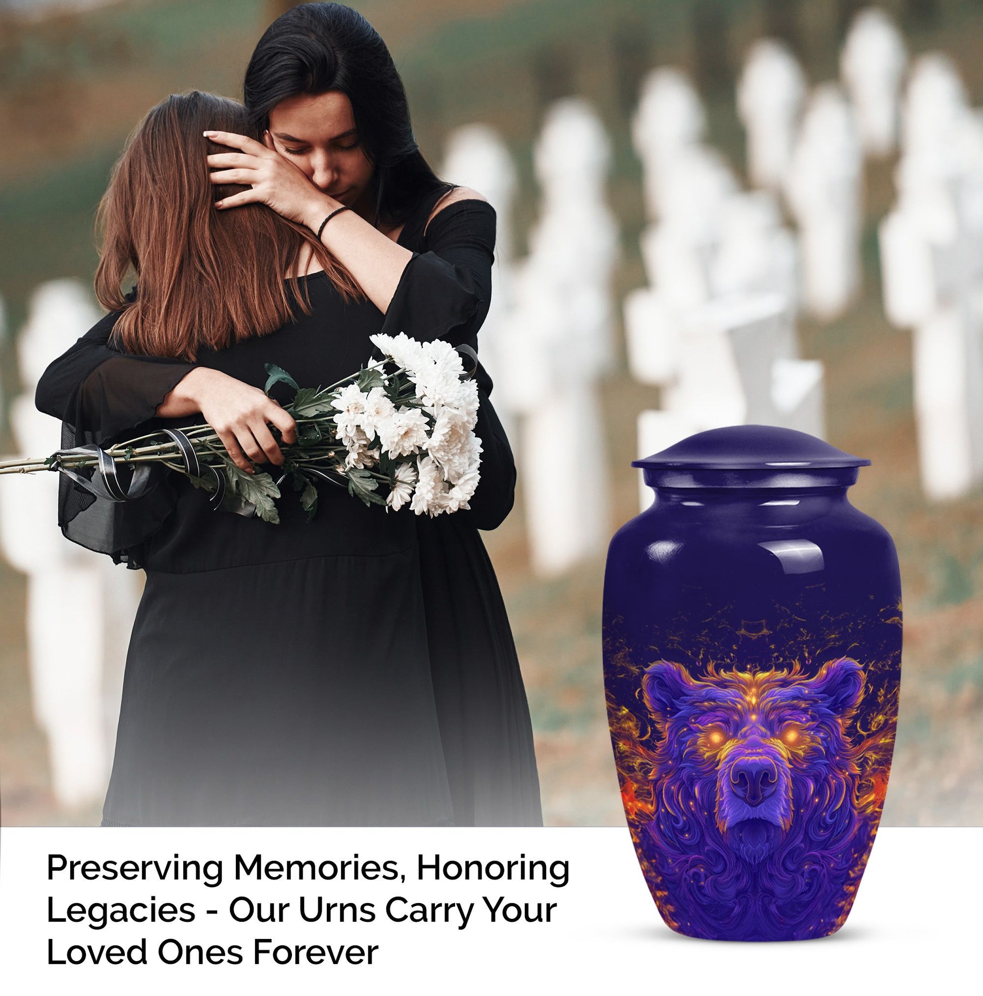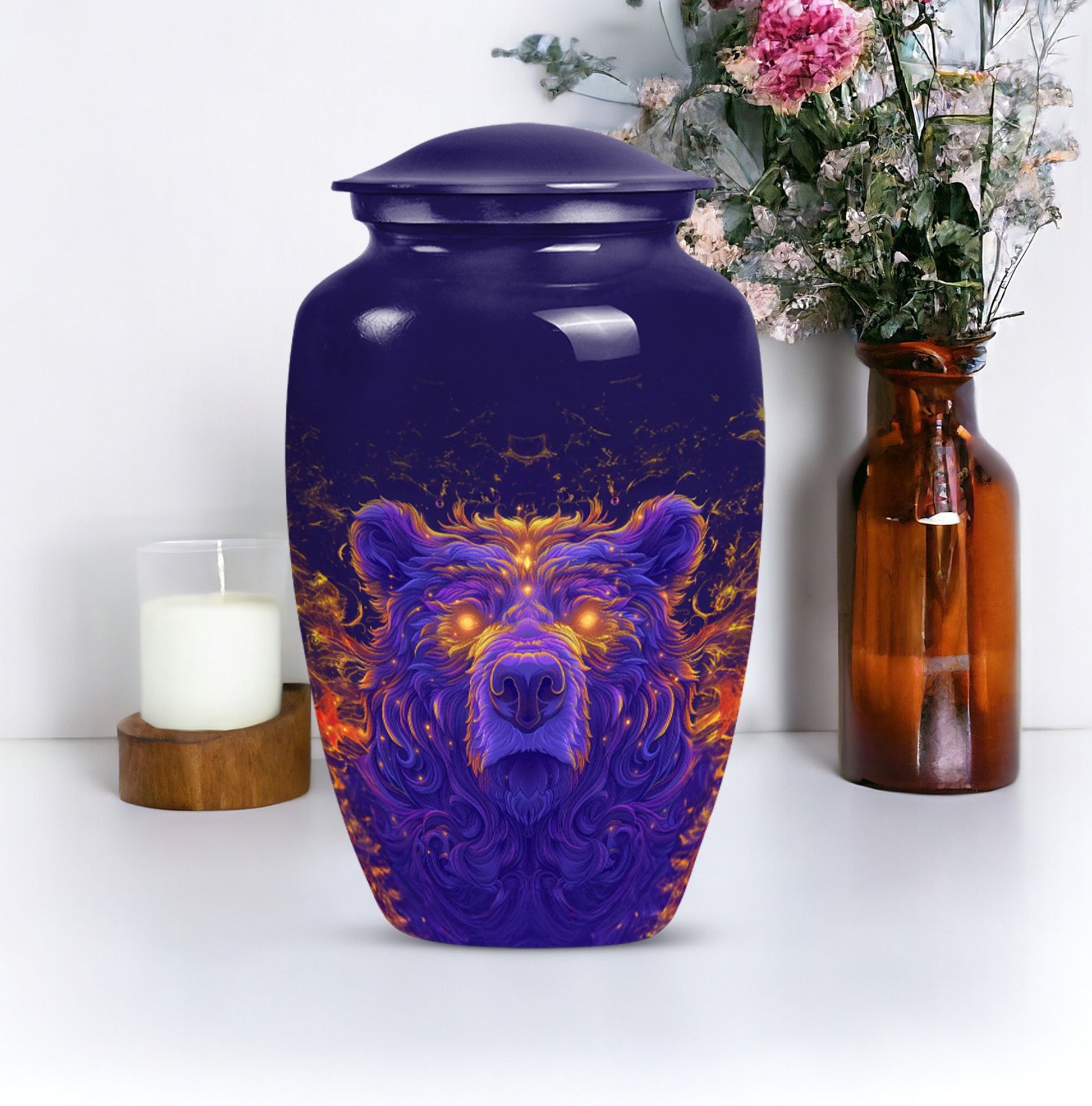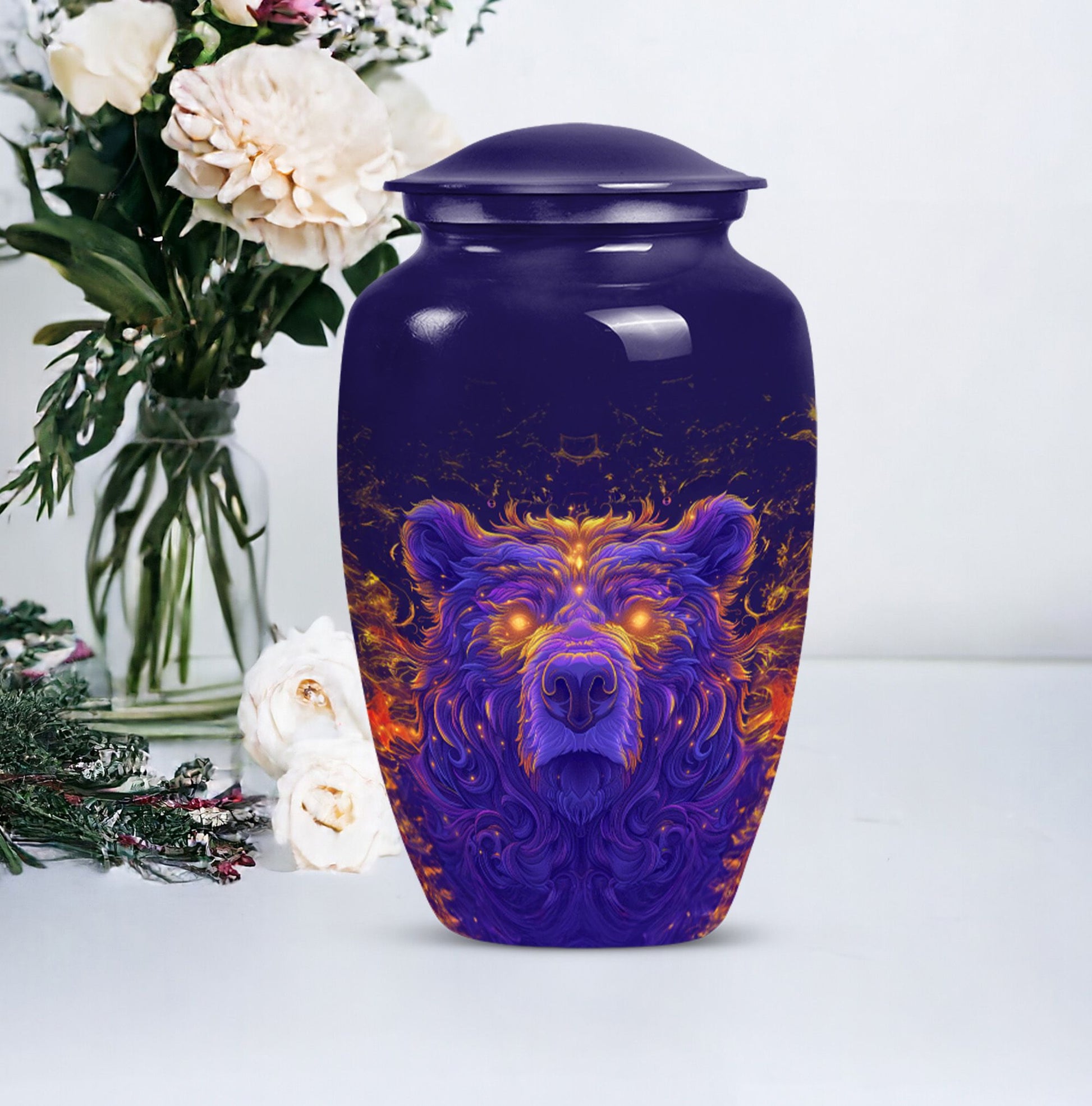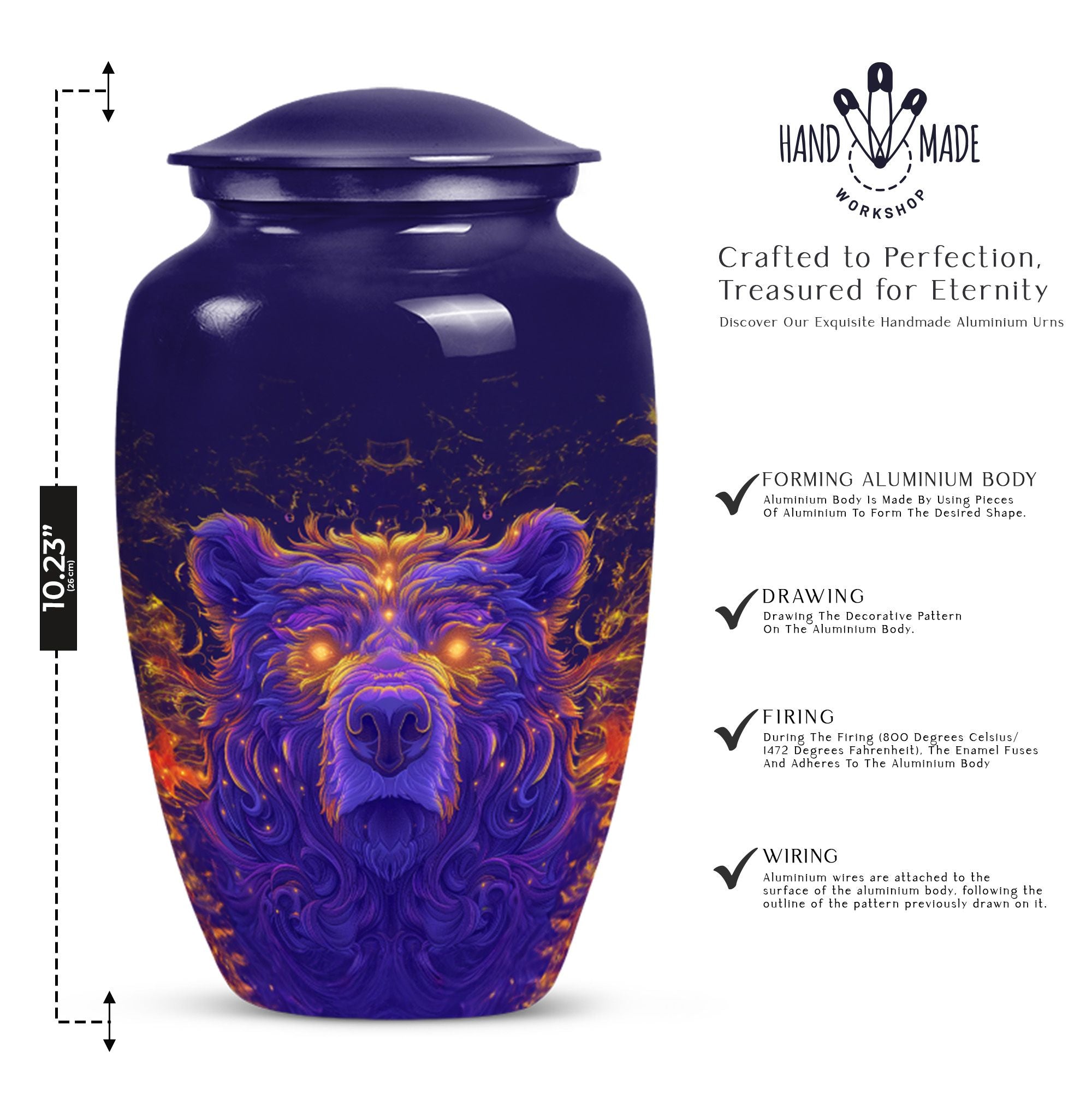 Discover a dignified and unique way to commemorate your beloved with our bear urn. Crafted with excellent precision, this 10-inch cremation urn for men is made meticulously from high-quality aluminium, ensuring superior durability. As a touching tribute to your departed, it provides a capacity of 200 cubic inches, accommodating the ashes comfortably. Its abstract theme and the classic urn styling adds an element of refinement to this necessity. The package comes with a velvet pouch, providing a protective containment for the ashes. Though it weighs 3.3 pounds, its design ensures it can discreetly fit into any corner of your home. This large urn for adult male ashes can be personalized with engraved names to make it more emotionally significant. This cremation urn for two adults is not just a burial urn, but an exquisite piece with an endearing appeal. Ideal for keeping memories alive, it truly resonates with the phrase - 'Remembered with love'.