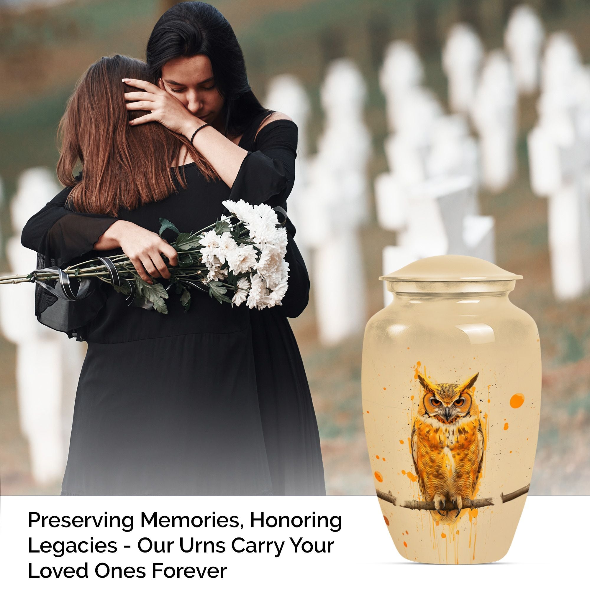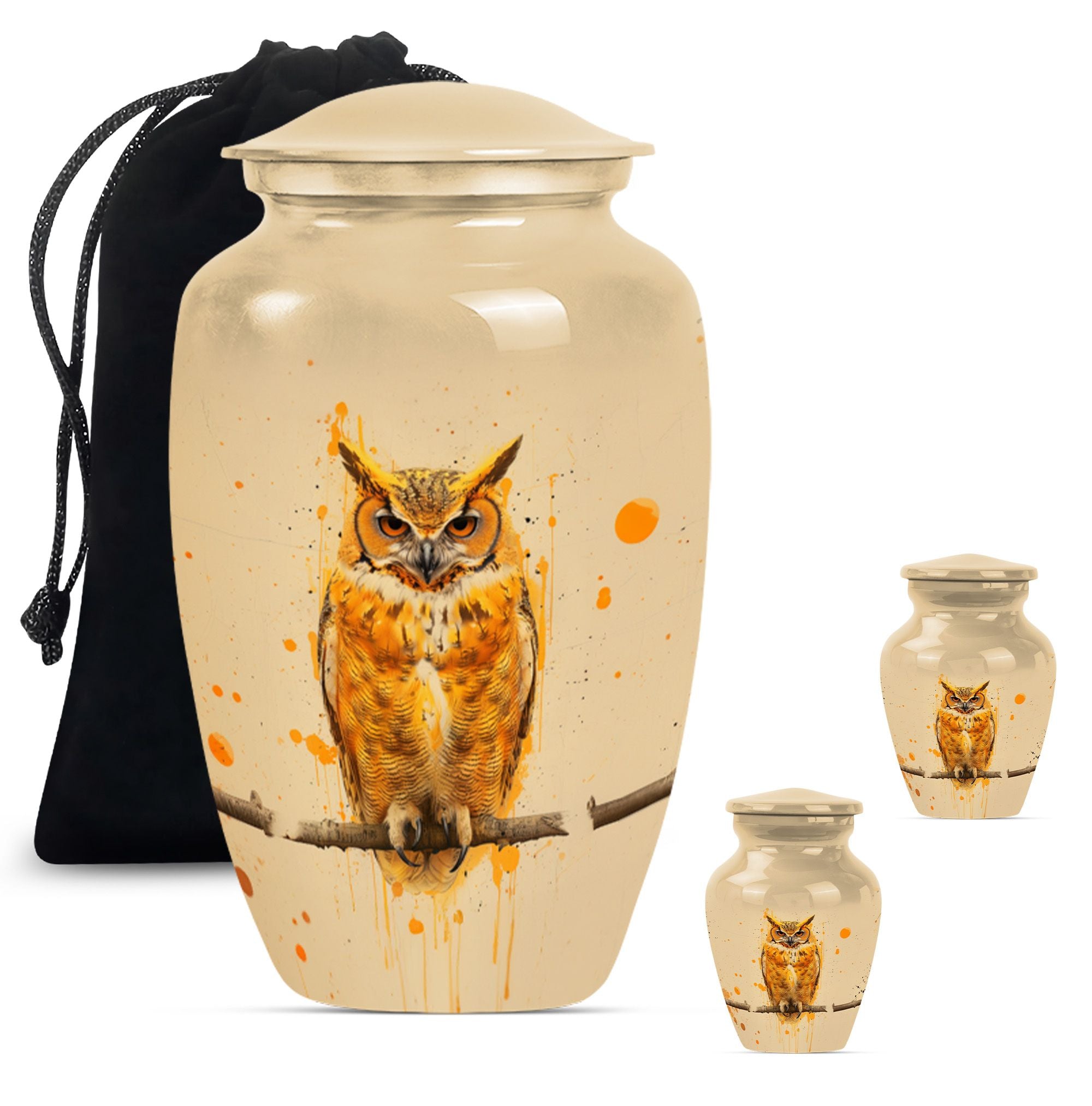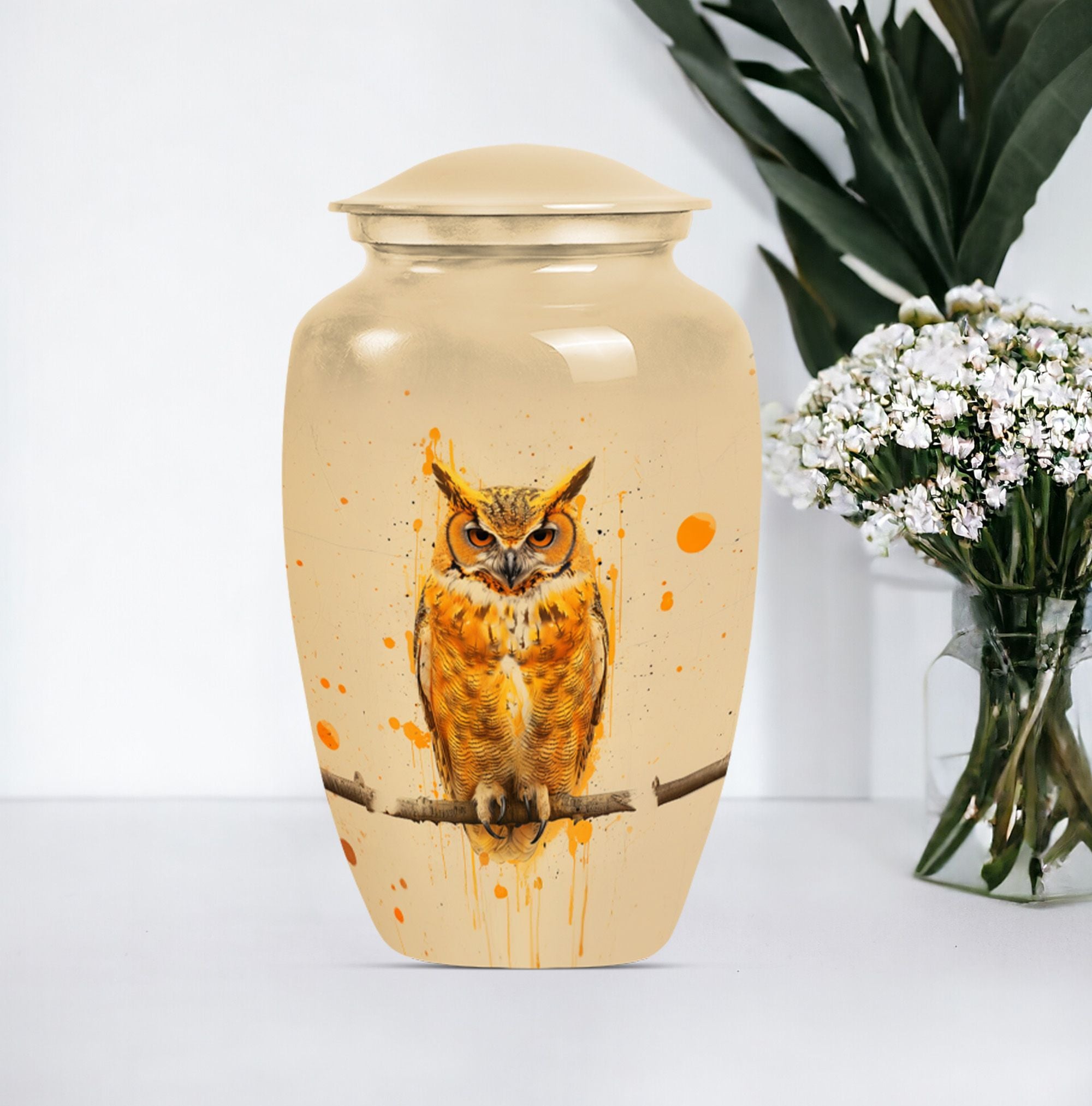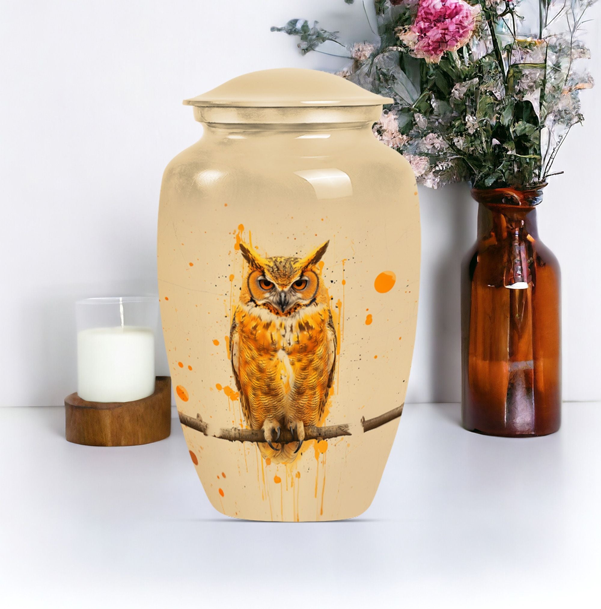 Give your loved ones the respectful remembrance they deserve with this distinguished 'owl urn'. Made from robust aluminium, it's designed with an evocative 'Wolf Howling' theme, adding a touch of serene mystique to its classic urn look. With an impressive size of 10 inches and weighing 3.3 pounds, it is tailored carefully to house up to 200 cubic inches in capacity. The urn is primarily purposed for men, making it a unique entrant amongst 'cremation cremation urns for men' or 'Large Urns'. A velvet pouch is included in the package, ensuring safe containment of the ashes within the urn. What sets it apart is its customizable nature – personalize it with engraved names, making it a touching memoir. This urn elegantly plays its part as a 'cremation urn' or 'funeral cremation urn', doubling as a 'shaped urn box' for ashes. Subtly embodying sentiments as 'burial urns for cremation ashes mother', it provides comfort and solace in bringing peace to the departed.