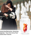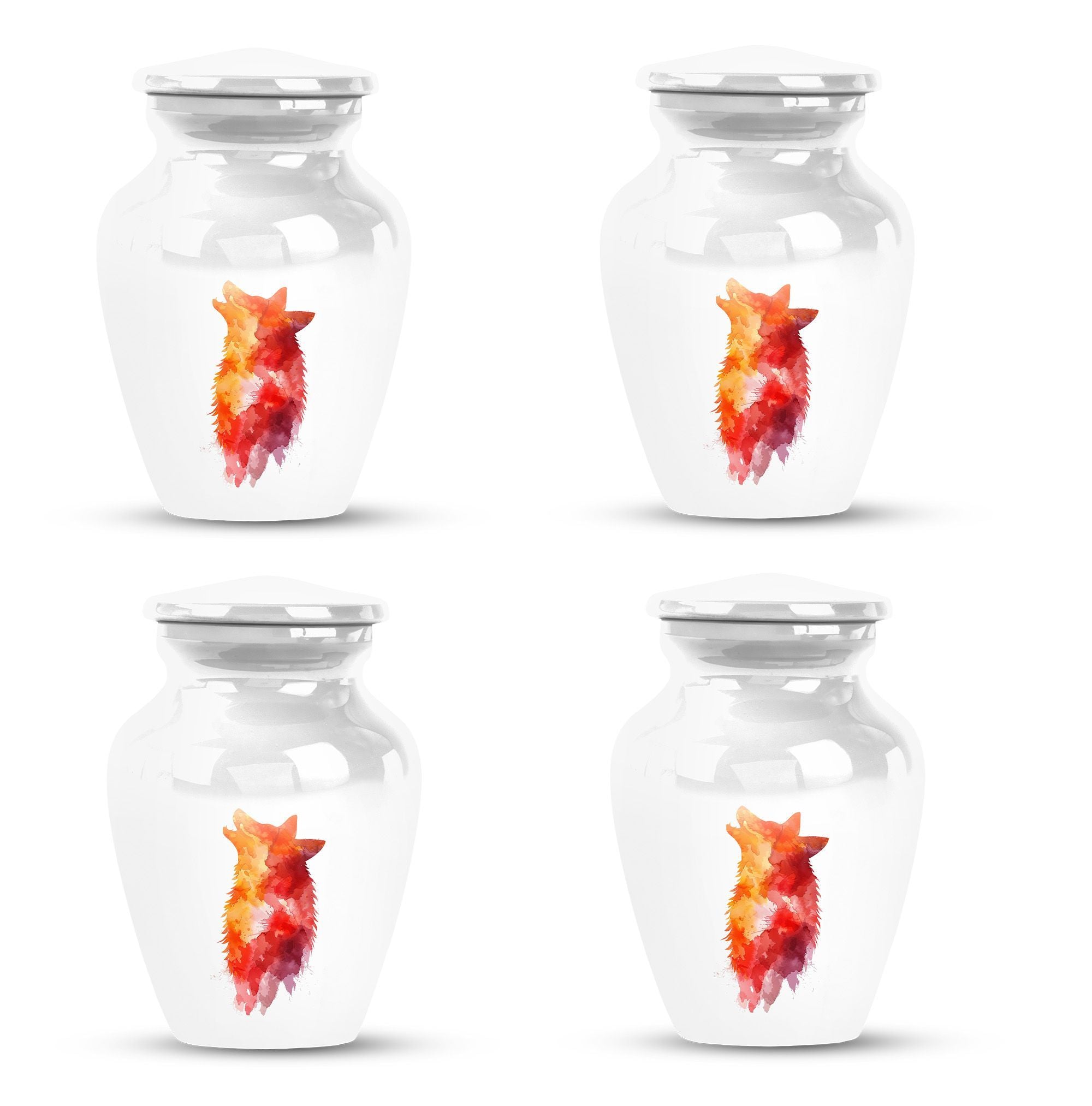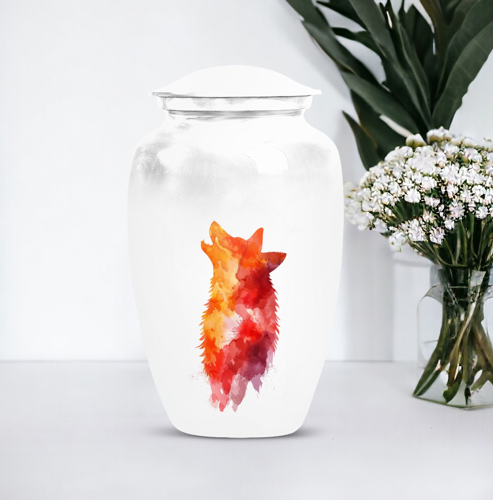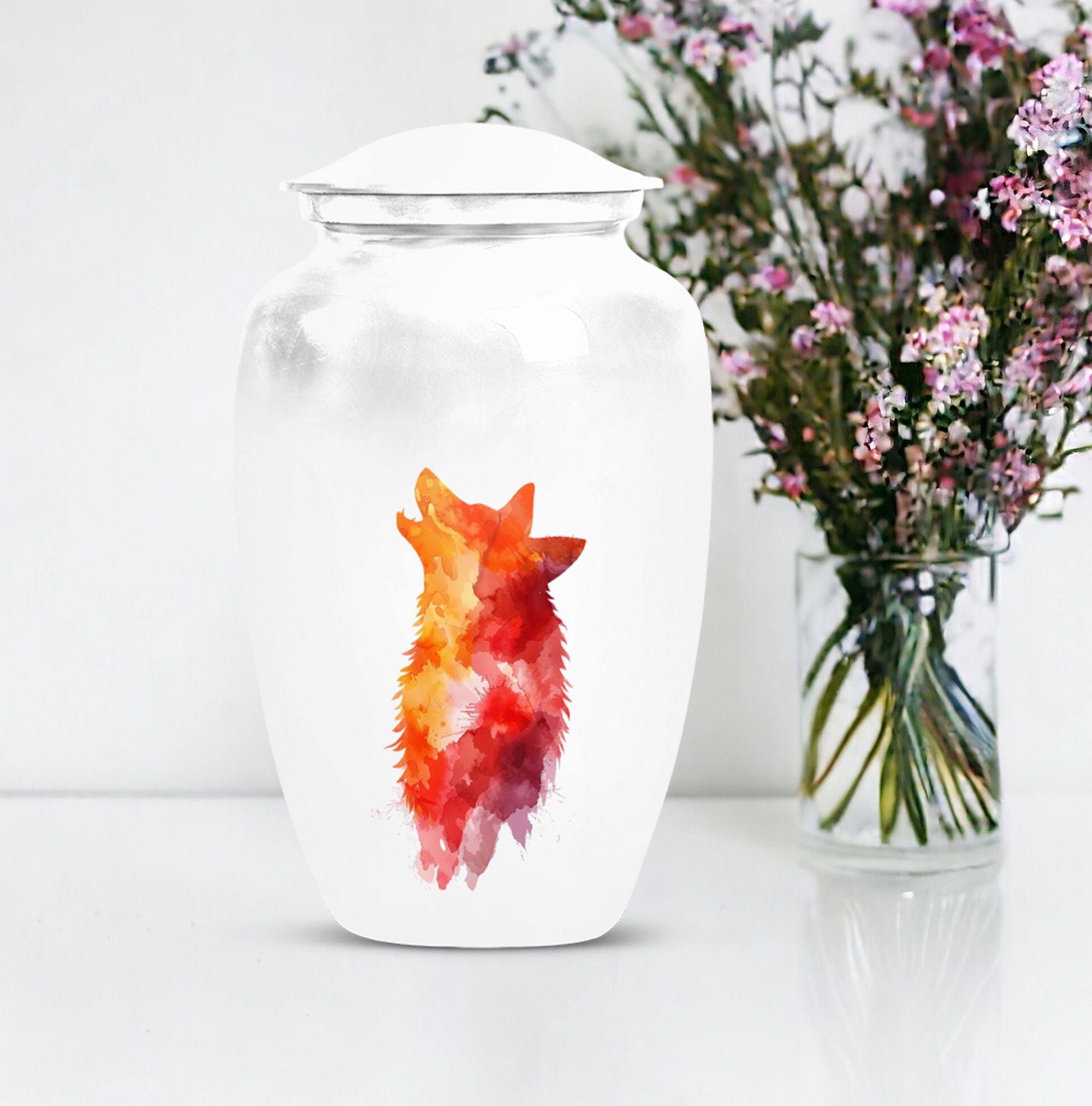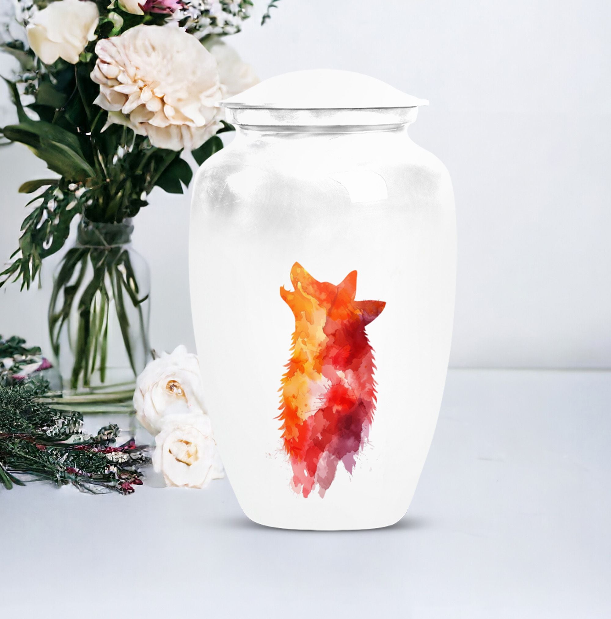 Engulf your dear departed one's remembrance in the captivating allure of our meticulously crafted Wolf Howling Urn, a standout addition to our large memorial forever urns selection. The allure of this classic urn is enhanced by its glistening aluminum composition, exquisitely polished to a radiant finish. Its hefty weight of 3.3 pounds and height of 10 inches speaks to its sturdiness and durability. It comes with an accompanying velvet pouch, an ideal containment space for precious ashes. This cremation urn's capacity eases your worries, as it can comfortably hold up to 200 cubic inches. For that personal touch, fashion the urn with an engraved name, injecting a personal touch into this serene artifact. The theme wholly absorbs you, inspired by a wolf's spiritual call reverberating quietly in the hush of the pines. This vessel is not just a cremation urn; it is a testament to the indomitable strength, resilience, and beauty that was the essence of your loved one's life. Its unique wolf howling theme resonates deeply in hearts, acting as a constant reminder of shared memories and timeless moments. This human cremation urn reinforces the cherished thought - Gone, but never forgotten.