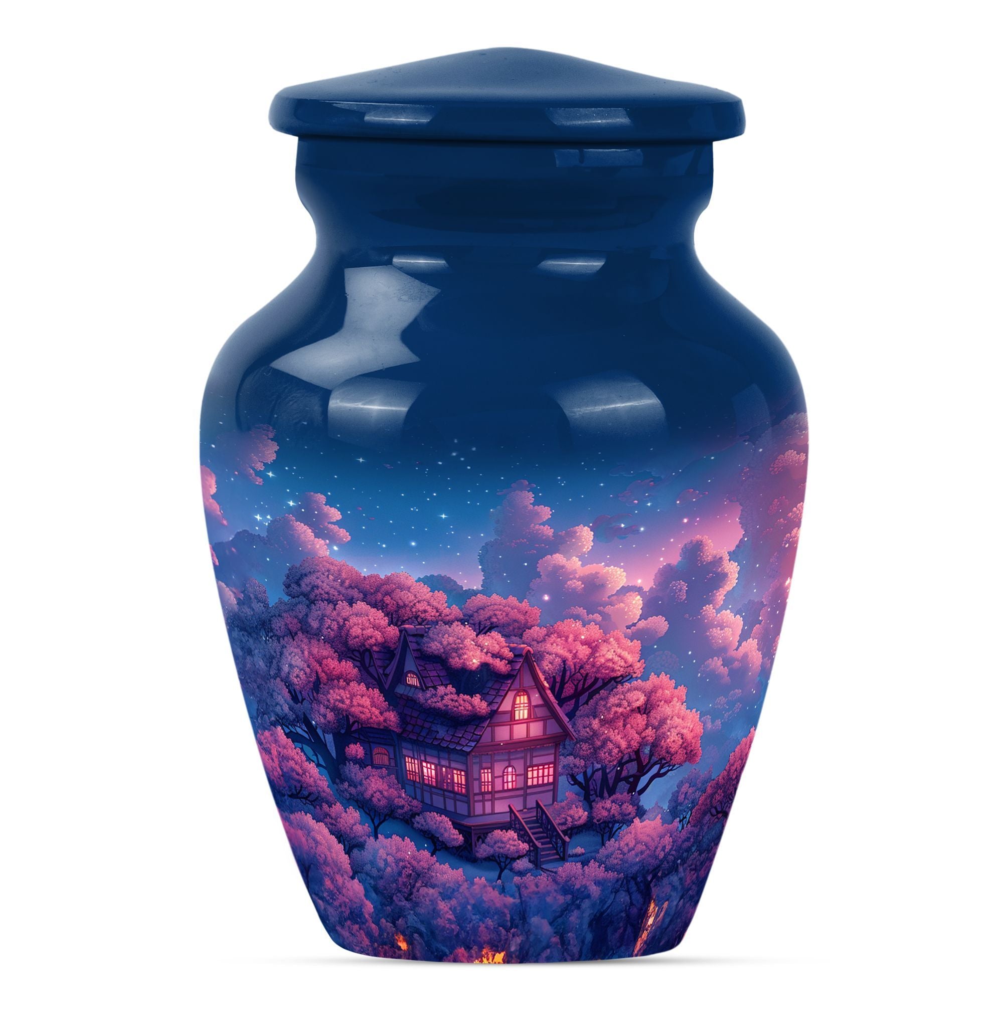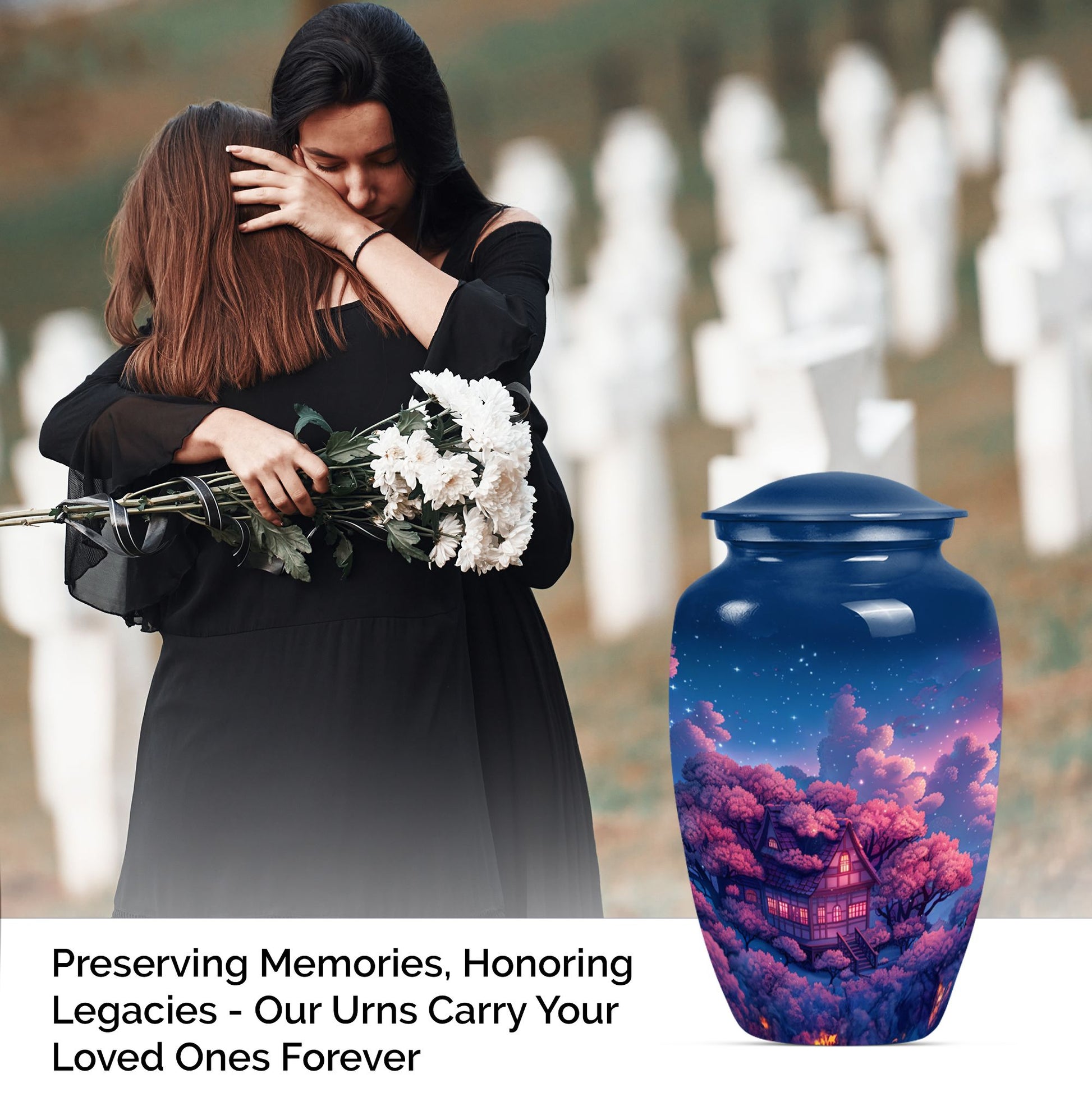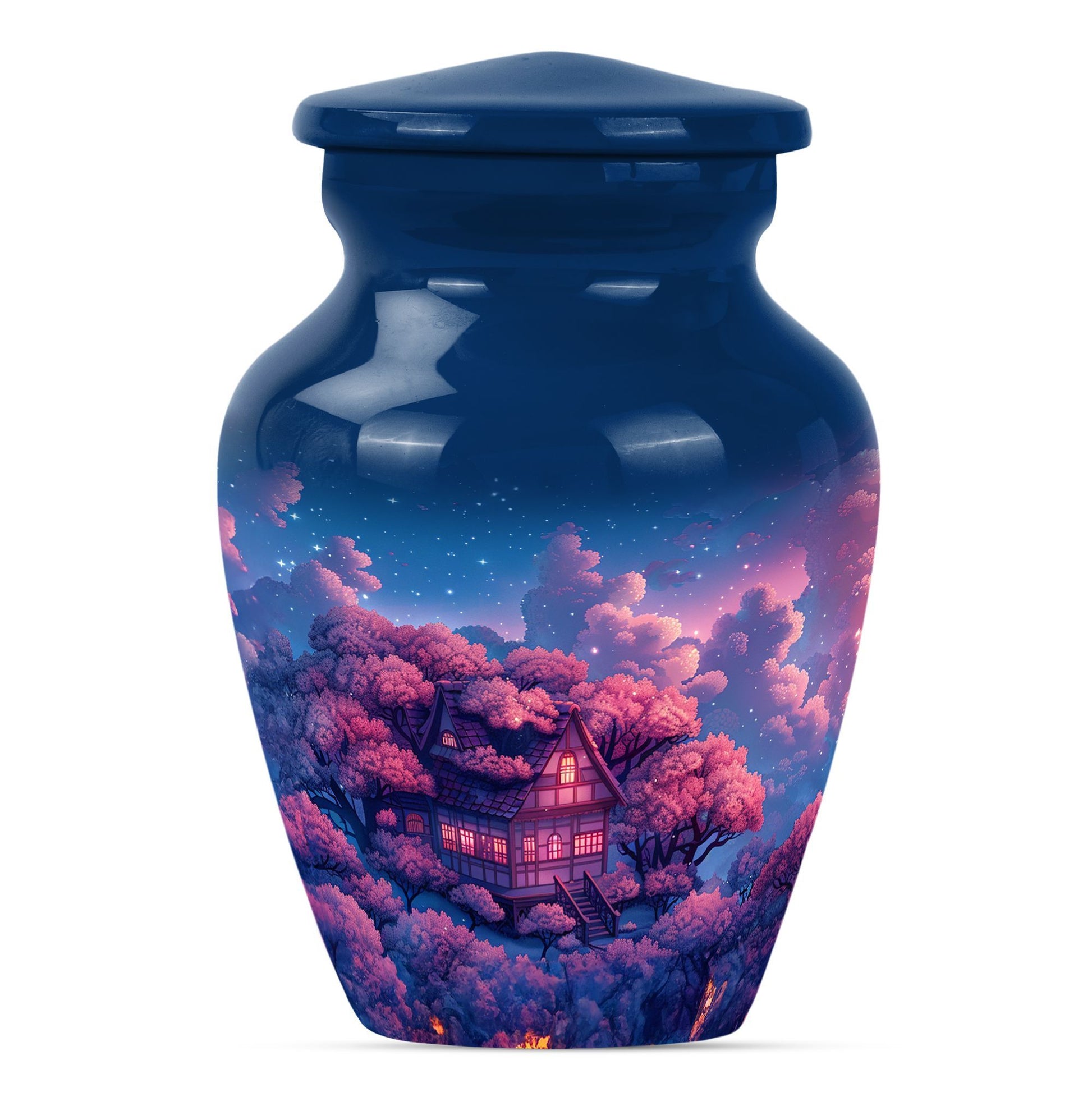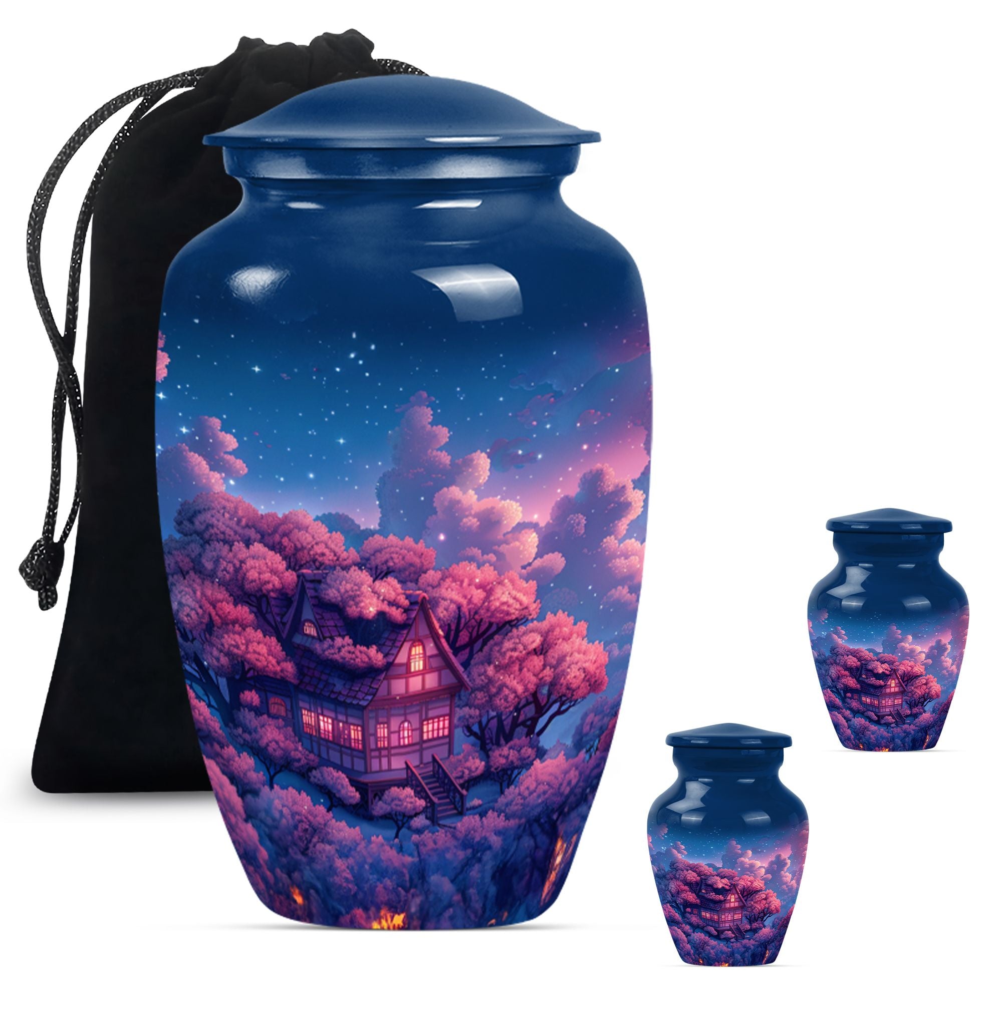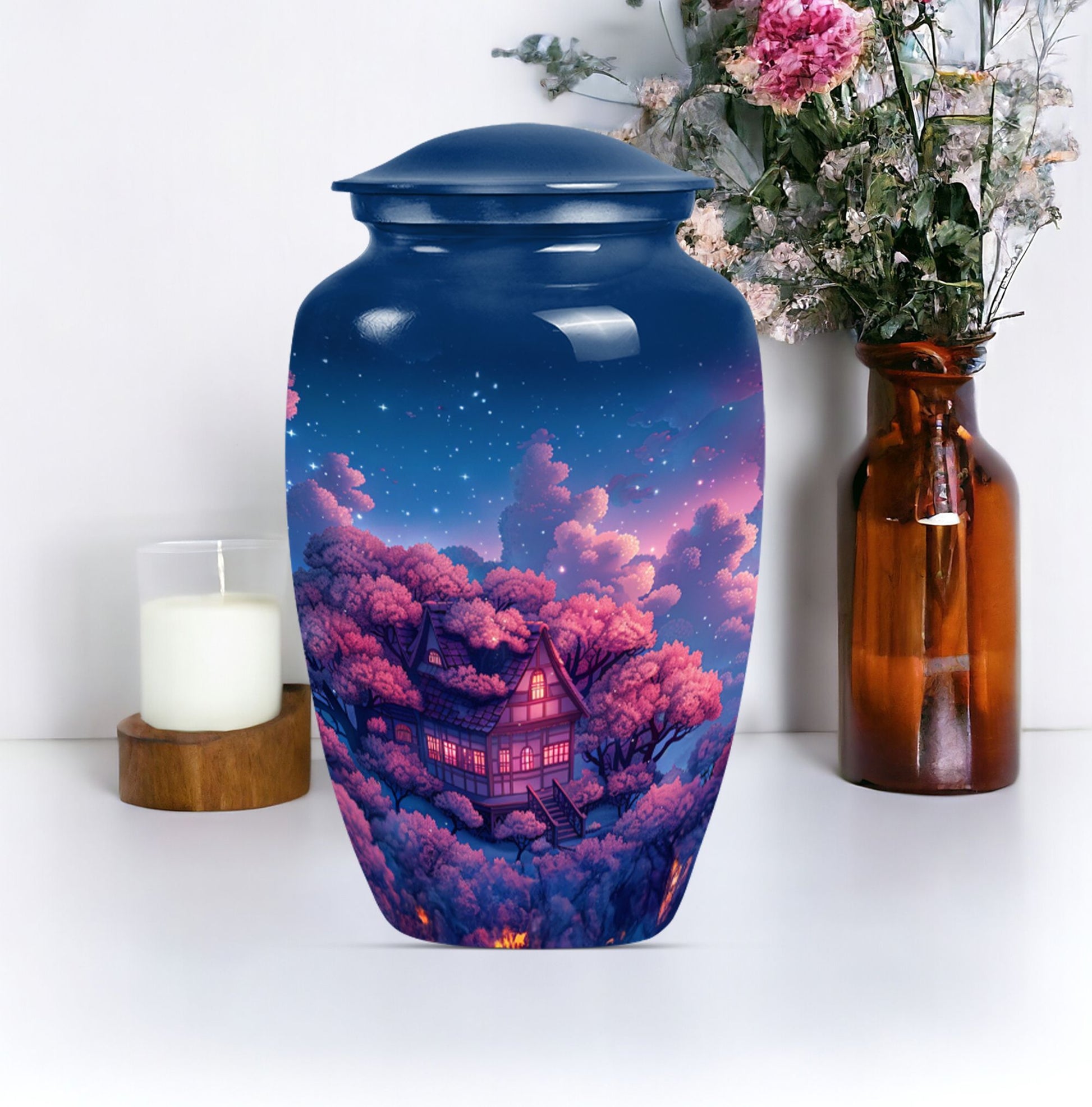 Immerse yourself in the tranquility and peace that our Clouds Urn brings. This Memorial Adult Urn speaks volumes with its classic and traditional design. With dimensions of 10 inches in height, this expansive urn balances delicacy with durability. The large capacity of 200 cubic inches smoothly accommodates, signifying its ideal use in memorial ceremonies and rituals. Our urn is enriched by its butterfly theme, an emblem of renewal and hope, empathetically aligning with your heartfelt feelings. Forged from robust aluminium, it weighs a solid 3.3 pounds, echoing its secure and sturdy nature. Offering a unique opportunity, the urn can be personalized with engraved names, turning it into profound keepsake. It comes encased in a velvet pouch ensuring the dignified containment of ashes. From funeral burial urns to ashes urn, this cremation urn, suitable for the containment of human ashes aids in turning sorrow into serenity, every time it is beheld.