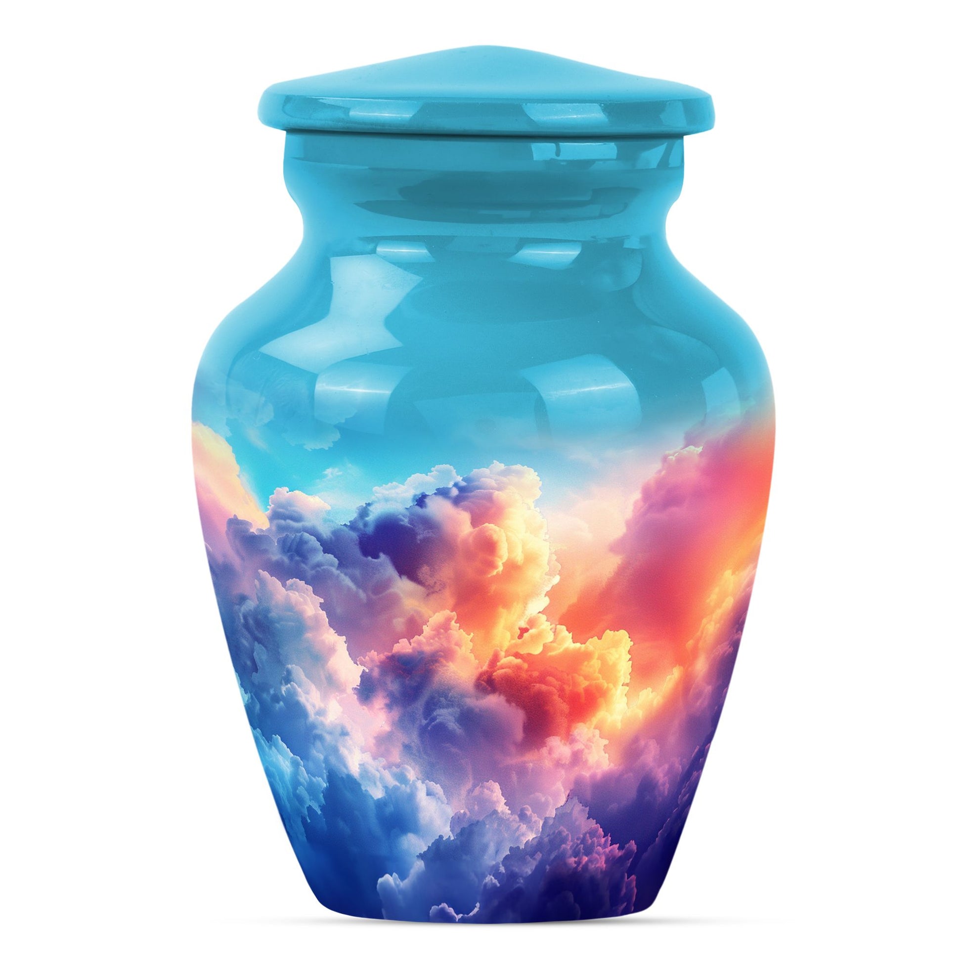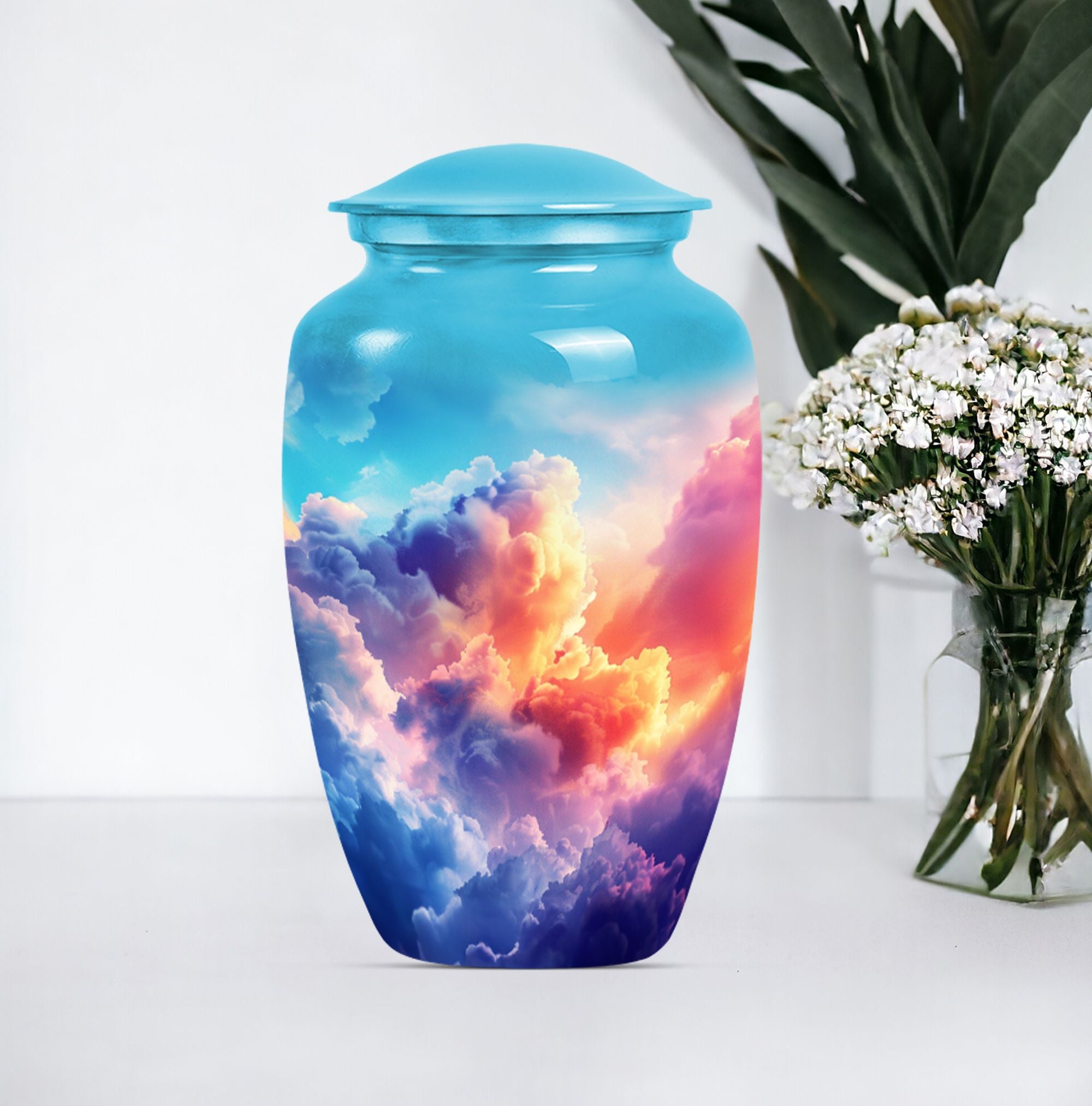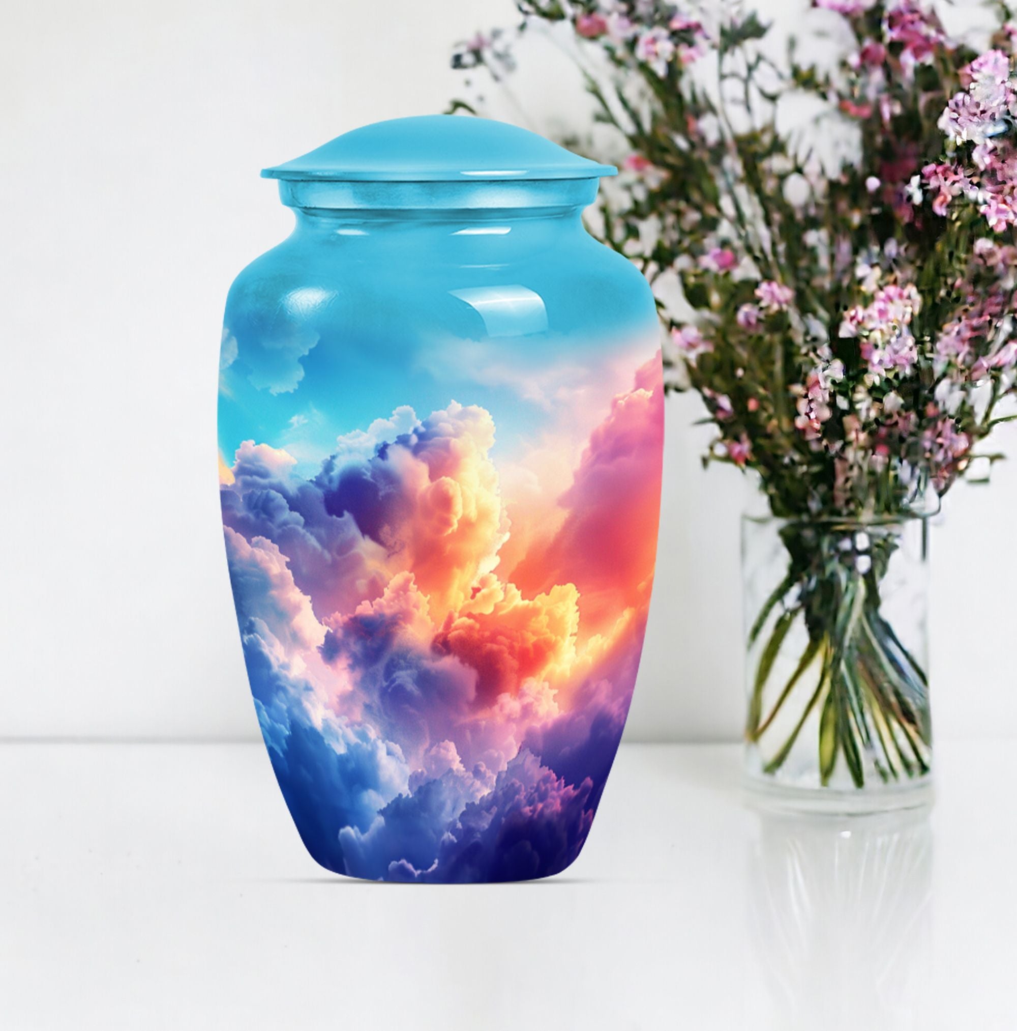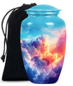 Experience the peace of mind that comes with our exquisite Butterfly Cloud Urn, specifically crafted for seniors and adults wishing to honor loved ones 'in the clouds.' Notable for its aluminum material, this larger-than-life, 10-inch memorial urn offers an impressive capacity of 200 cubic inches, sufficiently housing the ashes of an adult male. Its solid weight of 3.3 pounds exalts a sense of permanence and unyielding remembrance. The urn package renders a delicate touch to its endearing purpose with the inclusion of a velvet pouch ideally suited for the containment of ashes. To add further value, the urn accommodates customization, allowing you to personalize it with engraved names. Its profound Butterfly theme whispers messages of spiritual transformation and rebirth - a fitting tribute to the departed. A rare blend of thoughtful design and quality material, this urn also stands as an ideal choice for companion cremation. It emerges as a popular find among large urns and funeral medium size urns for human ashes. Consider our Butterfly Clouds Urn, poignant in its purpose and pleasing in its appearance.