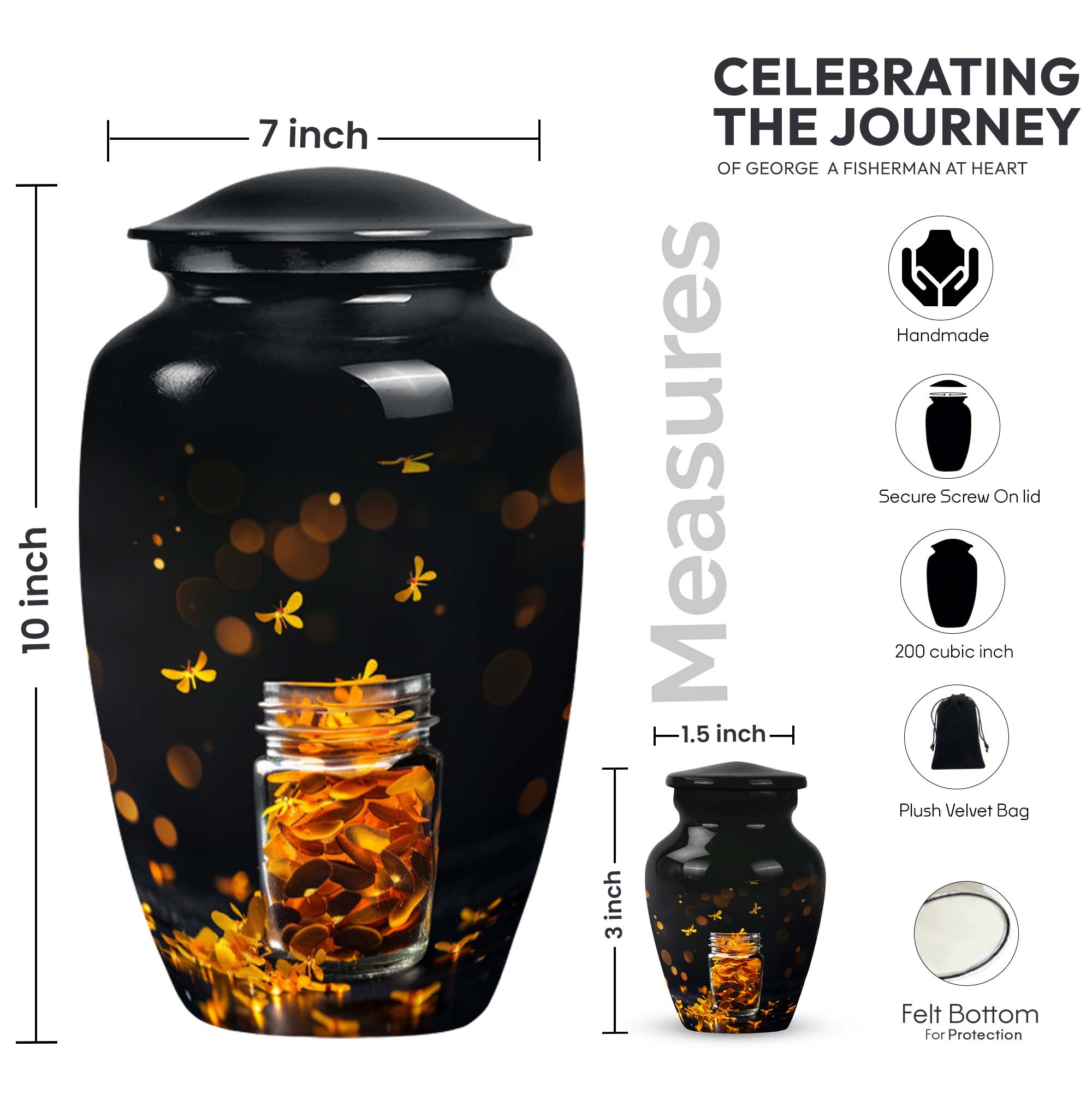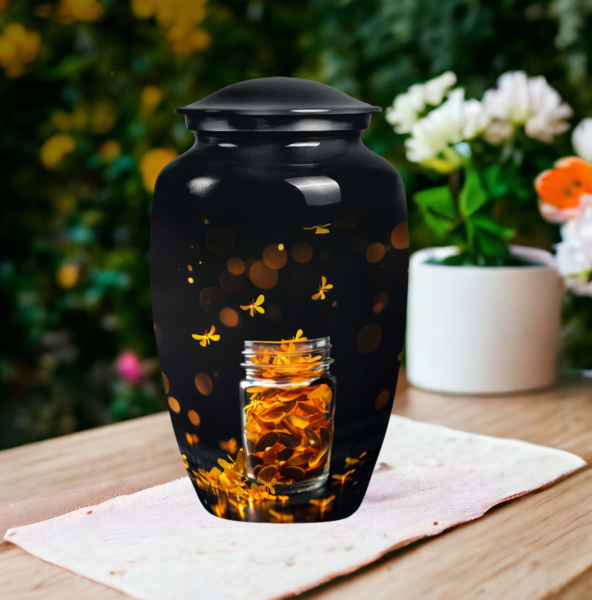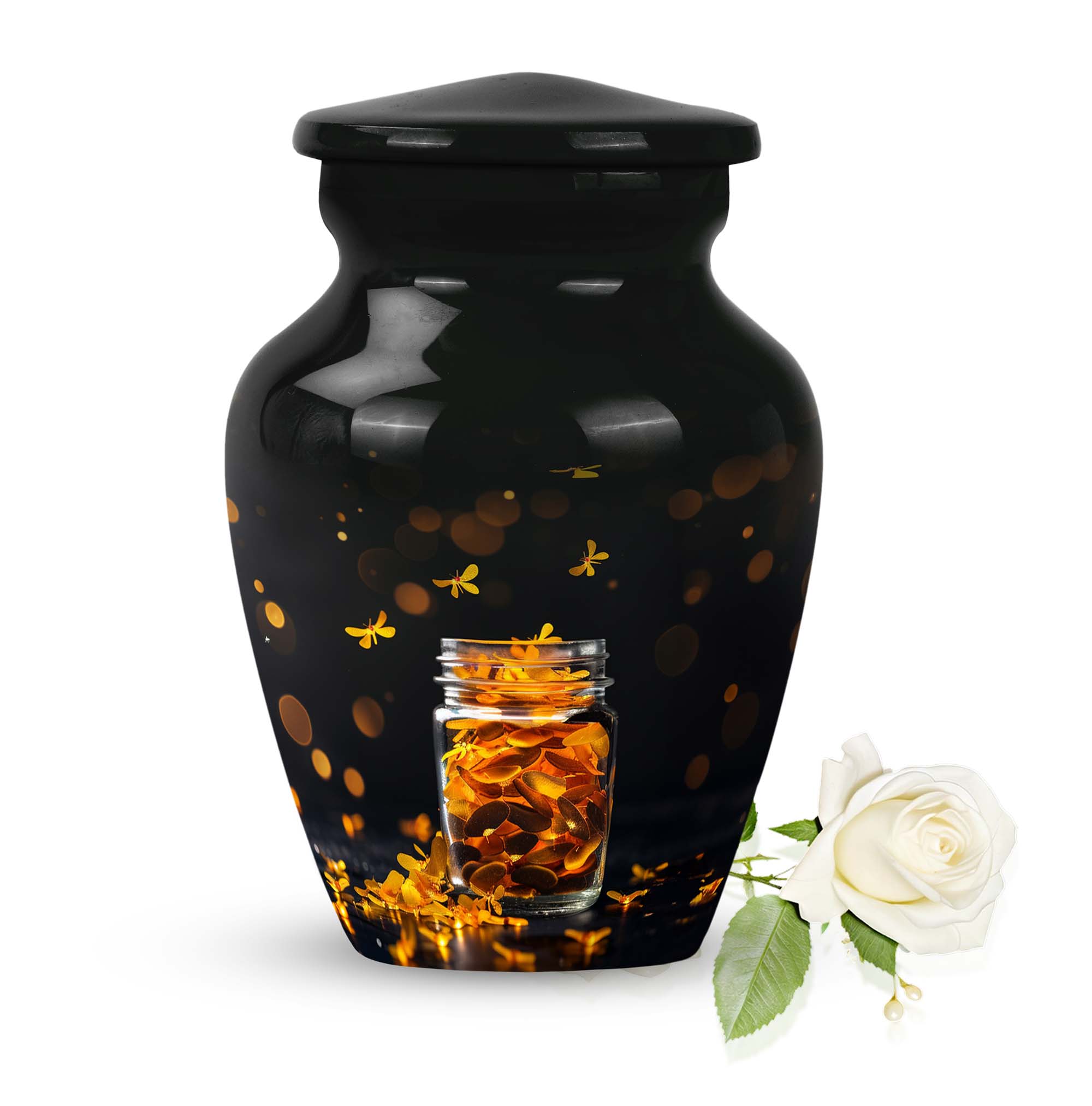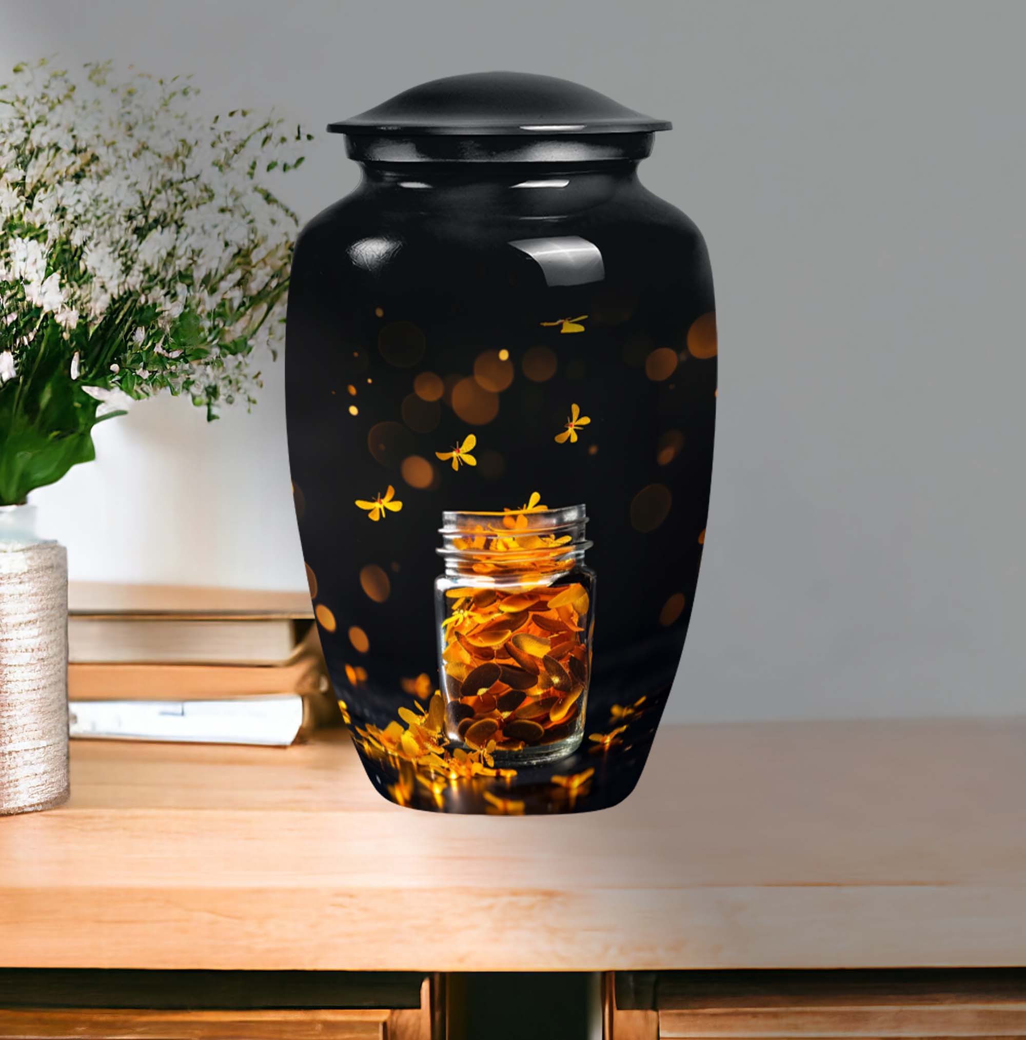 Enrich your remembrance rituals with our 10-inch Honey pot Urn, an exceptional large aluminium urn designed to provide a warm and graceful rest place for the ashes of your beloved. The abstract theme adds an artistic depth to the classic urn design. The urn is sturdy, representing longevity, with a weight at 3.3 pounds and dimensions of 10 inches in height. To cater to varying needs, this burial urn is accommodating, with a capacity of 200 cubic inches. For a customized touch, add engraved names to the memorial urn, making it a unique tribute. The urn comes complete with a beautifully crafted velvet pouch for containment of ashes, contributing to its overall elegance. Perfectly suited for adults and seniors, this product encapsulates the sentiments of a spiritual ceremony while offering a comforting presence. Our Honey pot Urn is not just an urn but a piece of art, seamlessly consolidating memorial urns and burial urns functionality. Note: 'Funeral urn for mom' and 'urn ash ashes adult' form part of our secondary keywords.