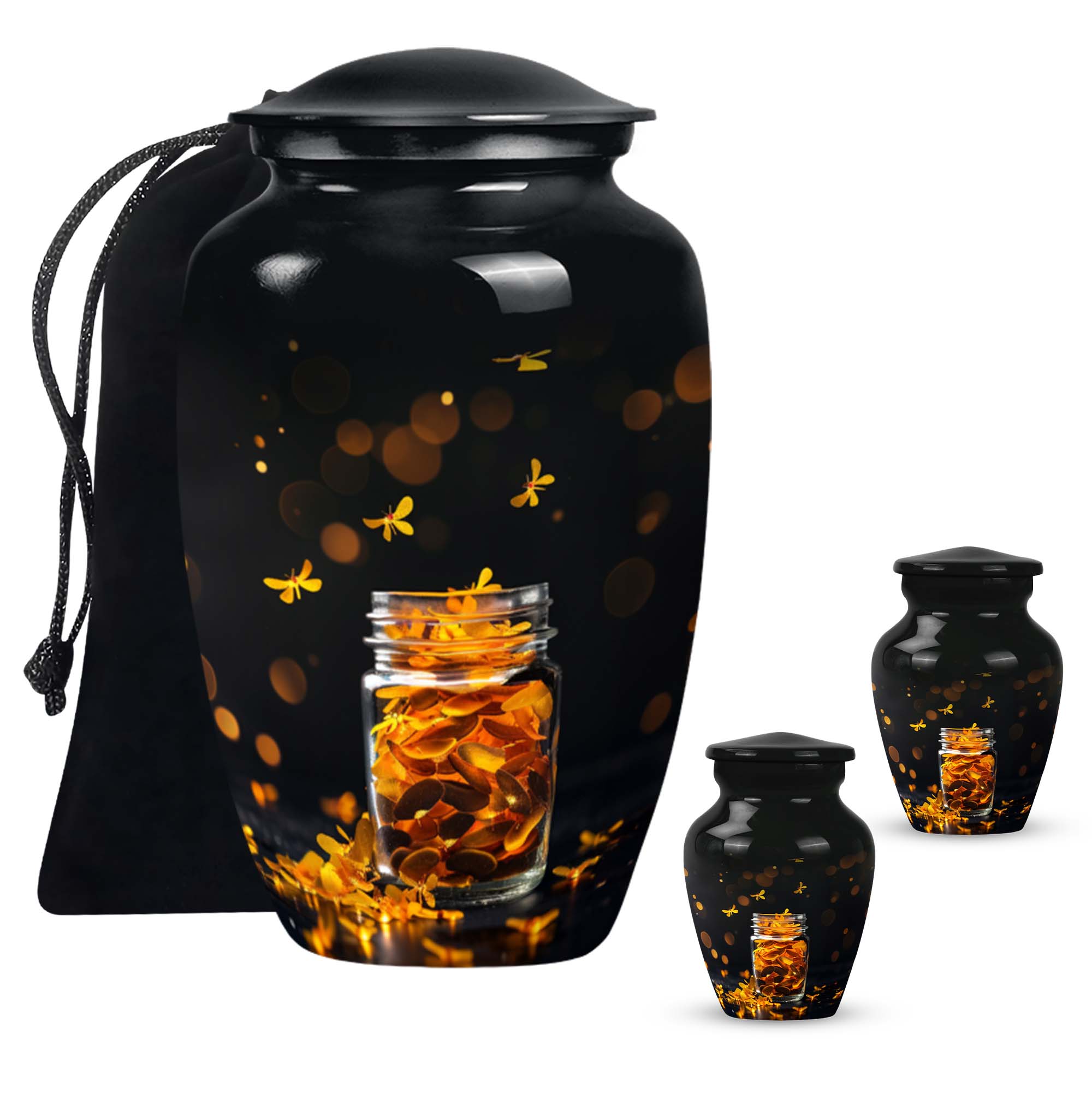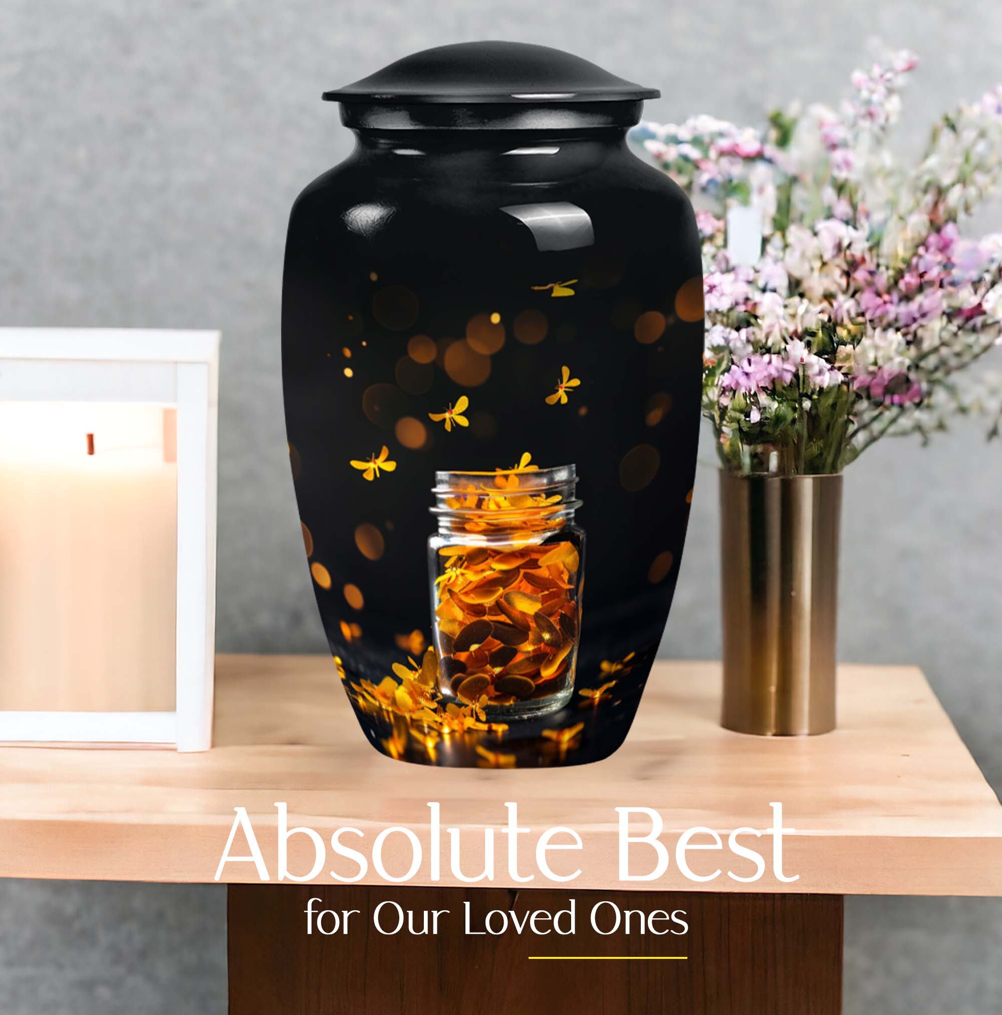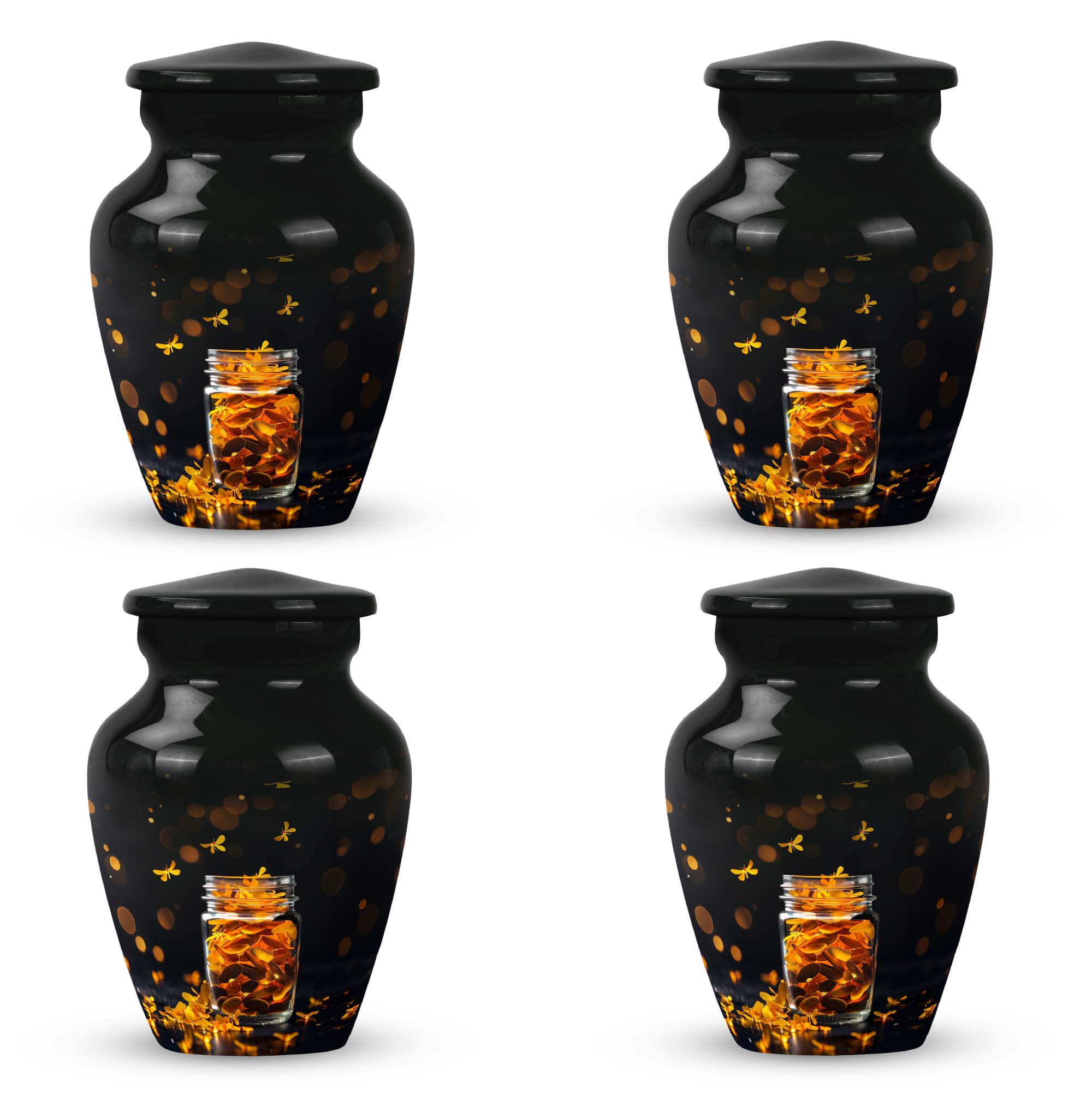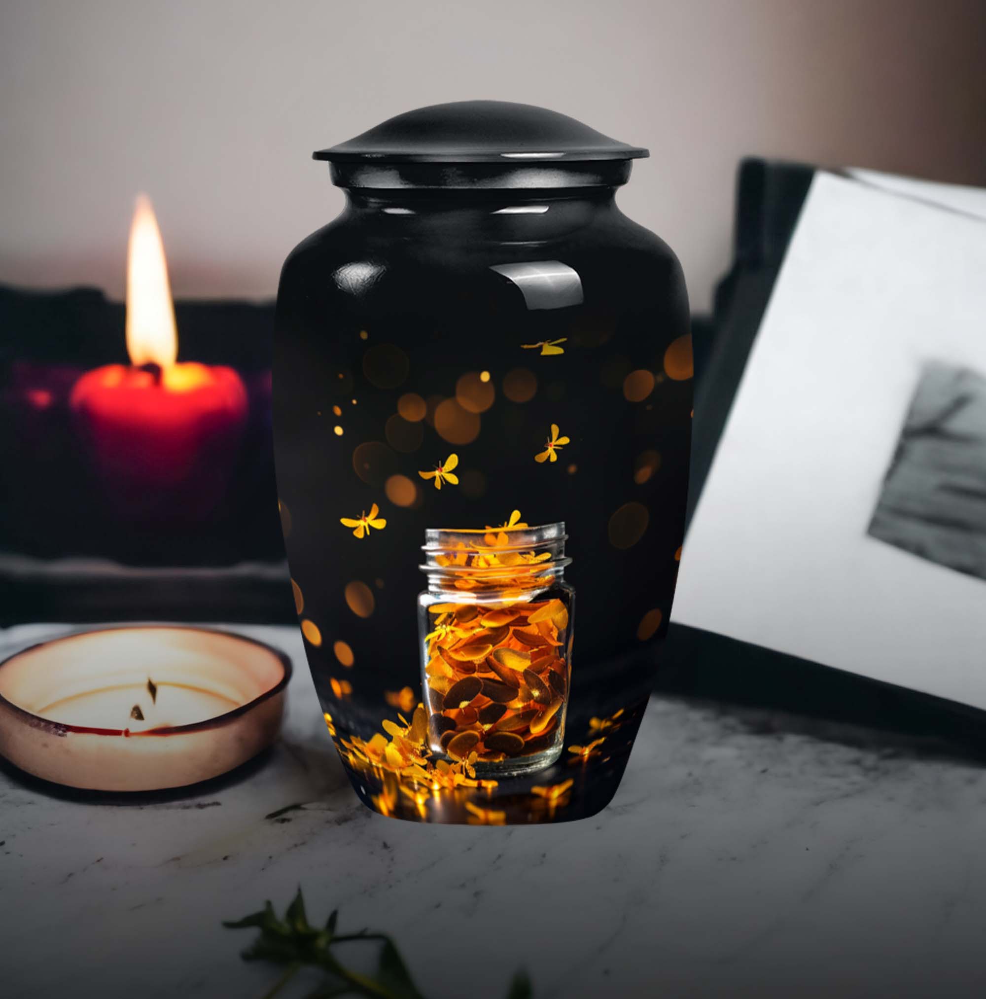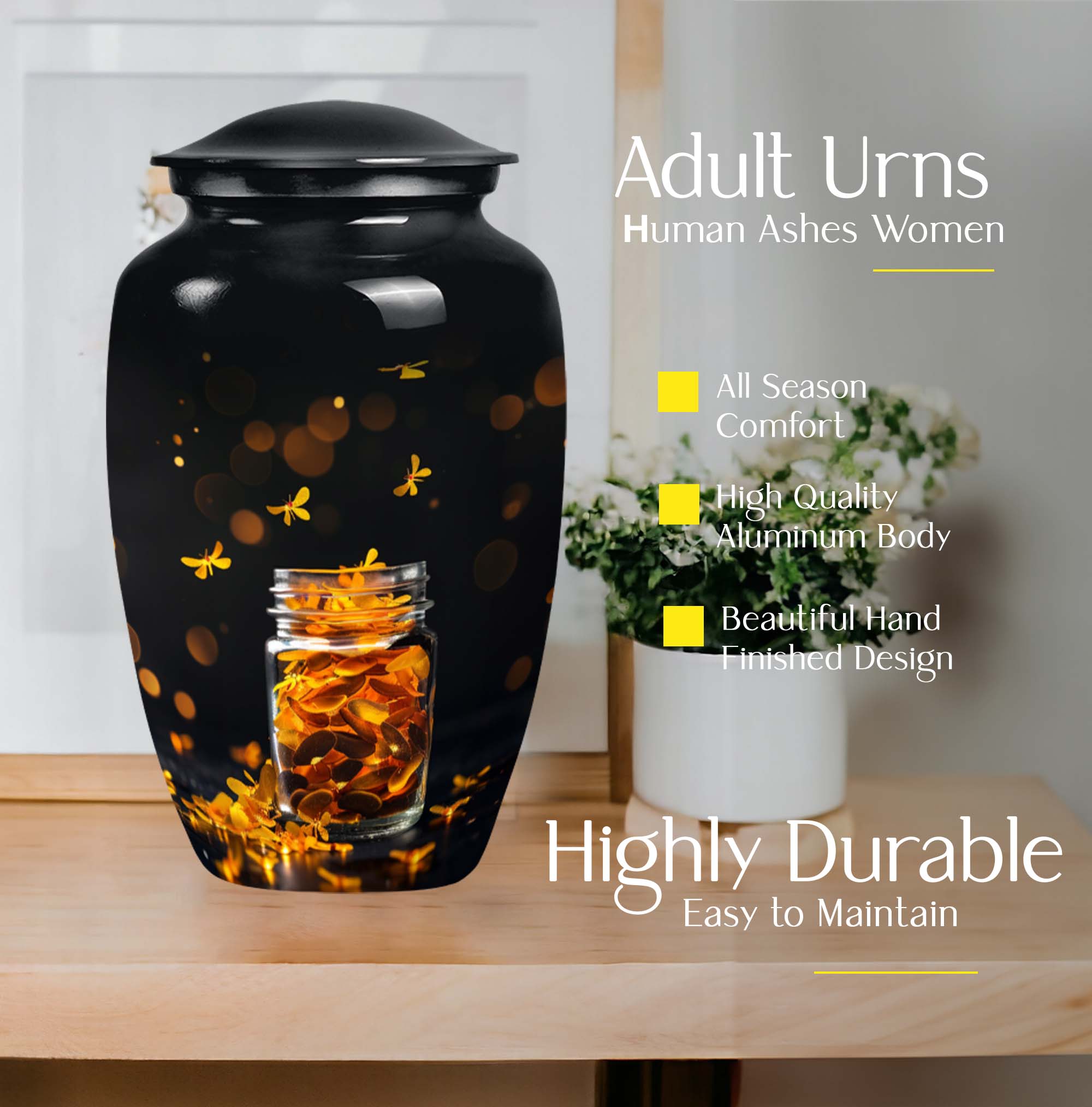 Enrich your remembrance rituals with our 10-inch Honey pot Urn, an exceptional large aluminium urn designed to provide a warm and graceful rest place for the ashes of your beloved. The abstract theme adds an artistic depth to the classic urn design. The urn is sturdy, representing longevity, with a weight at 3.3 pounds and dimensions of 10 inches in height. To cater to varying needs, this burial urn is accommodating, with a capacity of 200 cubic inches. For a customized touch, add engraved names to the memorial urn, making it a unique tribute. The urn comes complete with a beautifully crafted velvet pouch for containment of ashes, contributing to its overall elegance. Perfectly suited for adults and seniors, this product encapsulates the sentiments of a spiritual ceremony while offering a comforting presence. Our Honey pot Urn is not just an urn but a piece of art, seamlessly consolidating memorial urns and burial urns functionality. Note: 'Funeral urn for mom' and 'urn ash ashes adult' form part of our secondary keywords.
