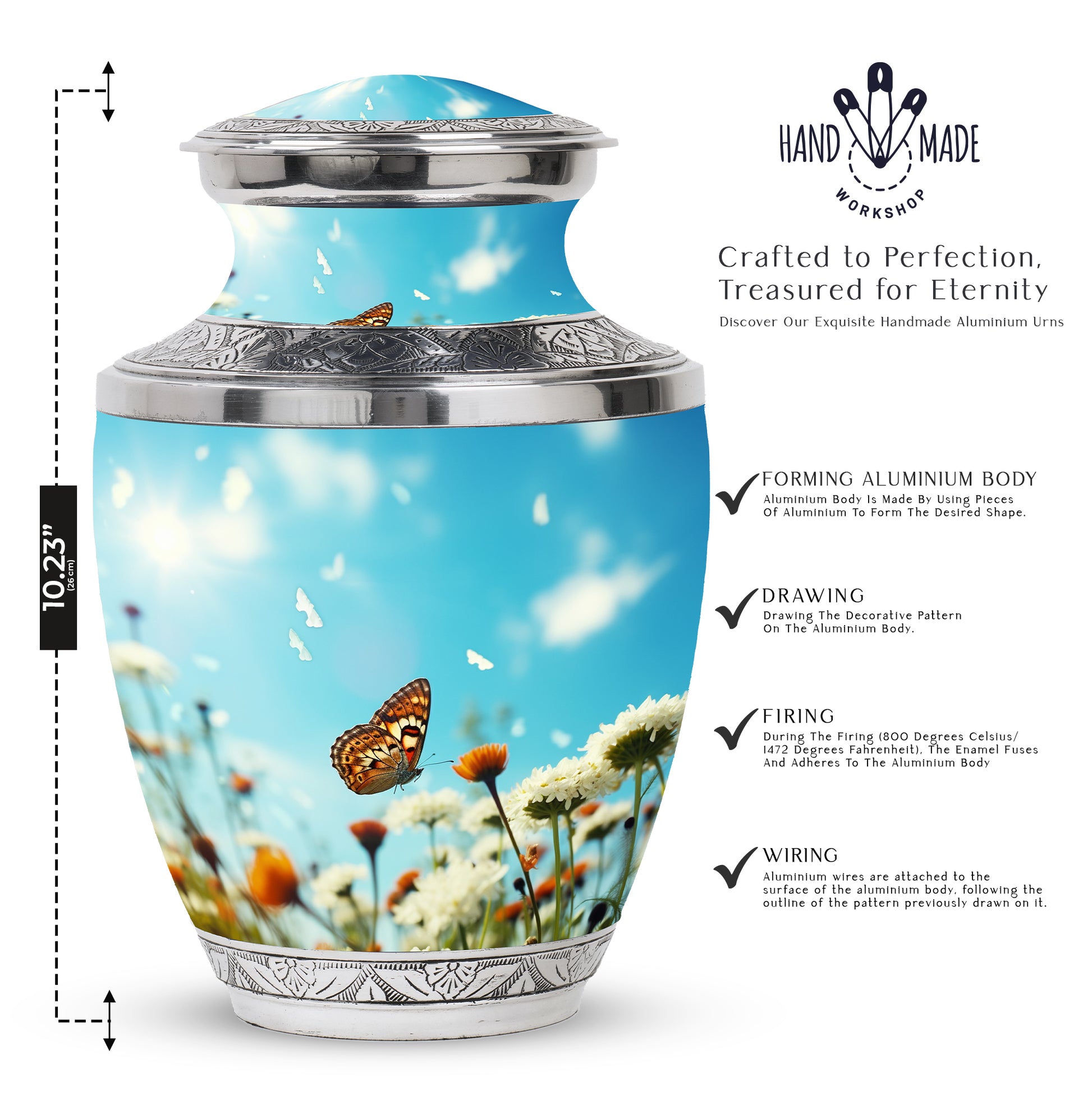 Each urn, adorned with colorful butterflies, serves not only as a final resting place but also as a celebration of life and love. Perfect for families looking to cherish the memory of their loved ones together. Embrace the beauty and durability of our 10inch companion urns, crafted to honor and remember with grace.