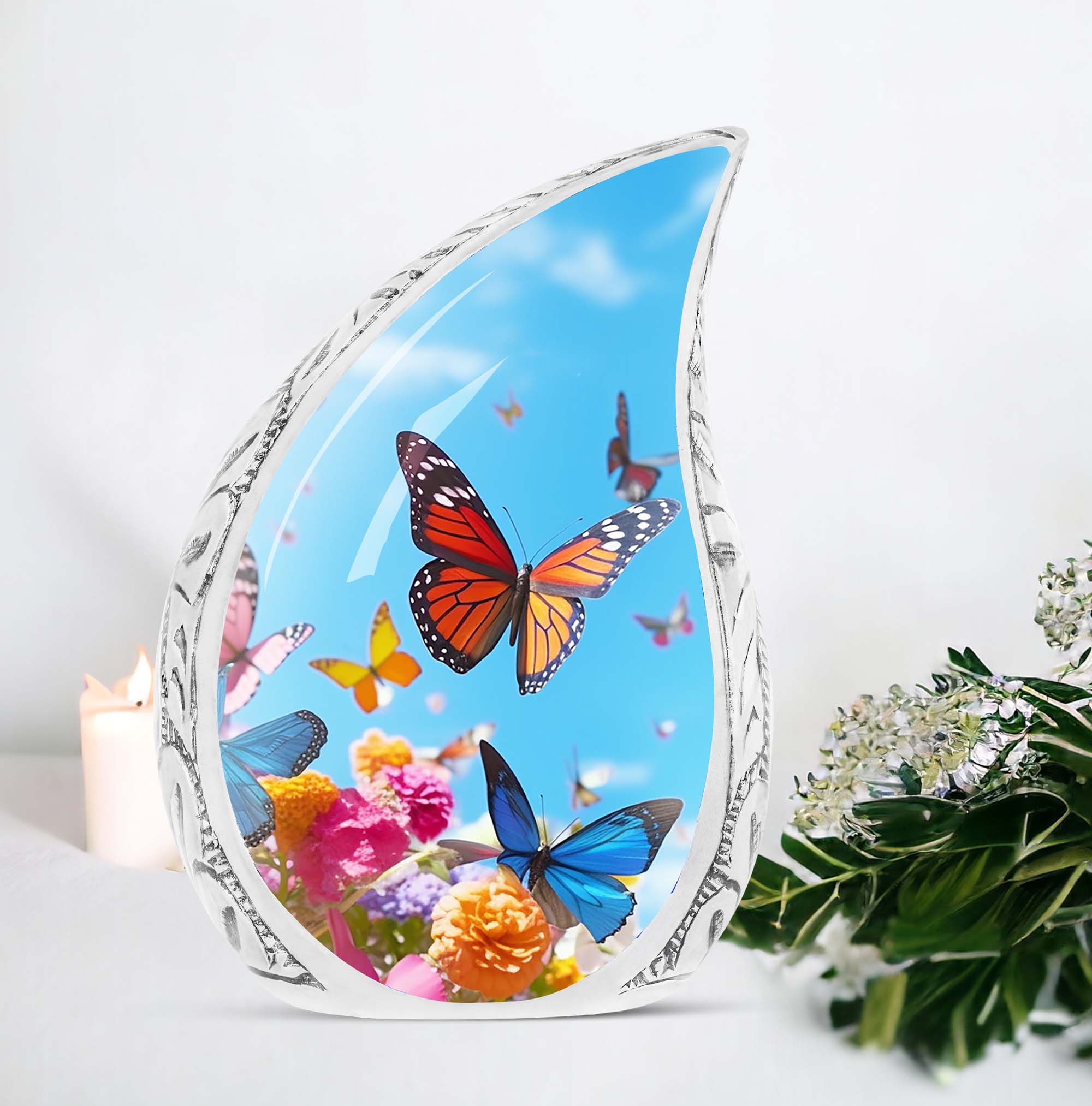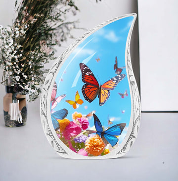 The Colorful Butterfly Keepsake Urn Tribute is a radiant and meaningful memorial, symbolizing transformation, love, and eternal peace. With its vivid floral design, this colorful butterfly urn brings comfort while honoring cherished memories.