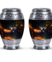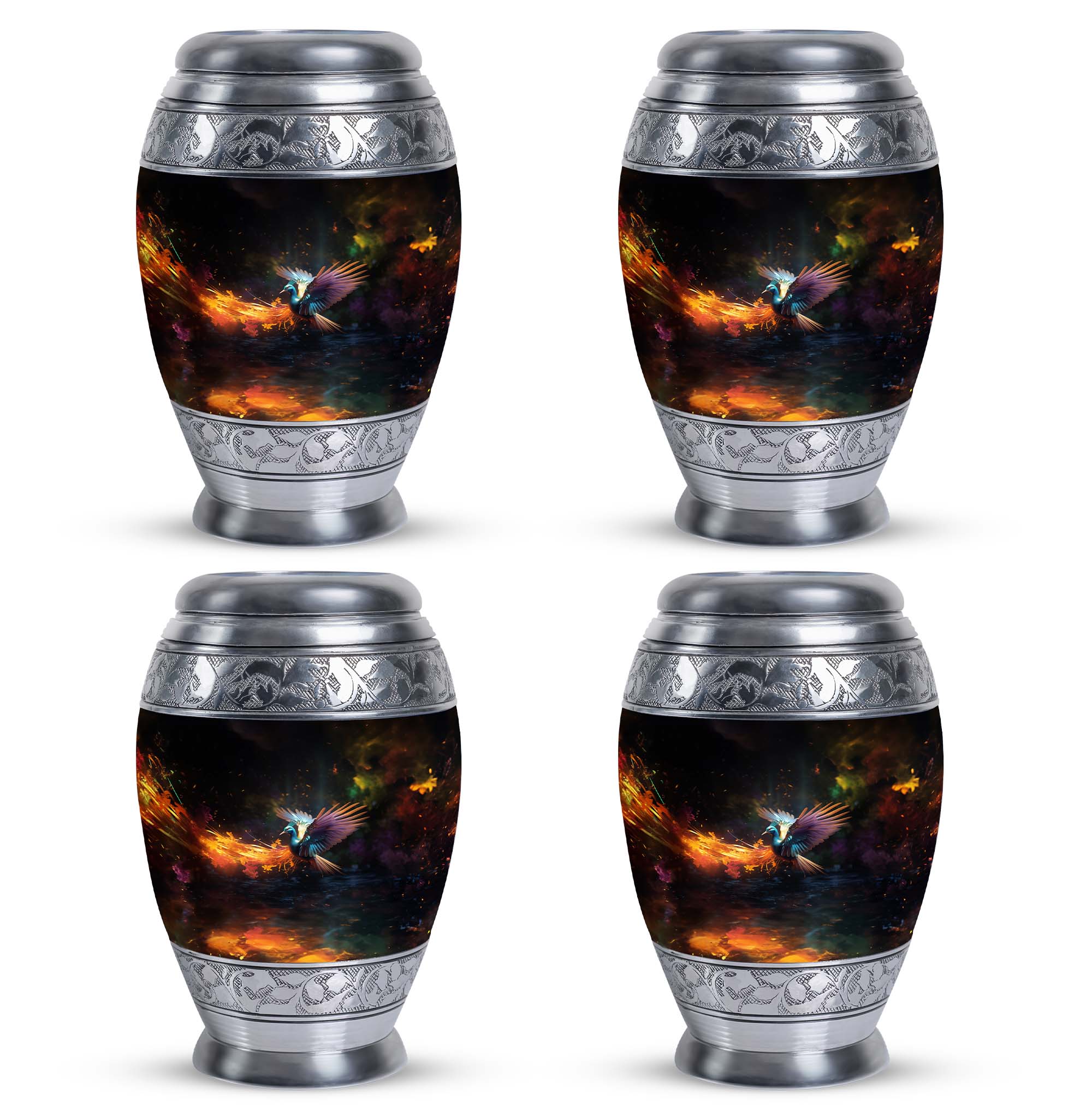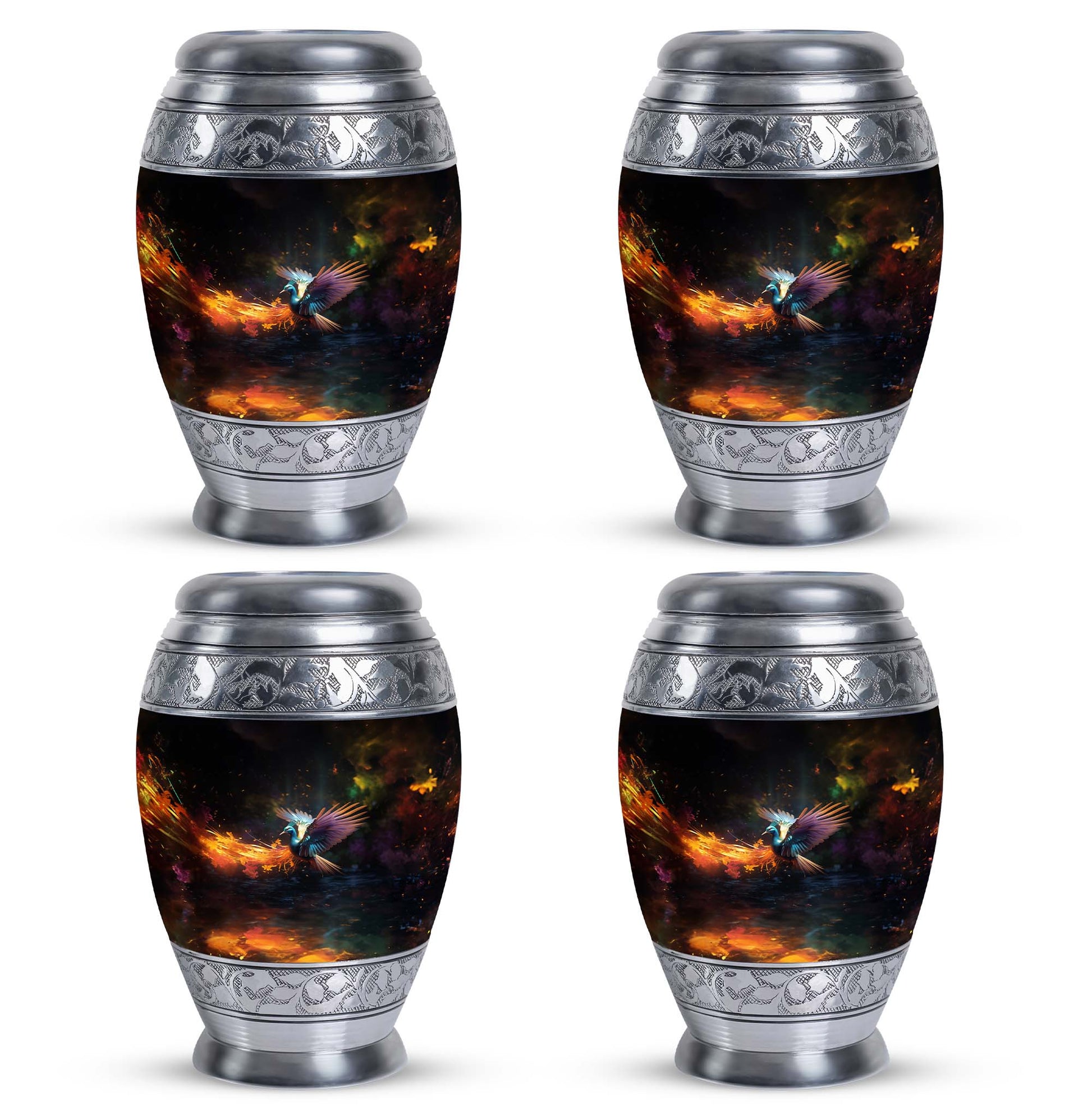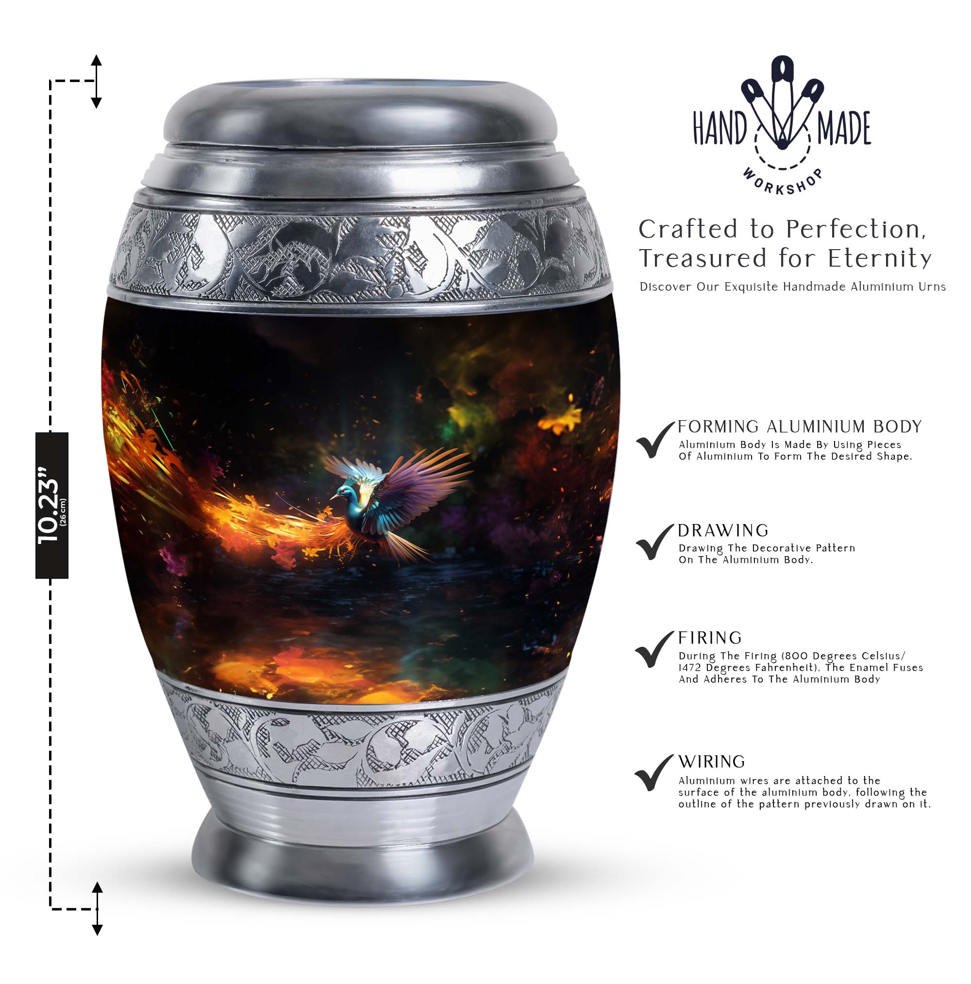 Lay your loved ones to rest in a dignified manner with our colorful swan keepsake urn. Sized at 3 inches, with the capacity to hold 200 cubic inches, this large urn is meticulously crafted from high-quality aluminum to ensure it stands the test of time. Its impressive weight of 3.3 pounds and stature of 10 inches in height underlines its robust quality. Each purchase includes a velvet pouch, providing a fitting containment for your dear one's ashes. The primary beauty of this urn lies in the ability to add a personal touch by engraving names, thus, making it an even more poignant tribute. Although it displays a classic design, this piece stands out with its distinctive allure, making it a unique urn for Dad or Mom. Whether you're searching for memorable urns or decorative urns for human ashes, this aluminum keepsake checks all boxes, offering a heartfelt way to commemorate and celebrate life. It is indeed a carefully thought-out piece destined to hold a part of someone as special as your loved one.
