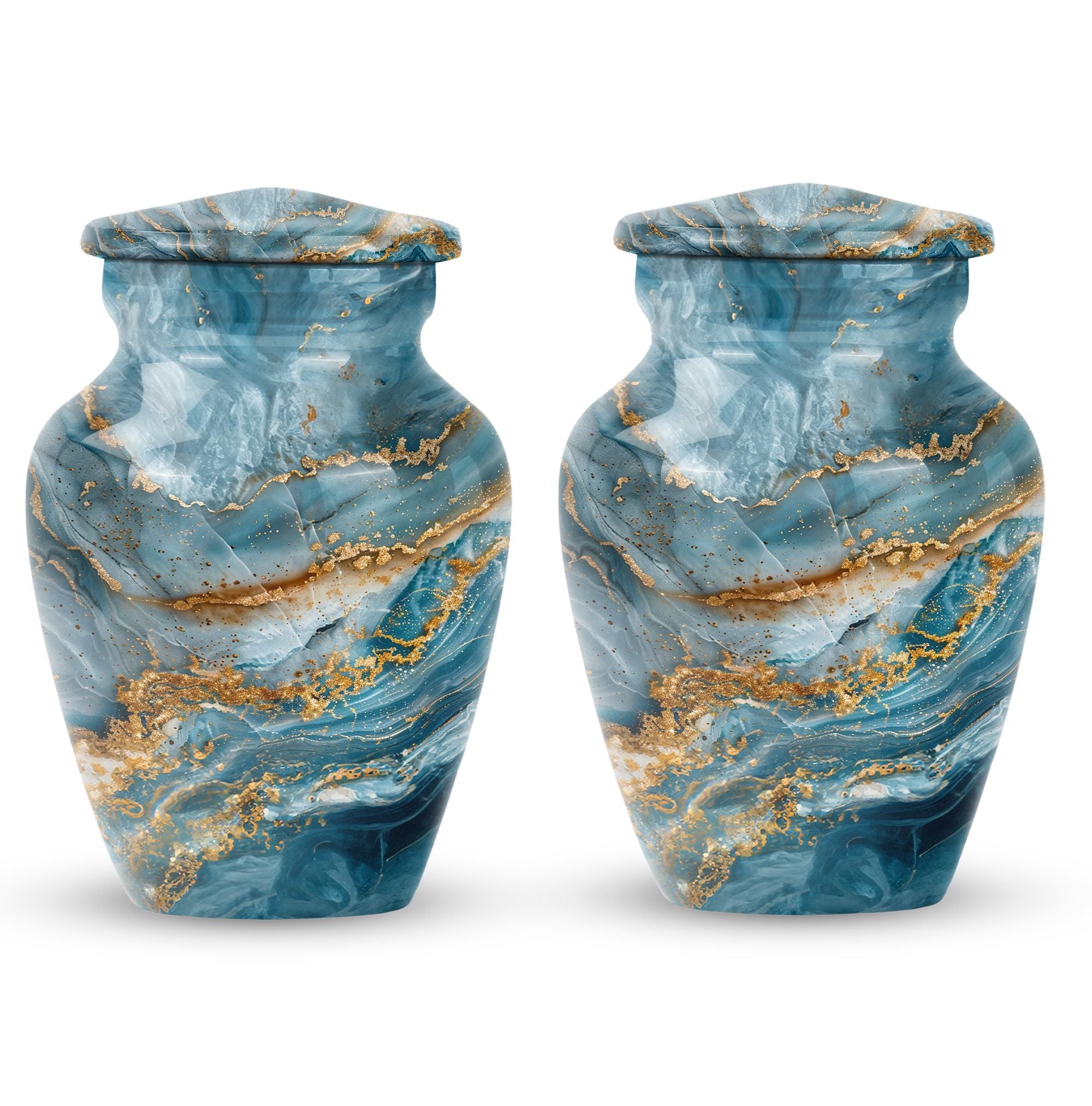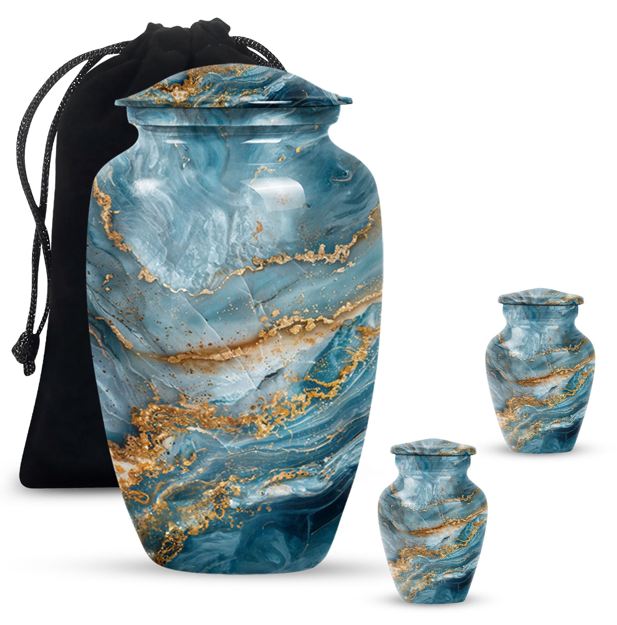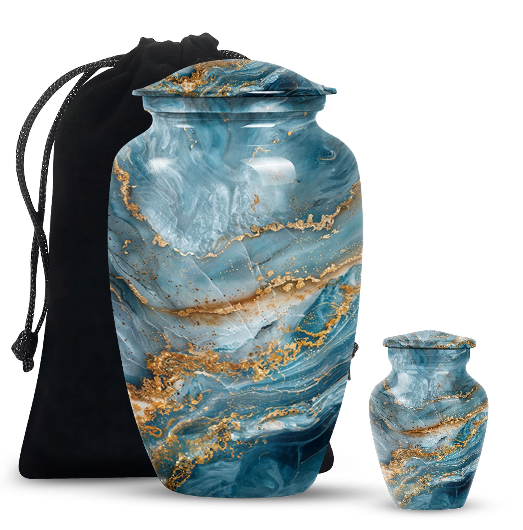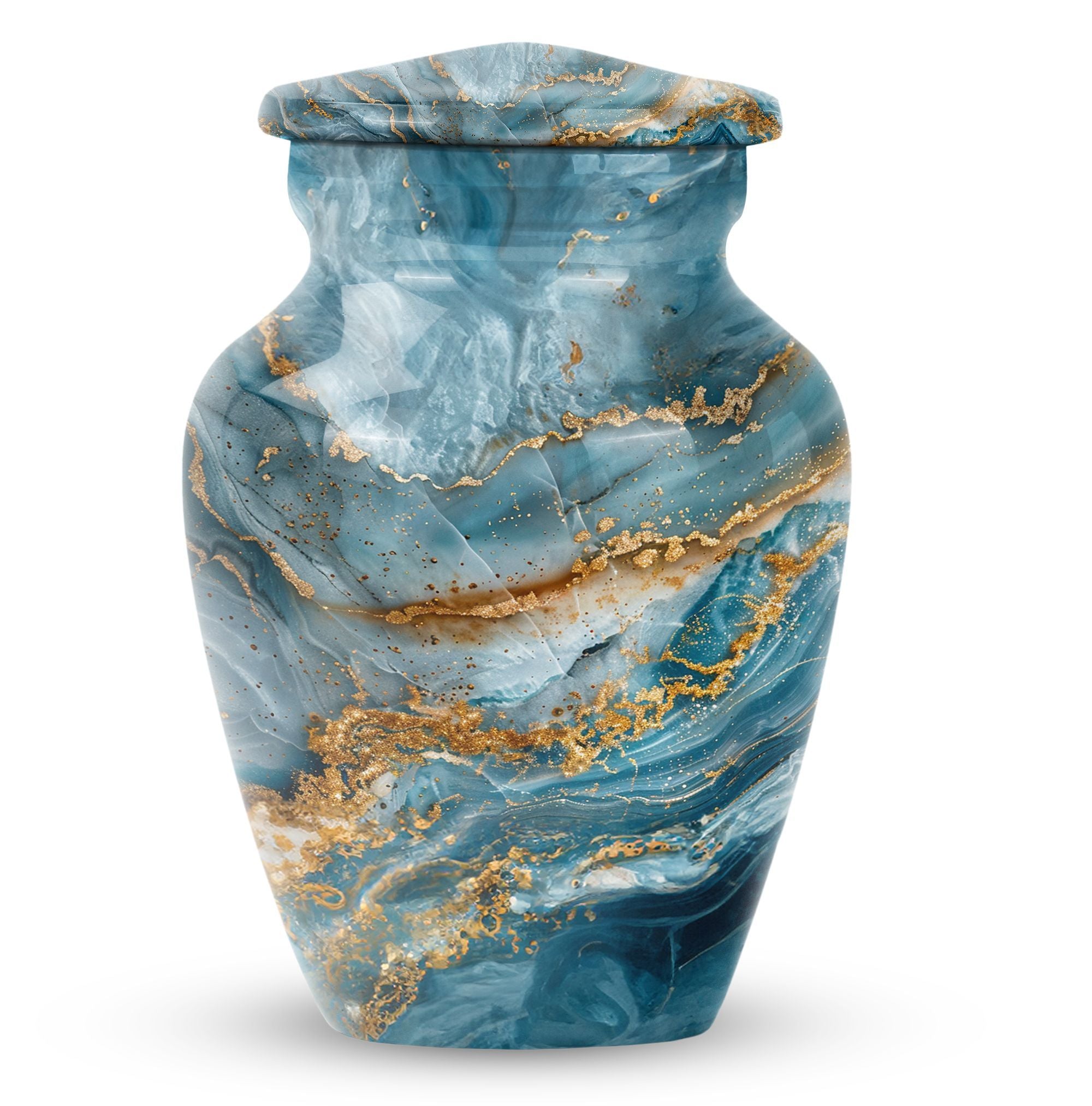 Experience a unique combination of respect, beauty, and memory with our Colourful Swirl Urn, an exquisite choice when it comes to memorial urns for adults. This 10-inch, classic urn is-not just any ordinary urn, but a statement of timeless honour. Crafted with high-quality aluminium, it weighs a sturdy 3.3 pounds and can hold a capacity of 200 cubic inches of ashes. The urn comes complete with a velvet pouch designed for elegant, secure containment of the ashes. Its abstract theme infuses artful dignity into the remembrance process. The urn can be further personalized with engraved names, adding a personal touch to your tribute. Whether used for burial funeral urns for adult ashes for men or as a cremation large urn for women, this urn embodies the solemn respect that our departed loved ones deserve. An earnest selection for those in the market for metal urns suitable for a burial in the ground.