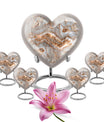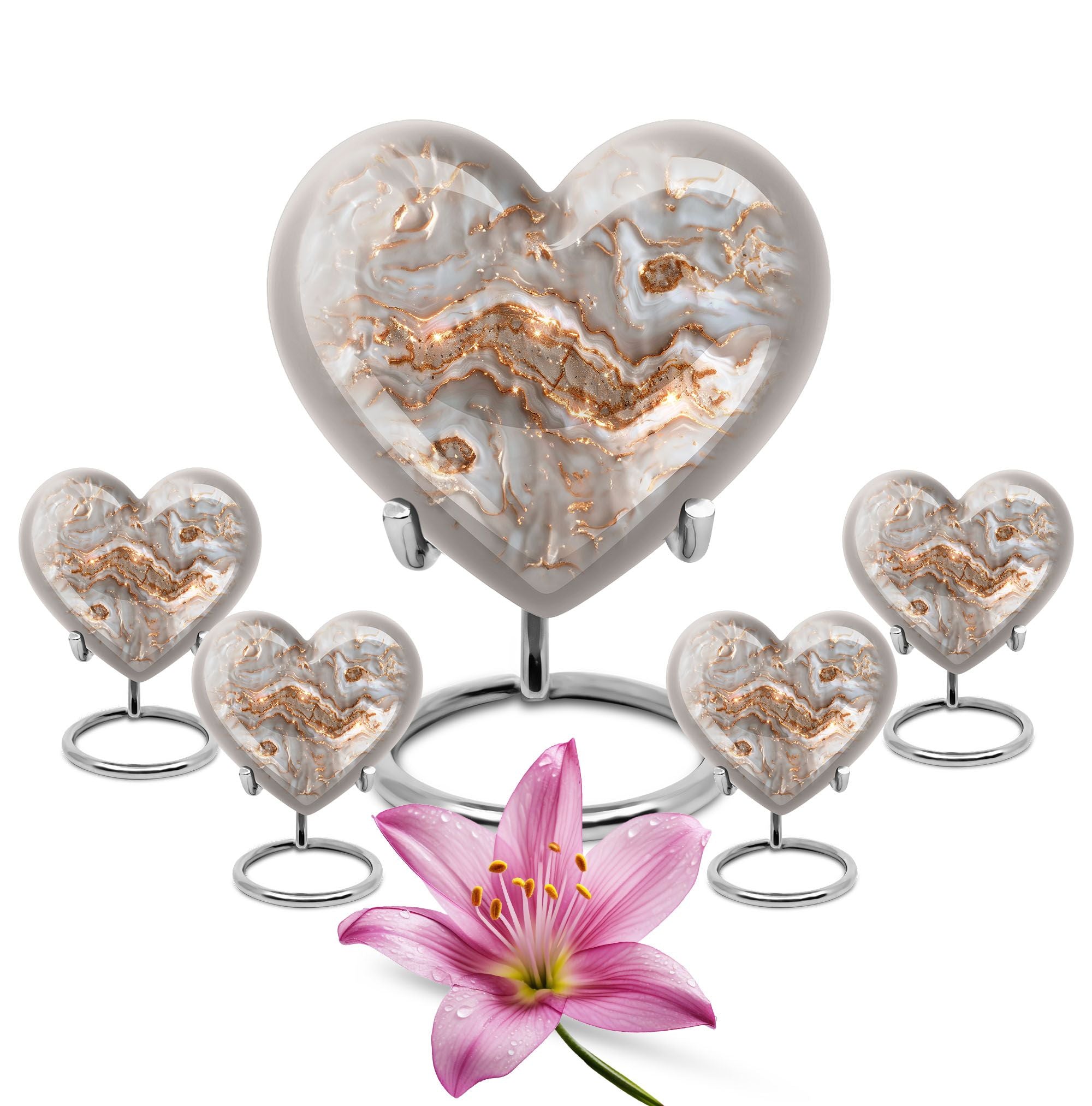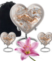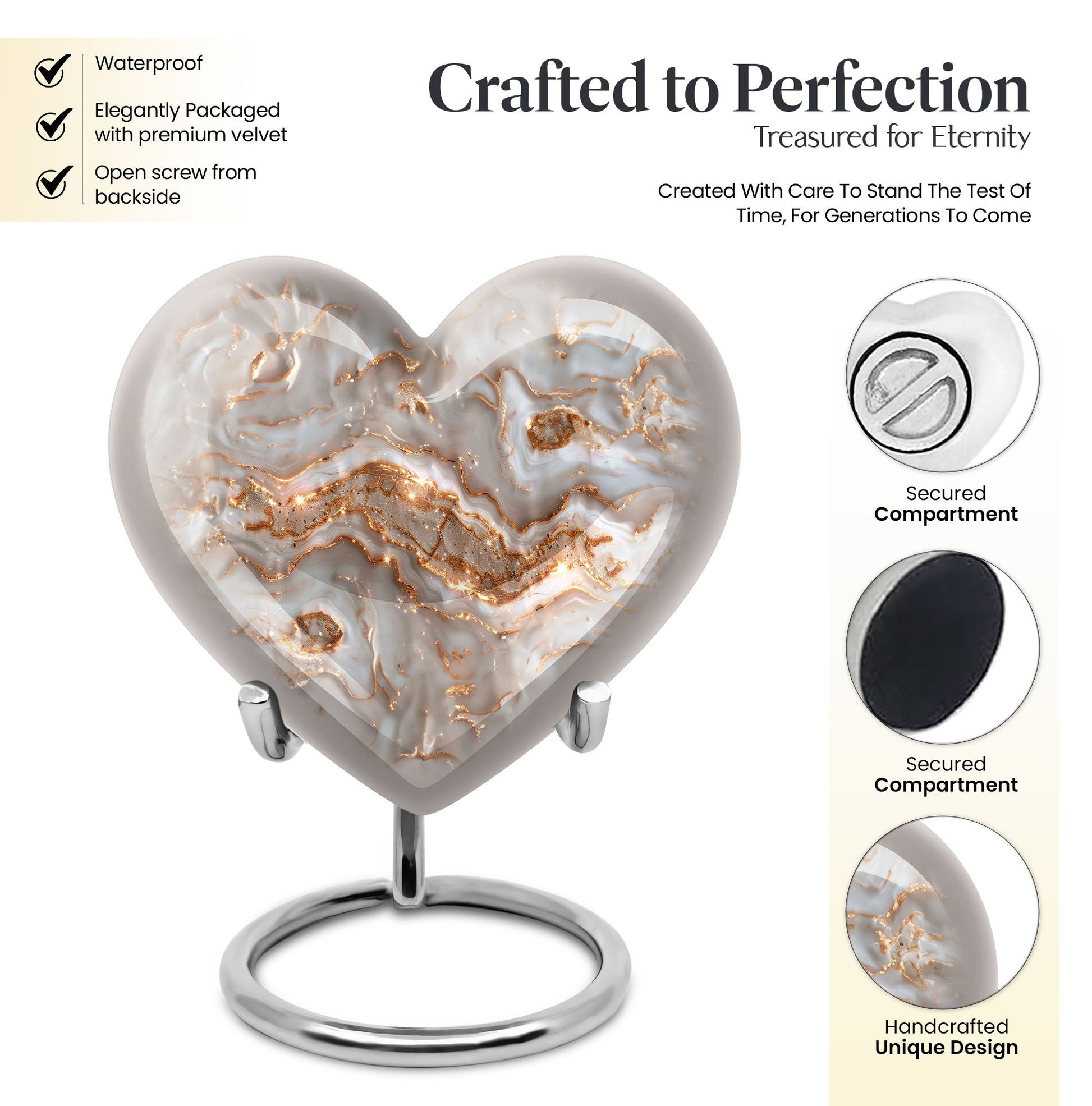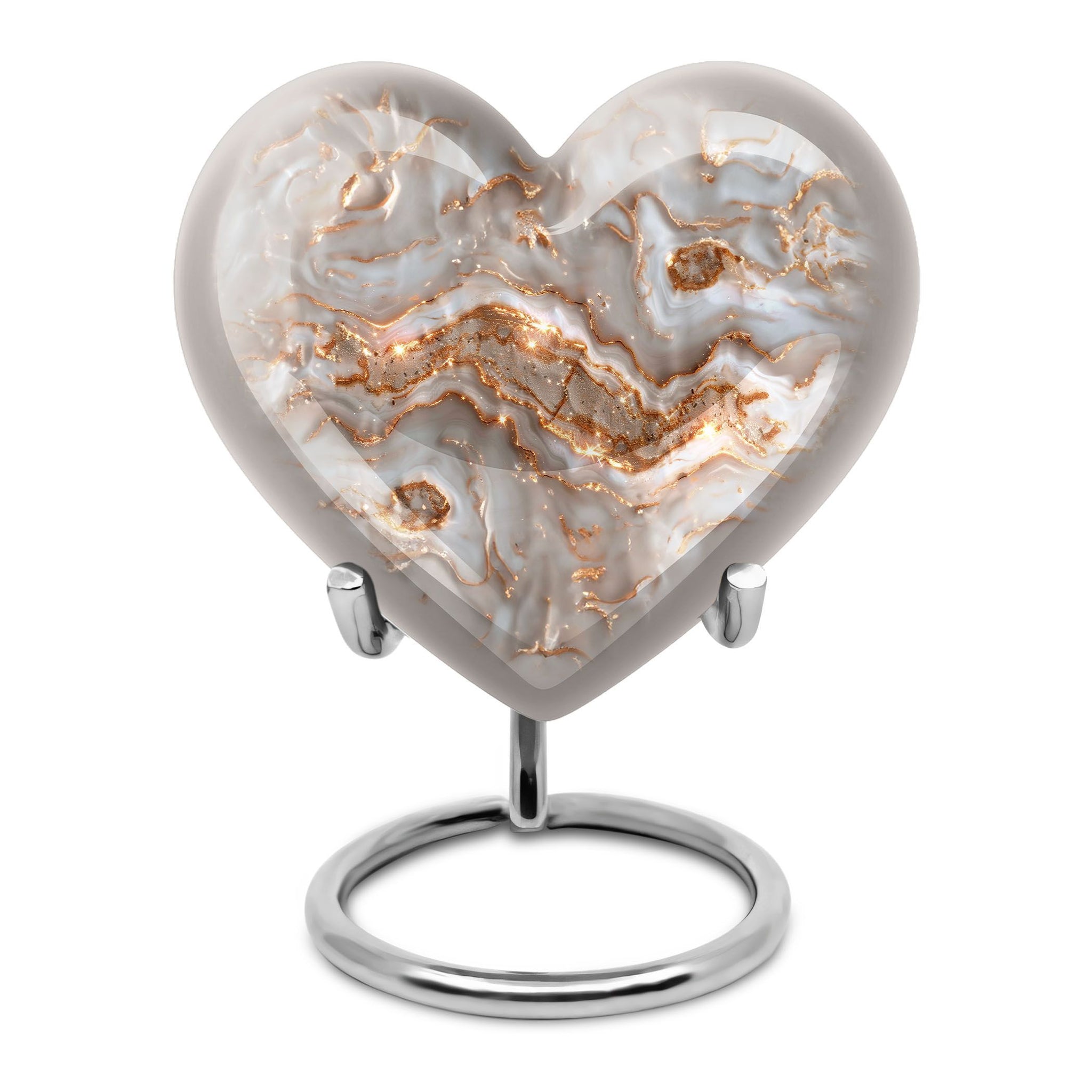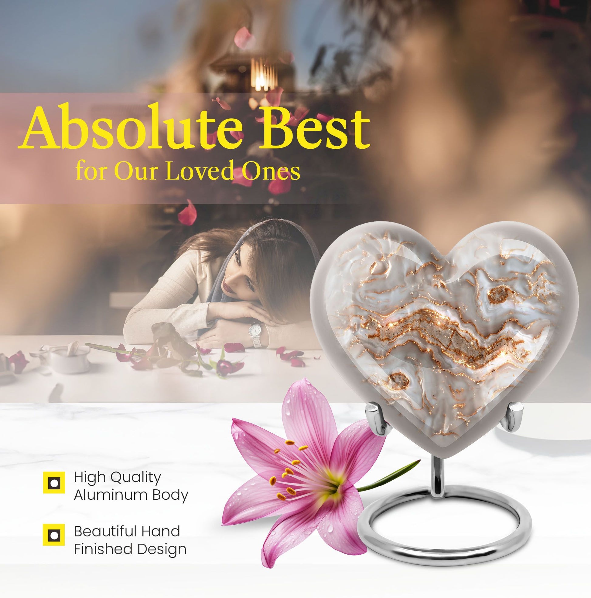Enshrine your loved ones with an ethereal final resting place with this Colourful Swirl Urn. Crafted meticulously from fine-quality aluminum, this large urn for adult men conveys a sense of comforting warmth with its abstract theme heart urn design. This cremation dad urn measures 10 inches in height, fitting perfectly into its weight bracket of a moderate 3.3 pounds. It boasts a commendable capacity to hold up to 200 cubic inches of ashes, ample space to serve its purpose seamlessly. The urn also offers a personal touch with an option to customize with engraved names, truly making it a dedicated memorial. The urn arrives with a commodious velvet pouch for containment of ashes. This human urn amalgamates affordability and inherent respect, transcending the usual constraints of memorial urns. With its iridescent metal sheen, the visualization of the urn echoes a beautifully poignant celebration of life and love, eternally sustained.