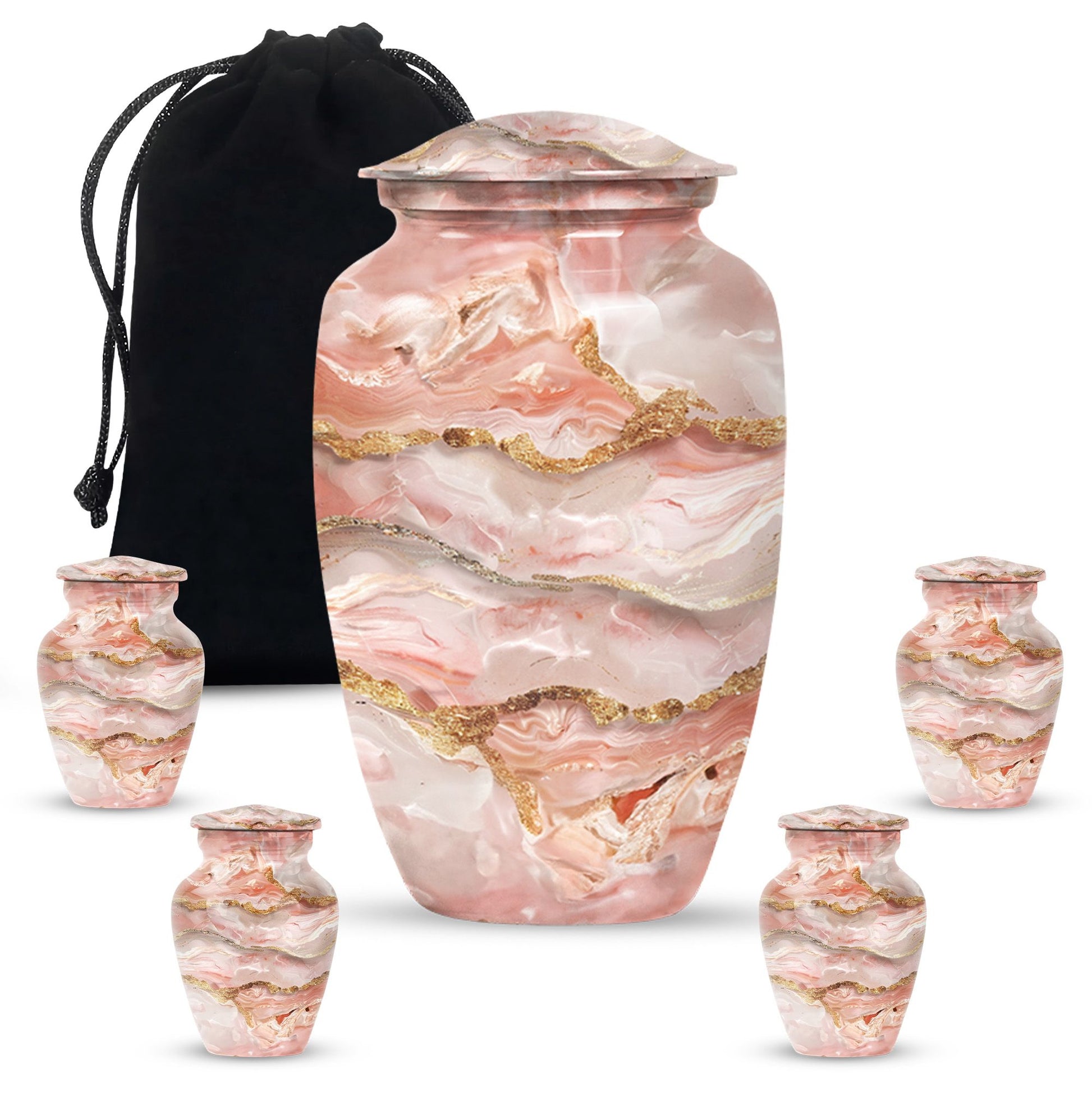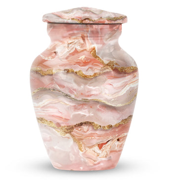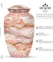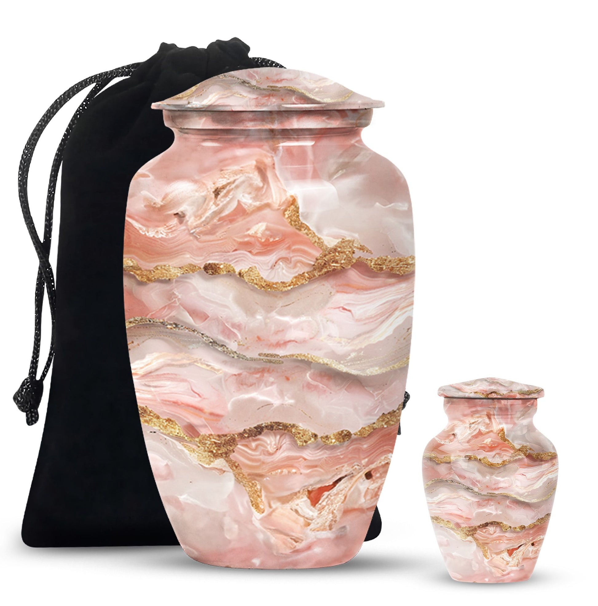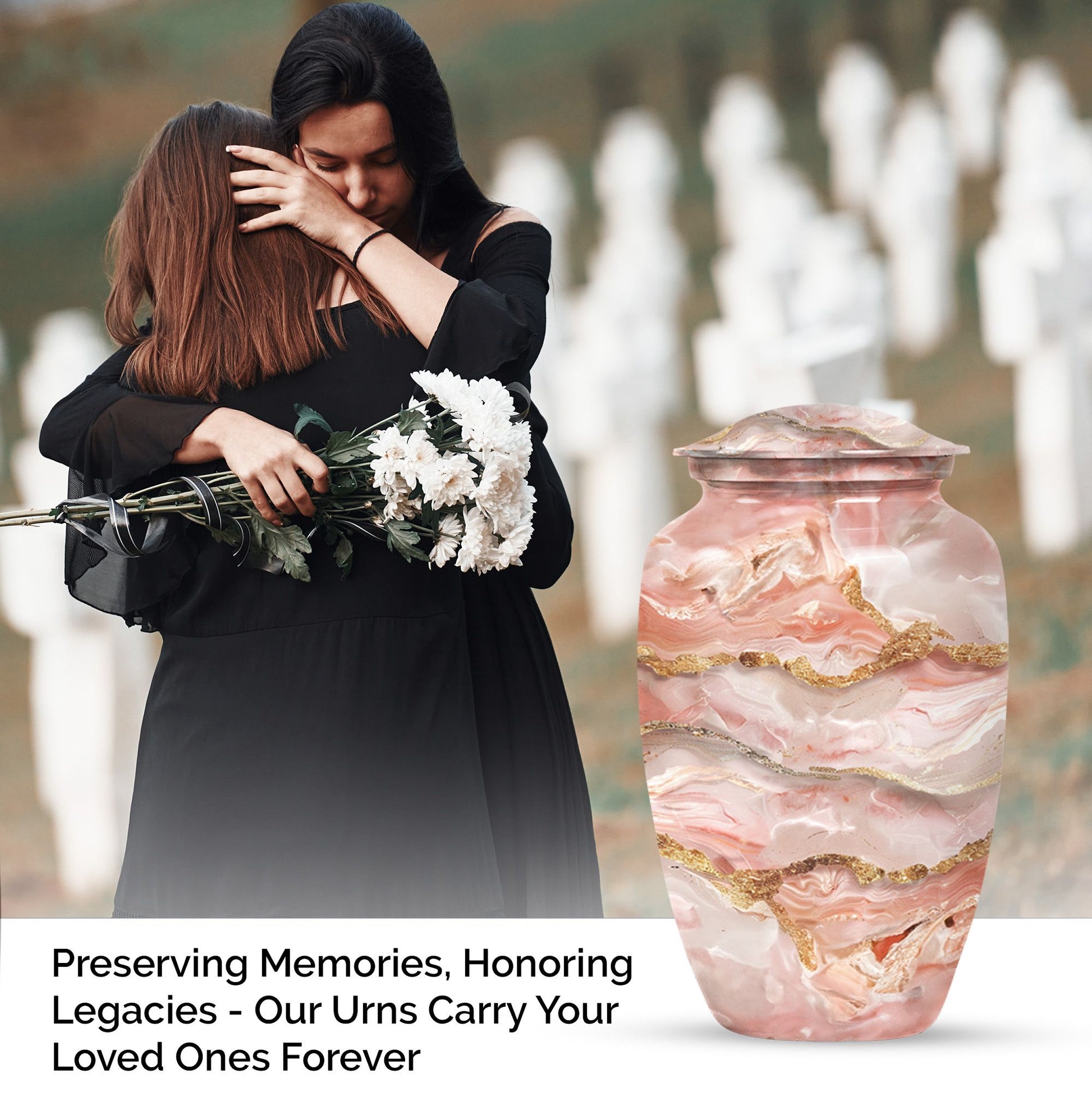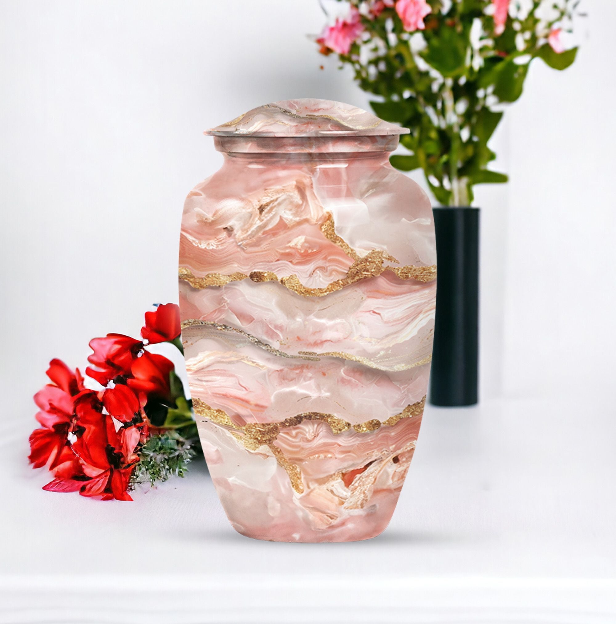 Experience the sublime blend of thoughtful craftmanship and a unique abstract theme with our 'Colourful Swirl Urn'. Made from resilient aluminium, this 10-inch Large Urn weighs just 3.3 pounds, making it easy to handle yet robust. The burial medium size urn, encased with a surreal swirl of colors, holds a significant capacity of 200 cubic inches. This commemorative relic is not just a 'memorial urn', it symbolizes a lasting tribute to loved ones. We offer the ability to customize the urn by engraving the names of your loved ones, creating a heartfelt personal touch to this ceremonial keepsake. Additionally, a velvet pouch is included in the package for containing the ashes securely. Eluding artistic vibes, this urn adds a unique touch to any memorial ceremony. This urn could be a pick for cremation urns for women or adults, featuring a perfect assortment of value and sentiment. Also, the product presents itself as a perfect choice for 'metal urns for burial in ground large'.