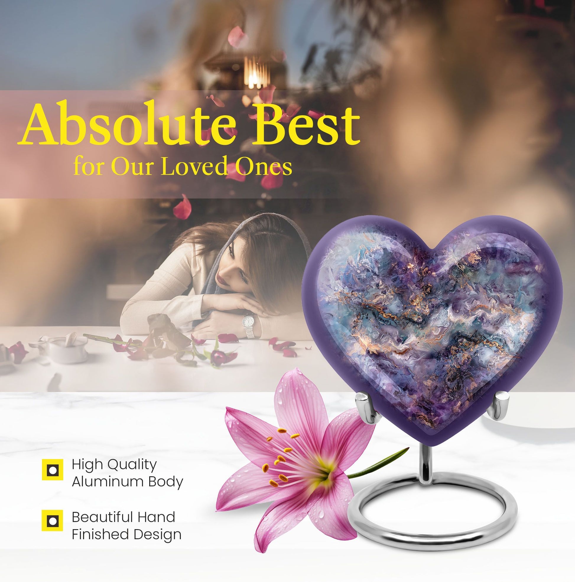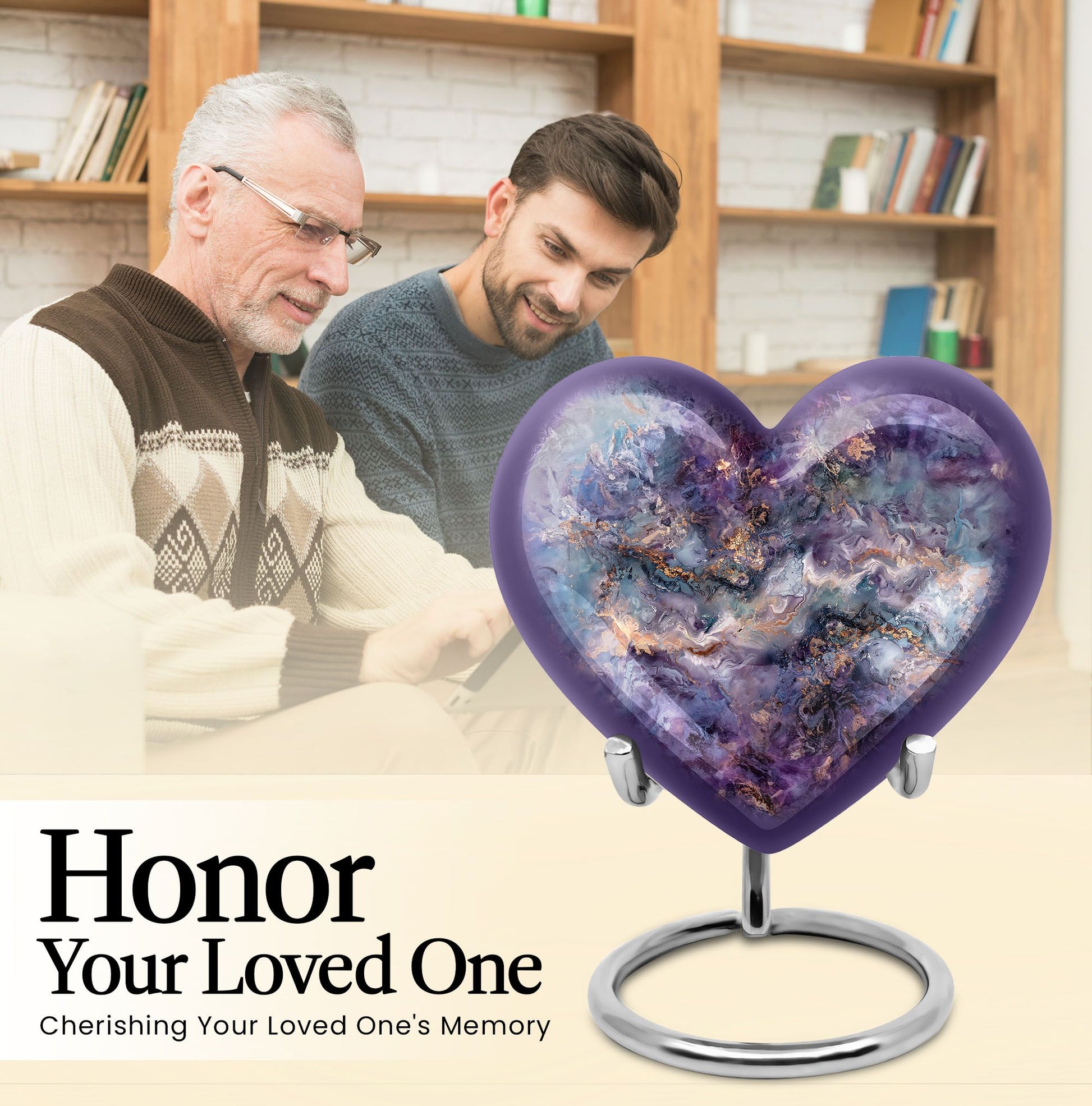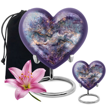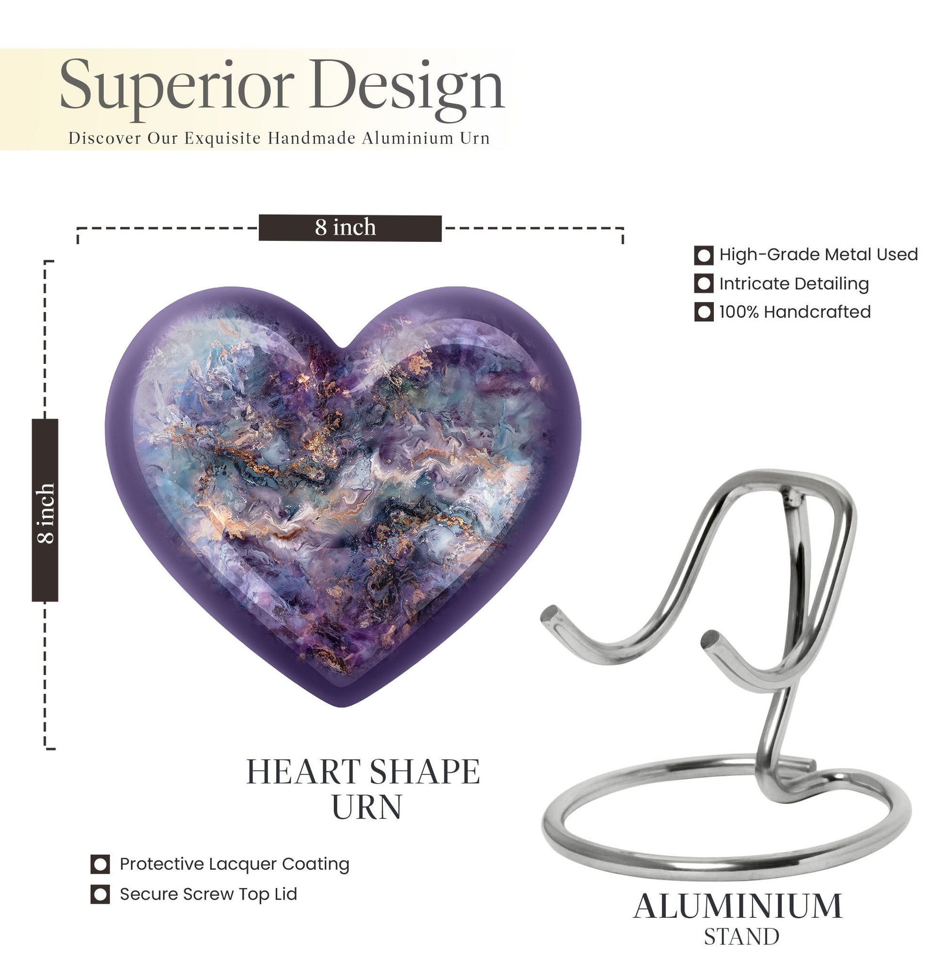 Honour the memory of your loved one with our 10 inches 'Abstract' Theme 'Heart Urn'. This Colourful Swirl Urn is more than mere memorial ceremony supply; it's a piece of art crafted from durable aluminium, weighing at just 3.3 pounds. Not just an aesthetic accessory, this adult-sized urn is designed to securely hold 200 cubic inches worth of ashes safely and discretely in a specially provided velvet pouch. This 'Large Urns' type product displays fine craftsmanship, making it an ideal choice for cremation urns for human ashes of adult males and even funeral urns for adult ashes of women. Adding an intimate touch, it offers the option to personalize with engraved names. Bring home this unique item and let it help you remember, reflect, and celebrate a life well-lived. Bear in mind, this is not your regular 'memorial urns'. It is a symbol of love, remembrance and respect.