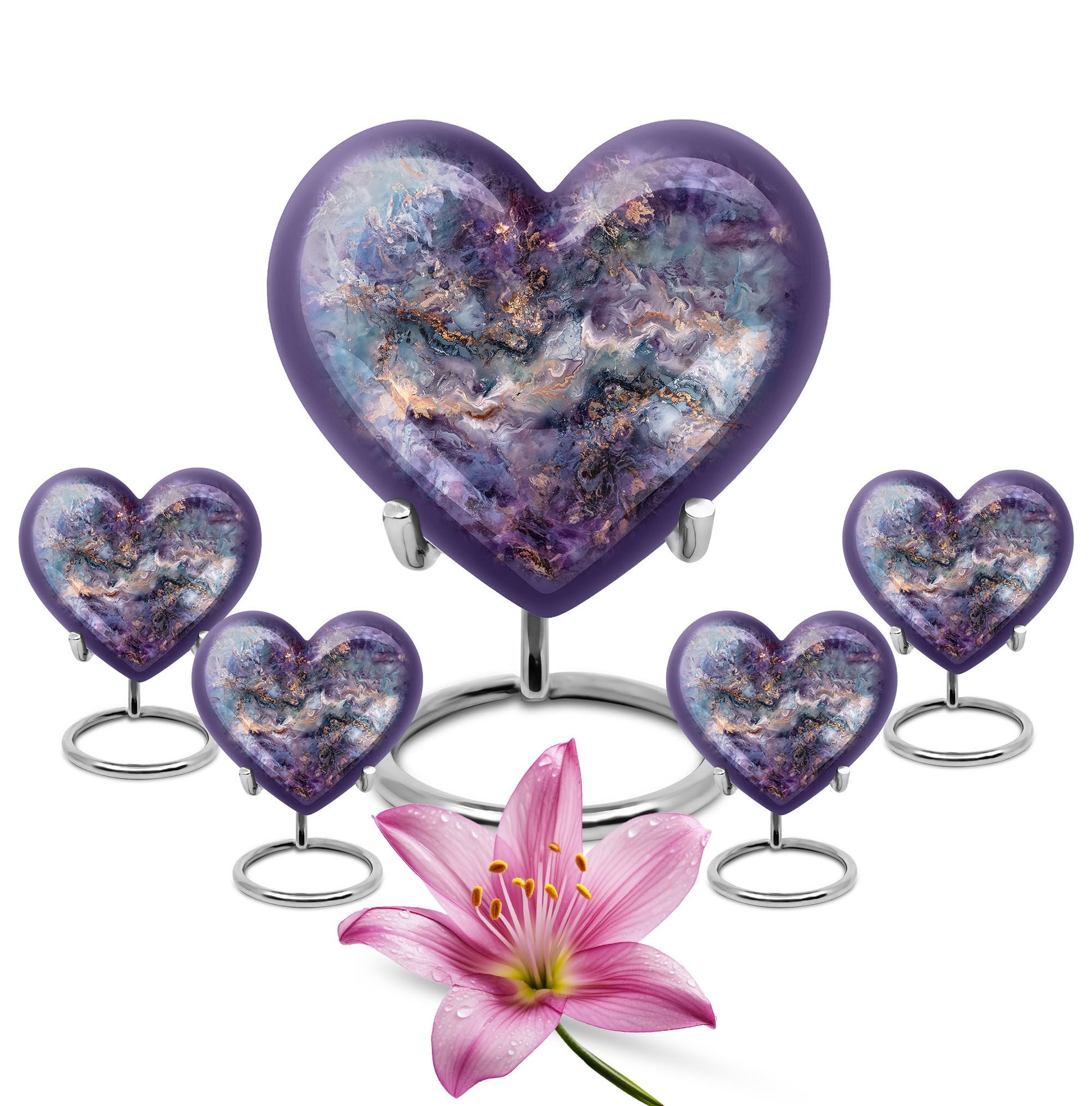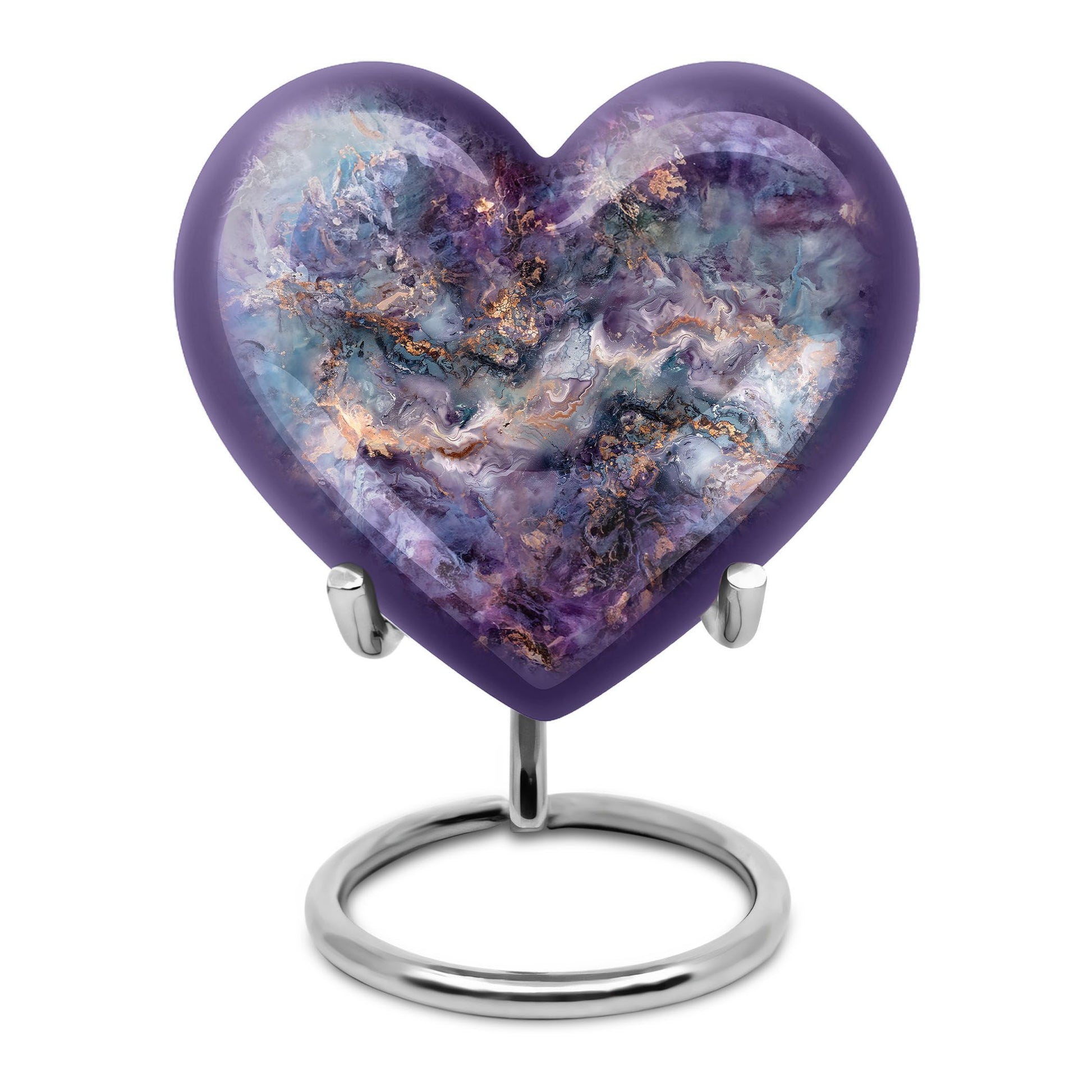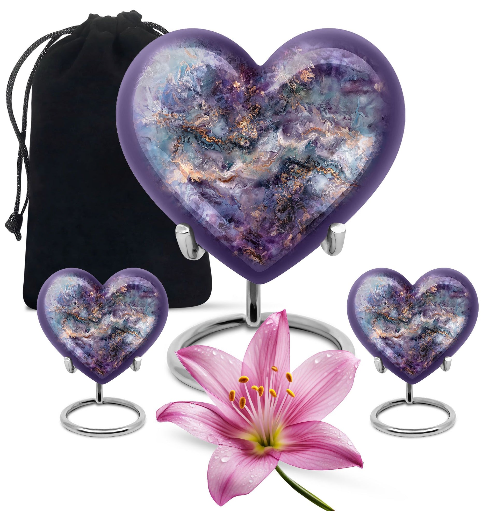 Honour the memory of your loved one with our 10 inches 'Abstract' Theme 'Heart Urn'. This Colourful Swirl Urn is more than mere memorial ceremony supply; it's a piece of art crafted from durable aluminium, weighing at just 3.3 pounds. Not just an aesthetic accessory, this adult-sized urn is designed to securely hold 200 cubic inches worth of ashes safely and discretely in a specially provided velvet pouch. This 'Large Urns' type product displays fine craftsmanship, making it an ideal choice for cremation urns for human ashes of adult males and even funeral urns for adult ashes of women. Adding an intimate touch, it offers the option to personalize with engraved names. Bring home this unique item and let it help you remember, reflect, and celebrate a life well-lived. Bear in mind, this is not your regular 'memorial urns'. It is a symbol of love, remembrance and respect.