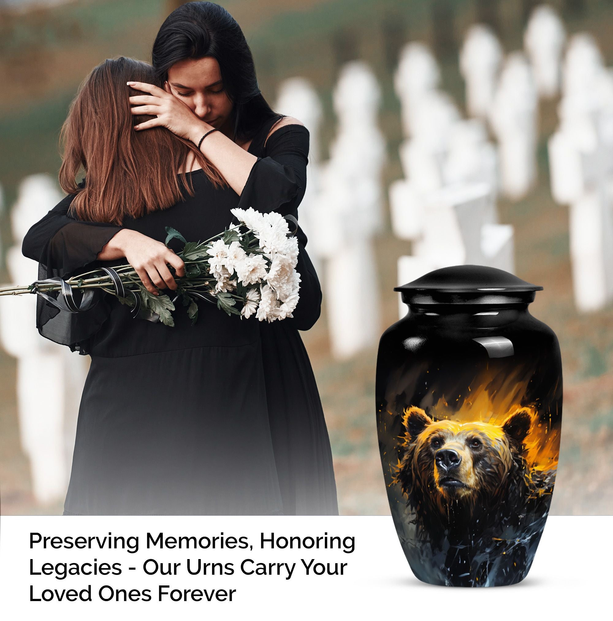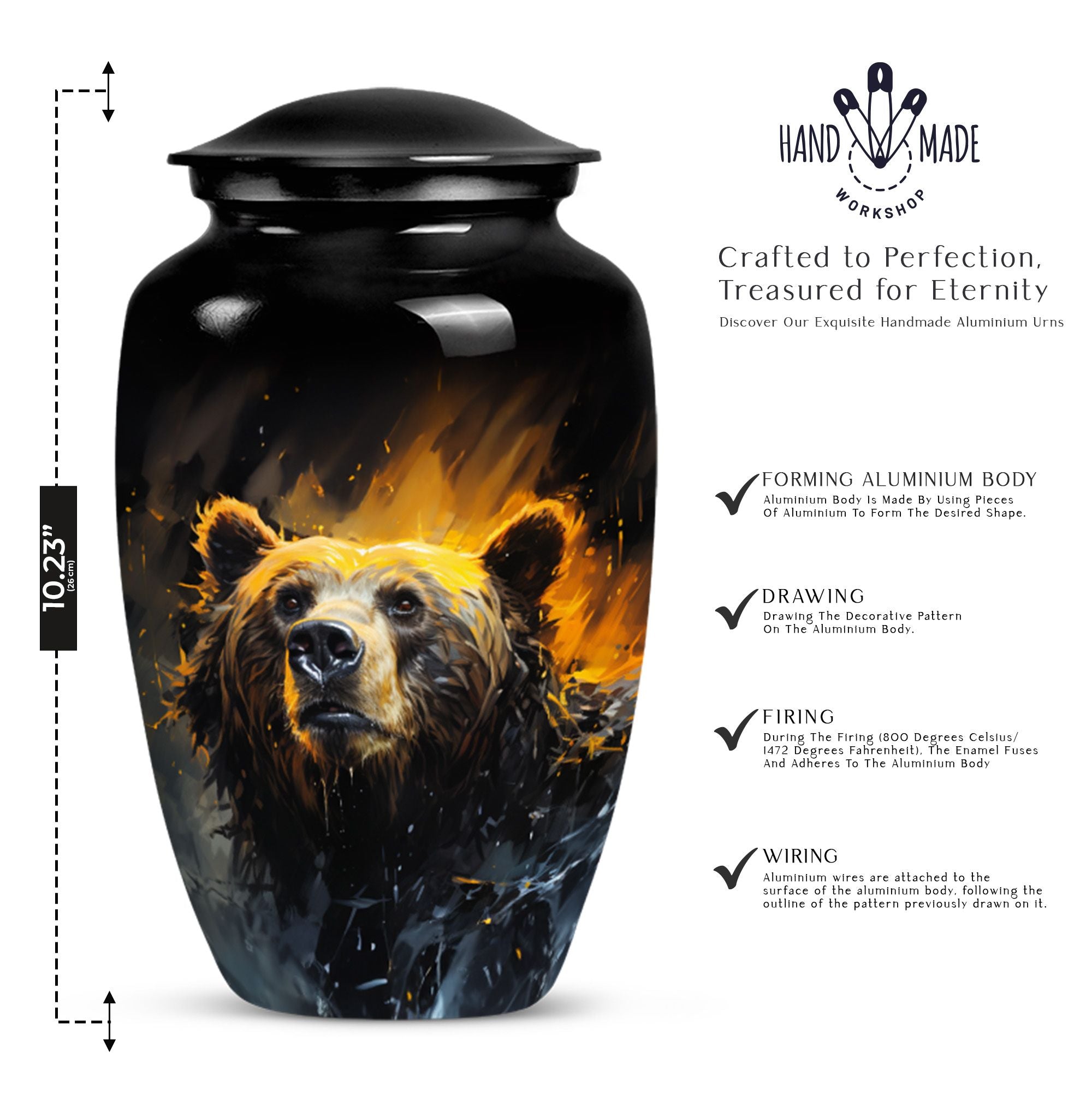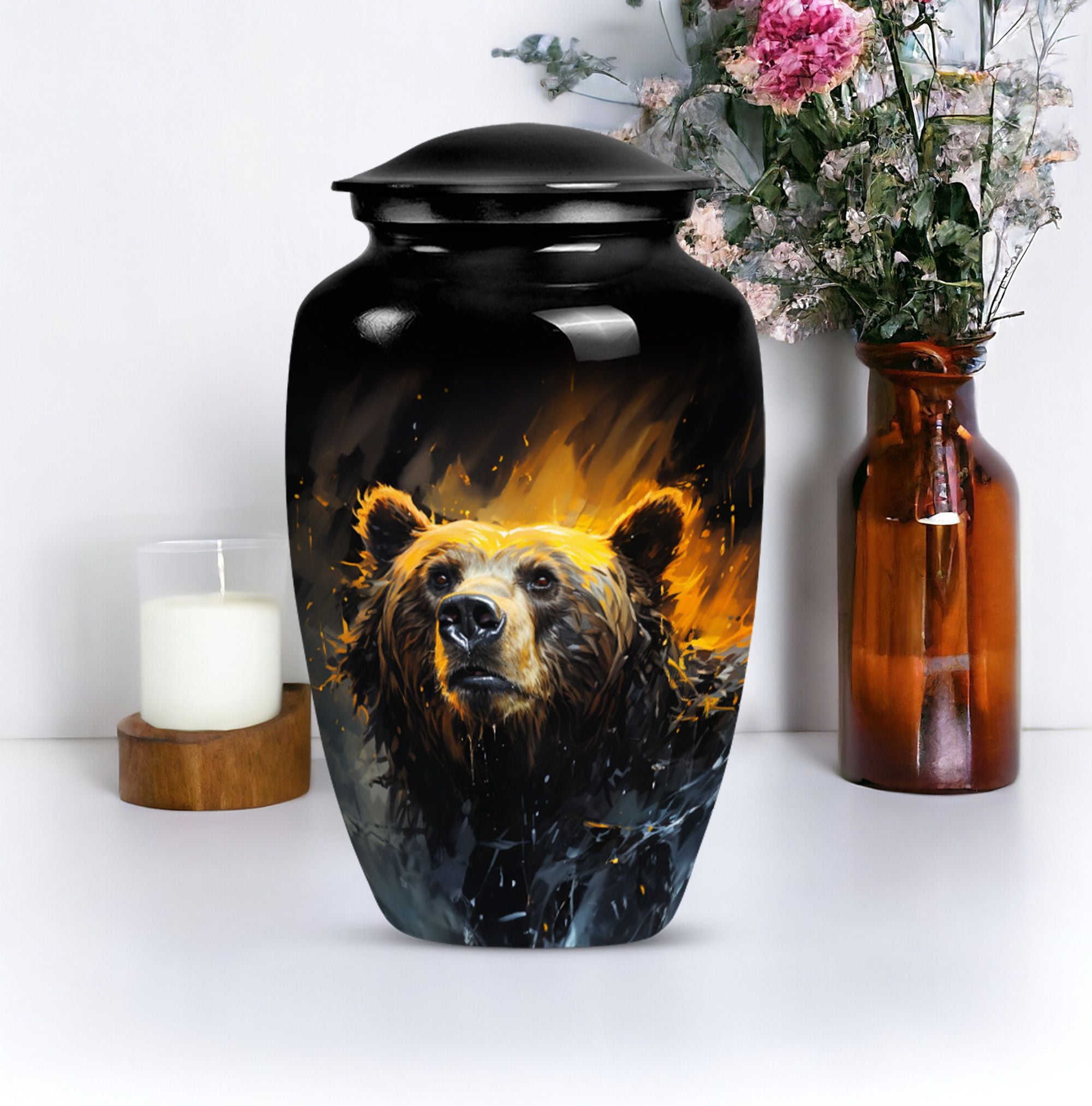 Experience the timeless elegance of our 10-inch aluminium bear urn, catered specifically for the discerning adult and senior clientele interested in acquiring unique memorial ceremony supplies. This large, meticulously crafted urn weighs a sturdy 3.3 pounds and boasts an abstract theme that adds a touch of sophistication to any setting. Its capacity stands at an impressive 200 cubic inches, handling the crucial task of containment without compromising on style. Our cremation urns for women and unisex adults offer a personalized touch, allowing for names to be engraved directly onto the urn. Furthermore, each purchase includes a velvet pouch ideal for safeguarding the important contents within. Beyond just ceremony supplies, these aluminium burial urns also make thoughtful, specialized unisex gifts for adults. Eschew the commonplace with our distinct 'metal urns for human ashes adult female', perfect for remembering and cherishing loved ones.