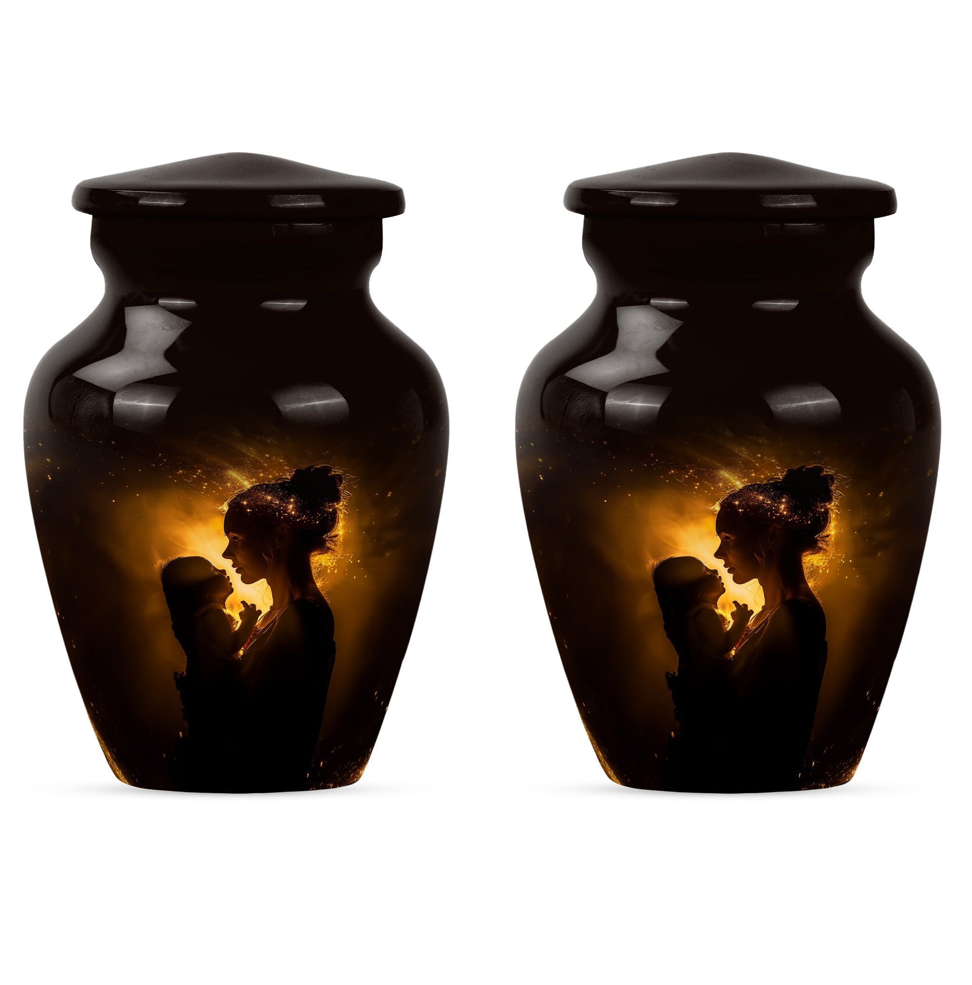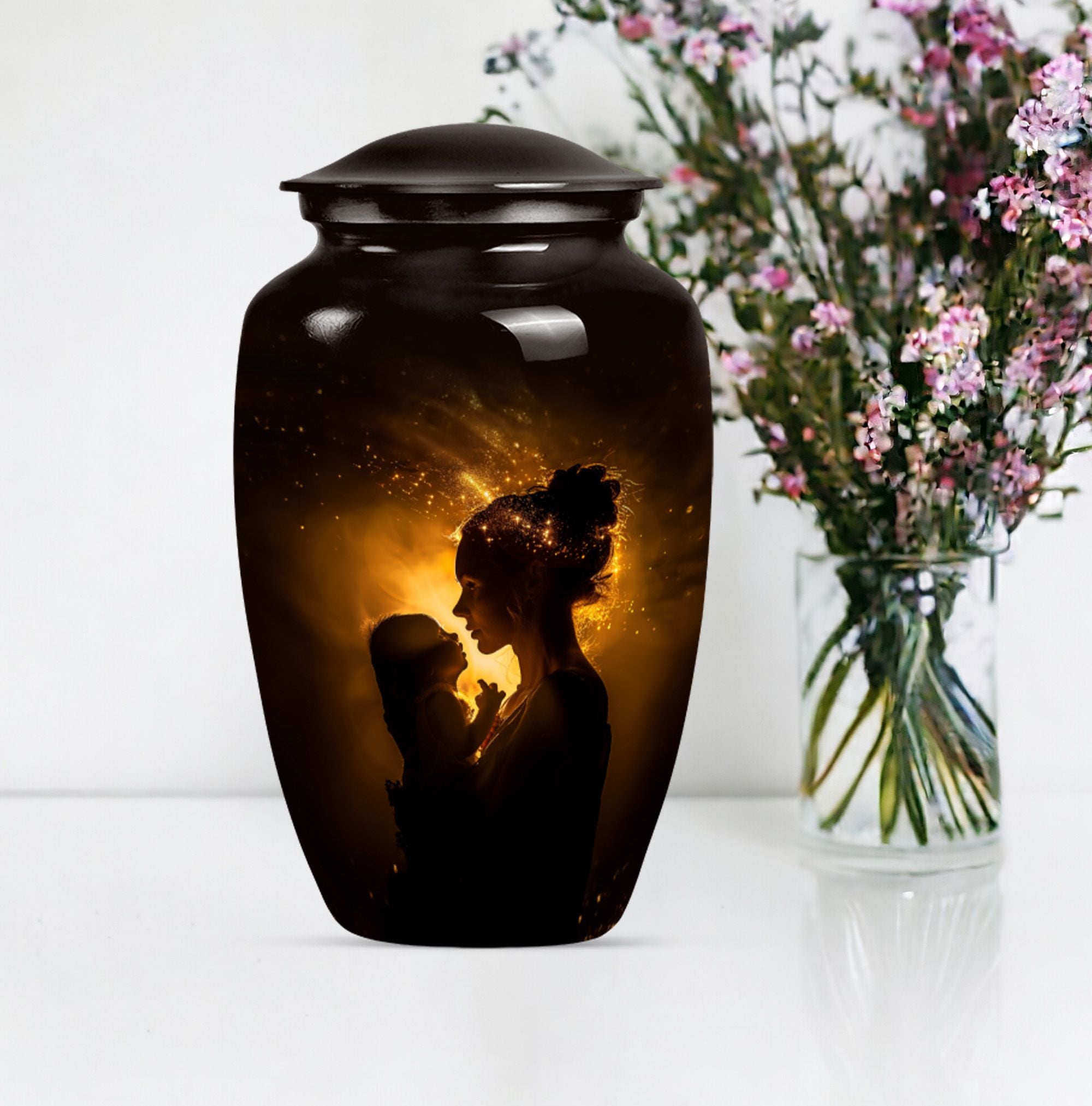 Emanating unconditional affection, our 10-inch 'Mother Love Urn' and 'Funeral Urns for Adult Male Dad' is indeed a poignant symbol of remembrance. With a paramount urbanity, this abstract-themed large urn offers an exquisite final rest place for precious remains. Meticulously finalized in Aluminium, its tangible sturdiness ensures durability while its accommodations stand at a generous 200 cubic inches. The supplemental weight of 3.3 pounds resonates with a feeling of warmth and closeness anytime you wish to hold onto it. Offered with a velvet pouch, it gently confines the ashes, safeguarding your cherished memories. For a more intimate touch, avail the advantage of our offered personalization service, enabling you to engrave names as a tribute to your loved ones. Ideal for those looking for 'memorial urns' or 'cremation urns', our product resonates with the heart-piercing emotions of a farewell and offers a meaningful way to preserve the essence of your dear departed.