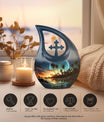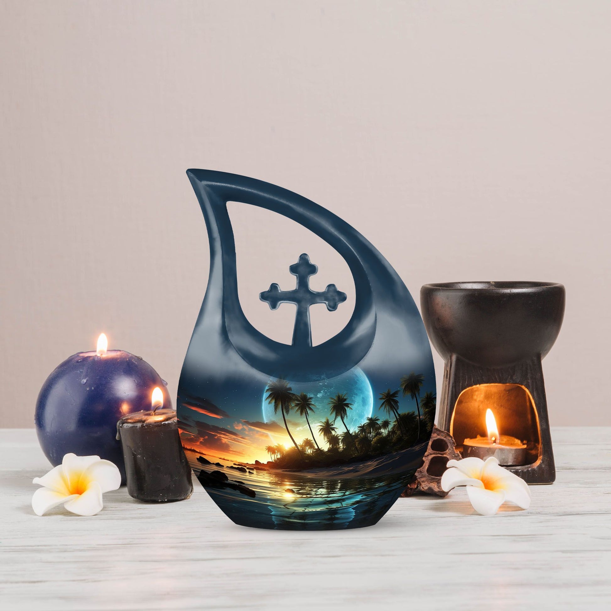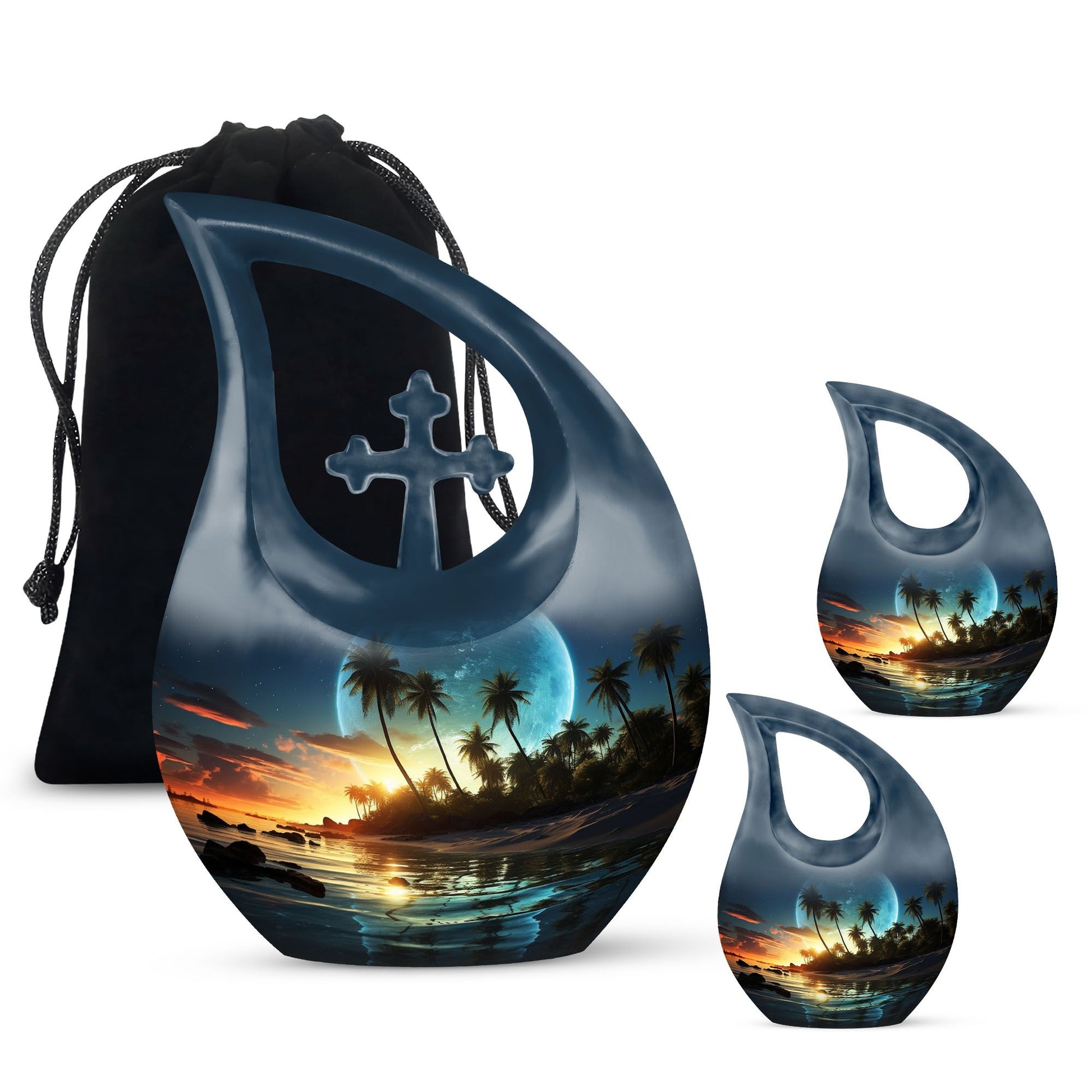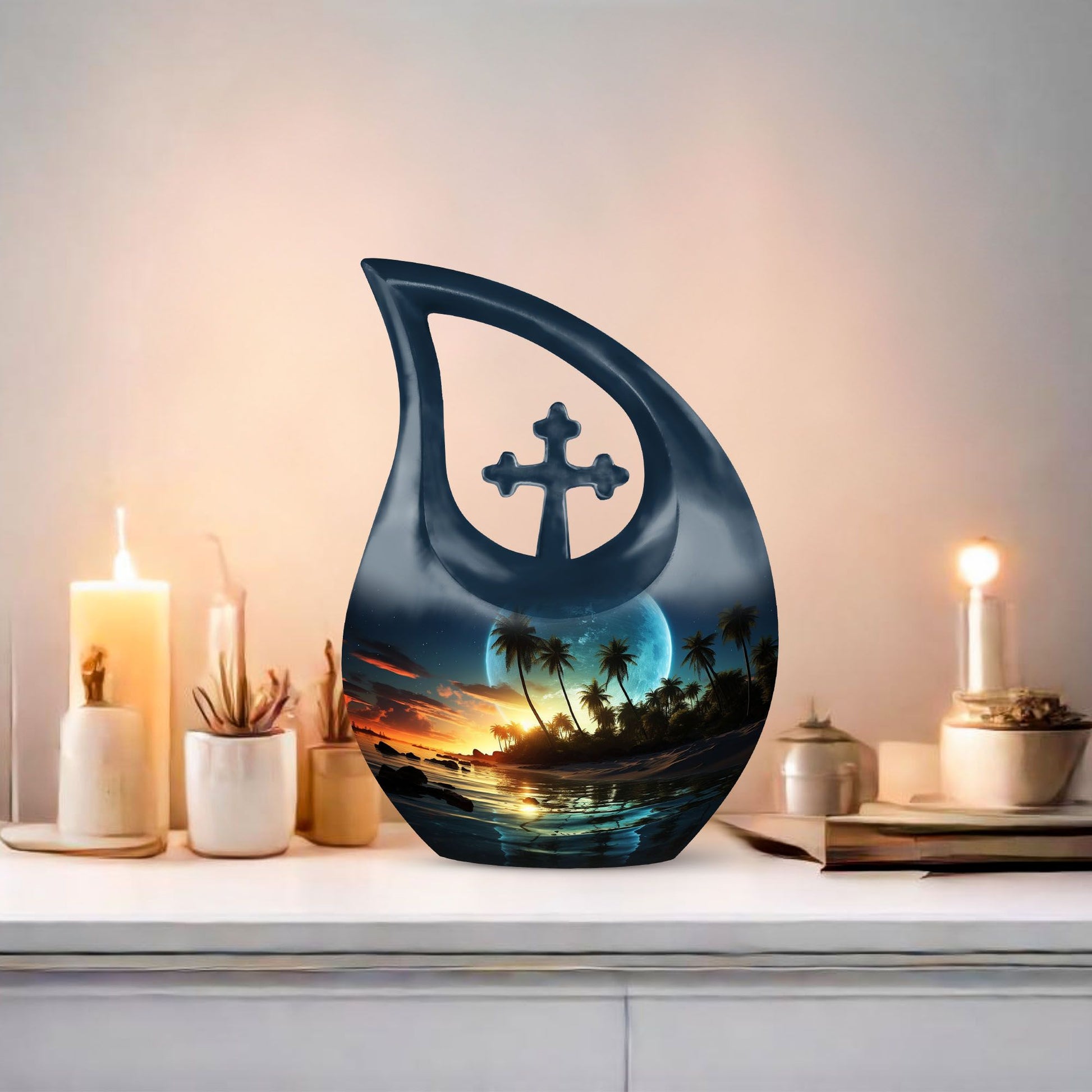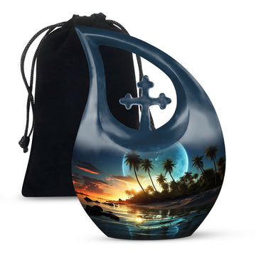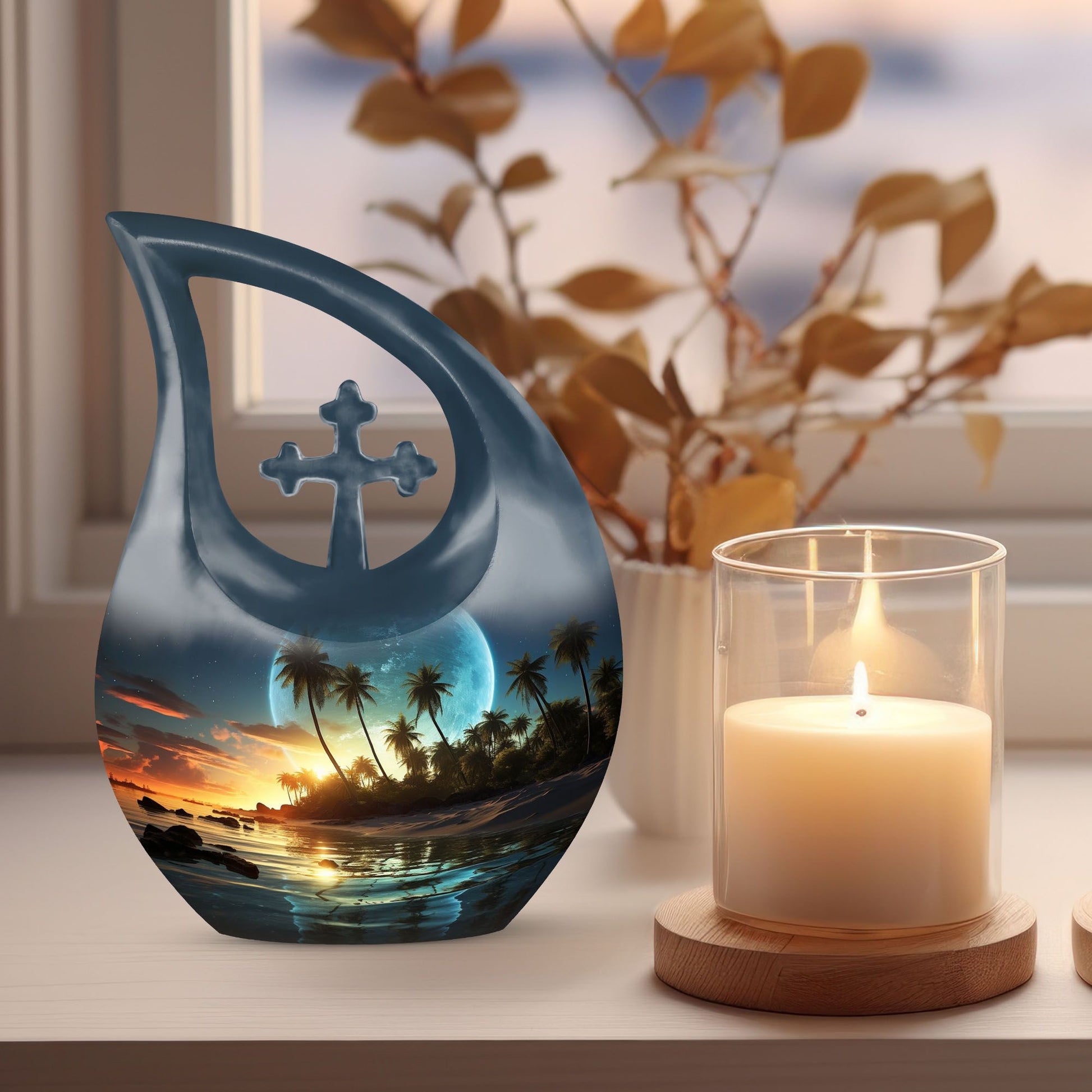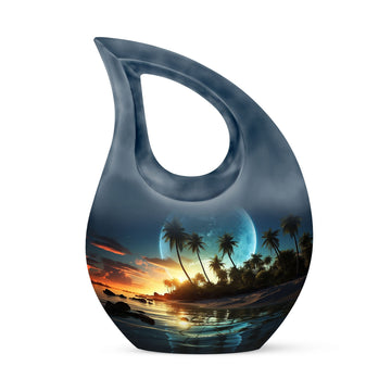 The Sunset Memorial Urn for Funeral is a heartfelt tribute inspired by the calming beauty of the ocean and the golden glow of the setting sun. Designed for peace and remembrance, this urn for human ashes adult men or urn for women ashes reflects the warmth of a life well lived and the comfort of everlasting love. The gentle beach scene evokes serenity, symbolizing a peaceful transition and eternal rest.