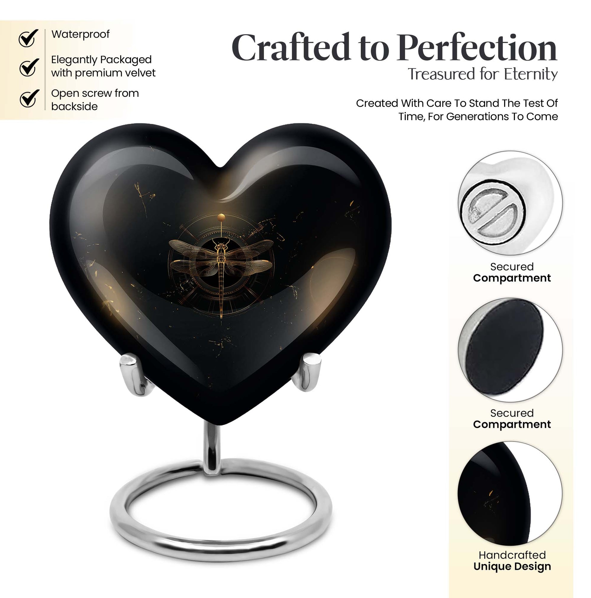 Honor the life of your loved one with this beautifully crafted Cosmic Dragonfly Cremation Urn, designed in an elegant heart shape to symbolize love, transformation, and eternal remembrance. This urn is perfect for families searching for a large urn for human ashes that is both meaningful and durable.