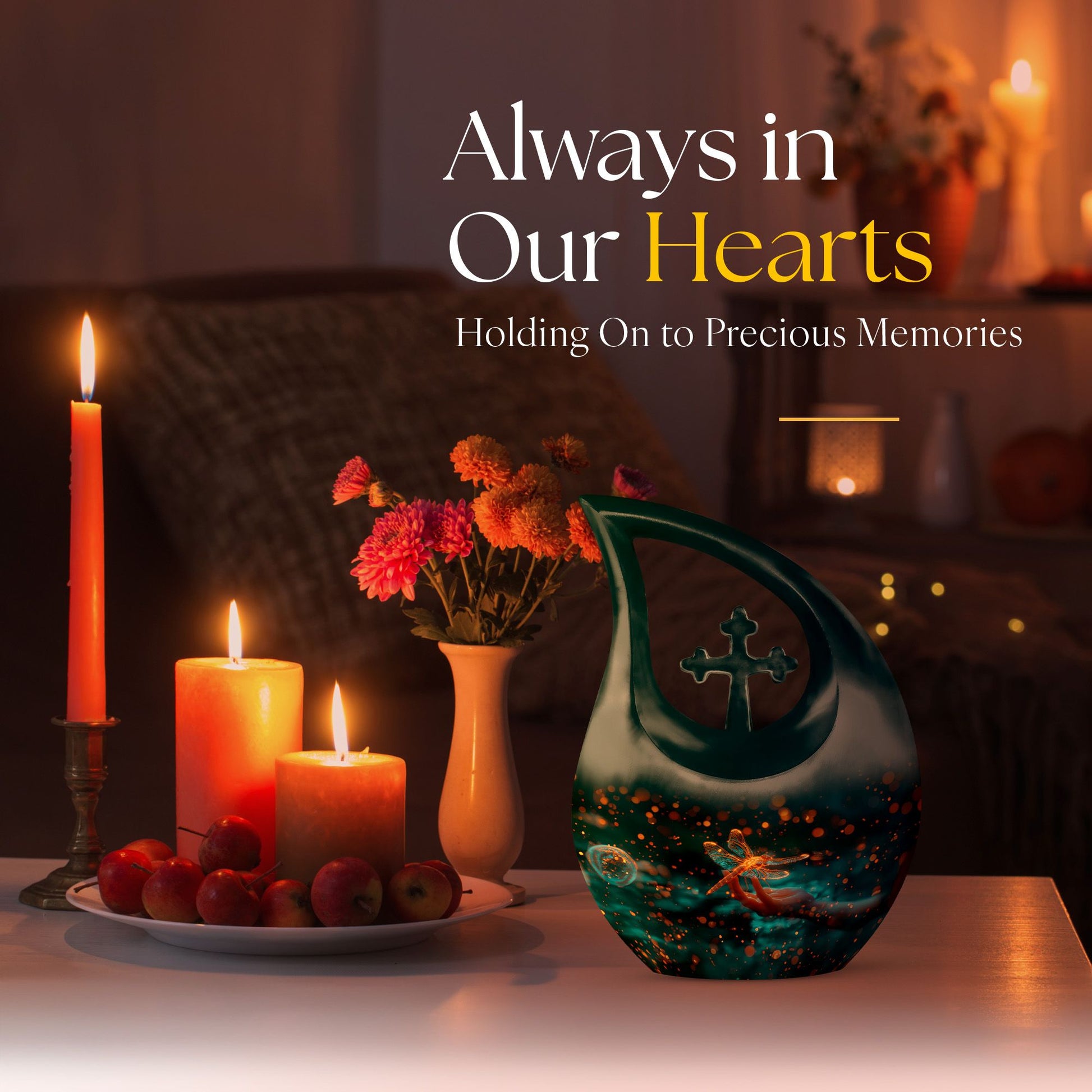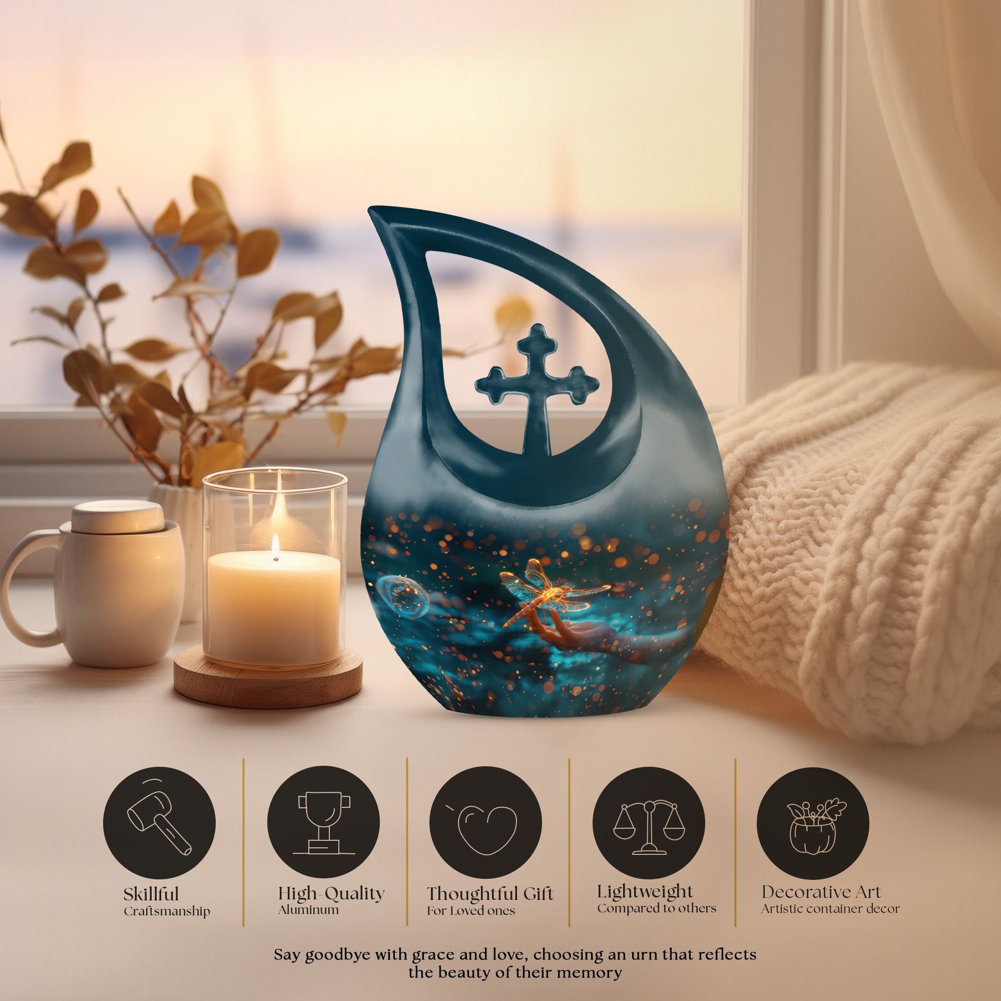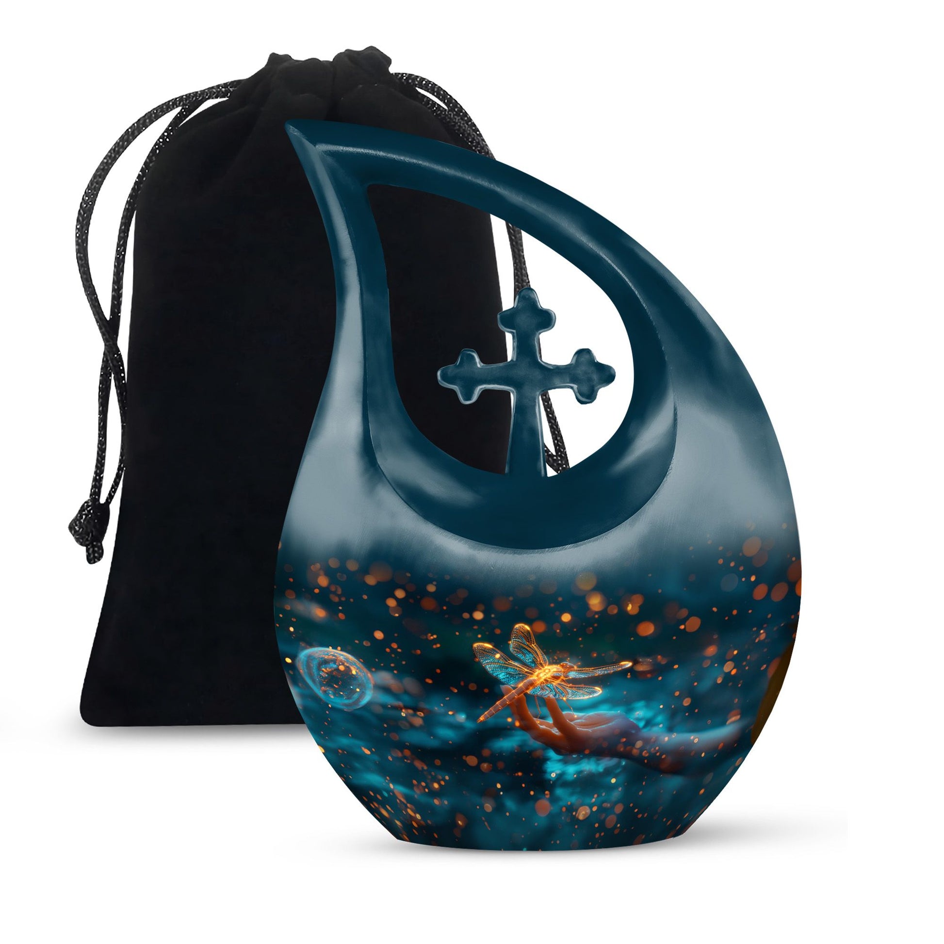 The Flying Cosmic Dragonfly Urn symbolizes transformation, peace, and eternal light—offering a beautiful tribute for any cherished loved one. Its flowing teardrop shape and cosmic dragonfly artwork make it a meaningful choice for families seeking urns for cremation, cremation urns for ashes, or a heartfelt cremation urn mom that reflects love and serenity.