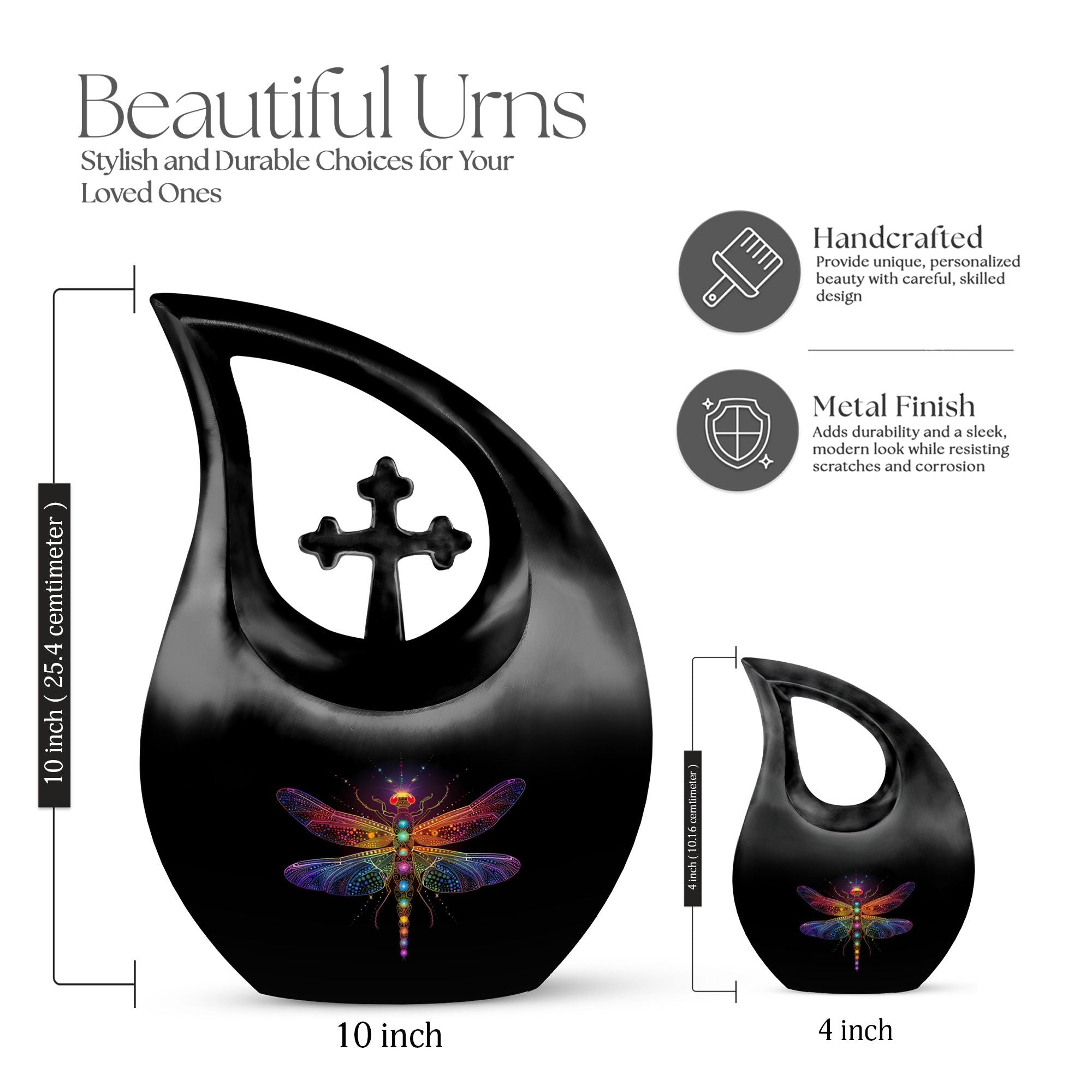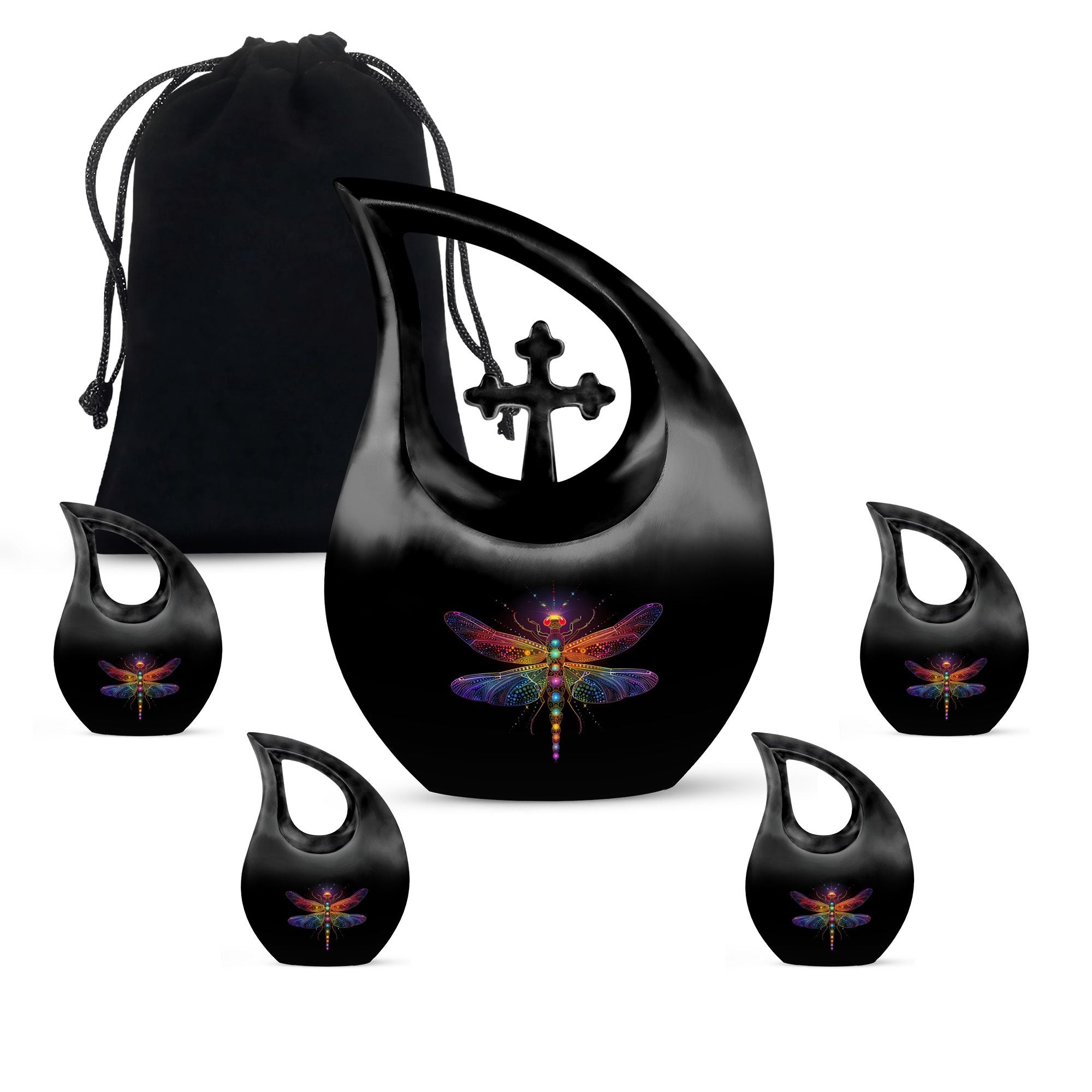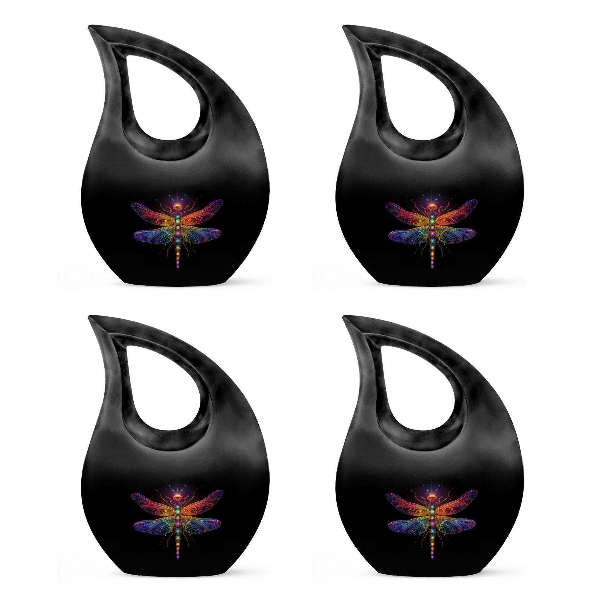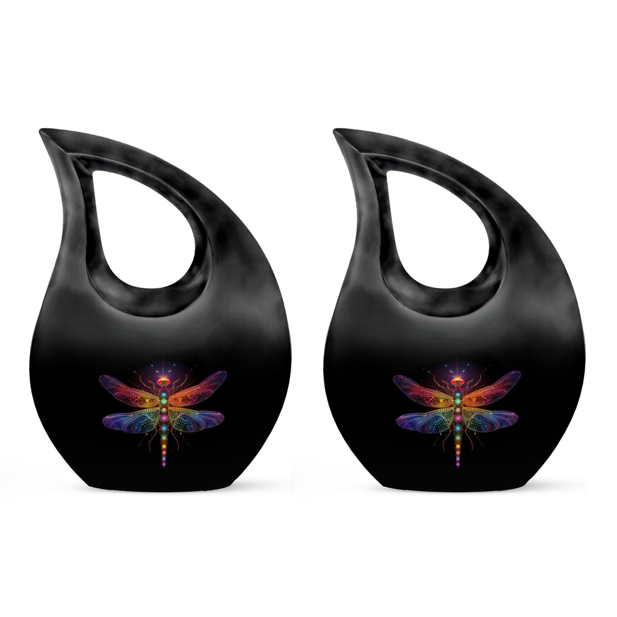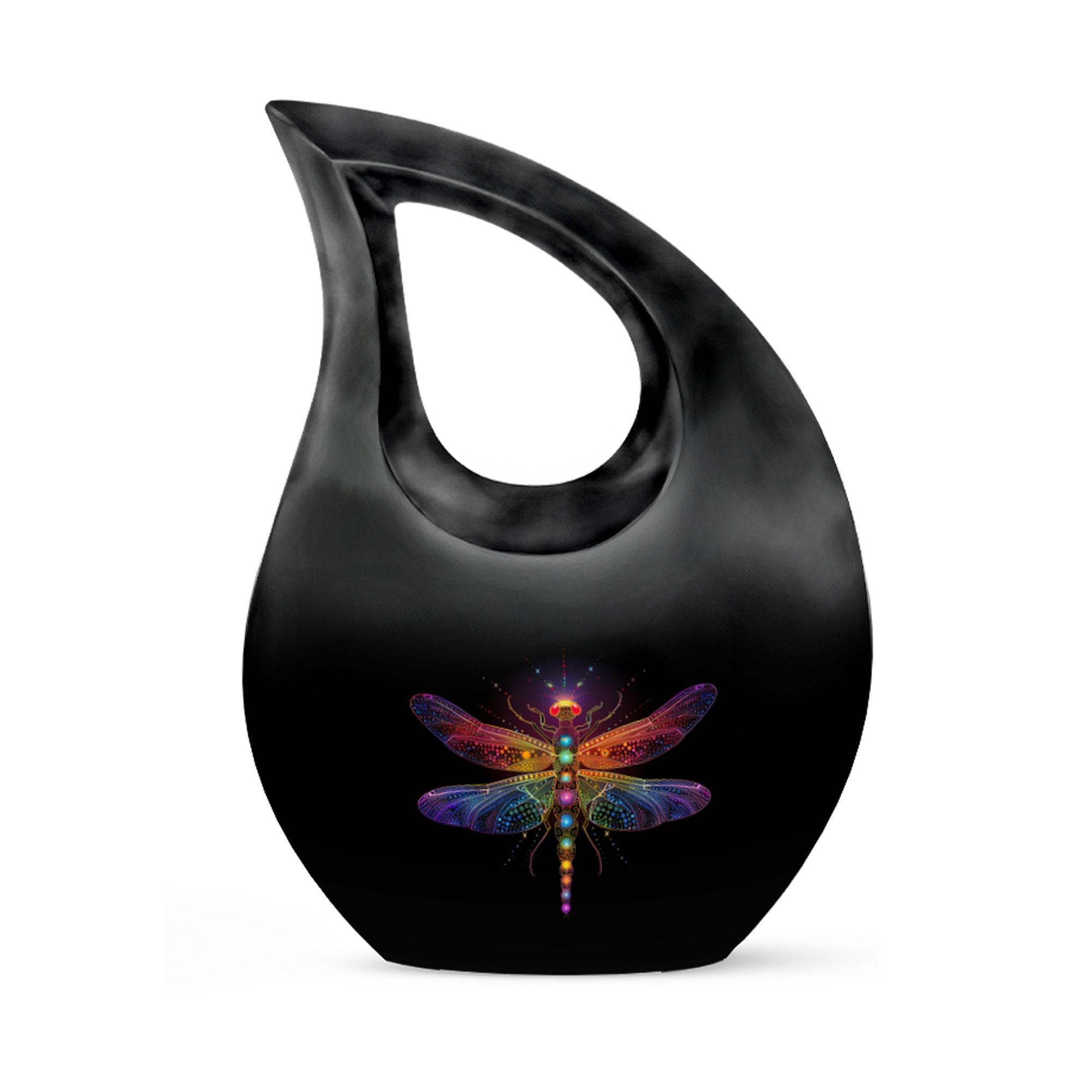 The Cosmic Dragonfly Urn represents transformation, peace, and eternal light—making it a heartfelt choice for honoring a cherished life. Its elegant black teardrop shape paired with cosmic dragonfly artwork creates a calming tribute for families seeking an urn for cremation ashes, human cremation urns, or a symbolic memorial that brings comfort during moments of remembrance.