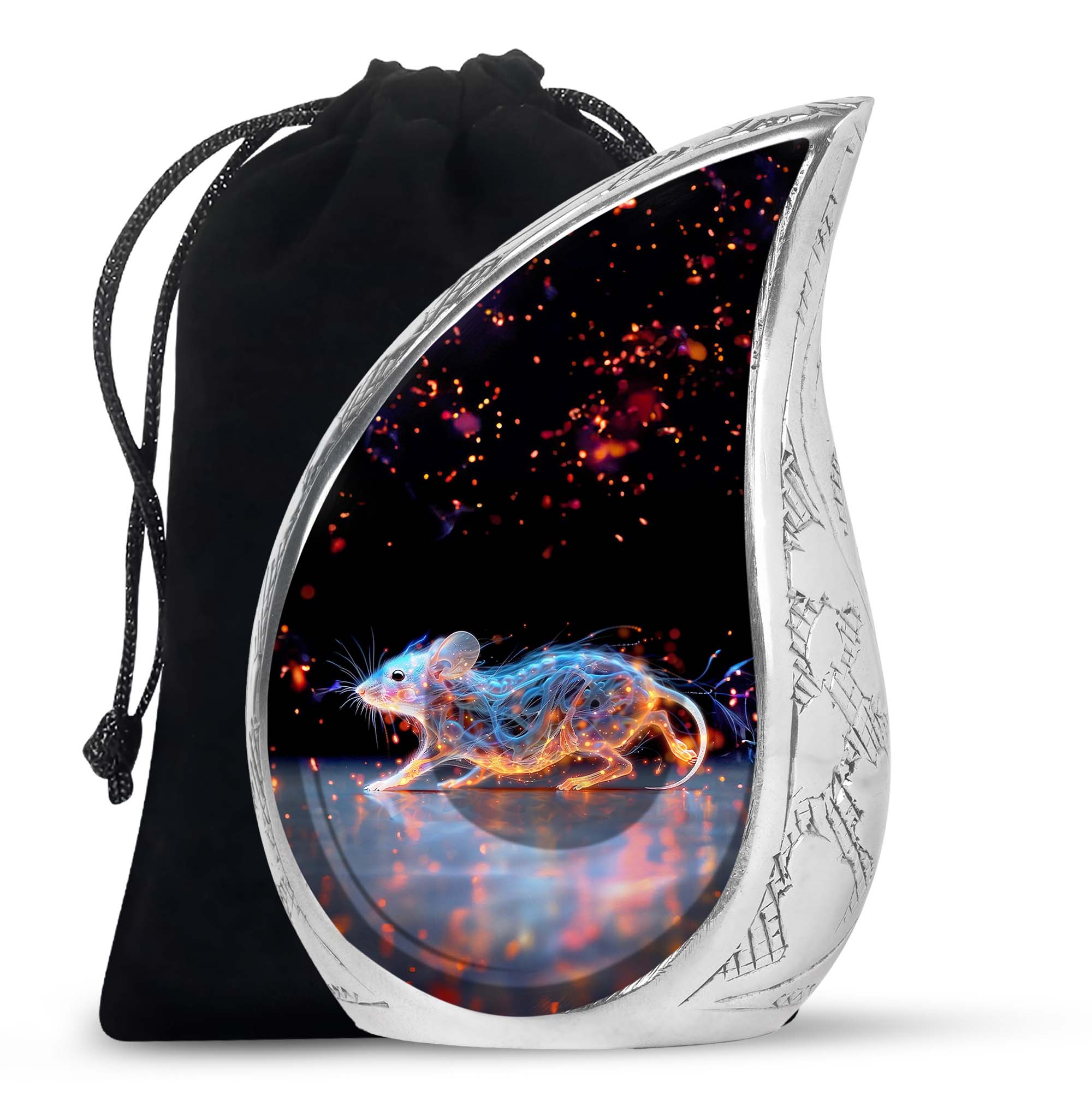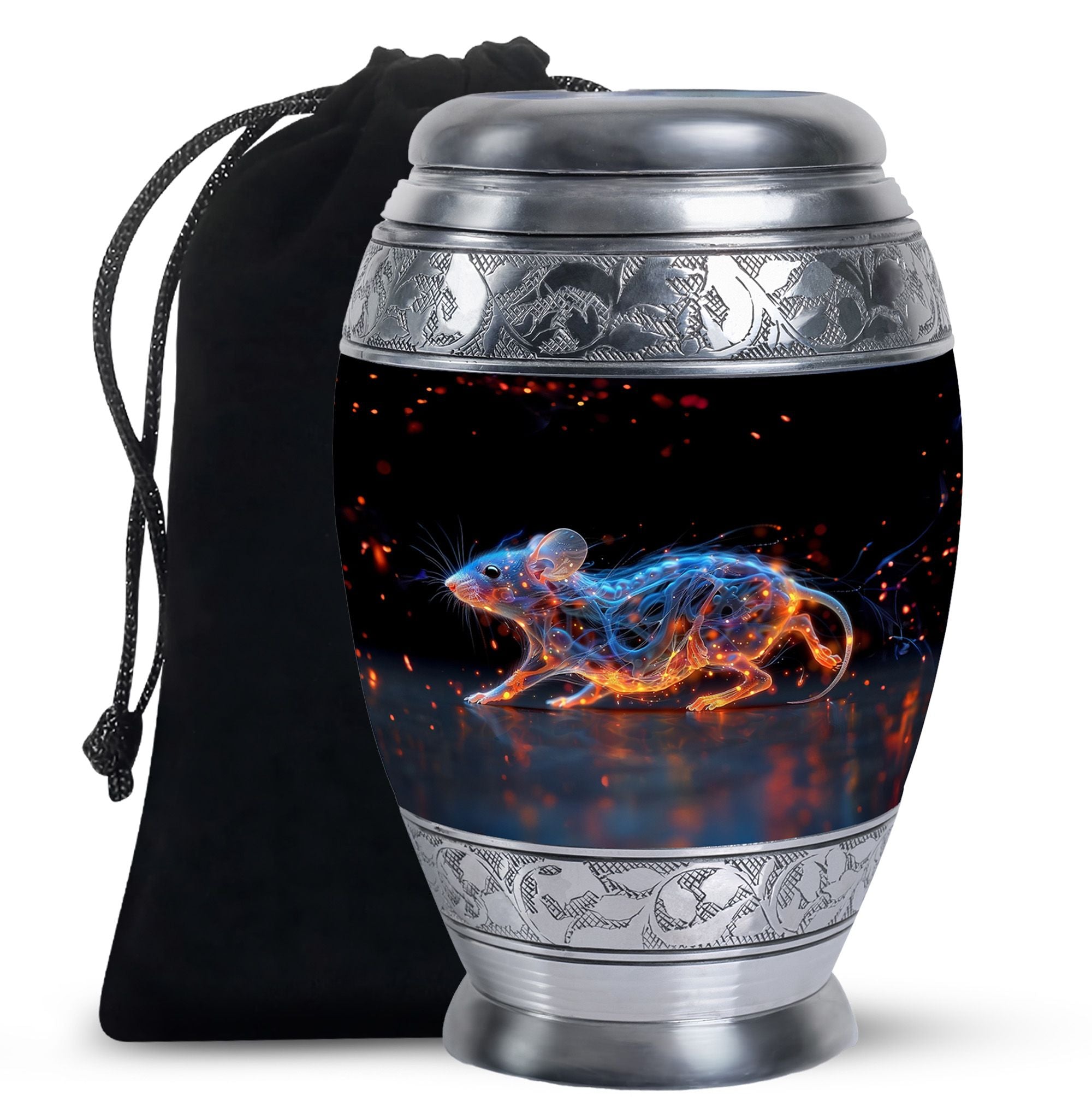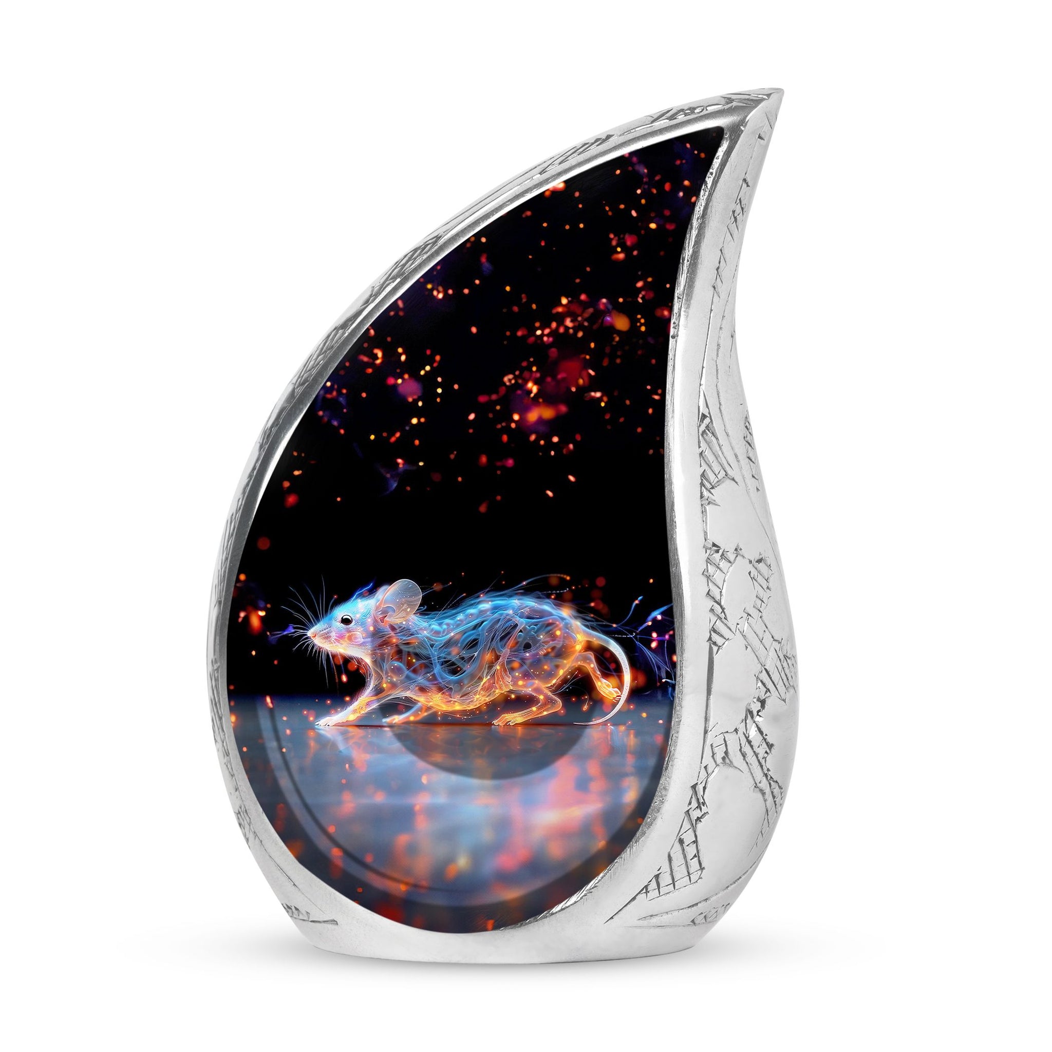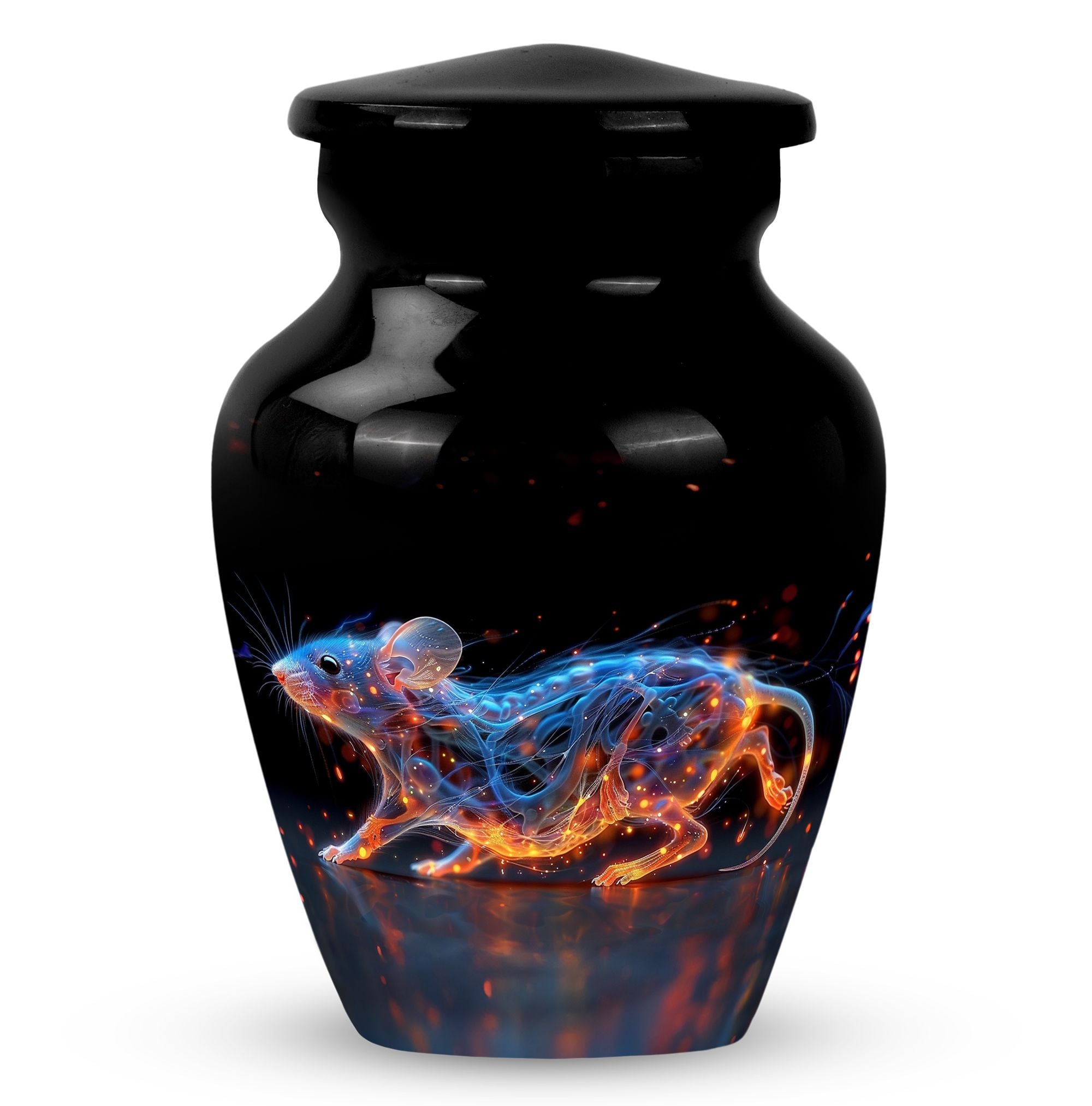 A symbol of humility and intelligence, the Cosmic Mouse Urn transforms sorrow into serenity—preserving life’s story in a vessel of cosmic grace and eternal light.