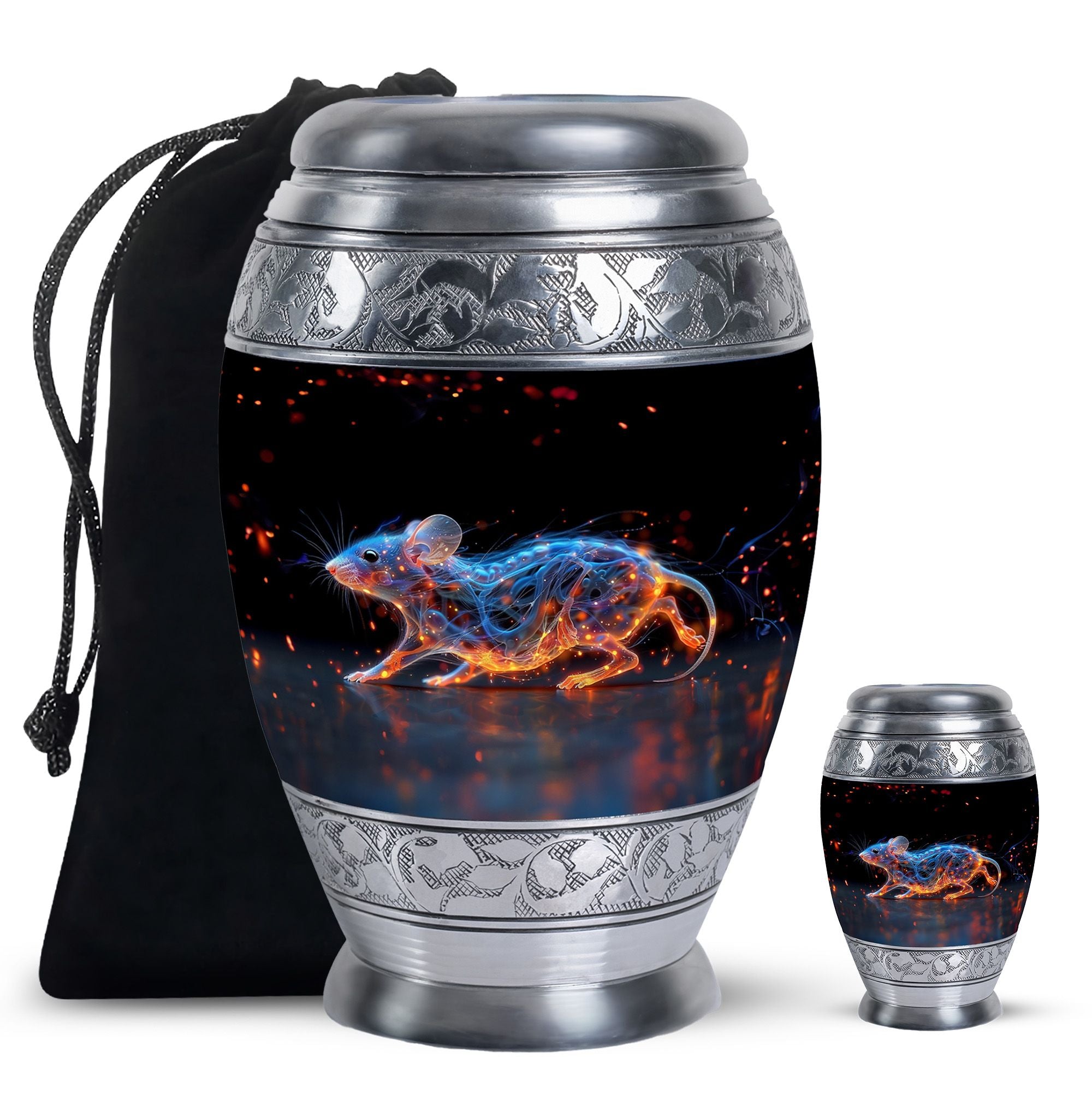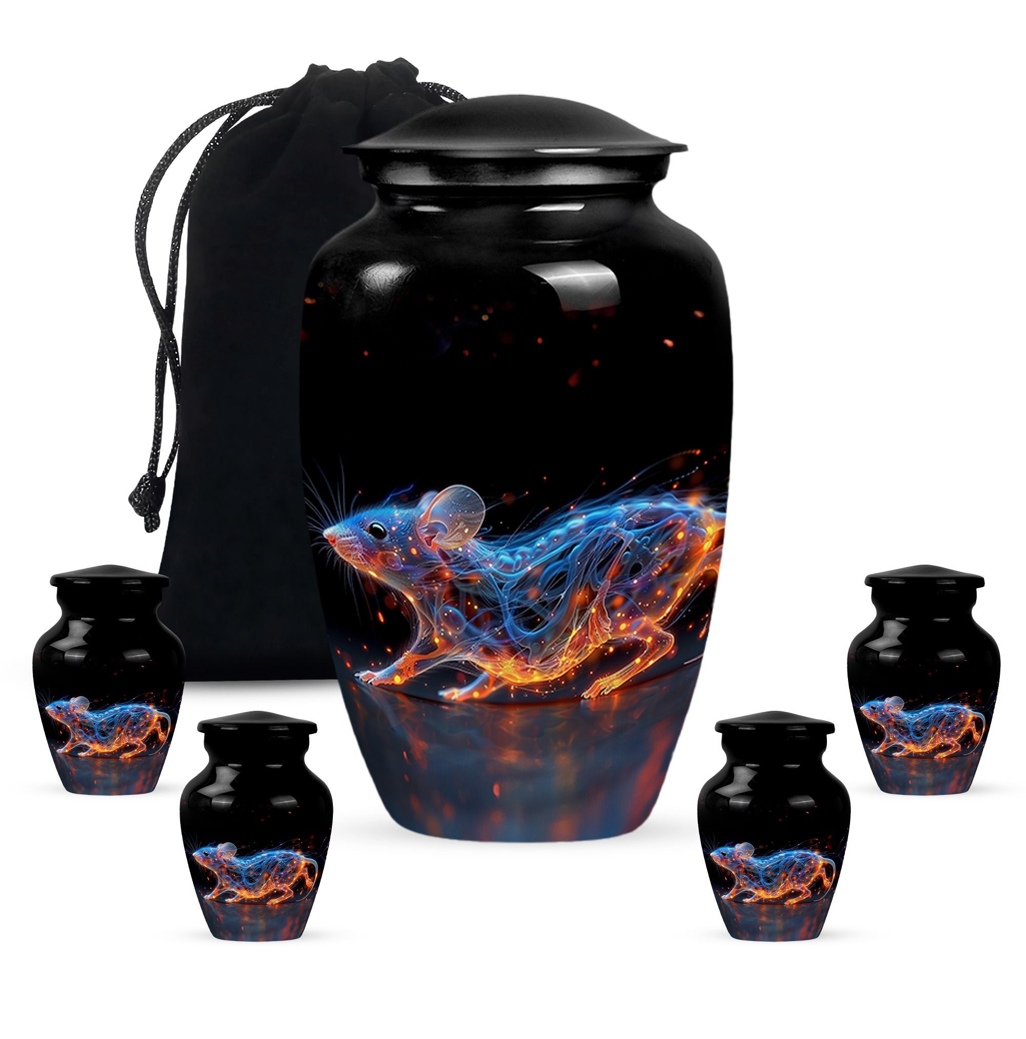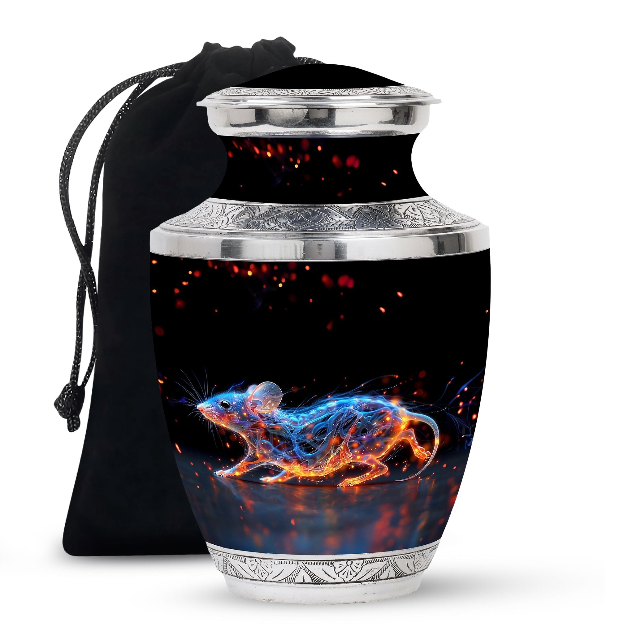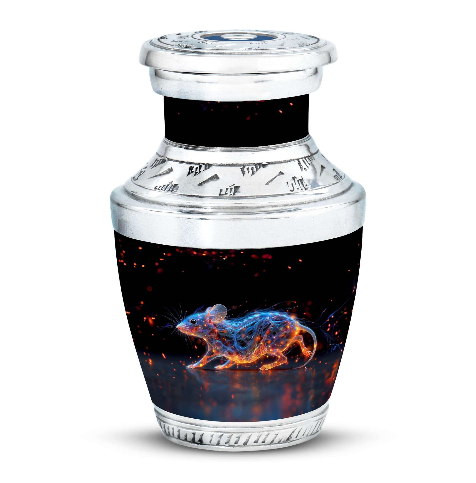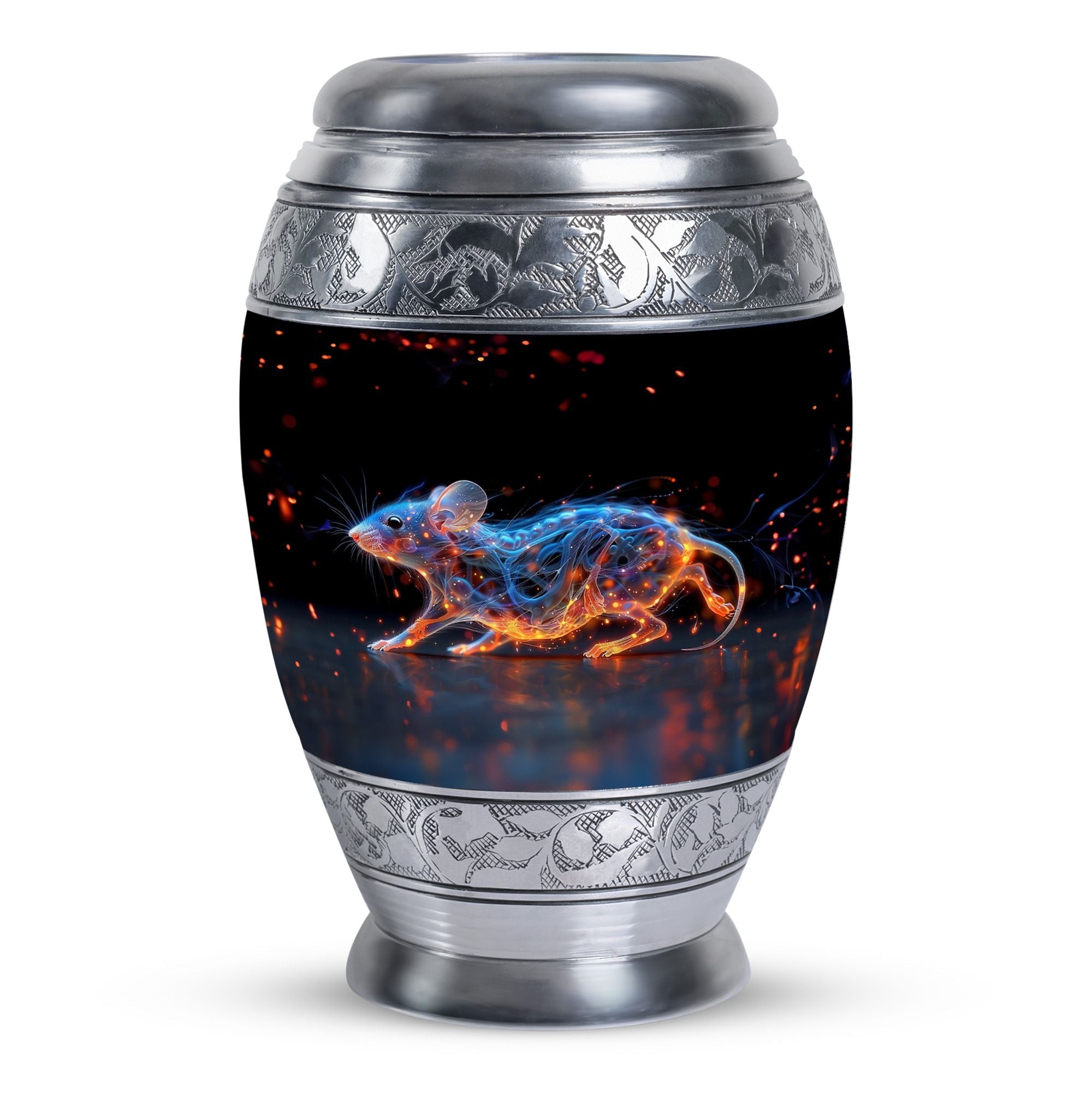 A symbol of humility and intelligence, the Cosmic Mouse Urn transforms sorrow into serenity—preserving life’s story in a vessel of cosmic grace and eternal light.