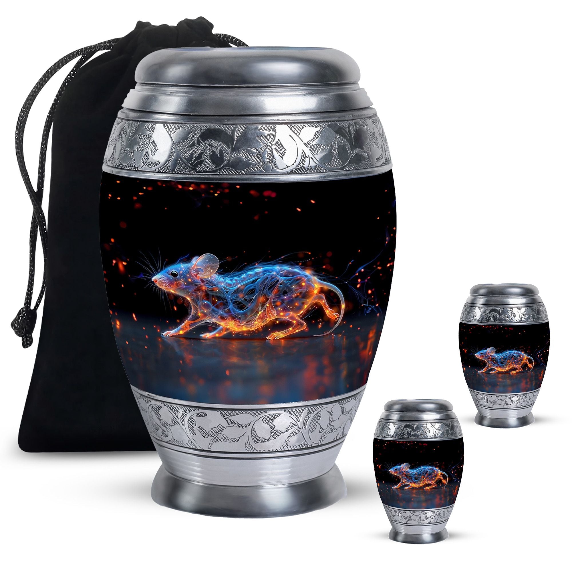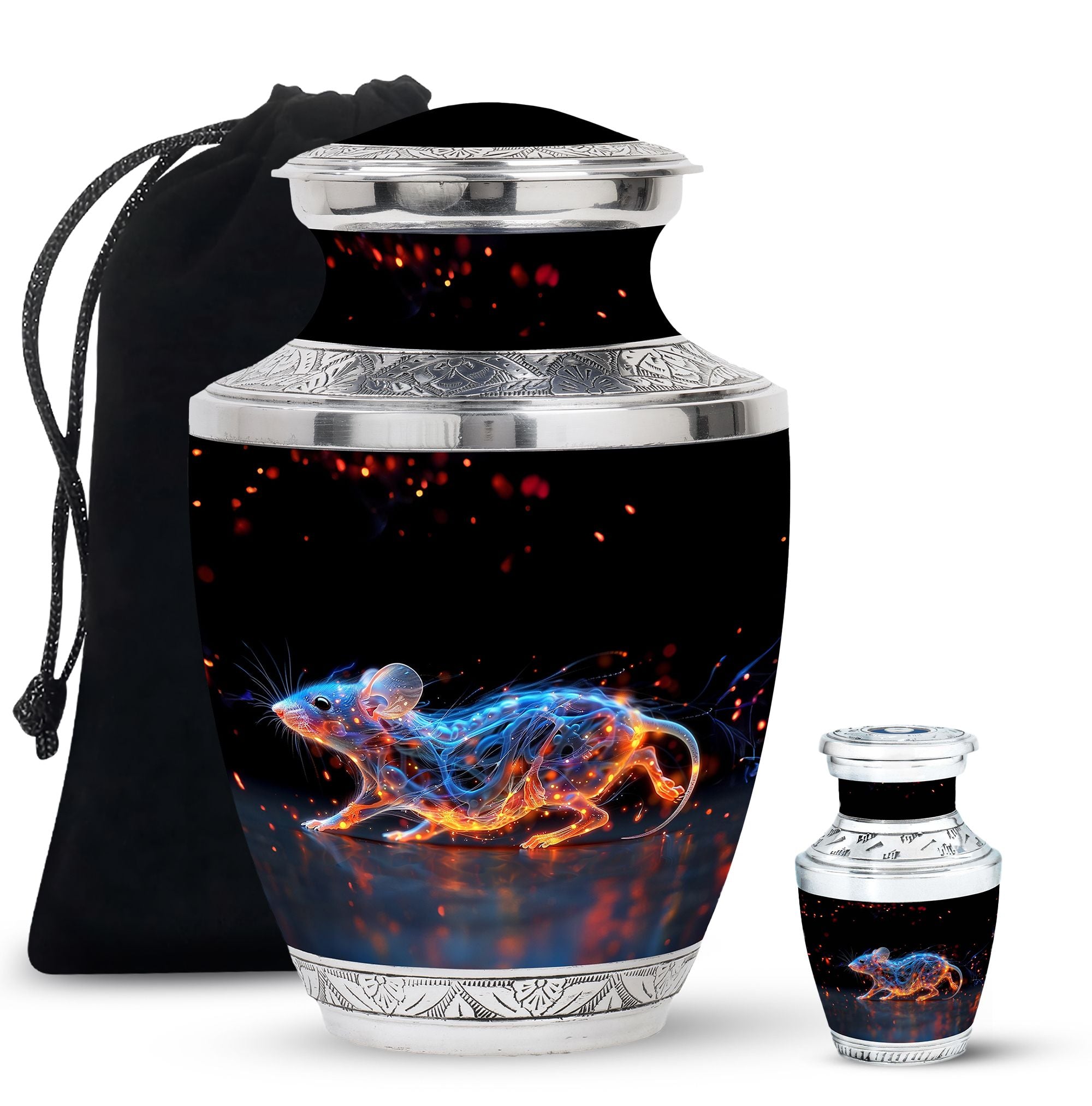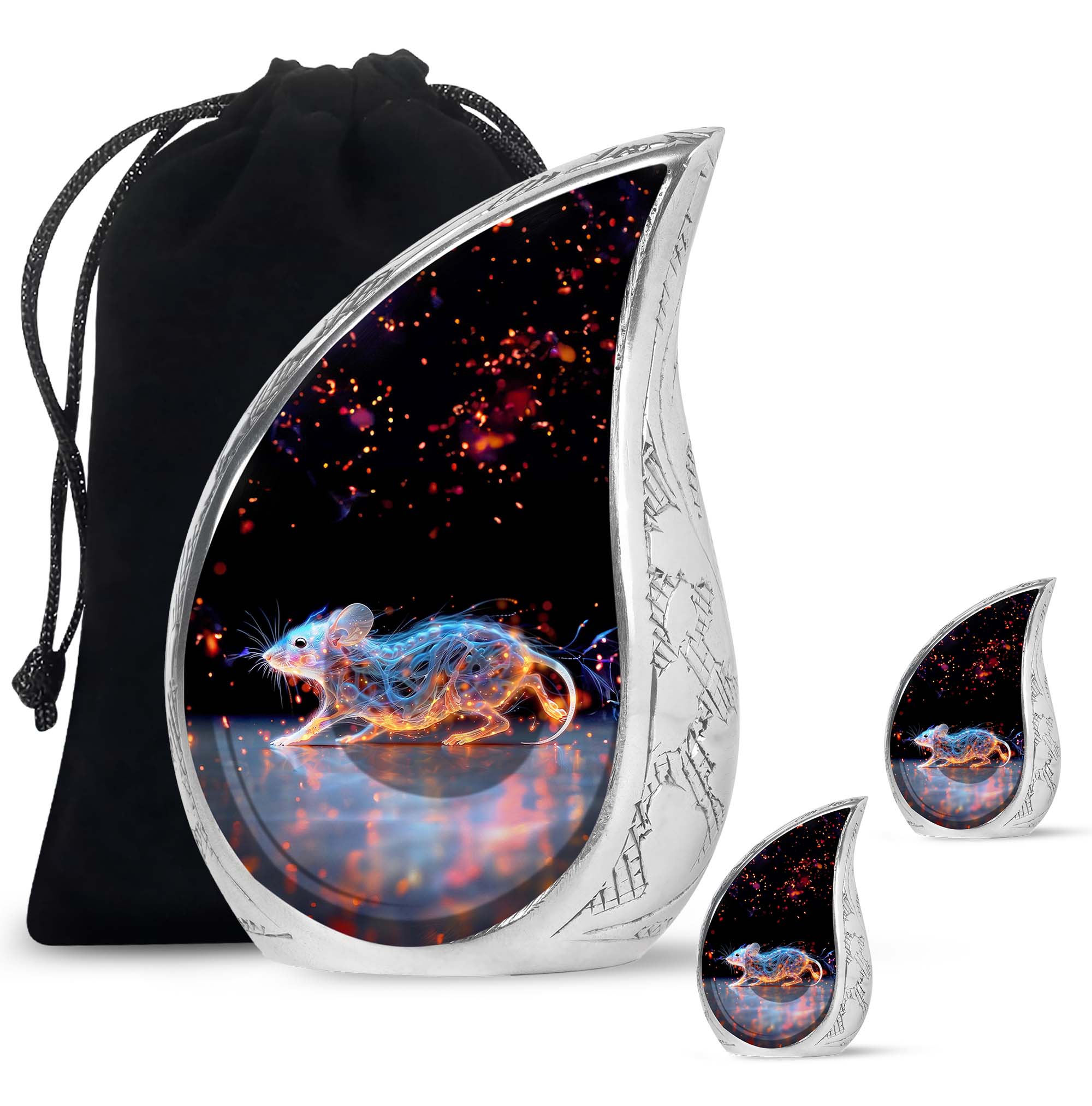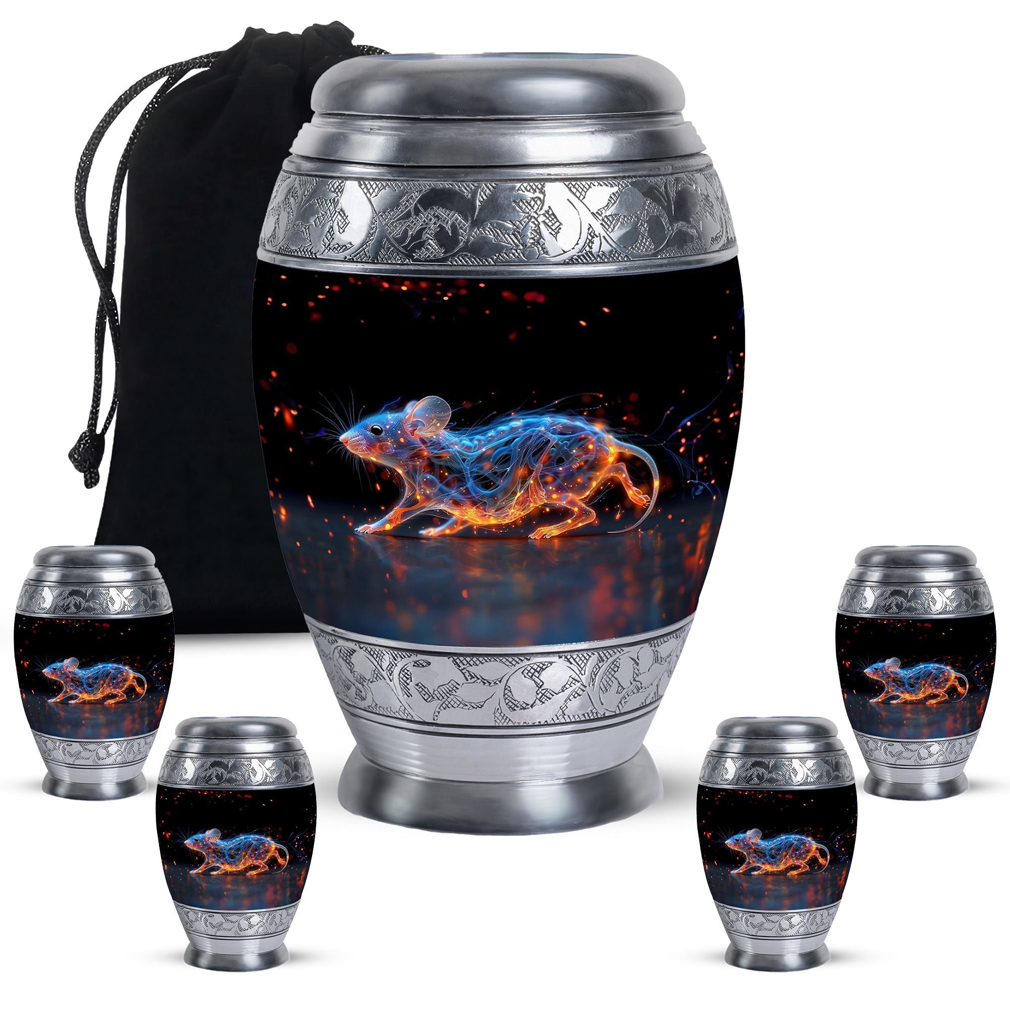 A symbol of humility and intelligence, the Cosmic Mouse Urn transforms sorrow into serenity—preserving life’s story in a vessel of cosmic grace and eternal light.